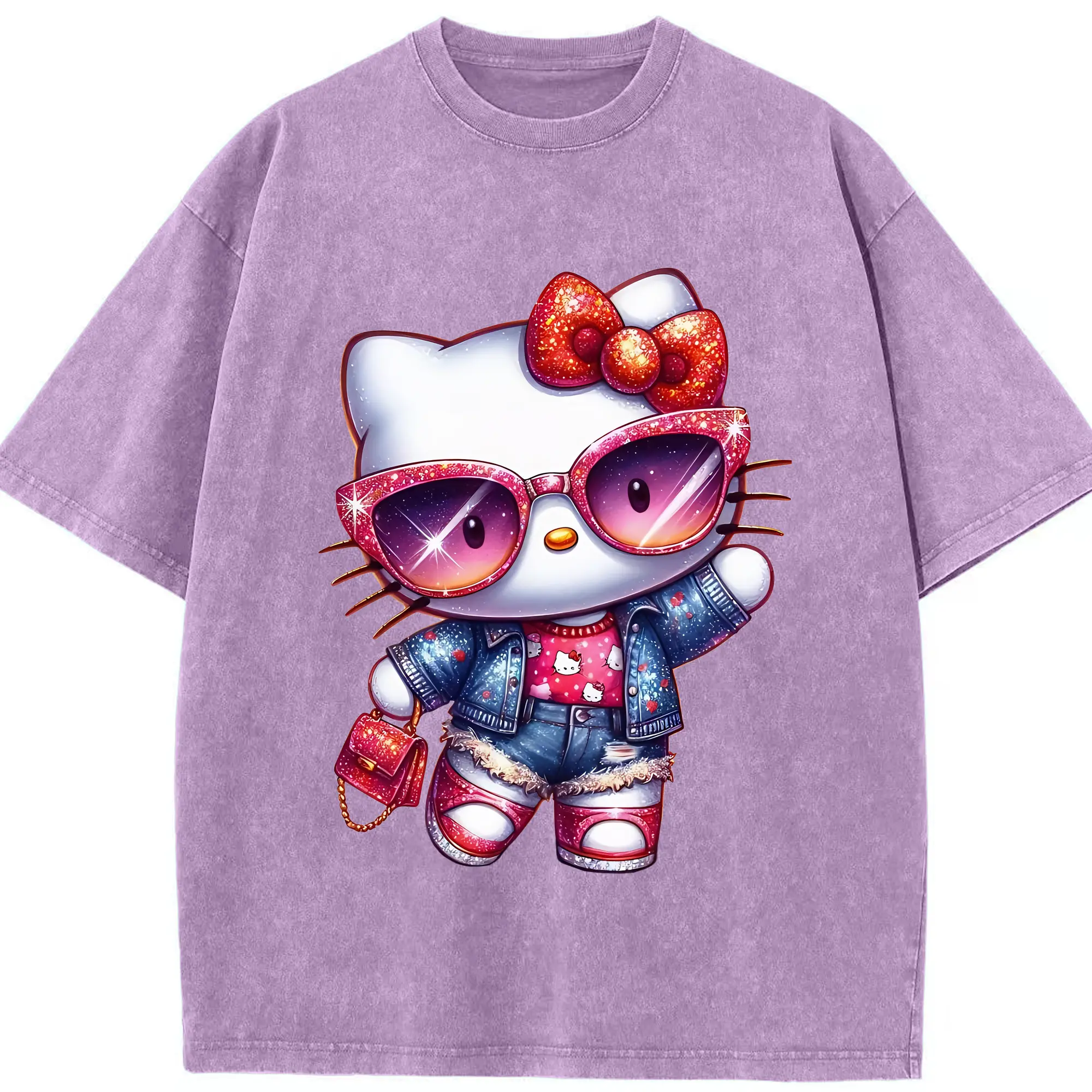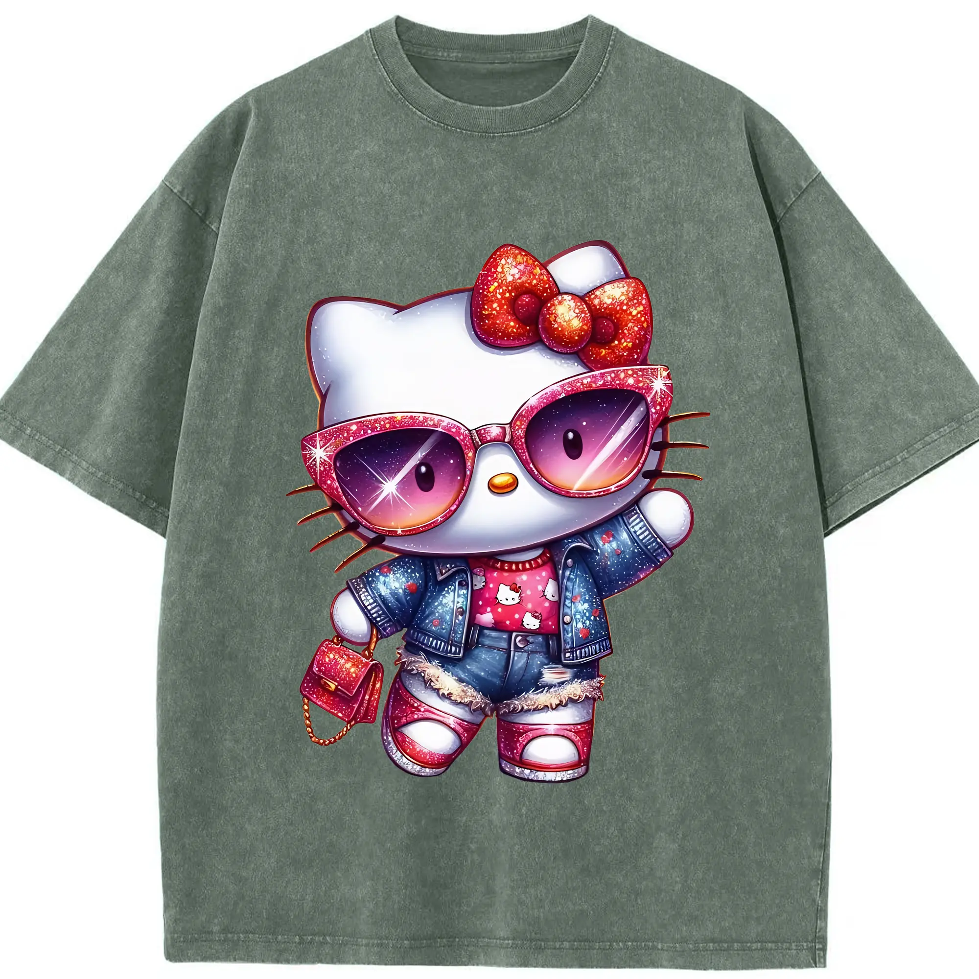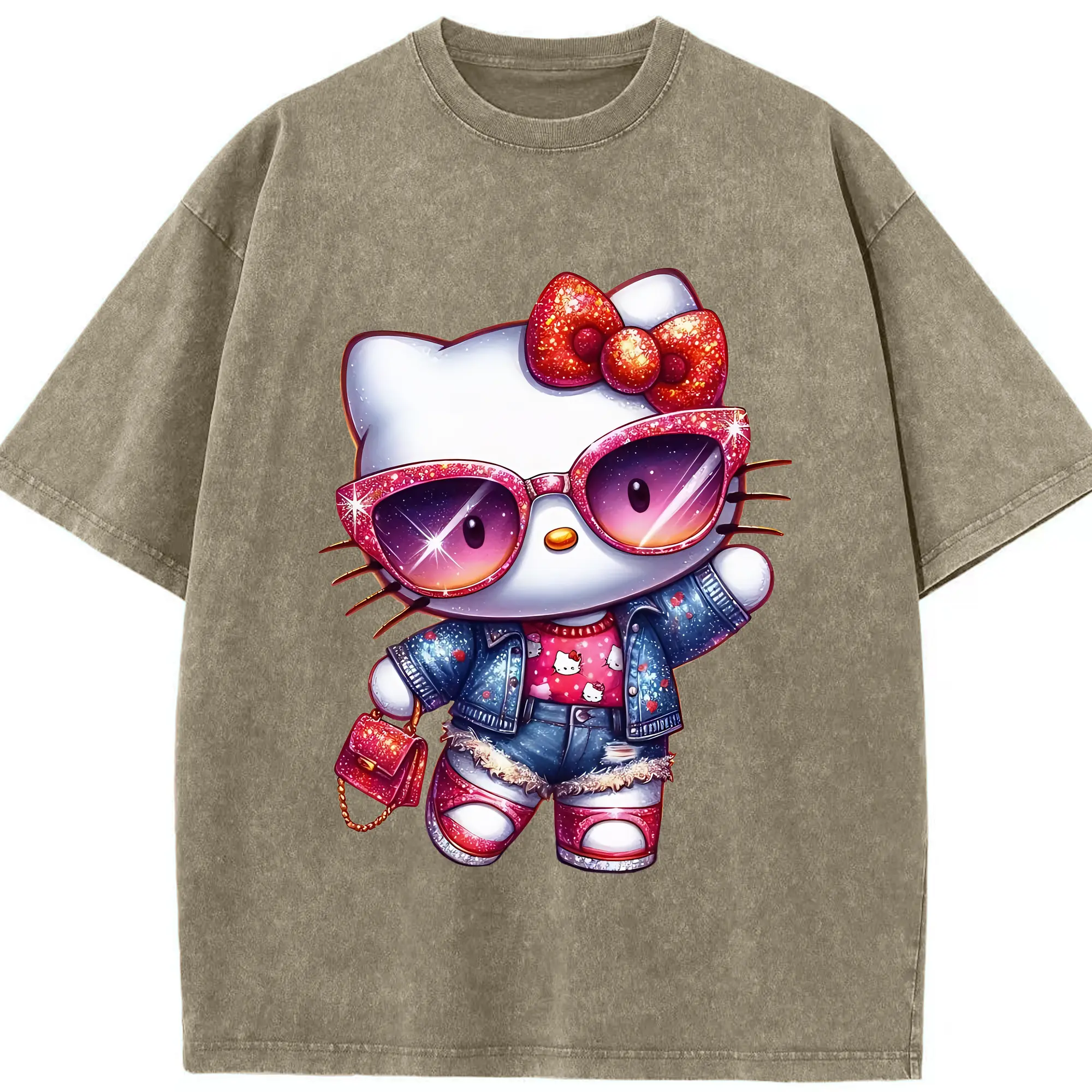 サンリオ グッズ,ハローキティ - 綿100% ヴィンテージ風 半袖Tシャツ ・ 背面プリント ・ 柔らか肌触り ・ 通気性 快適 ・ スポーツ カジュアル 外出用