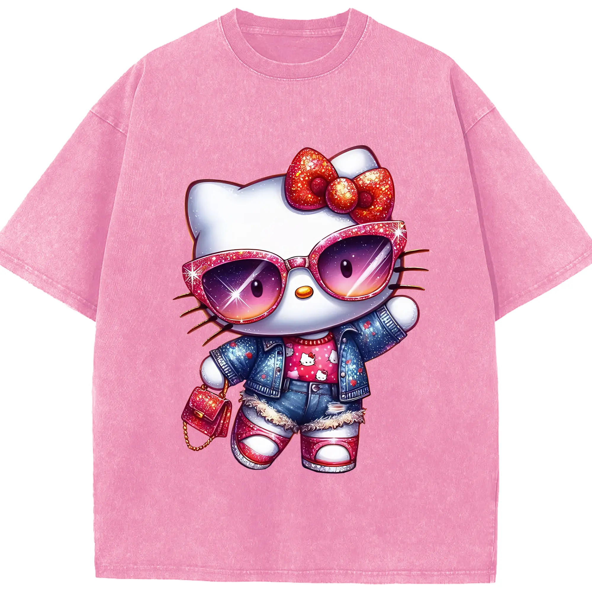 サンリオ グッズ,ハローキティ - 綿100% 半袖Tシャツ ・ フロントプリント ・ 快適 通気性 ・ 日常使い 散歩 スポーツ用