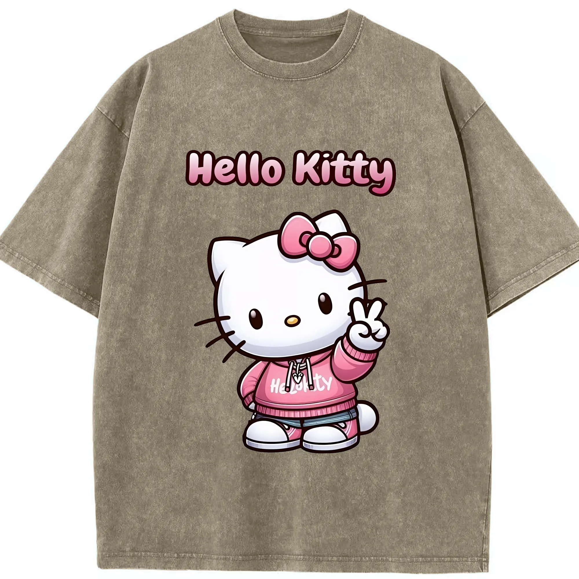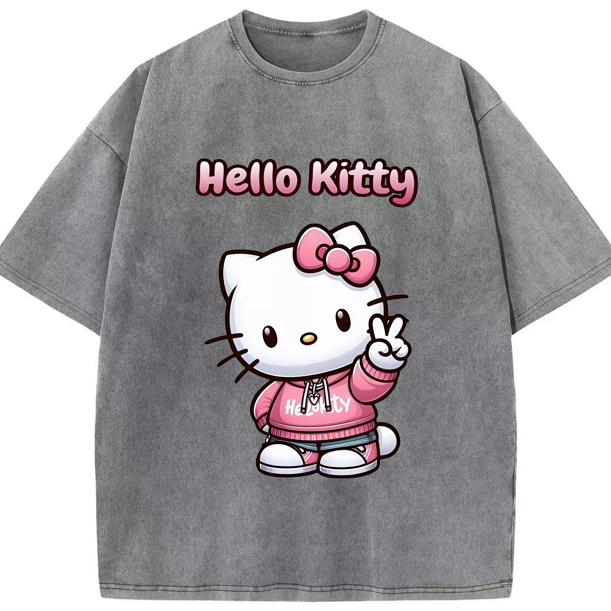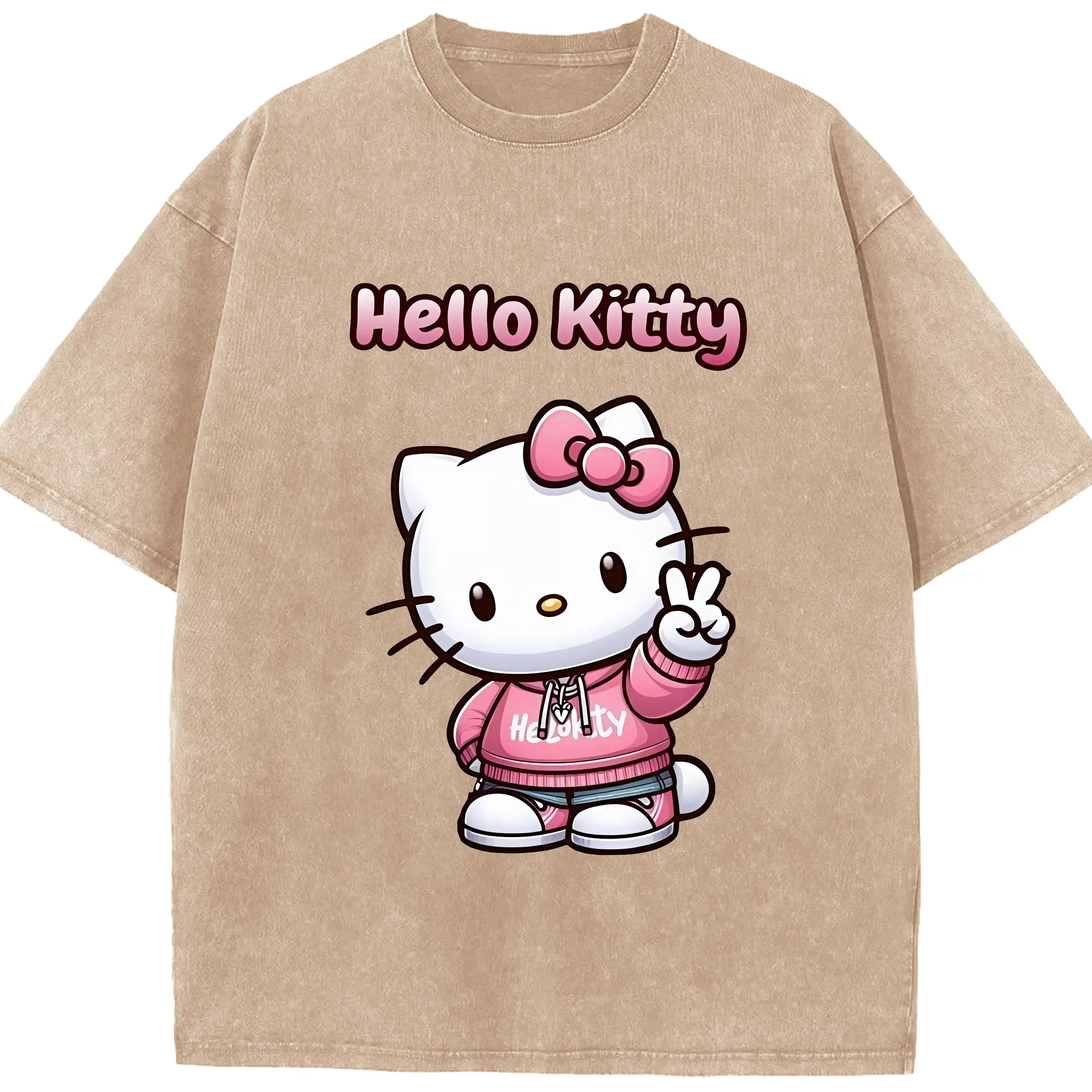 サンリオ グッズ,ハローキティ - 綿100% ヴィンテージ風 半袖Tシャツ ・ 背面プリント ・ 柔らか肌触り ・ 通気性 快適 ・ スポーツ カジュアル 外出用
