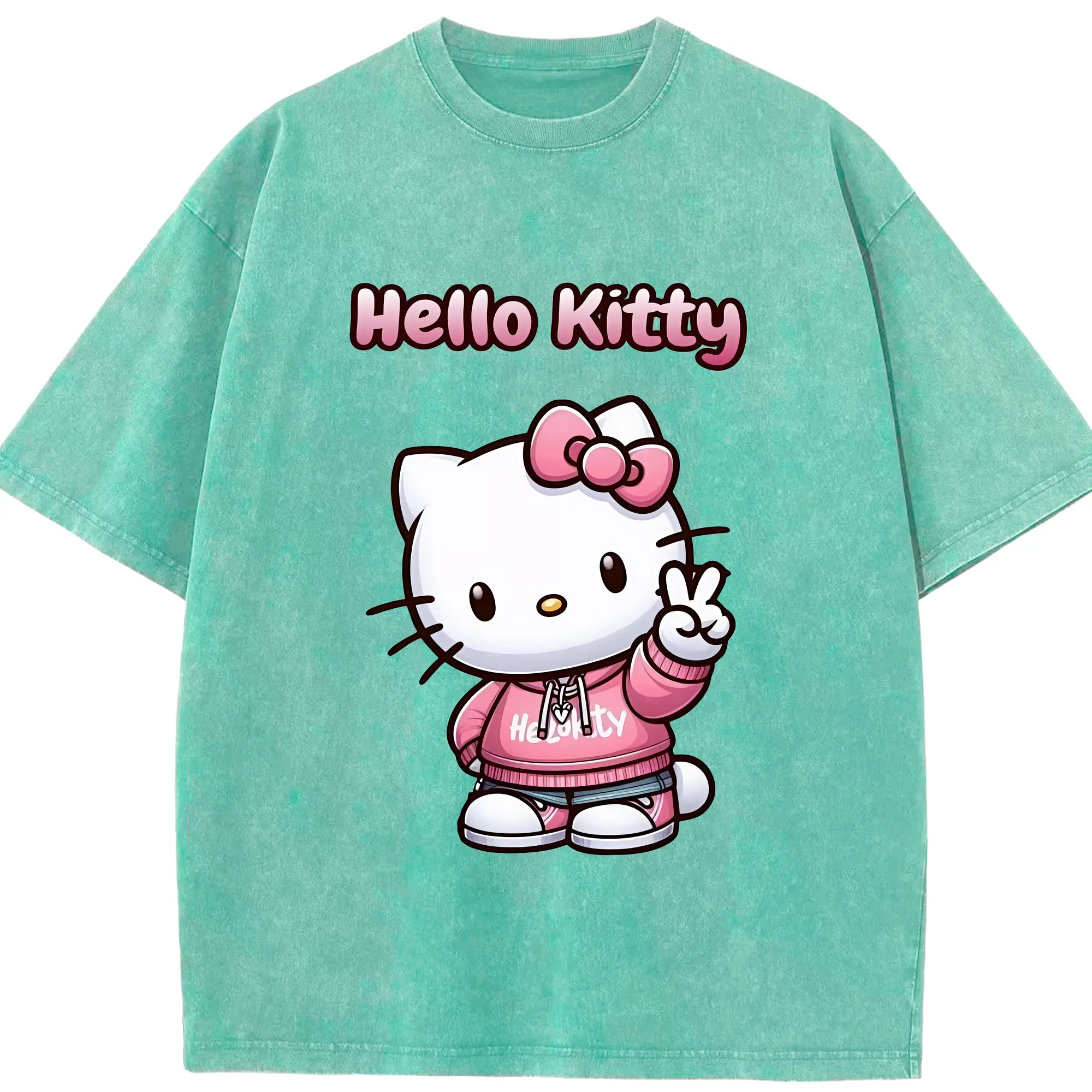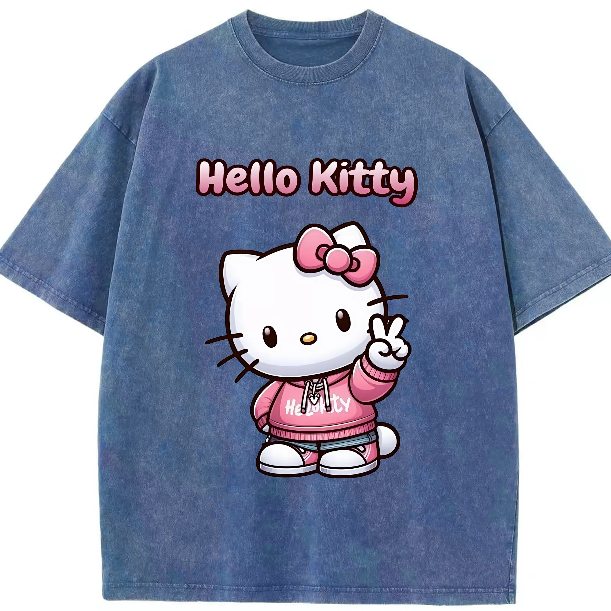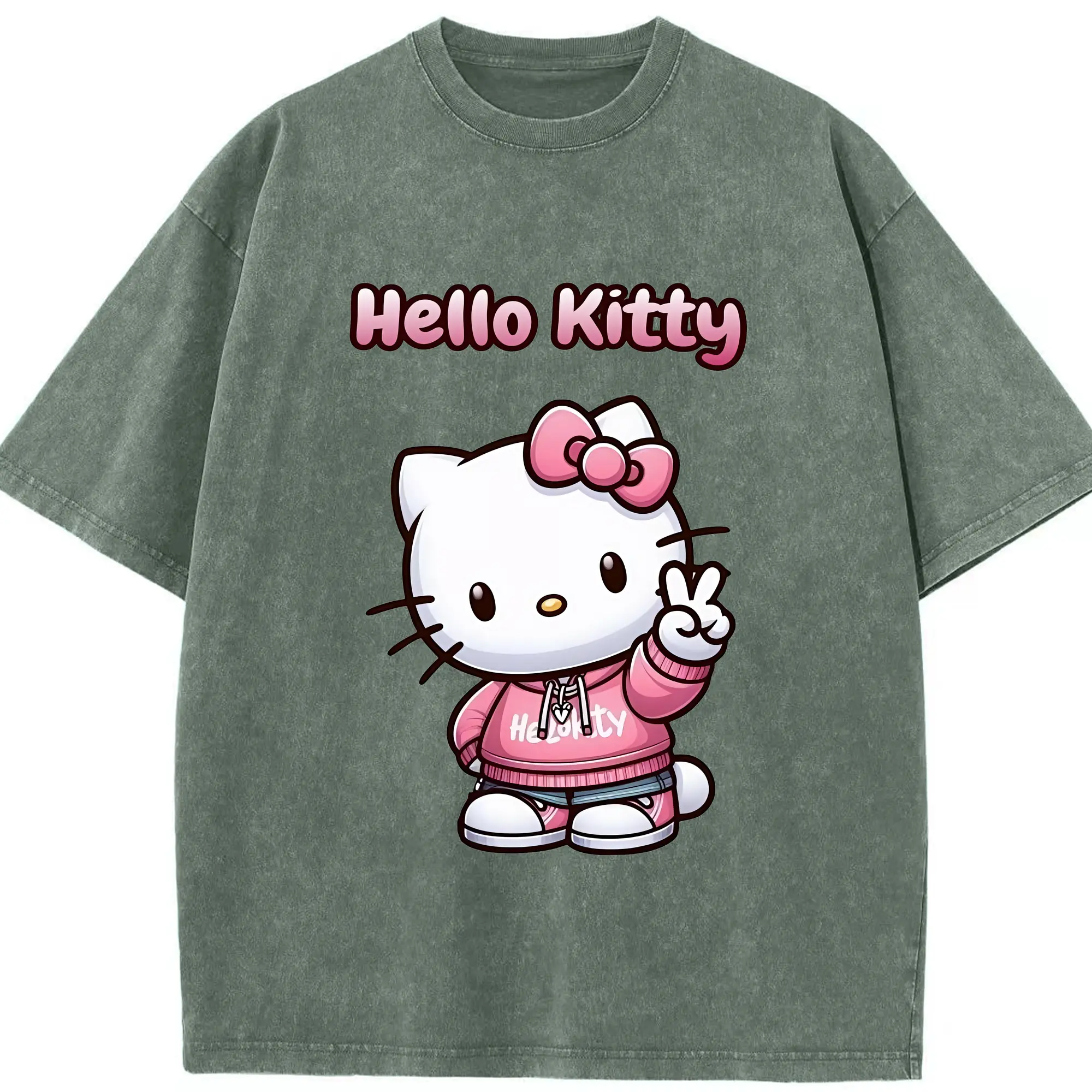 サンリオ グッズ,ハローキティ - 綿100% ヴィンテージ風 半袖Tシャツ ・ 背面プリント ・ 柔らか肌触り ・ 通気性 快適 ・ スポーツ カジュアル 外出用