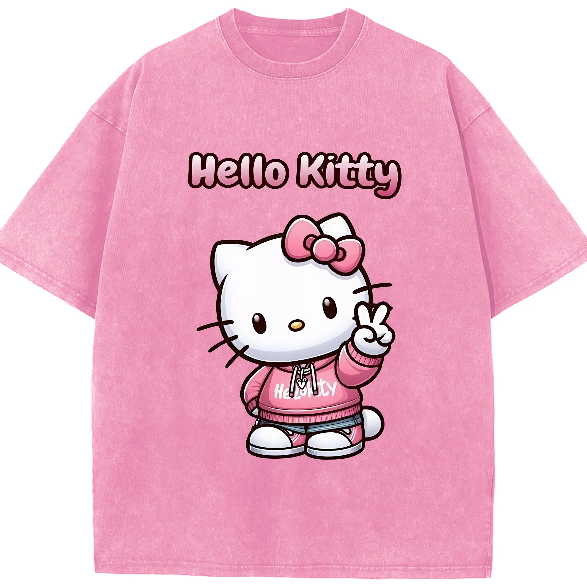サンリオ グッズ,ハローキティ - 綿100% 半袖Tシャツ ・ フロントプリント ・ 快適 通気性 ・ 日常使い 散歩 スポーツ用