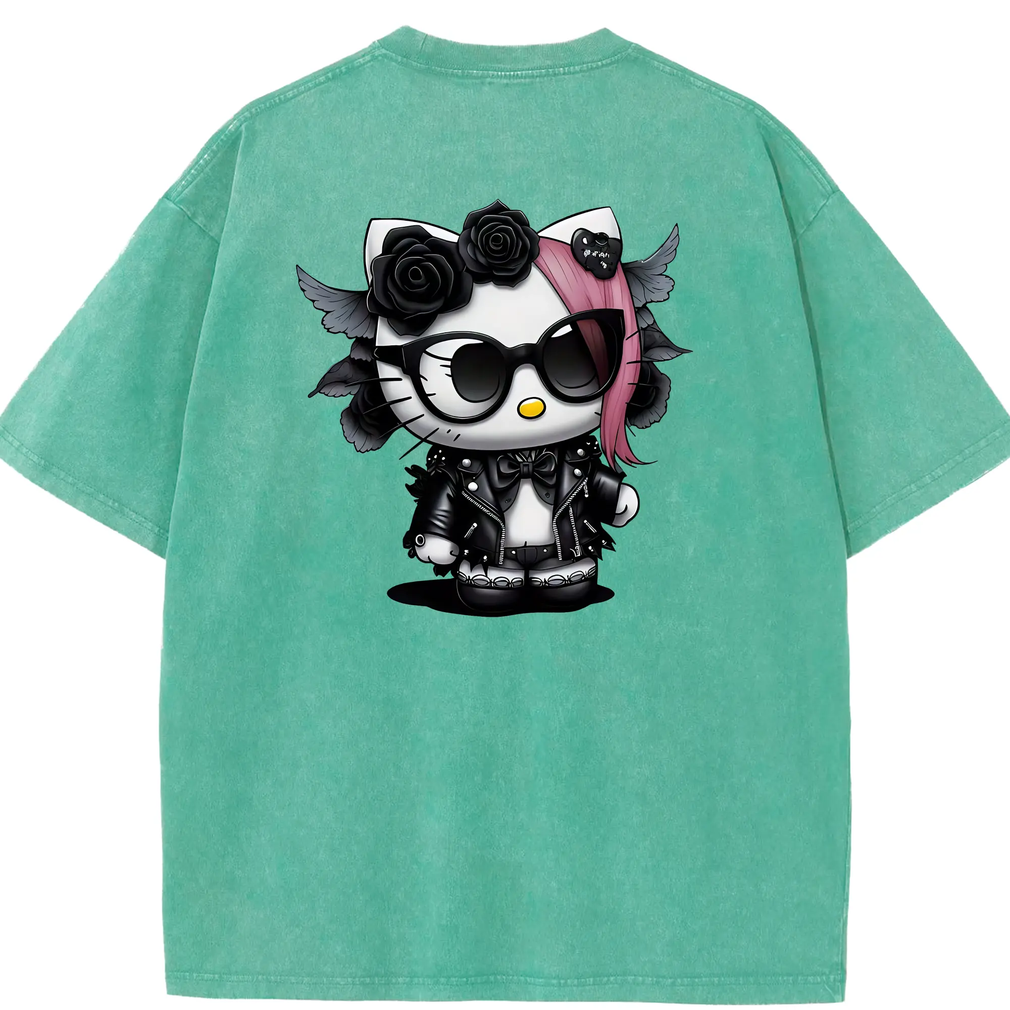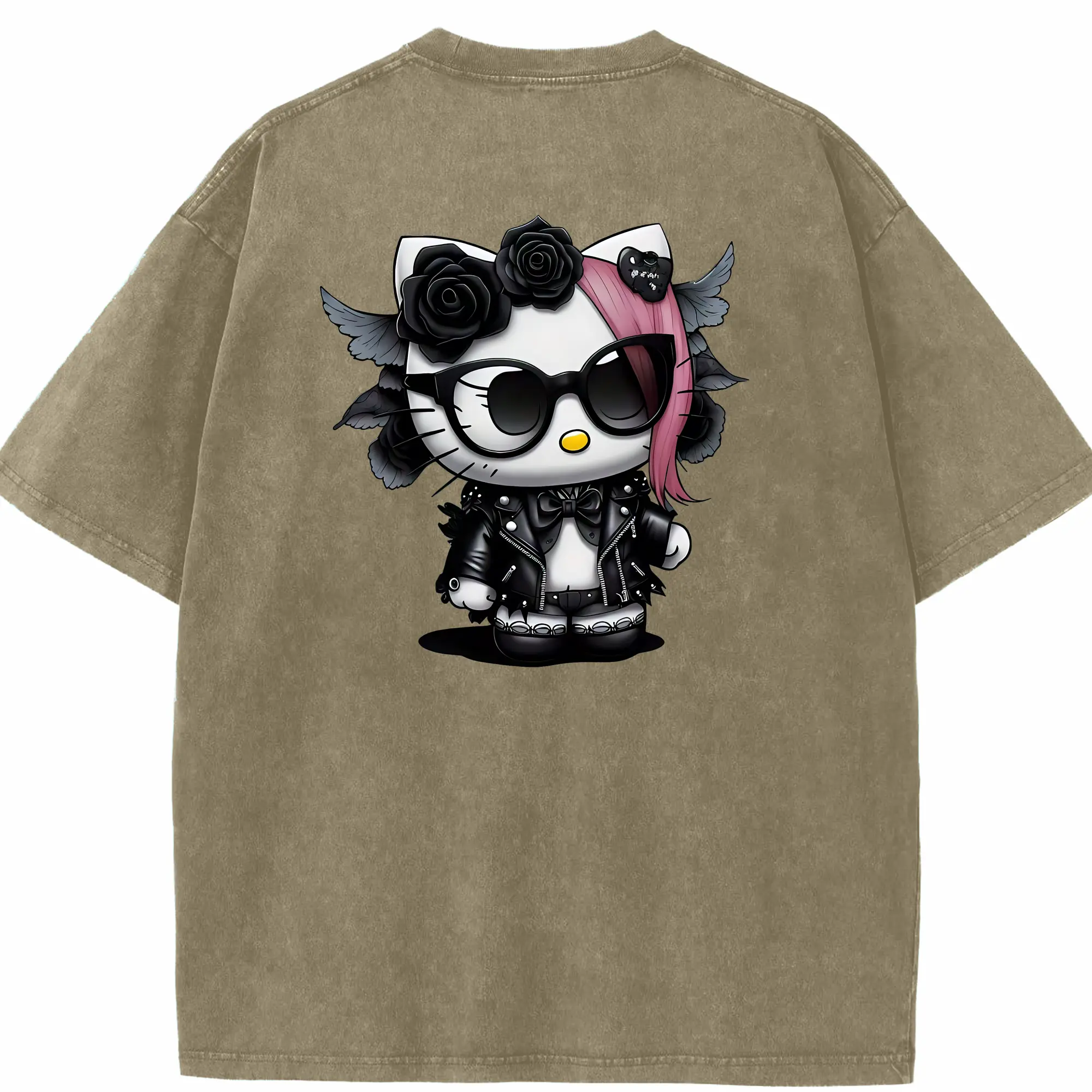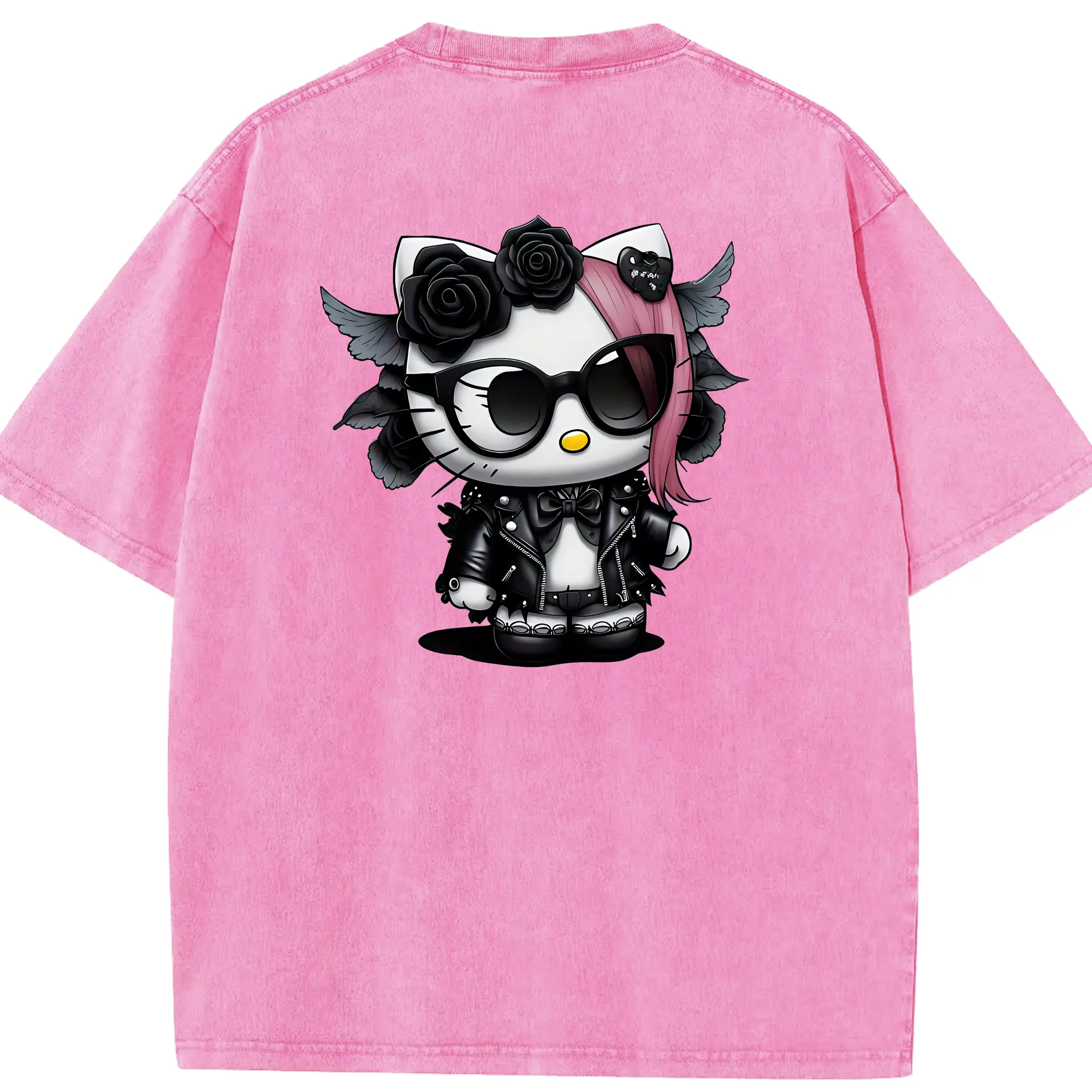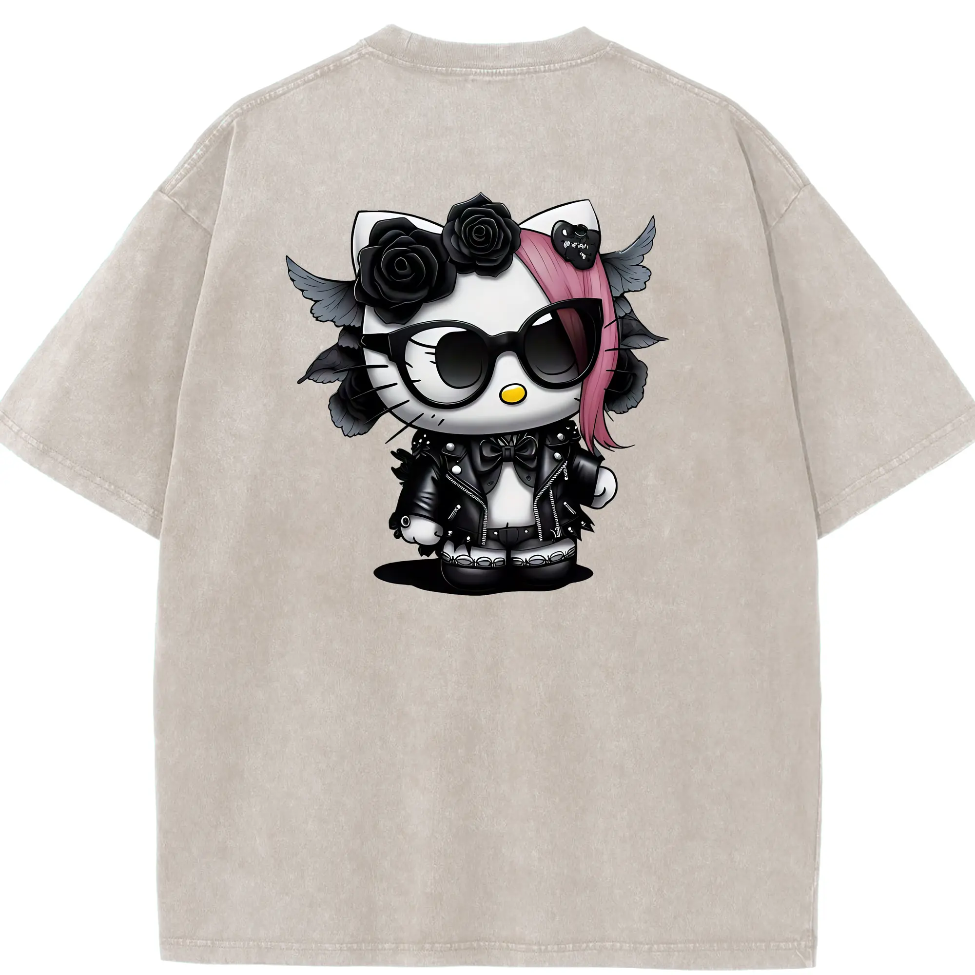 サンリオ グッズ,ハローキティ - 綿100% ヴィンテージ風 半袖Tシャツ ・ 背面プリント ・ 柔らか肌触り ・ 通気性 快適 ・ スポーツ カジュアル 外出用