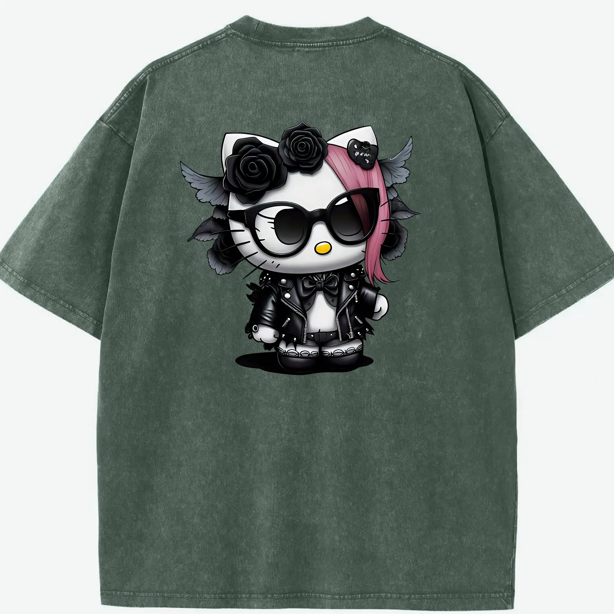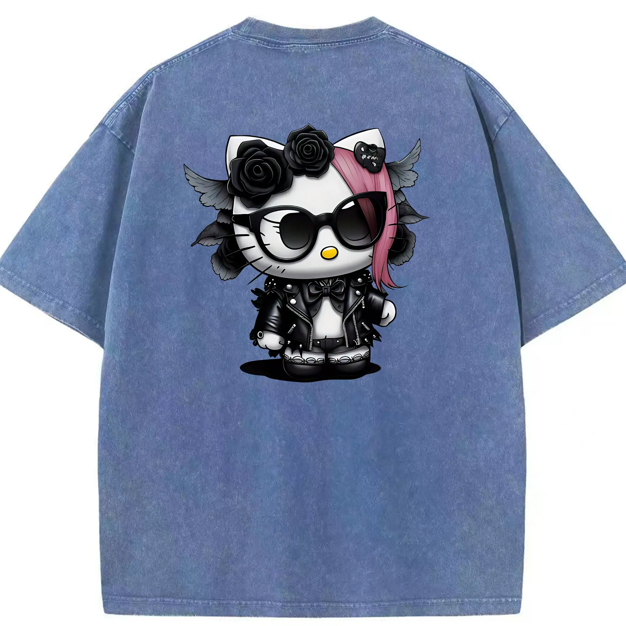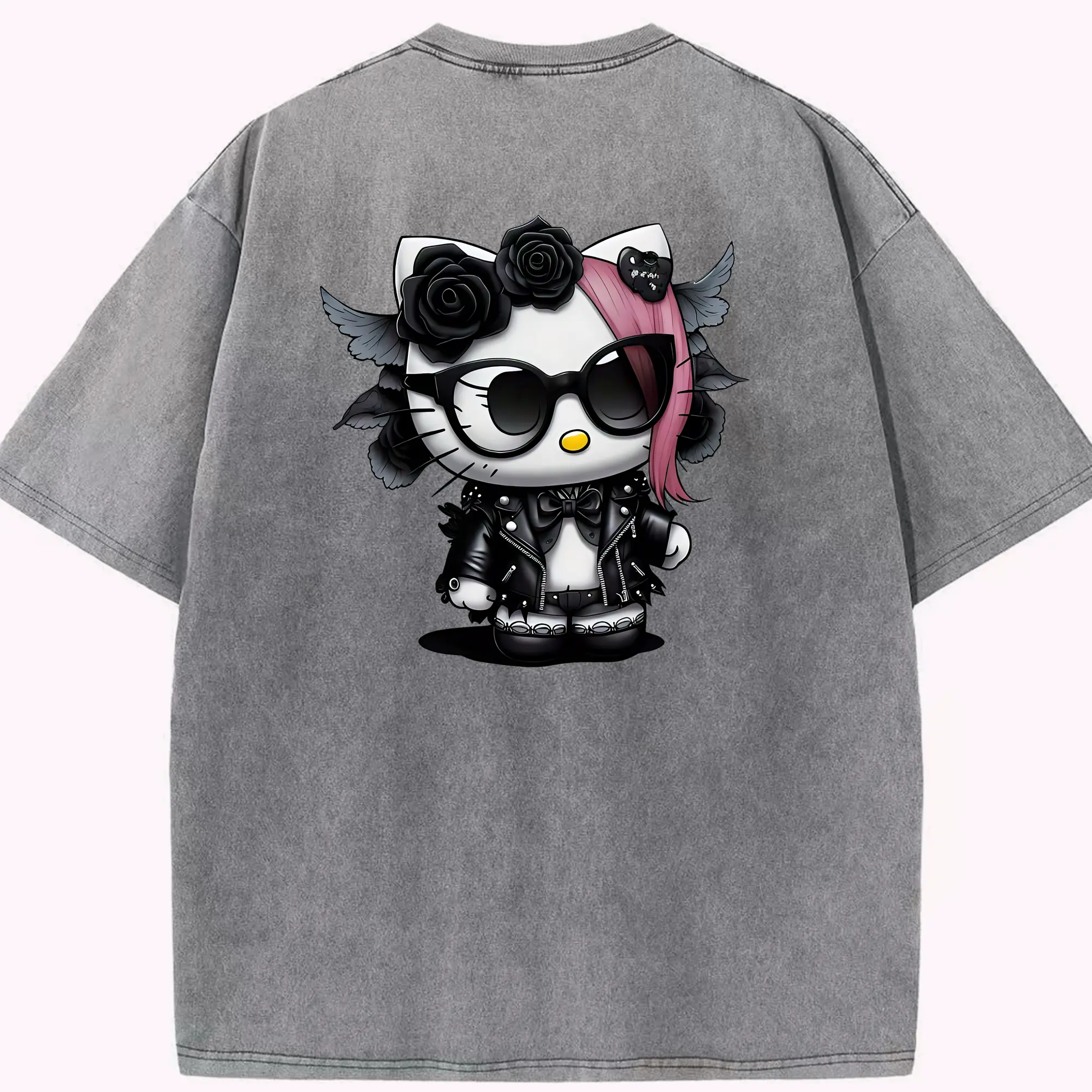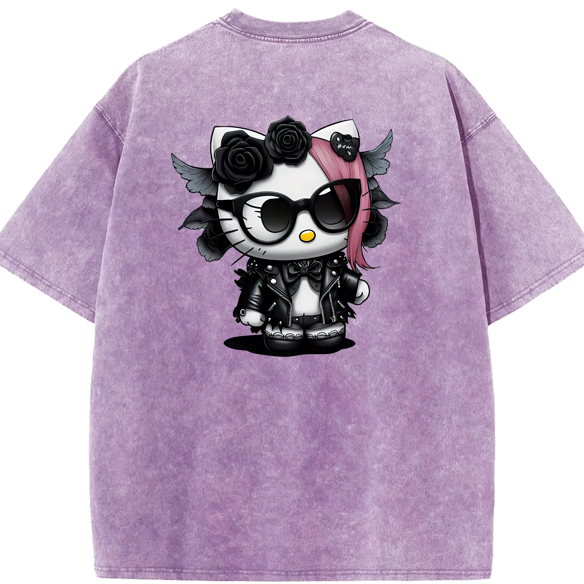 サンリオ グッズ,ハローキティ - 綿100% ヴィンテージ風 半袖Tシャツ ・ 背面プリント ・ 柔らか肌触り ・ 通気性 快適 ・ スポーツ カジュアル 外出用