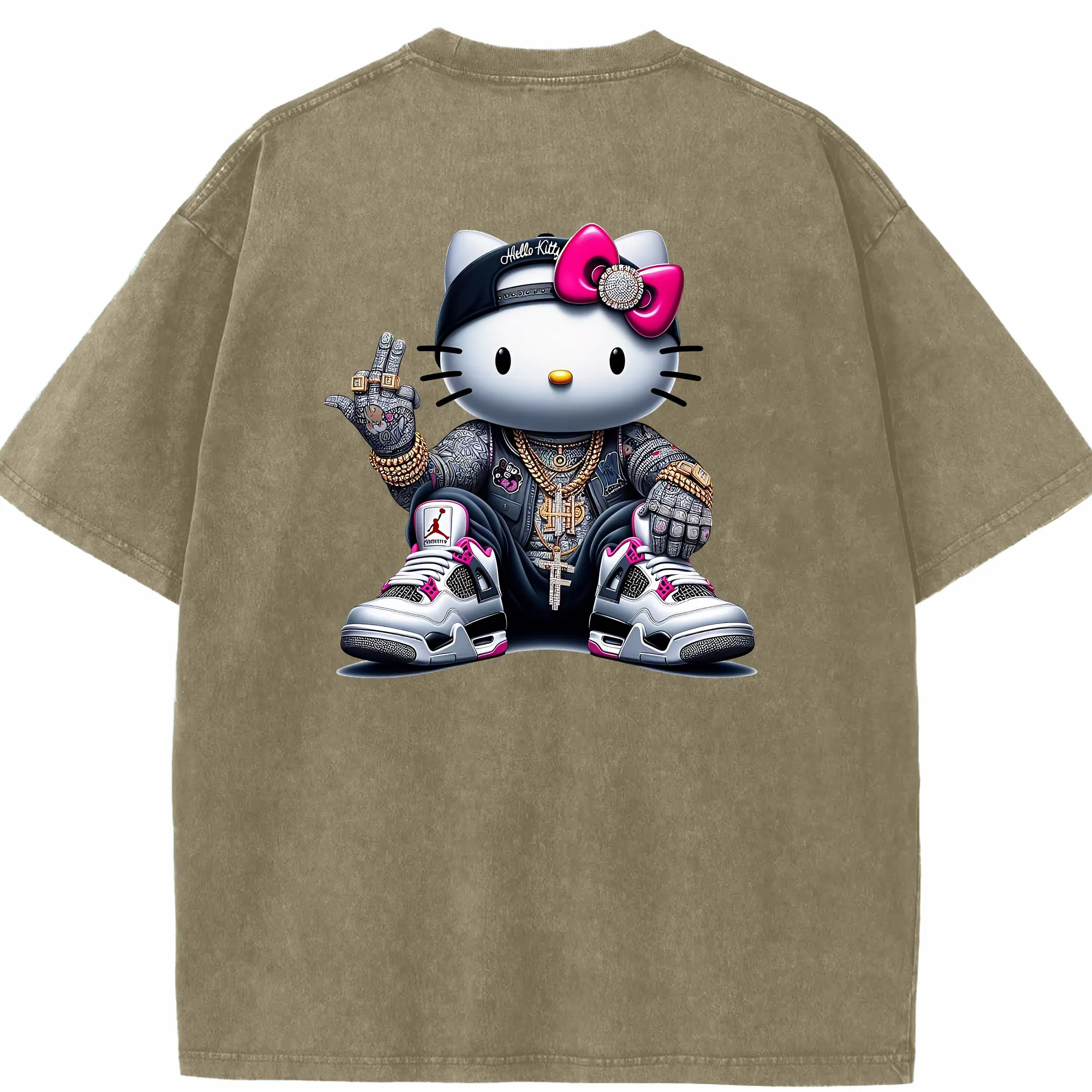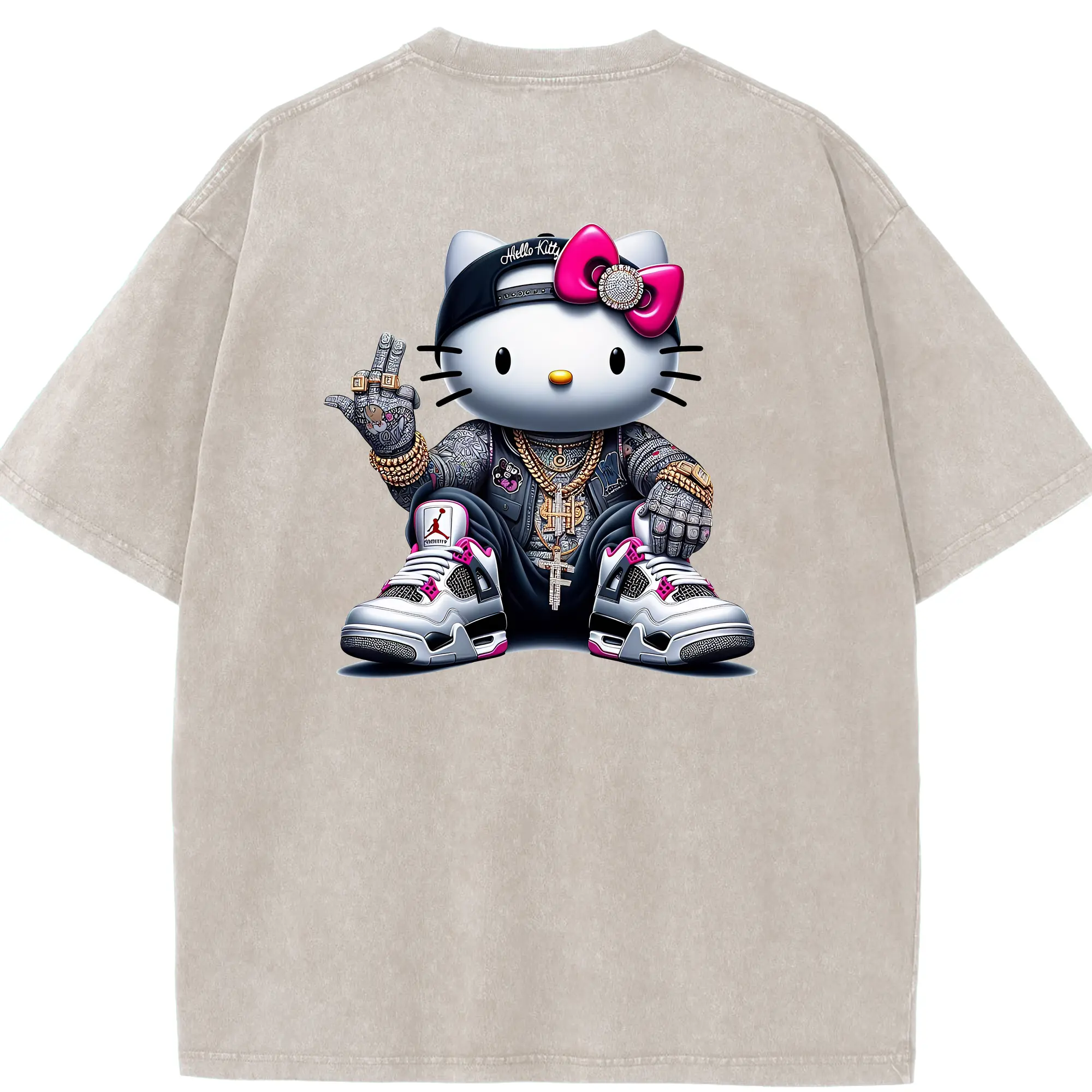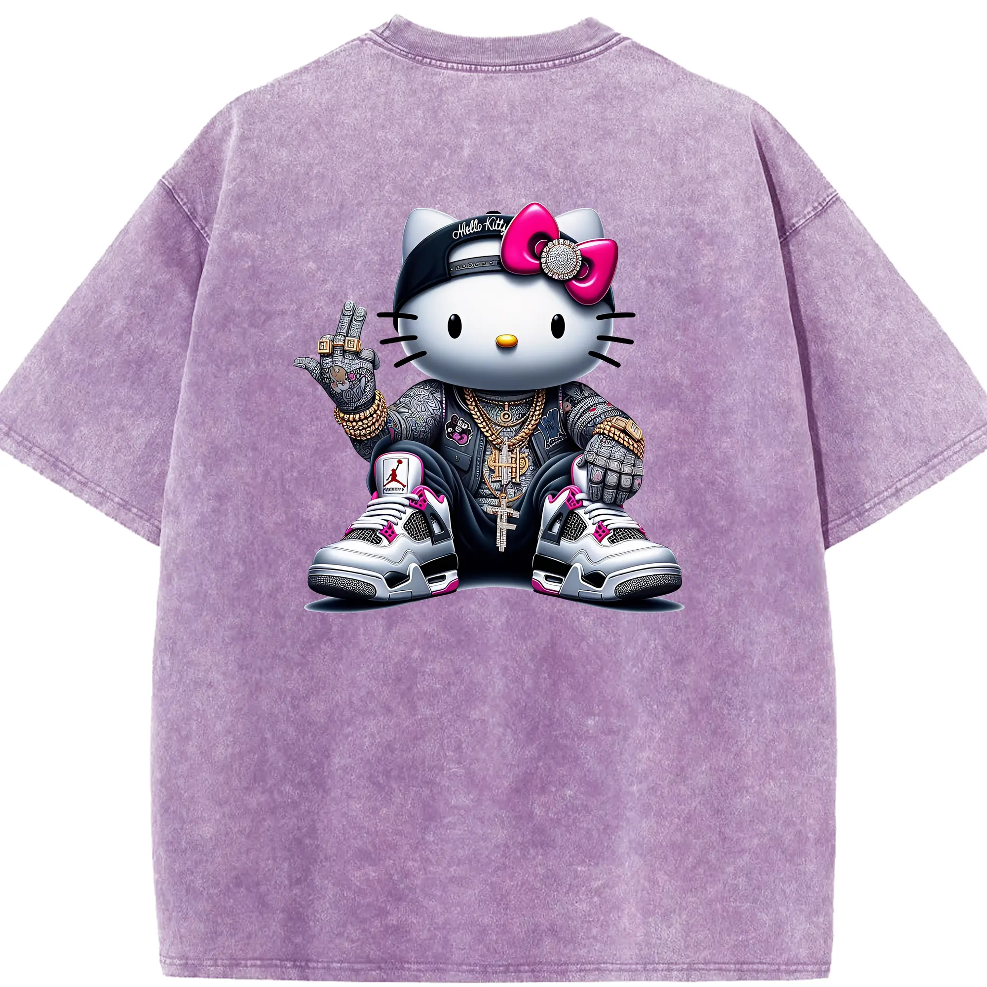 サンリオ グッズ,ハローキティ - 綿100% ヴィンテージ風 半袖Tシャツ ・ フロントプリント ・ 柔らか肌触り ・ 通気性 快適 ・ スポーツ カジュアル 外出用