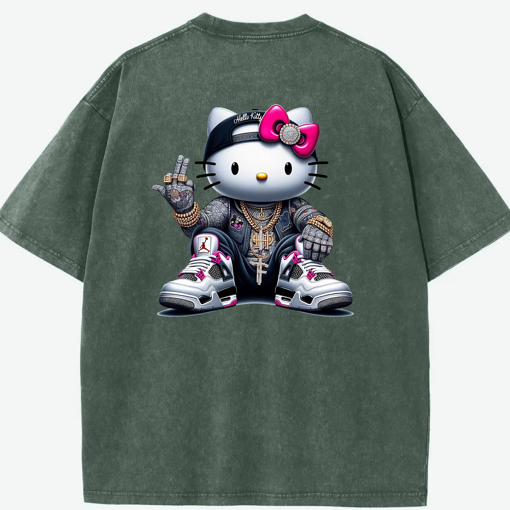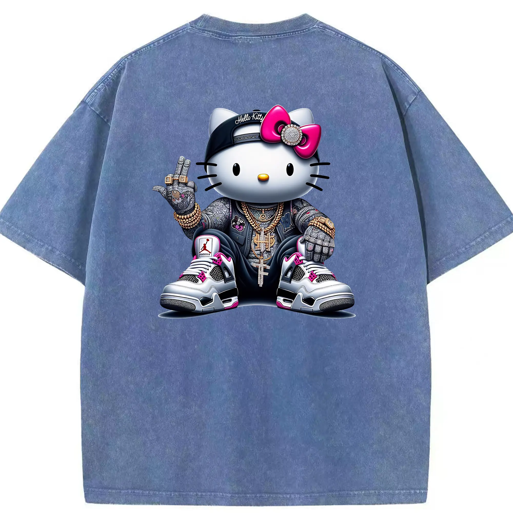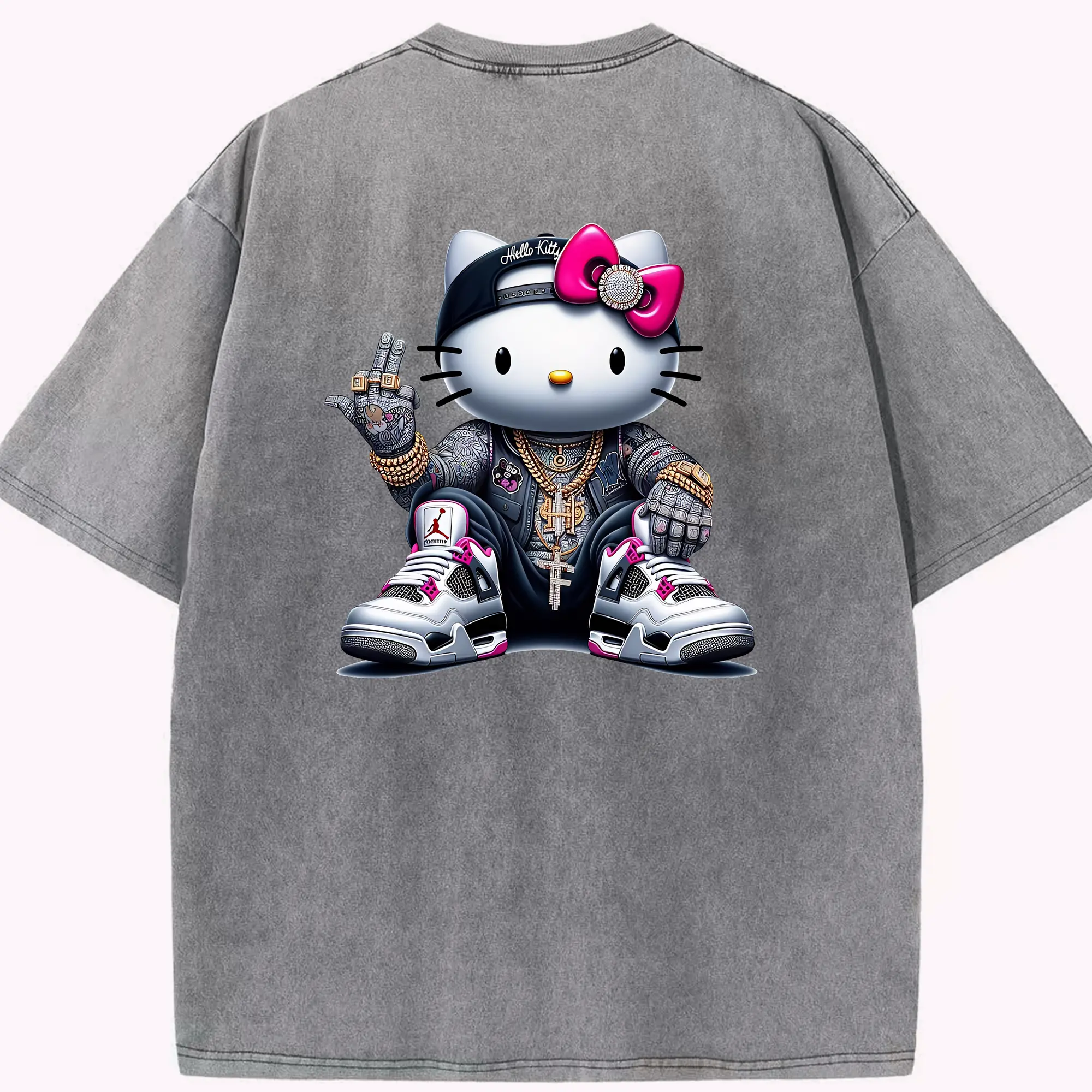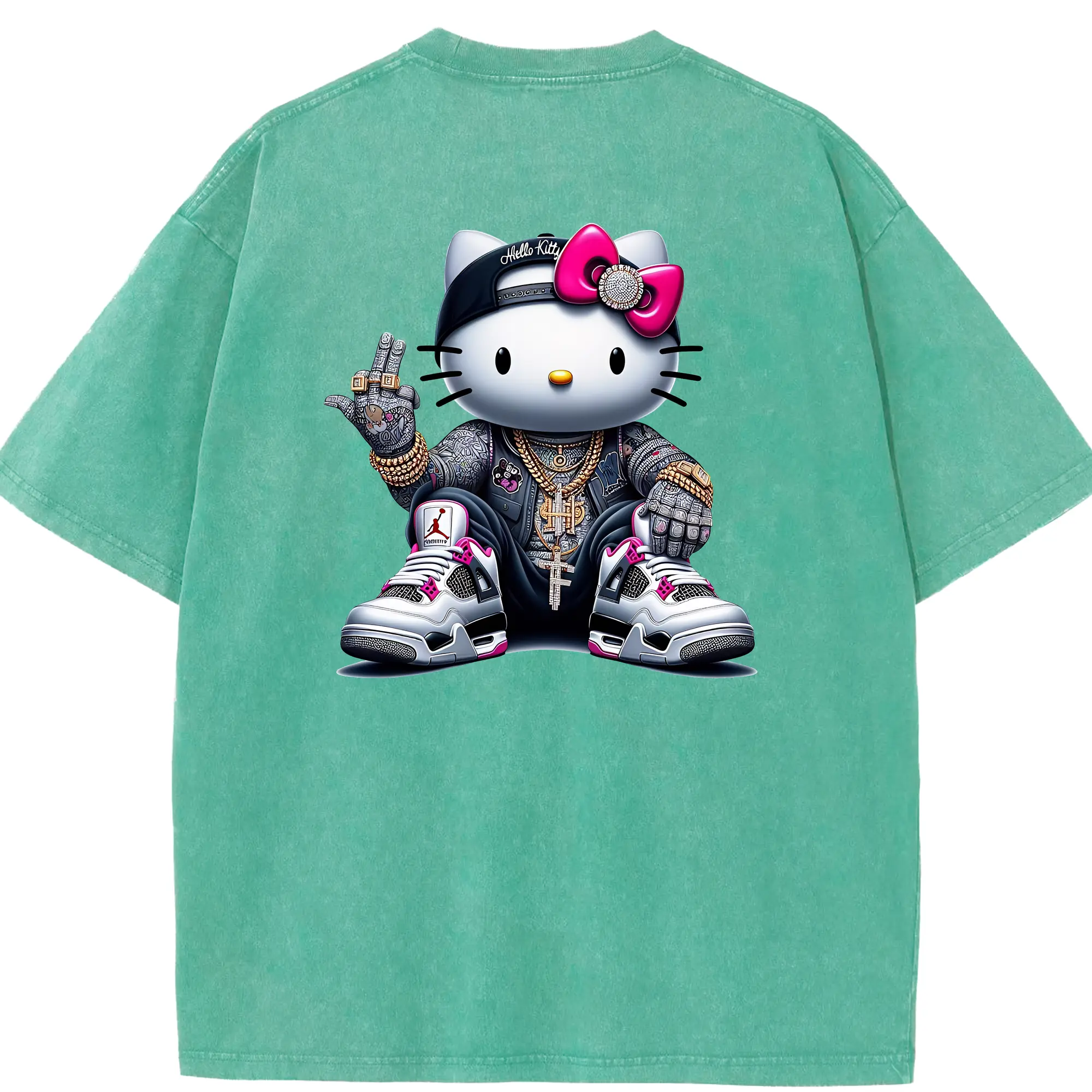サンリオ グッズ,ハローキティ - 綿100% ヴィンテージ風 半袖Tシャツ ・ フロントプリント ・ 柔らか肌触り ・ 通気性 快適 ・ スポーツ カジュアル 外出用