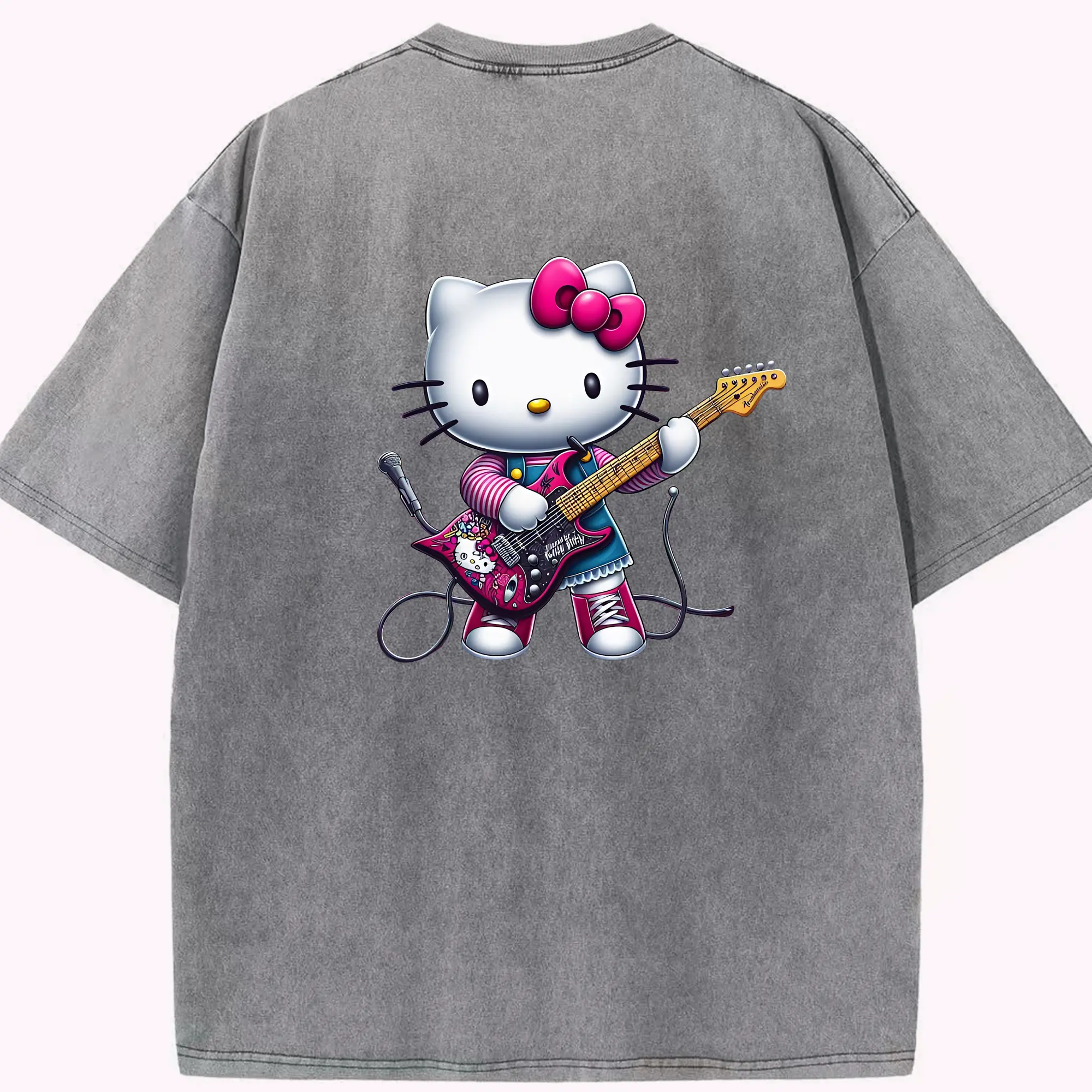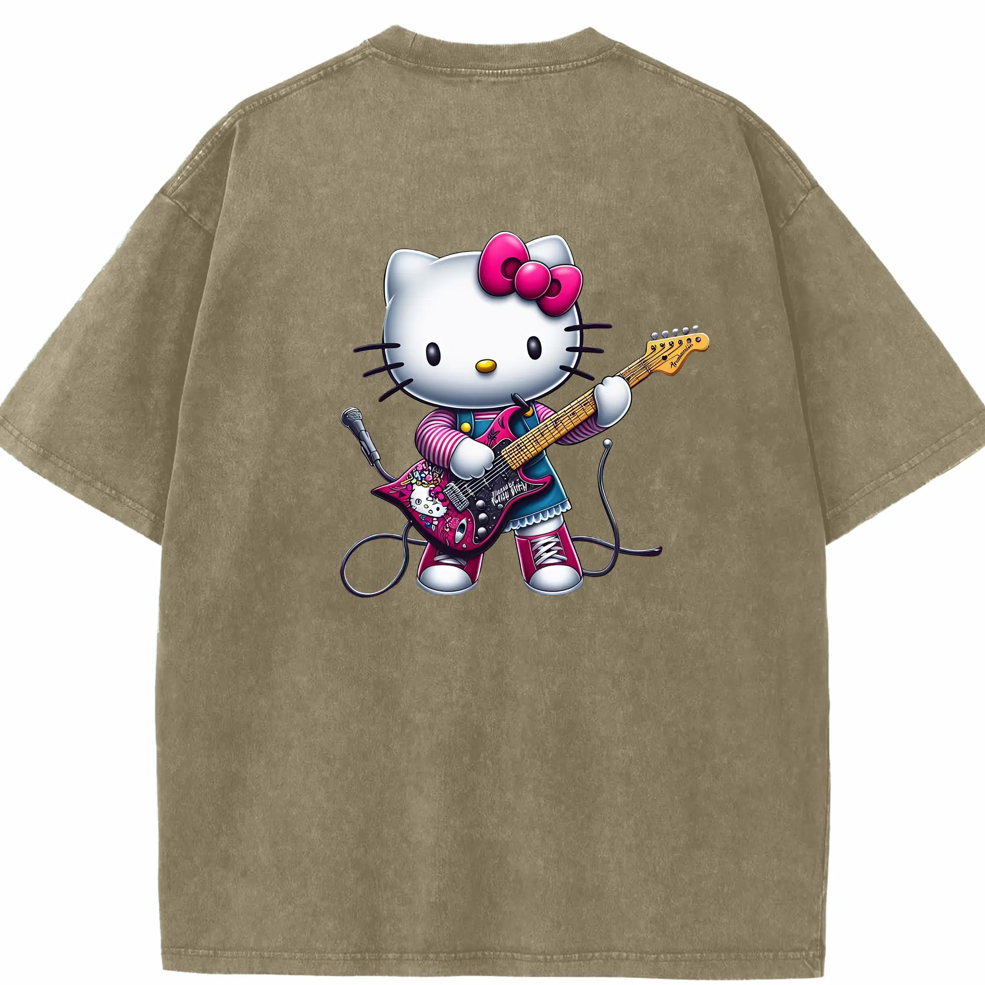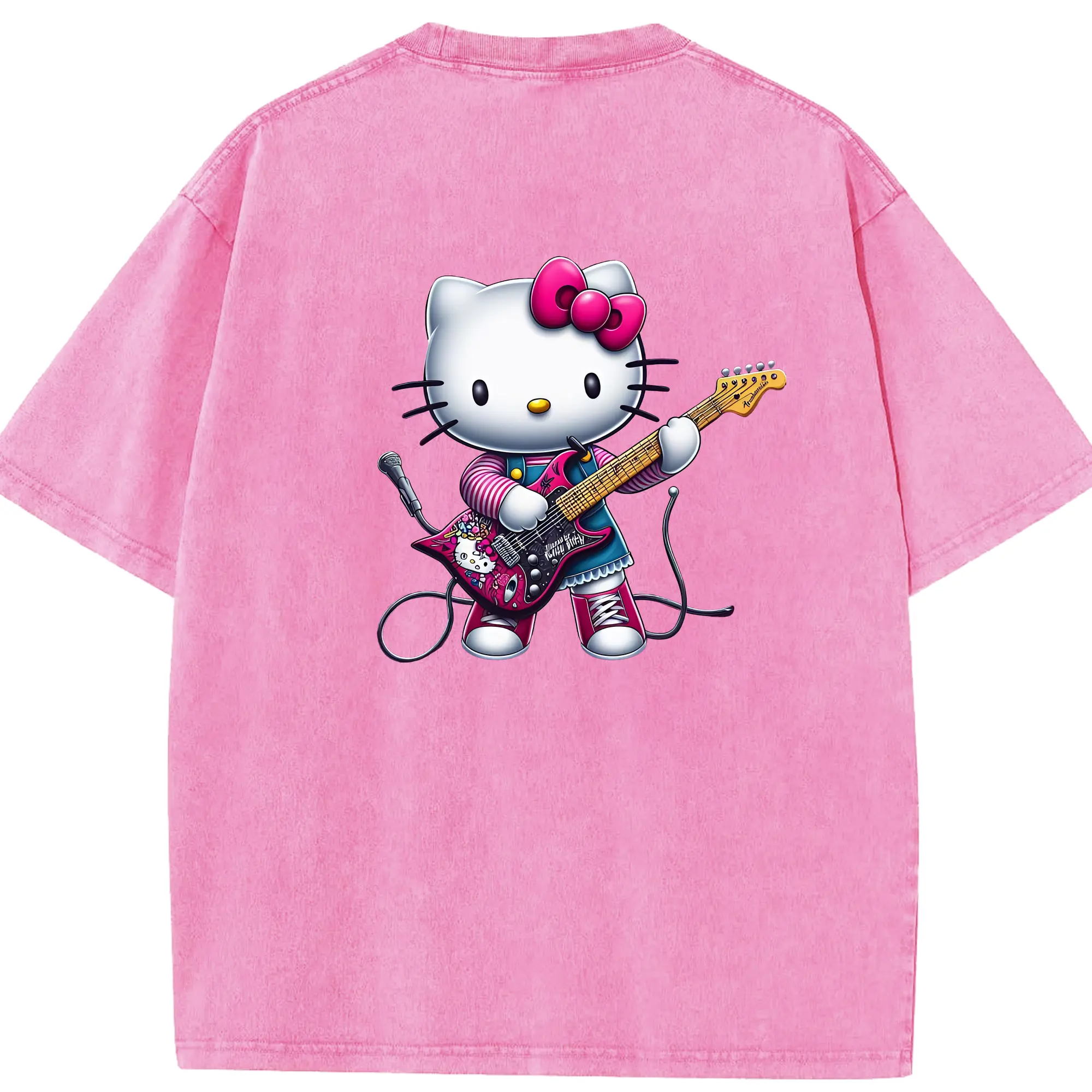 サンリオ グッズ,ハローキティ - 綿100% ヴィンテージ風 半袖Tシャツ ・ フロントプリント ・ 柔らか肌触り ・ 通気性 快適 ・ スポーツ カジュアル 外出用