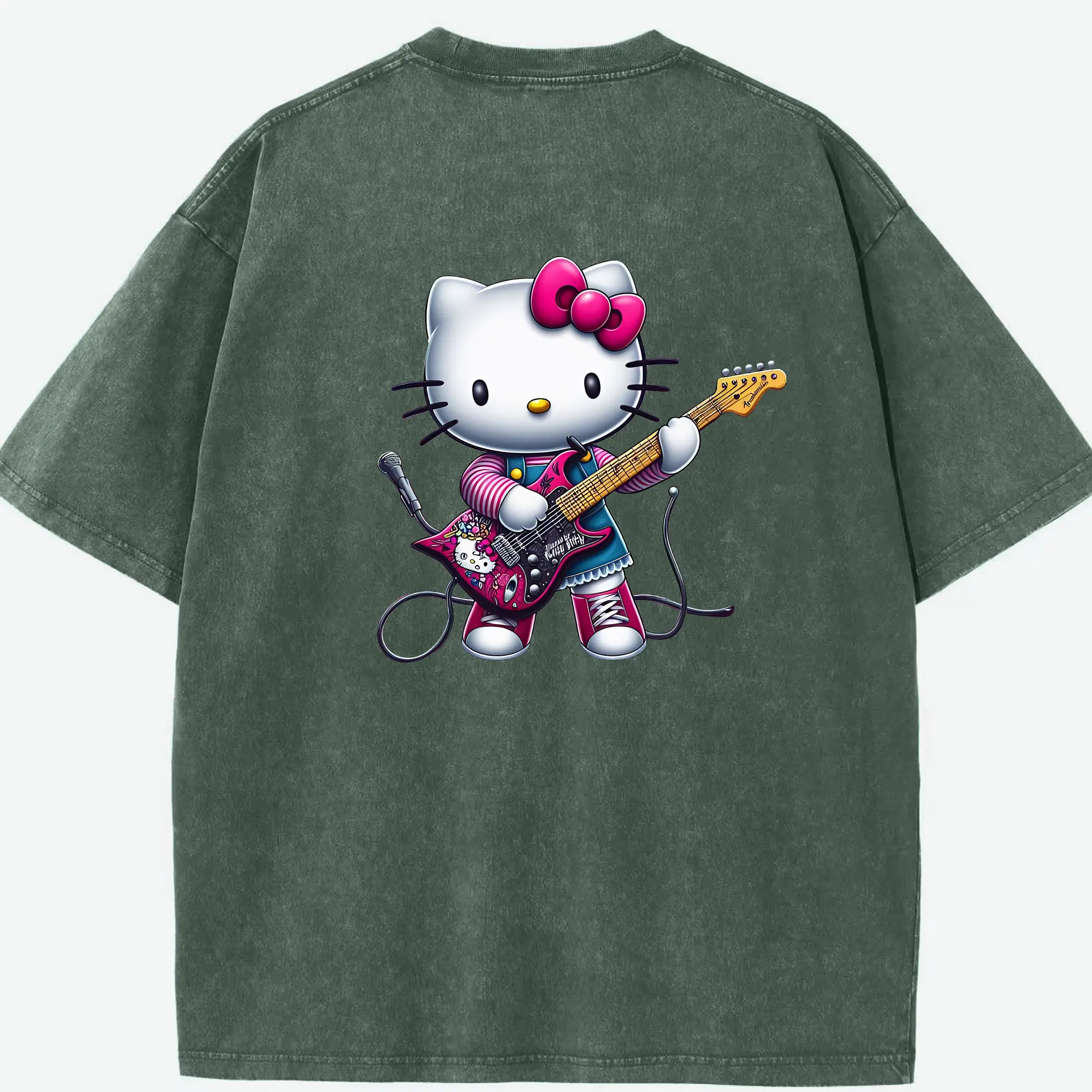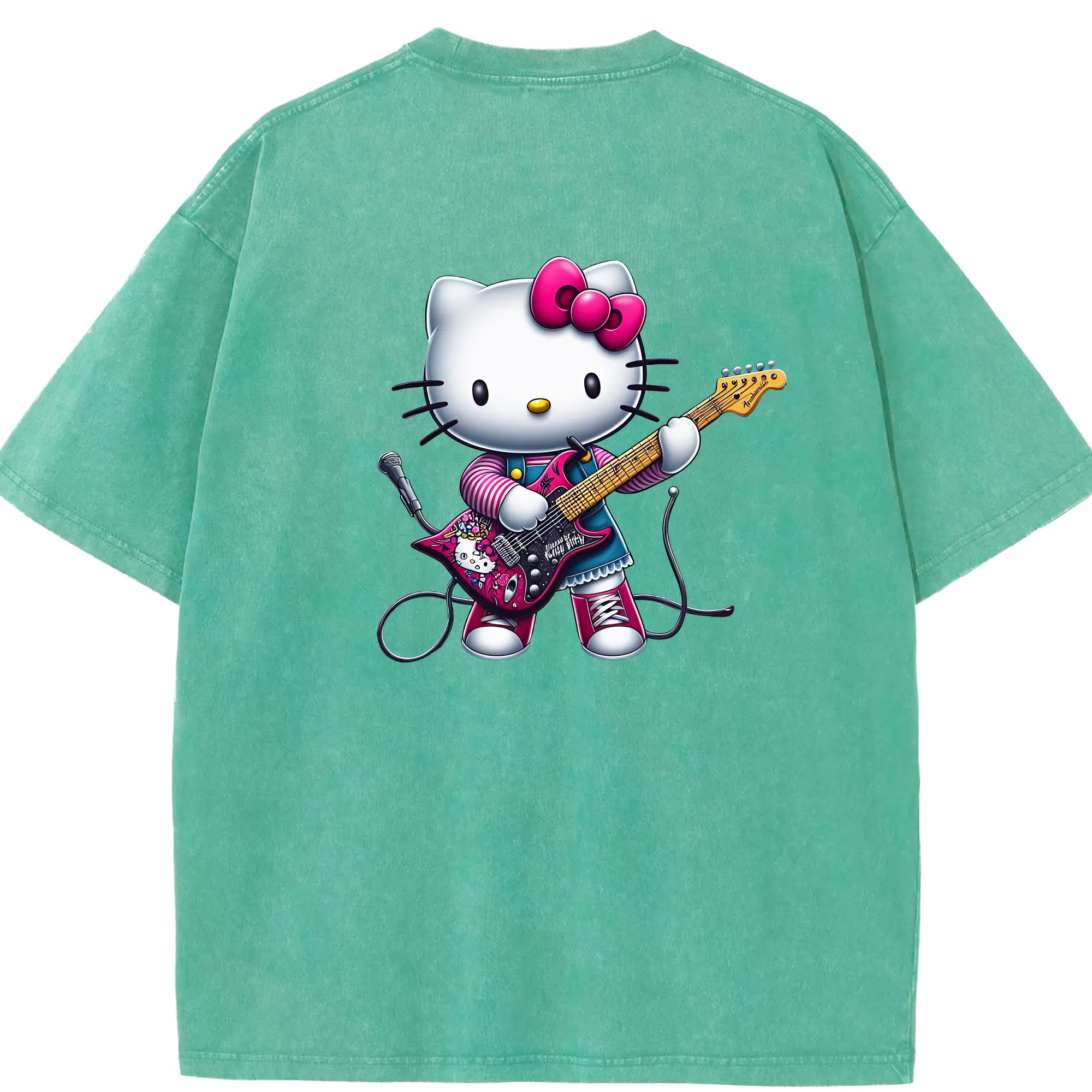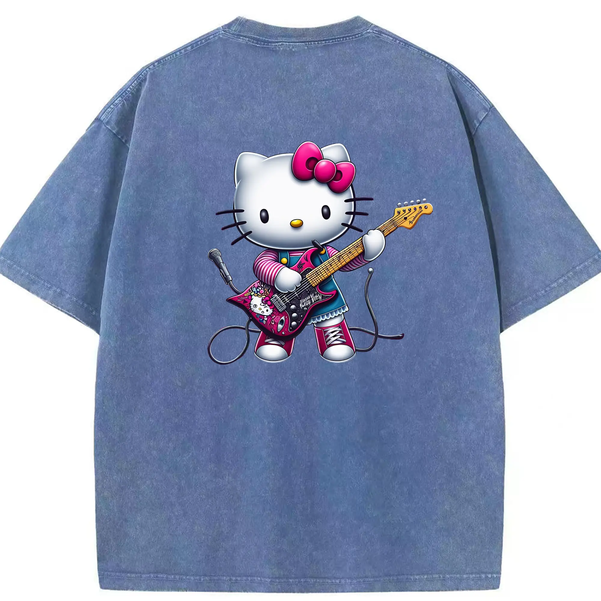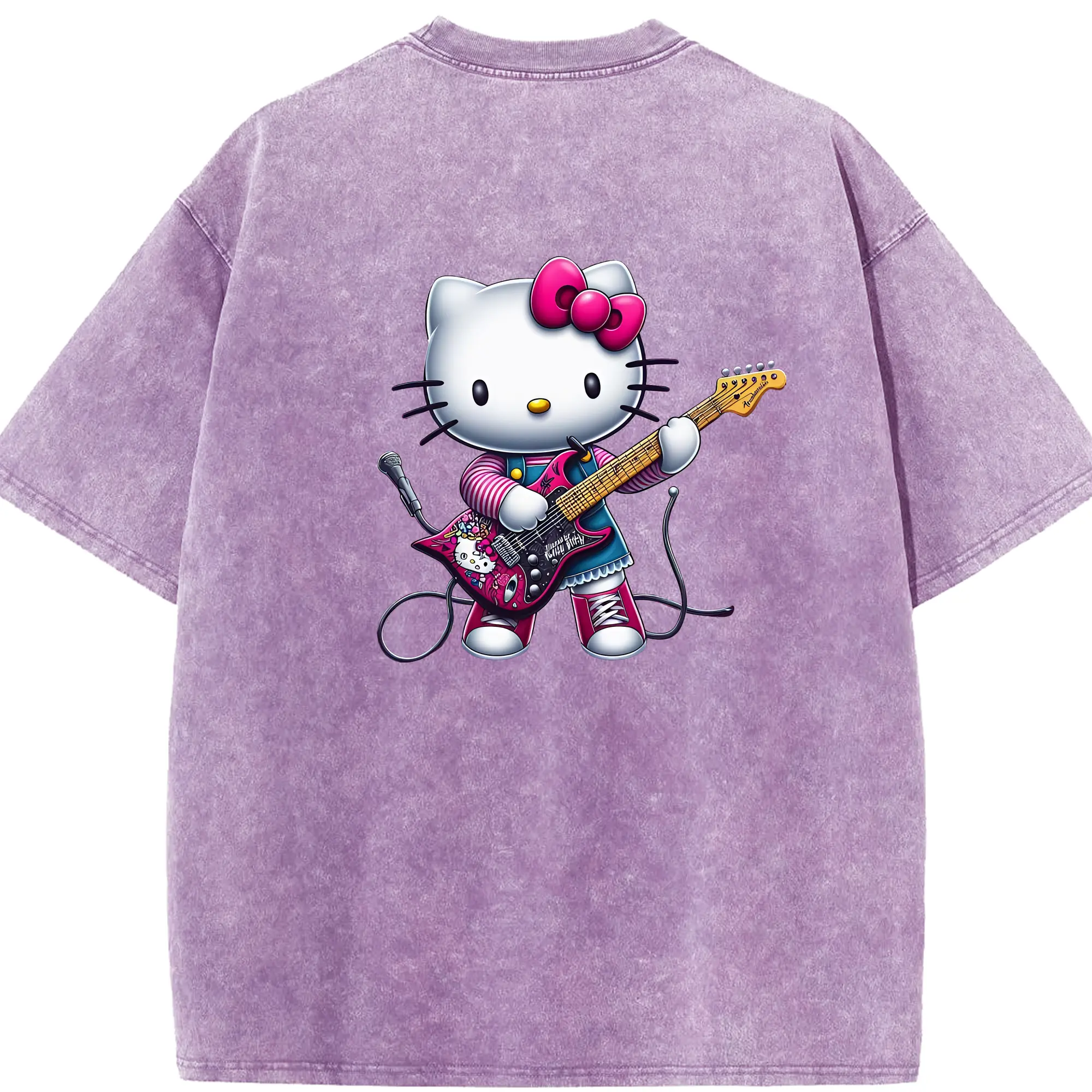 サンリオ グッズ,ハローキティ - 綿100% ヴィンテージ風 半袖Tシャツ ・ フロントプリント ・ 柔らか肌触り ・ 通気性 快適 ・ スポーツ カジュアル 外出用
