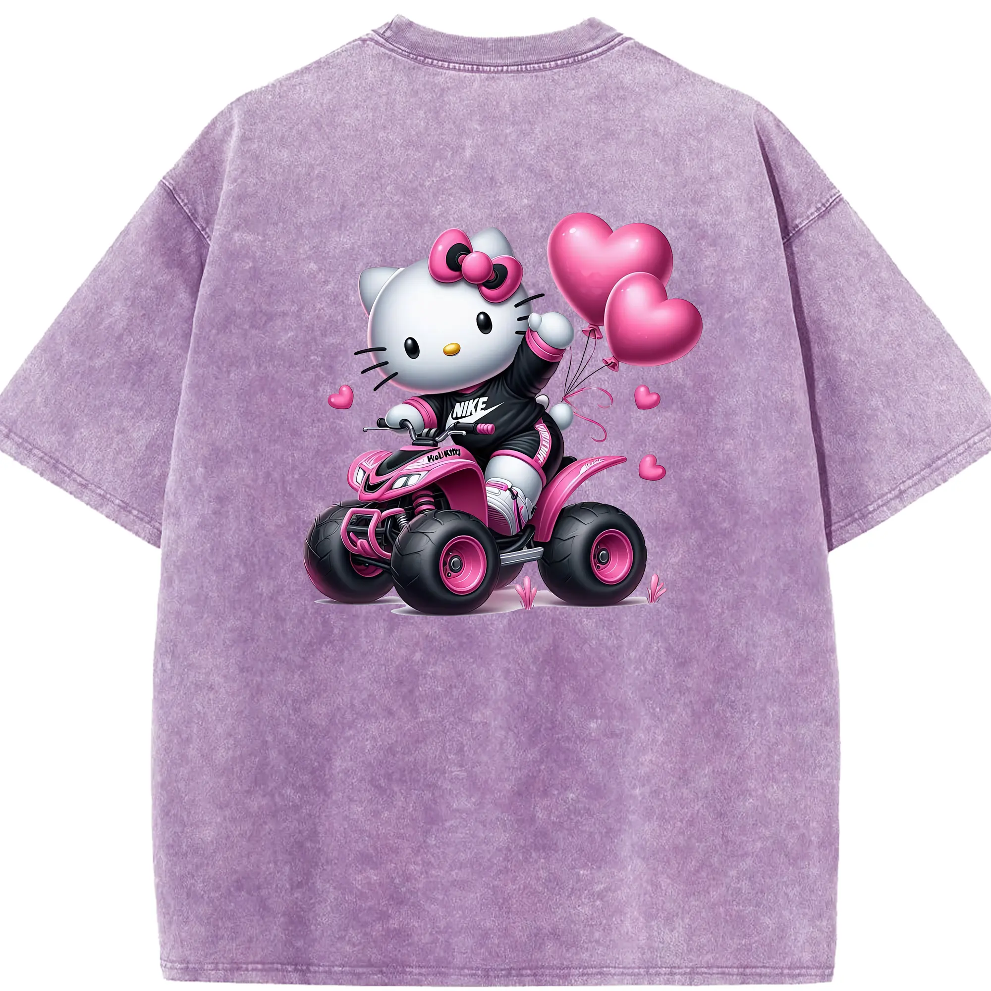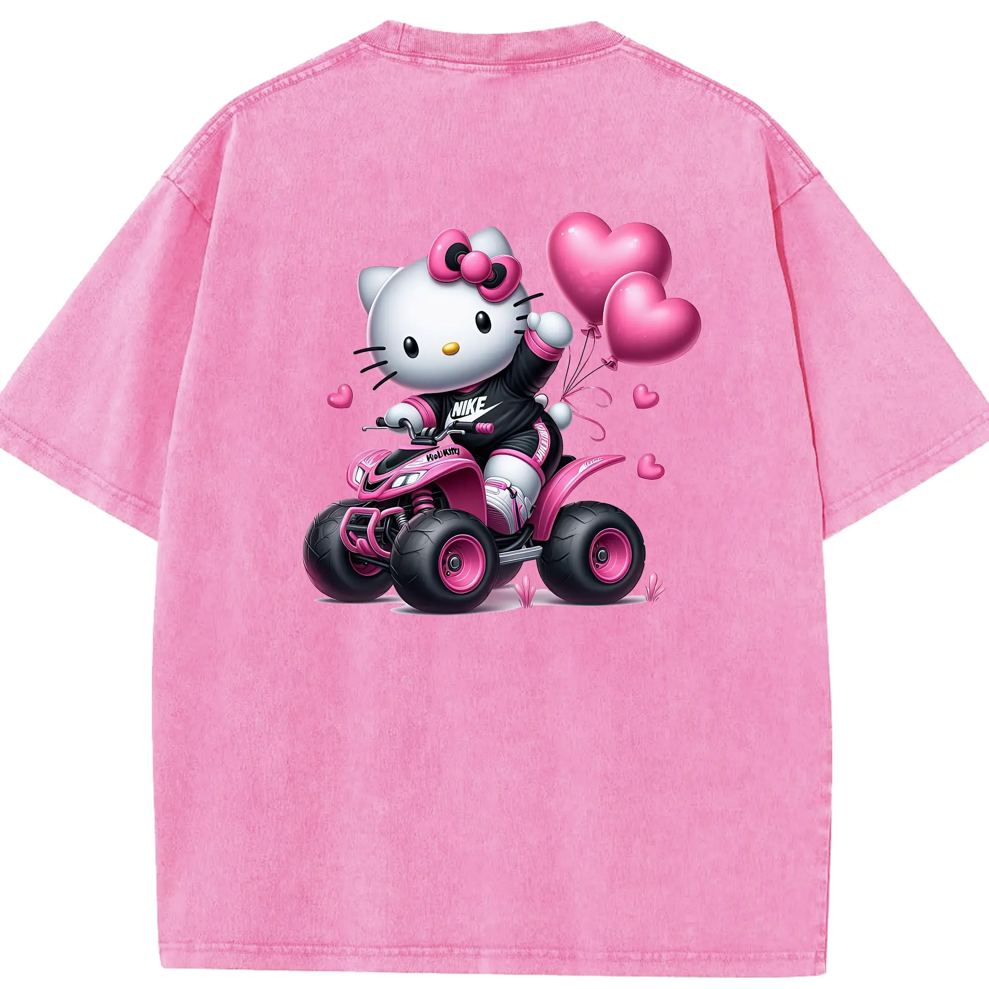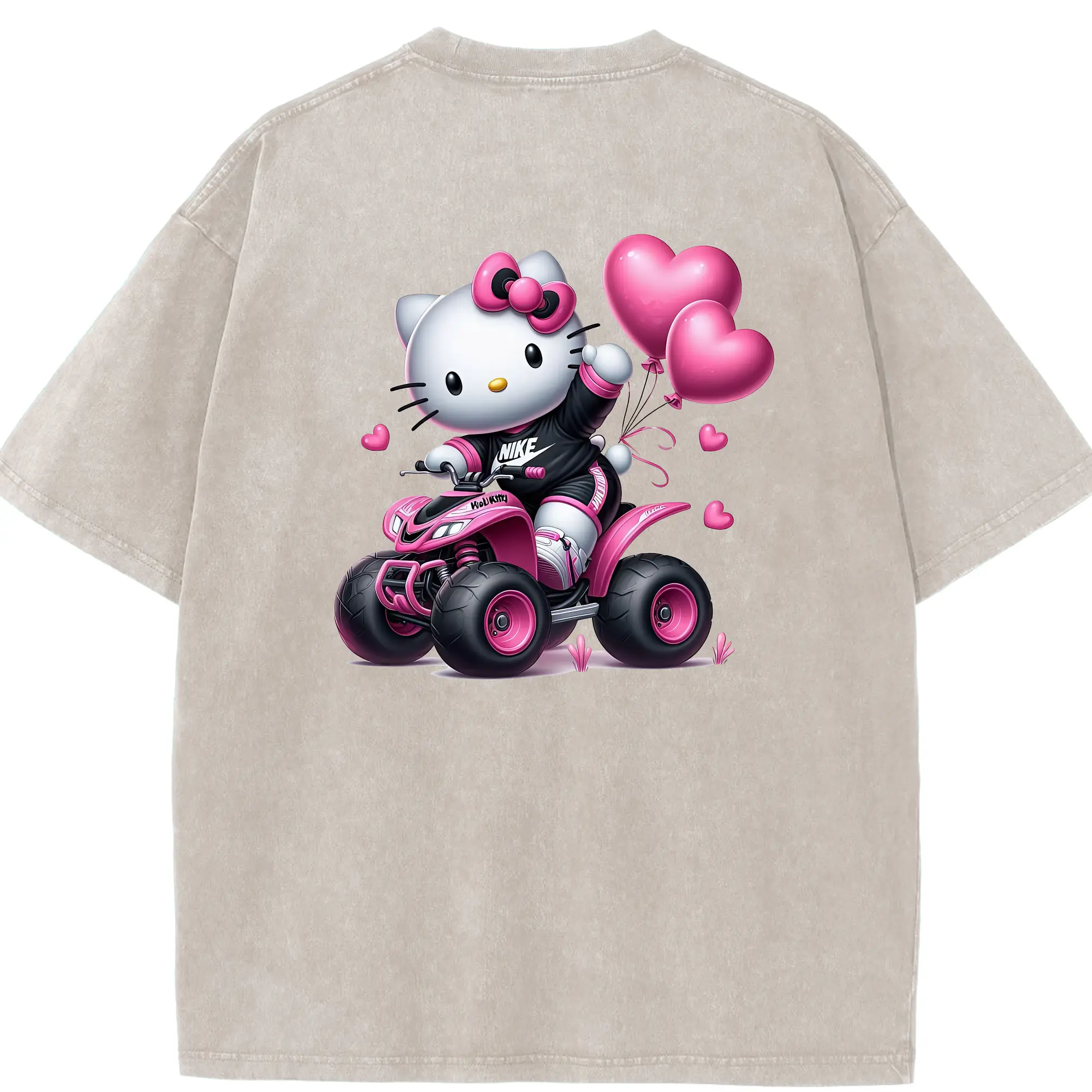 サンリオ グッズ,ハローキティ - 綿100% ヴィンテージ風 半袖Tシャツ ・ 背面プリント ・ 柔らか肌触り ・ 通気性 快適 ・ スポーツ カジュアル 外出用