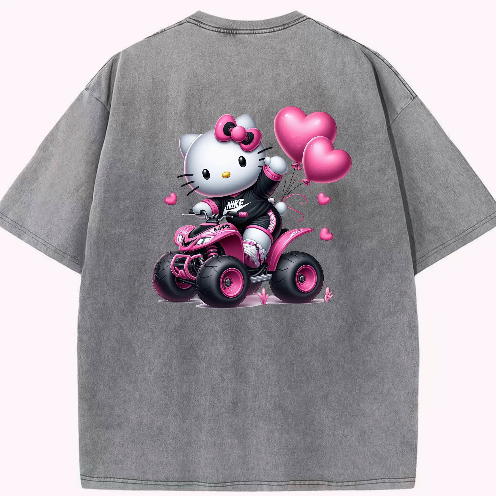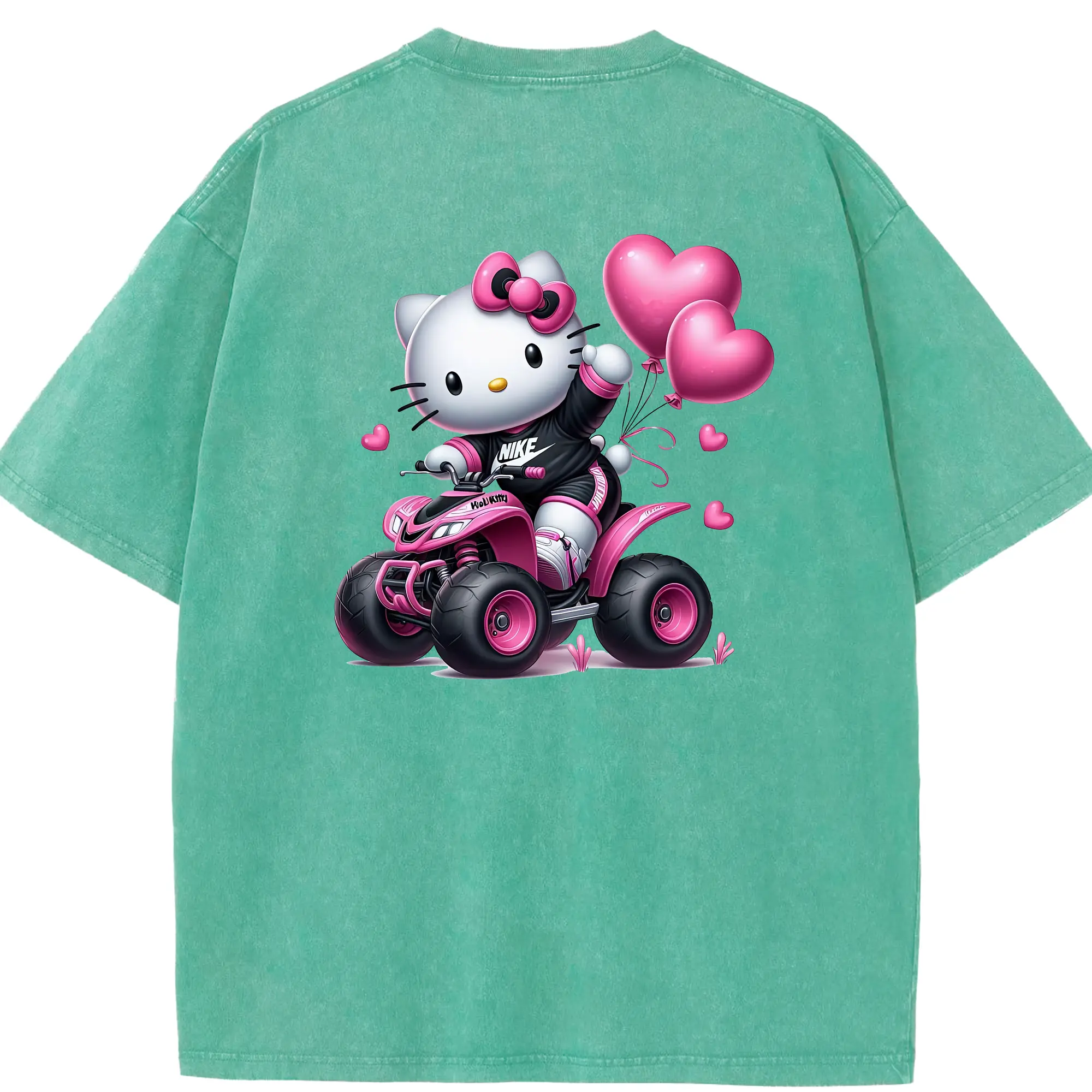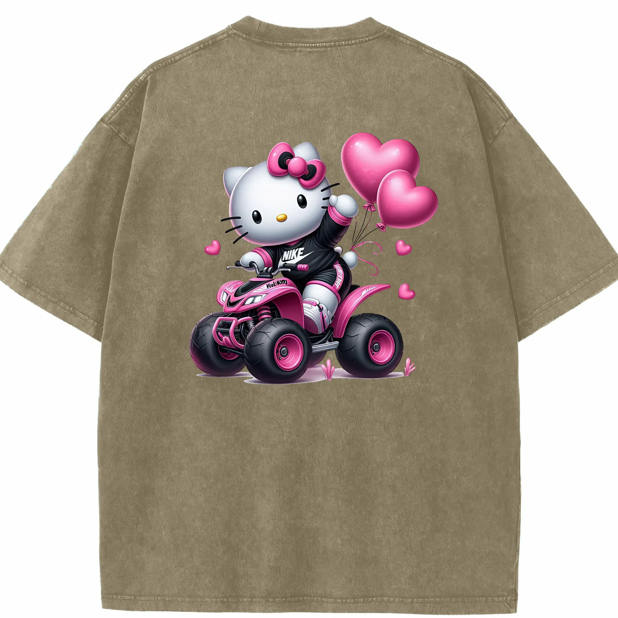 サンリオ グッズ,ハローキティ - 綿100% ヴィンテージ風 半袖Tシャツ ・ 背面プリント ・ 柔らか肌触り ・ 通気性 快適 ・ スポーツ カジュアル 外出用