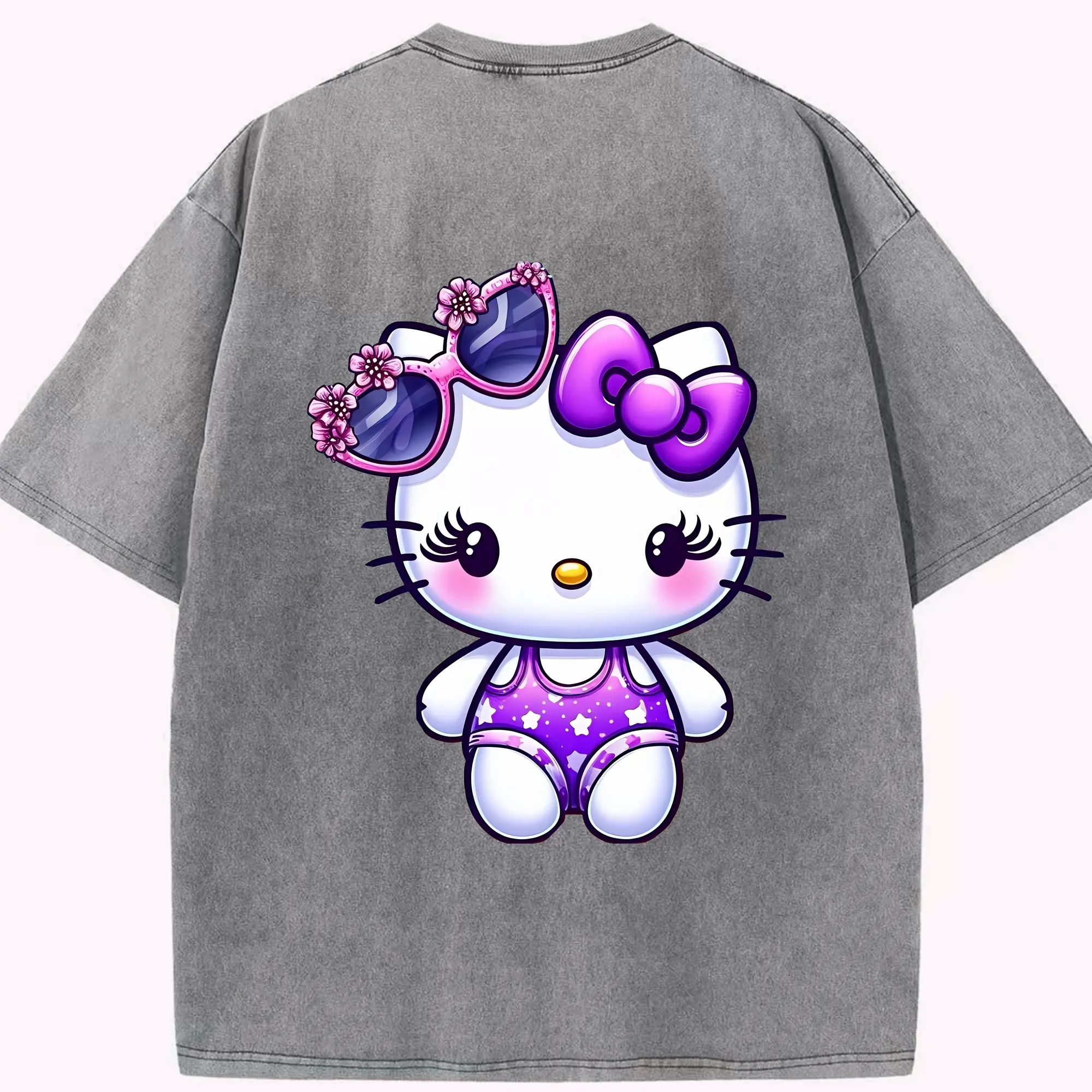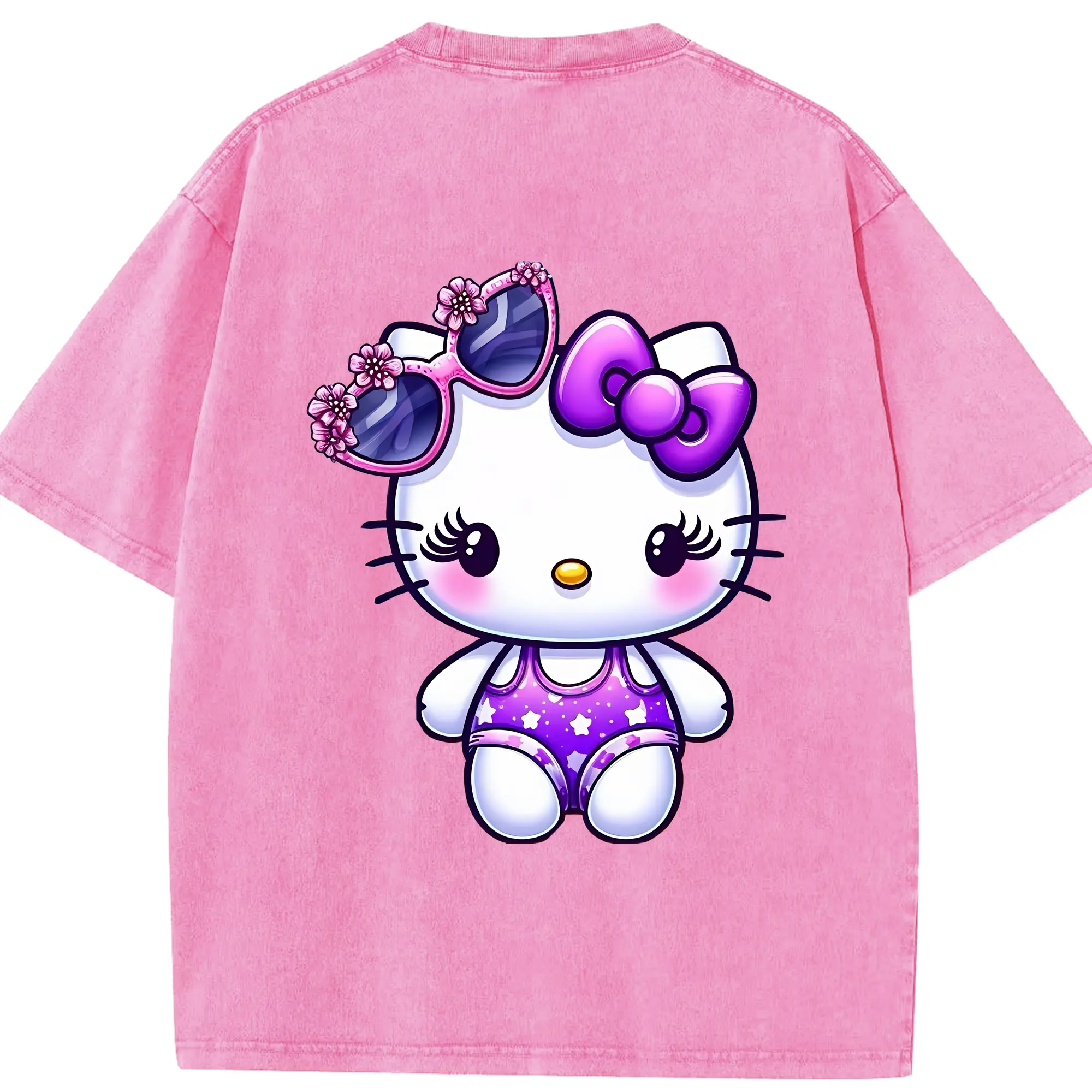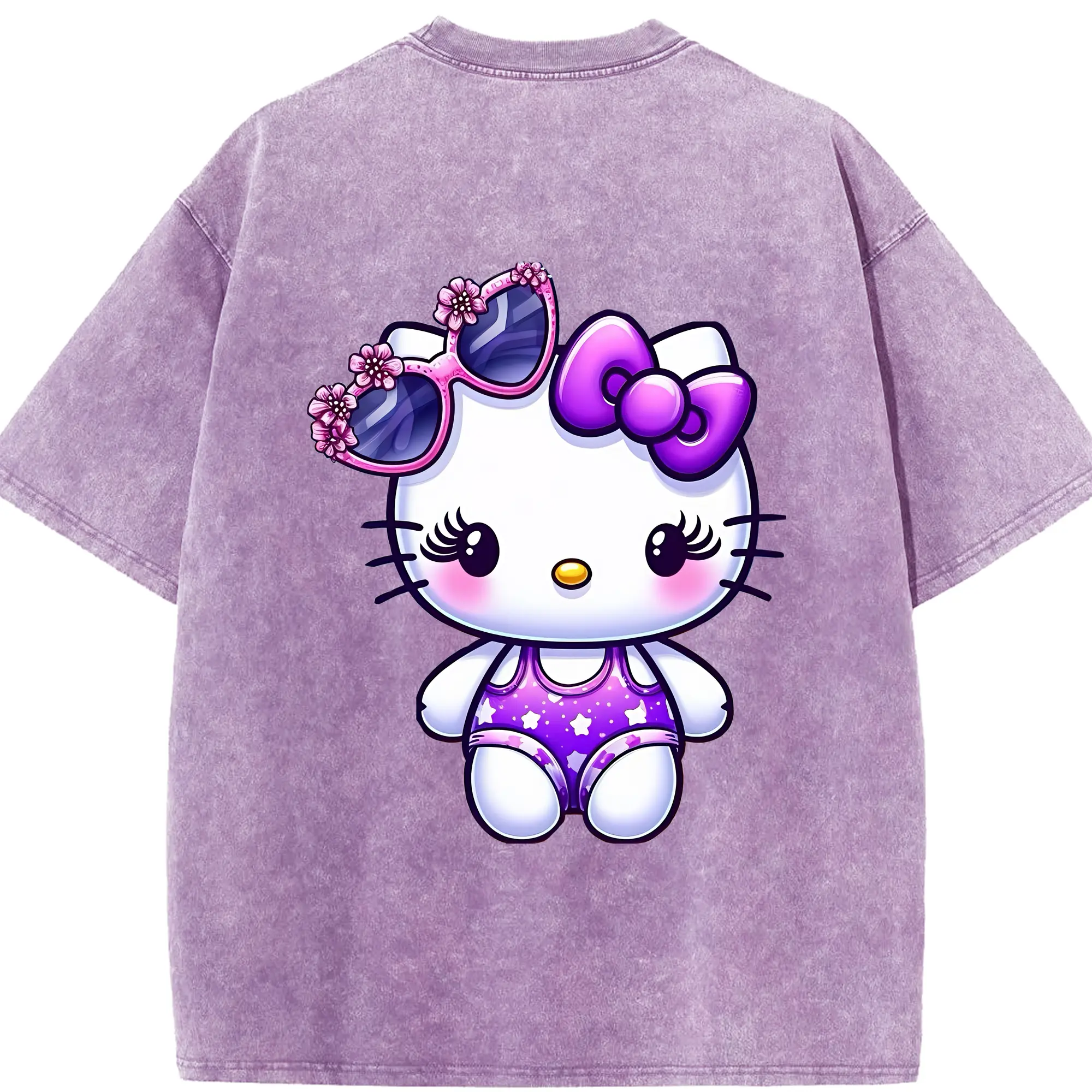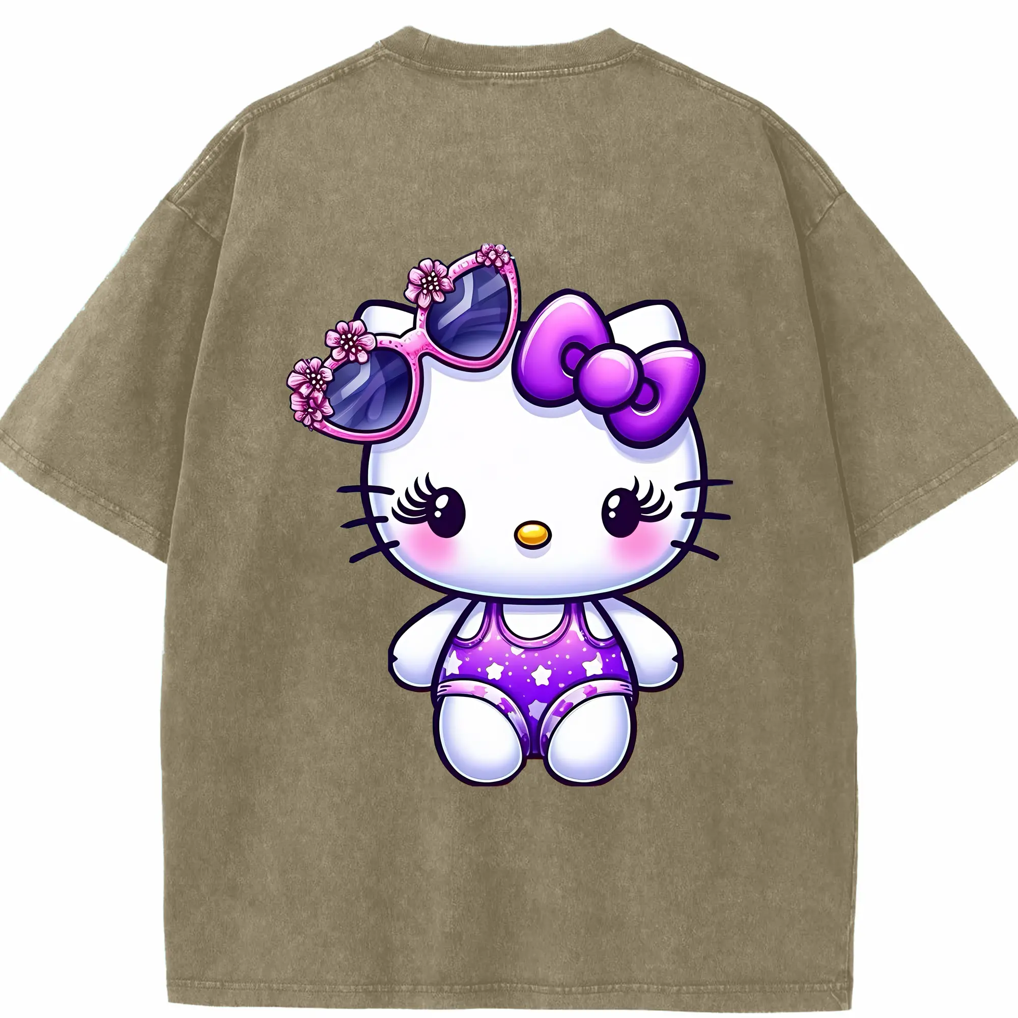 サンリオ グッズ,ハローキティ - 綿100% ヴィンテージ風 半袖Tシャツ ・ フロントプリント ・ 柔らか肌触り ・ 通気性 快適 ・ スポーツ カジュアル 外出用