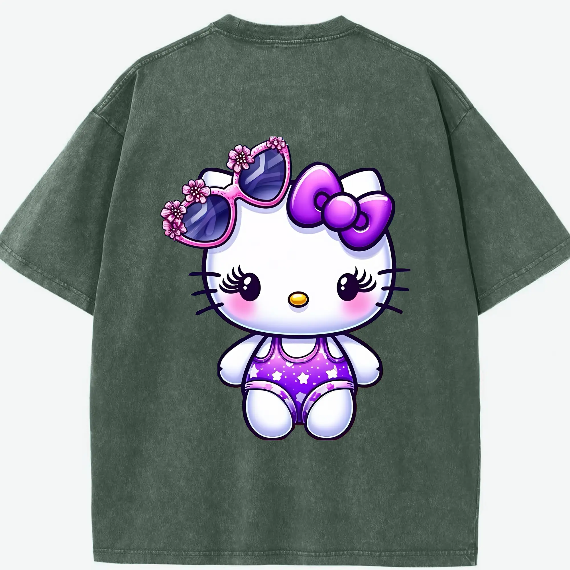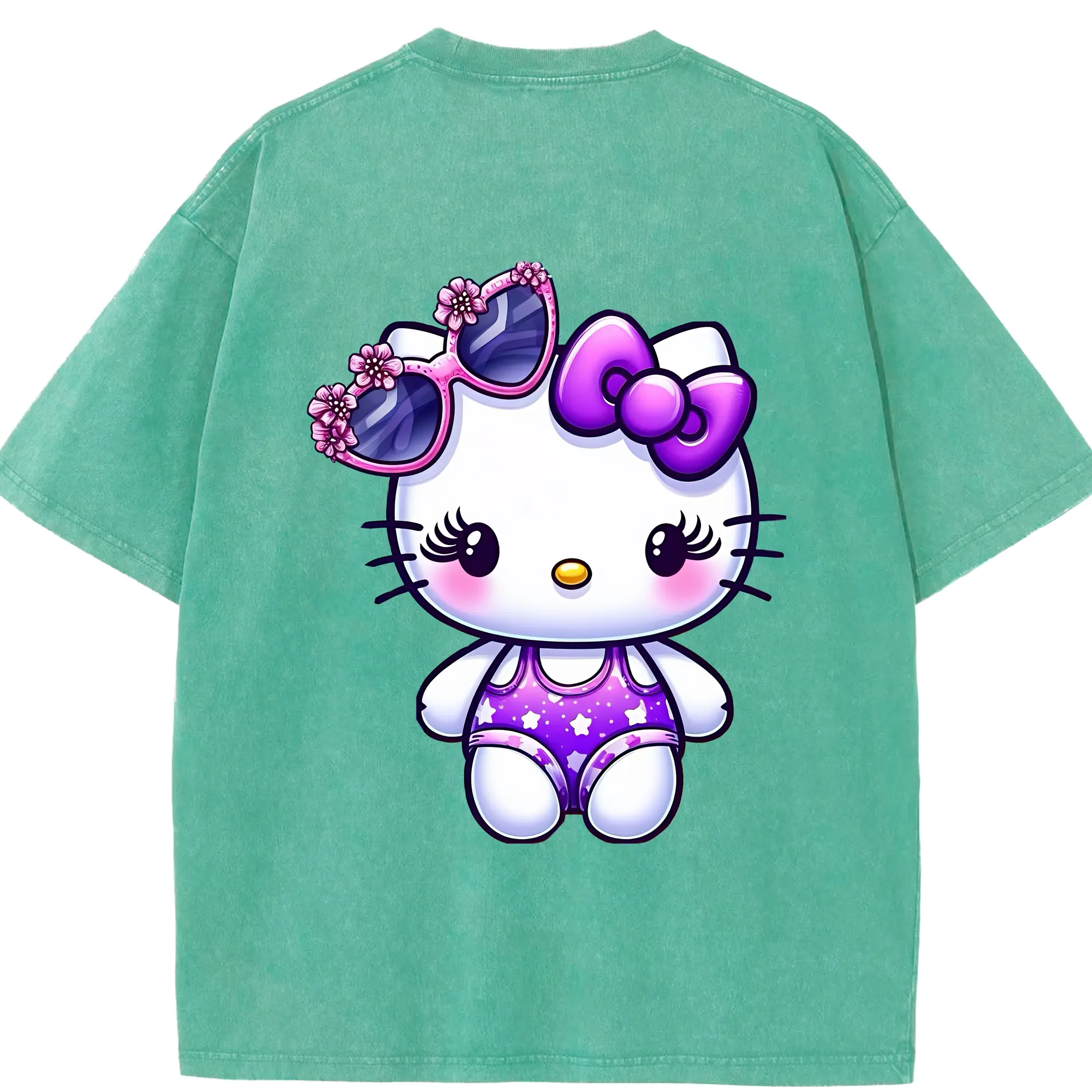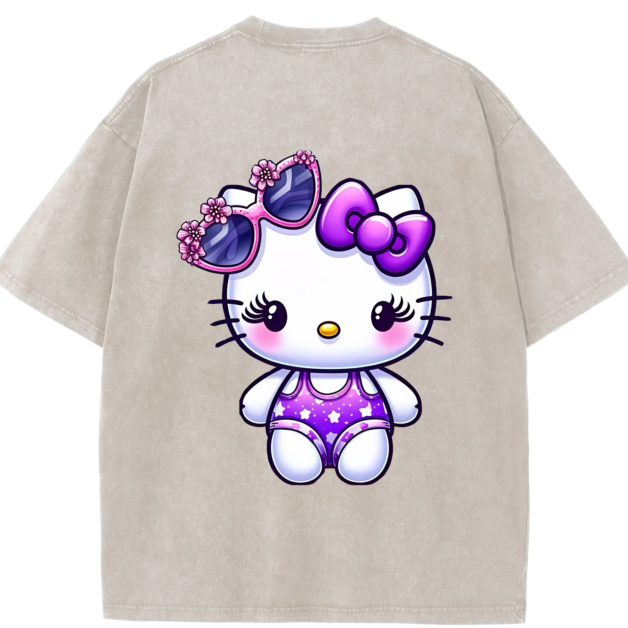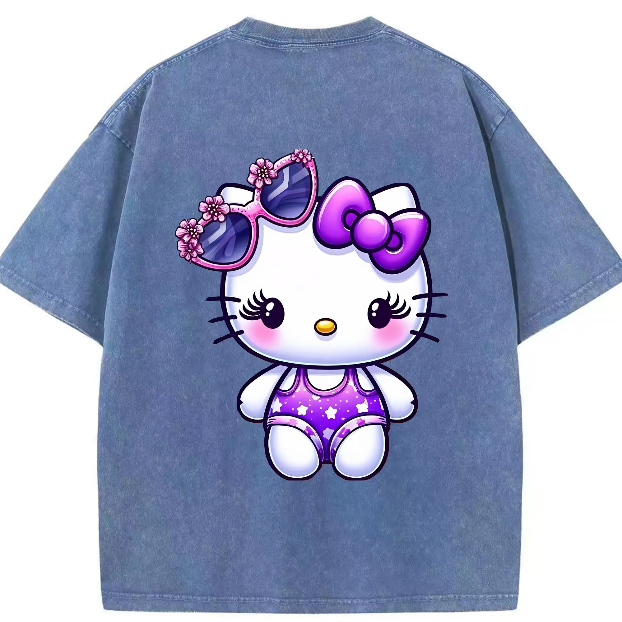 サンリオ グッズ,ハローキティ - 綿100% ヴィンテージ風 半袖Tシャツ ・ フロントプリント ・ 柔らか肌触り ・ 通気性 快適 ・ スポーツ カジュアル 外出用