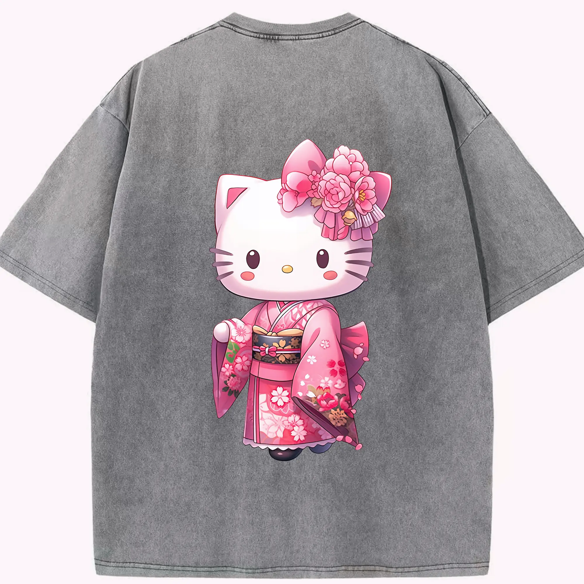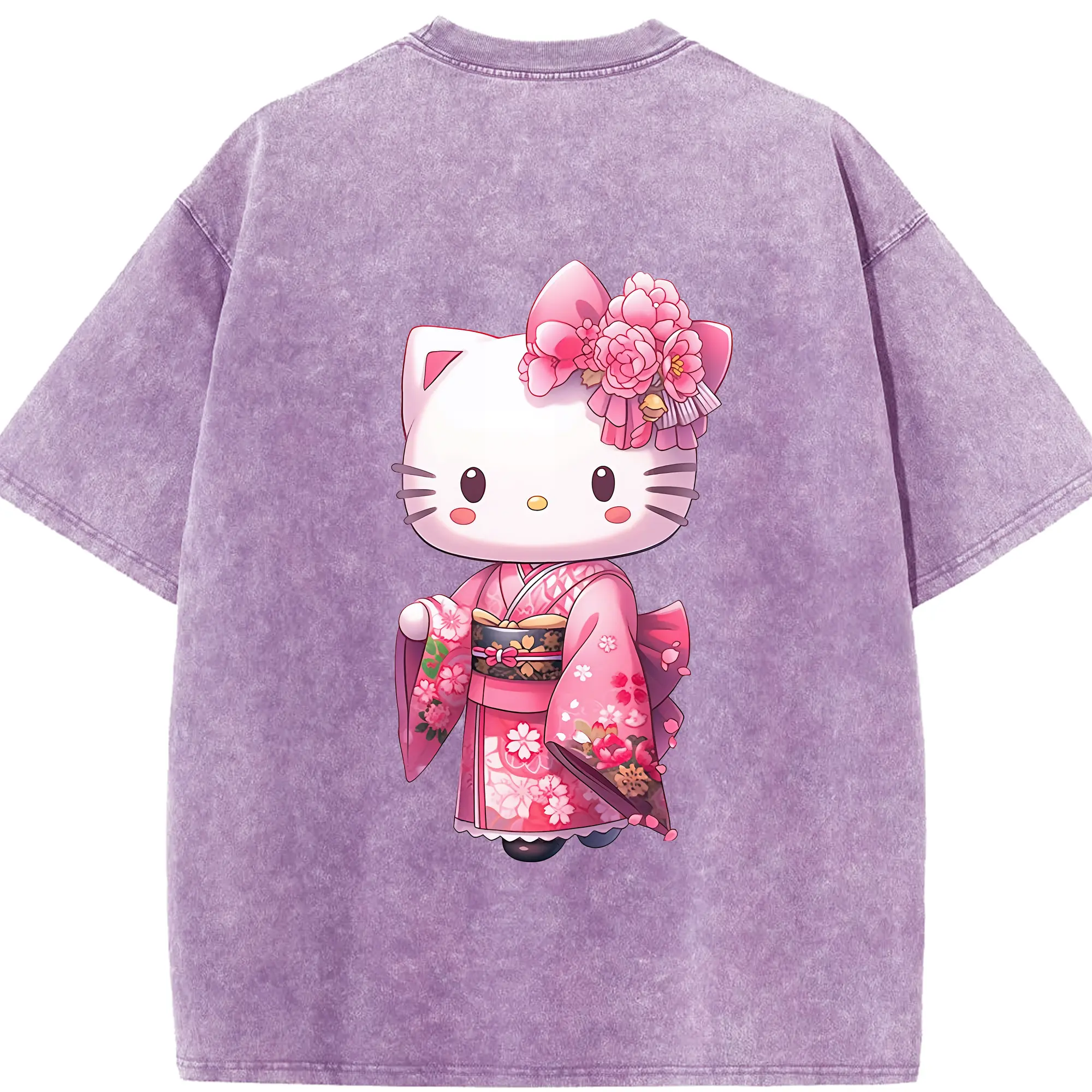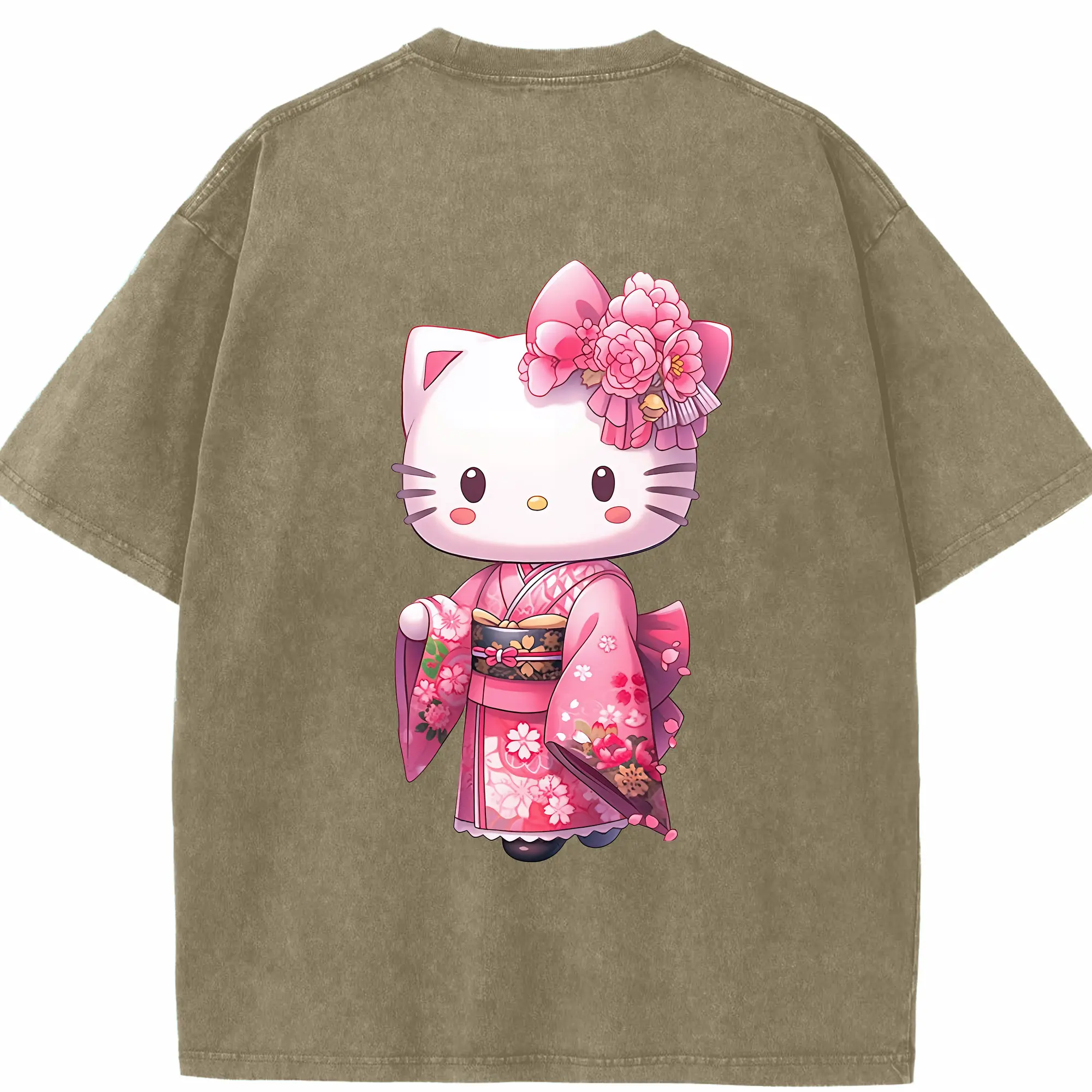 サンリオ グッズ,ハローキティ - 綿100% ヴィンテージ風 半袖Tシャツ ・ フロントプリント ・ 柔らか肌触り ・ 通気性 快適 ・ スポーツ カジュアル 外出用