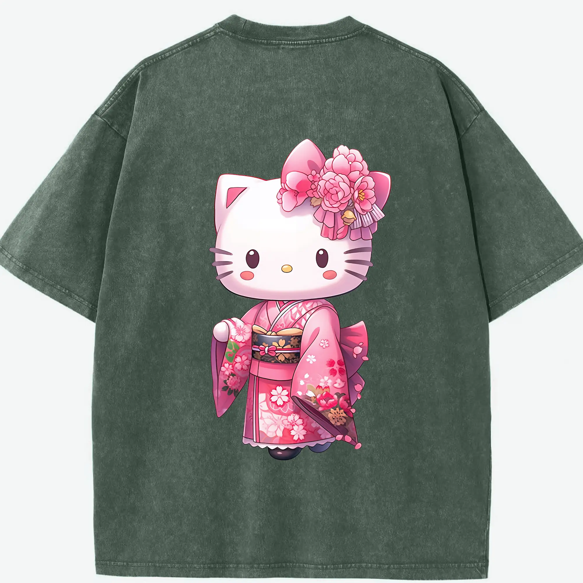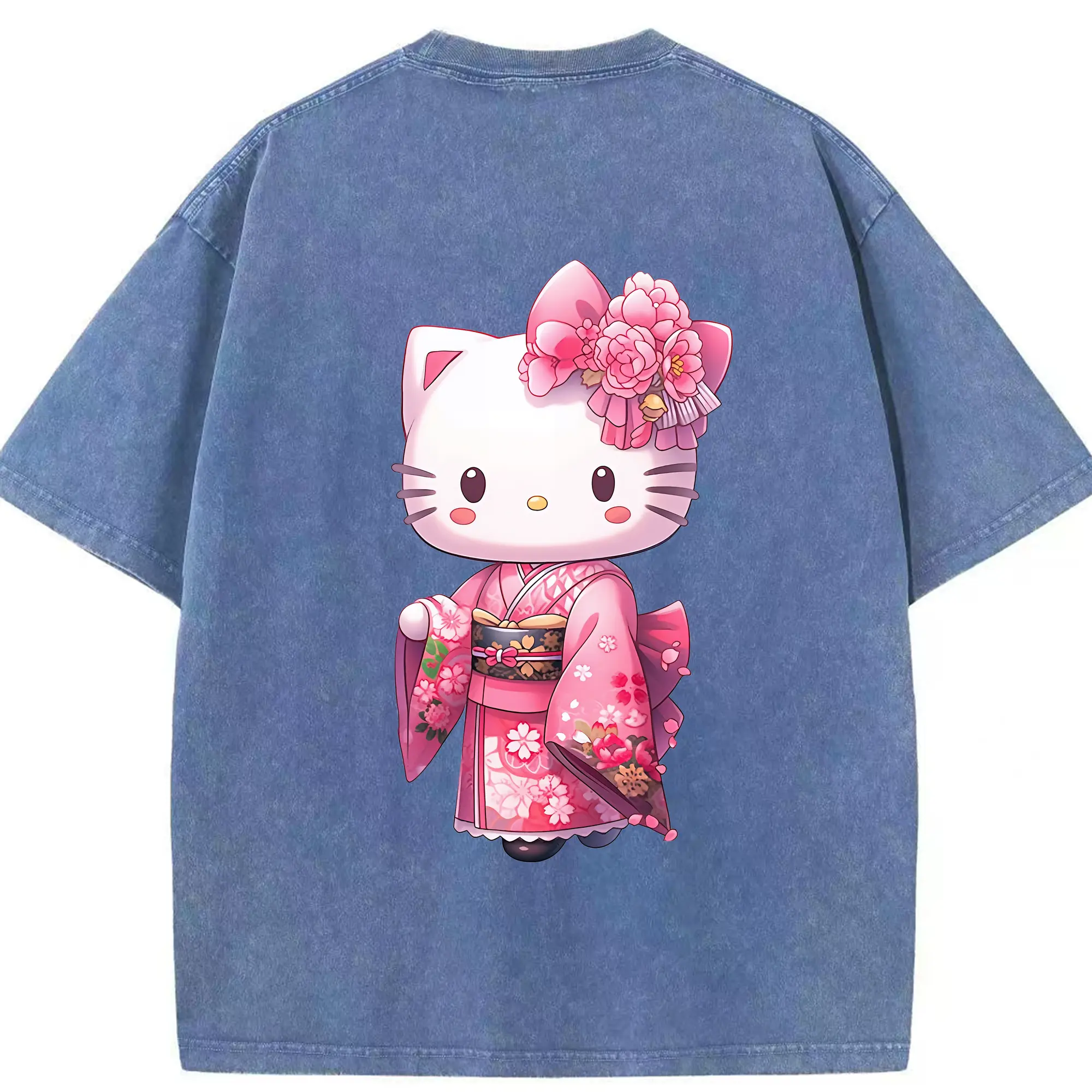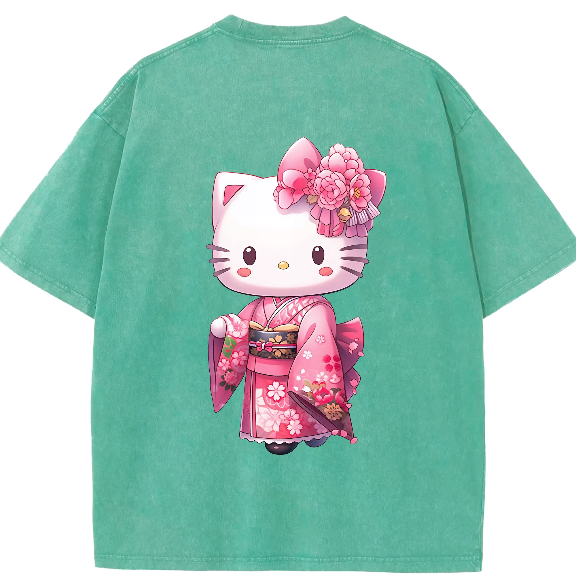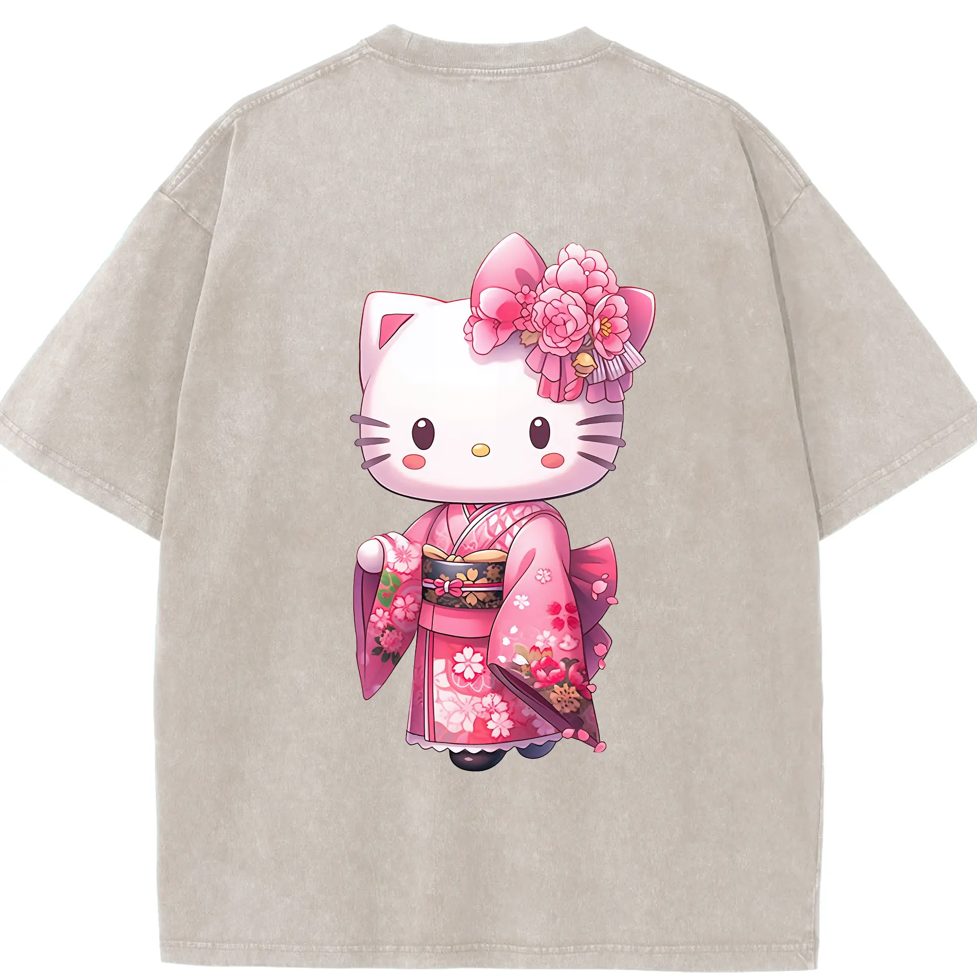 サンリオ グッズ,ハローキティ - 綿100% ヴィンテージ風 半袖Tシャツ ・ フロントプリント ・ 柔らか肌触り ・ 通気性 快適 ・ スポーツ カジュアル 外出用