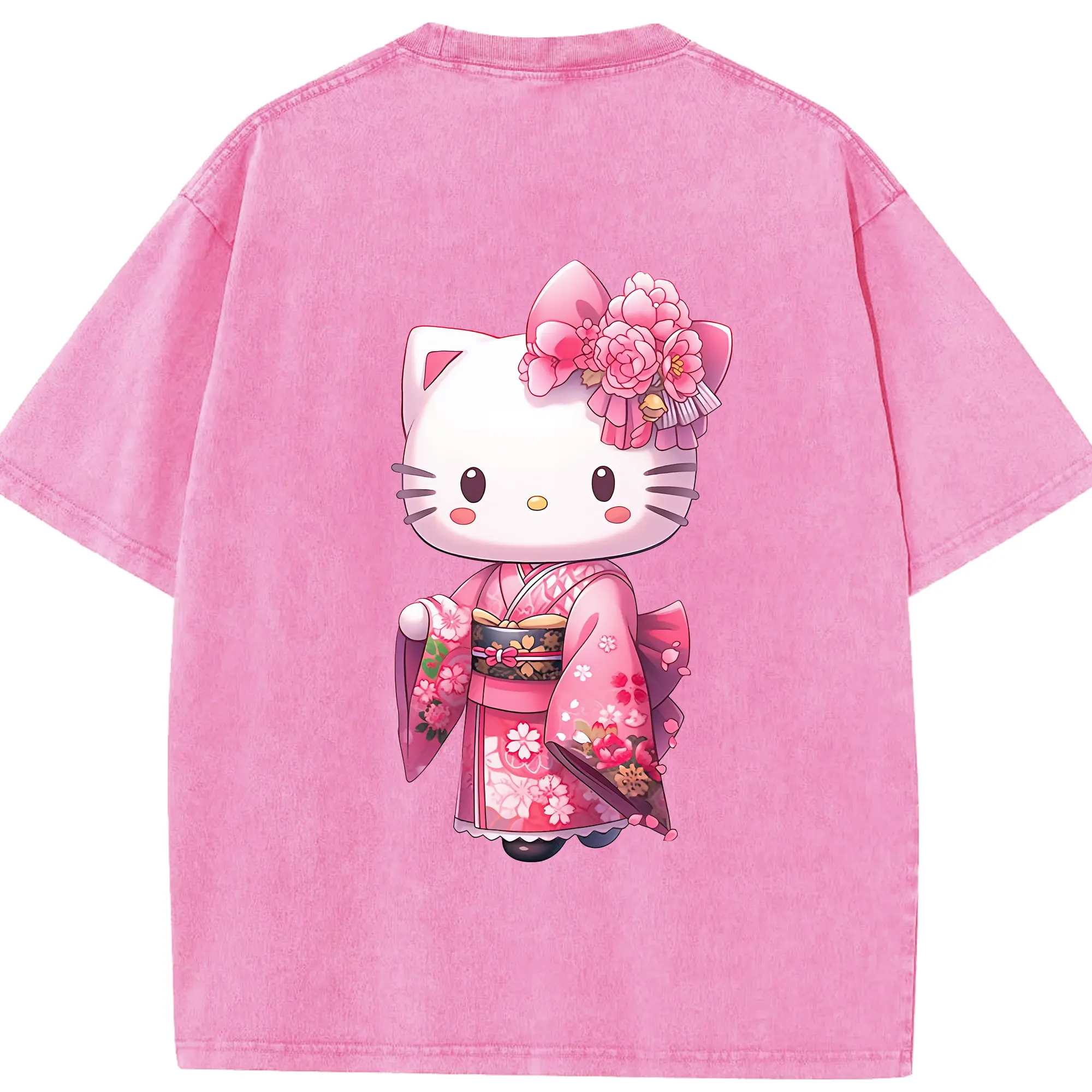 サンリオ グッズ,ハローキティ - 綿100% 半袖Tシャツ ・ バックプリント ・ 快適 通気性 ・ 日常使い 散歩 スポーツ用