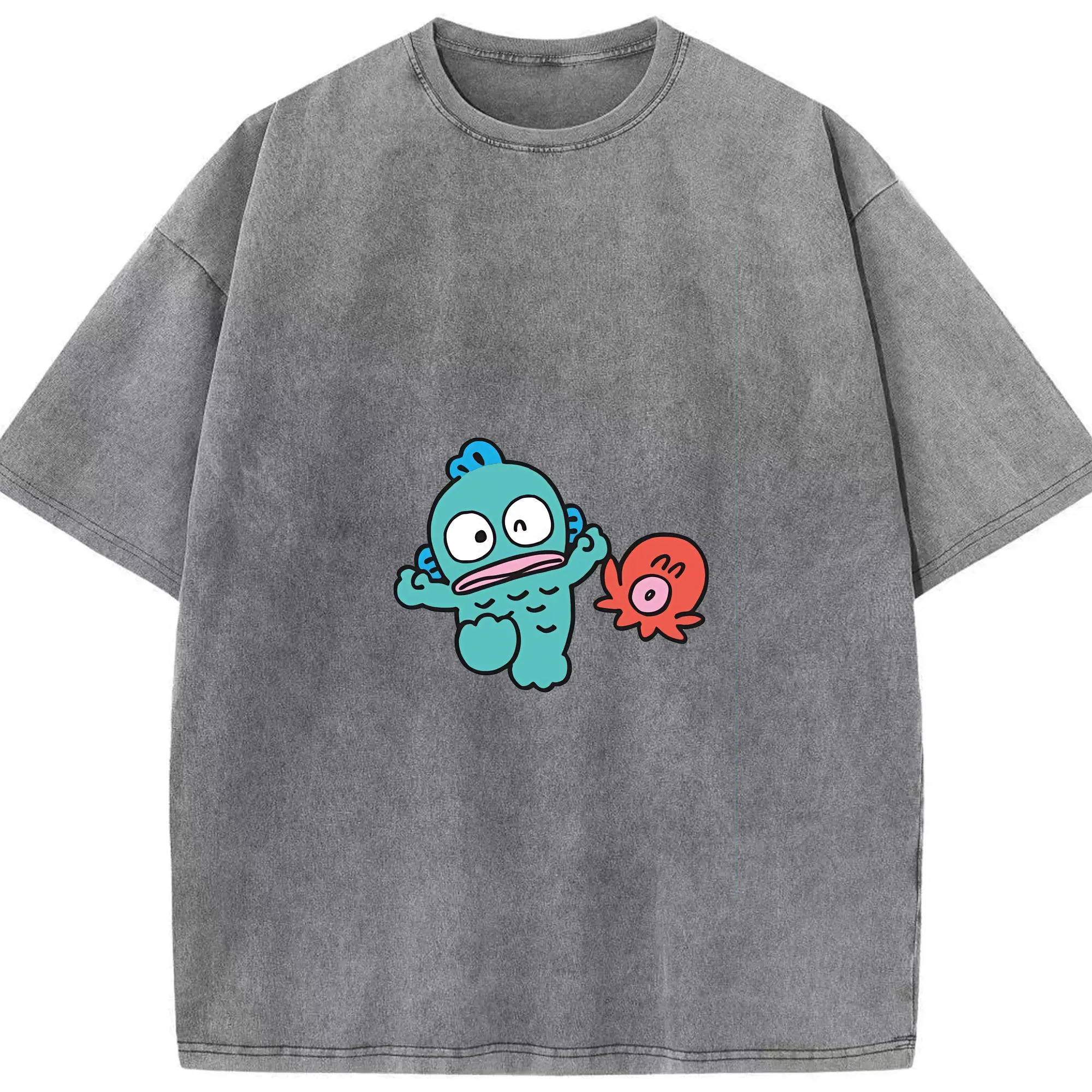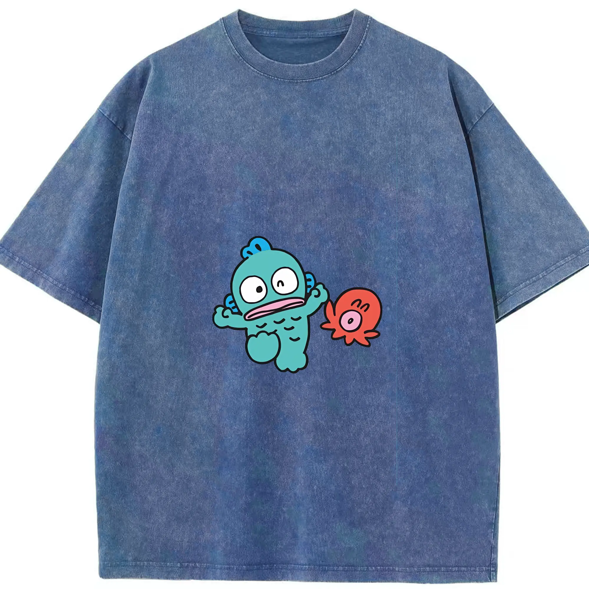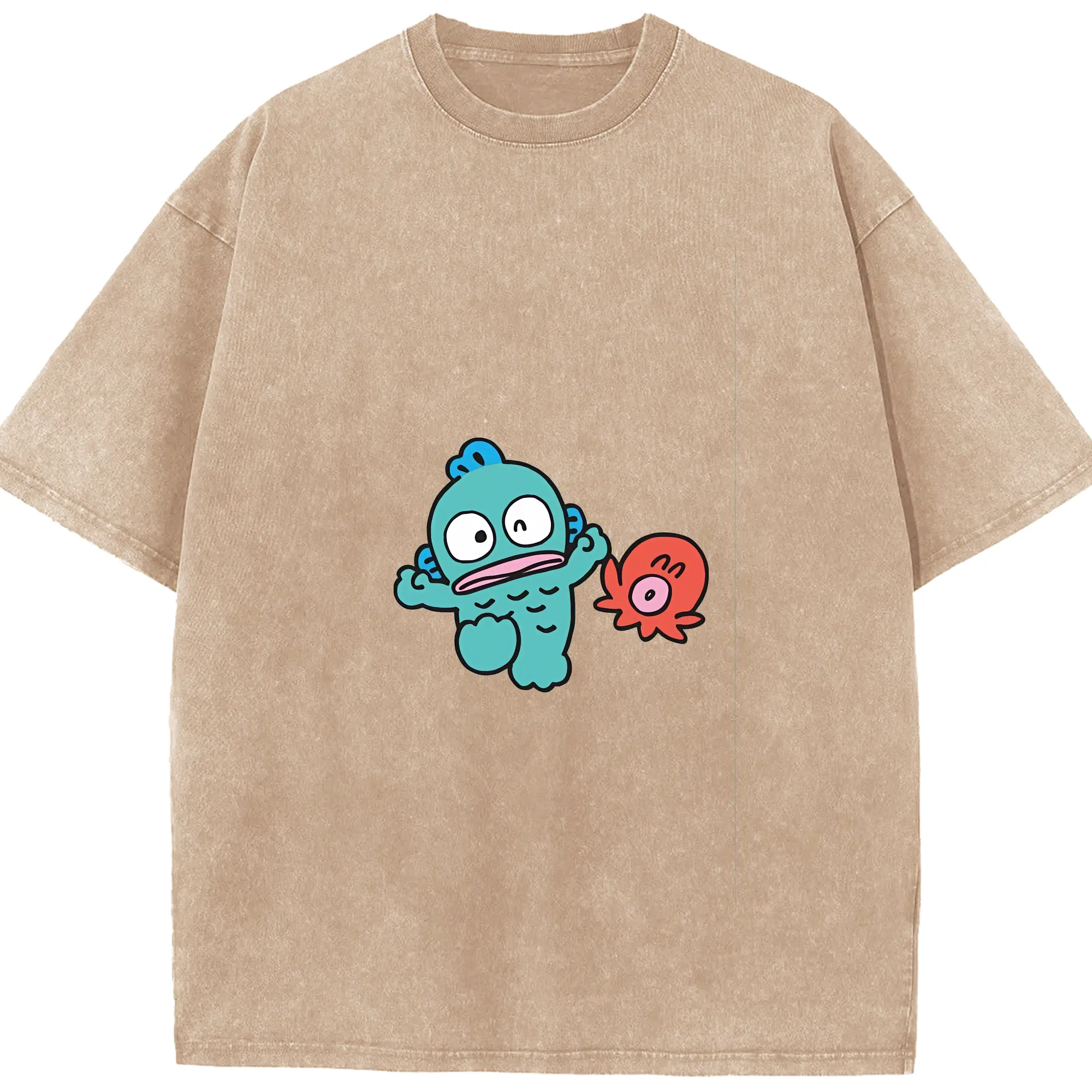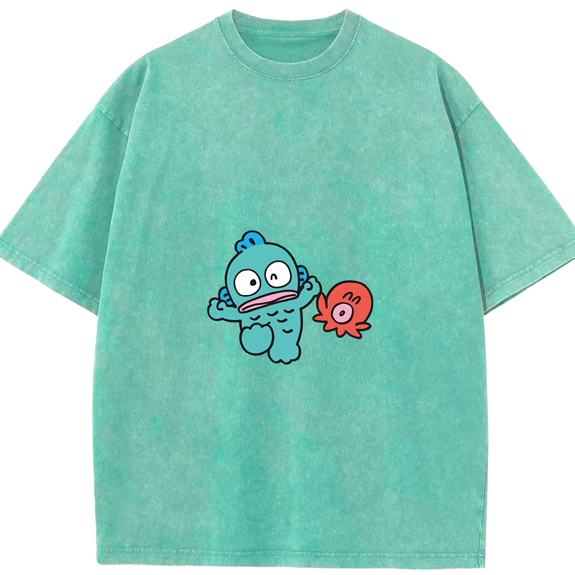 サンリオ グッズ,ハンギョドン - 綿100% ヴィンテージ風 半袖Tシャツ ・ 背面プリント ・ 柔らか肌触り ・ 通気性 快適 ・ スポーツ カジュアル 外出用