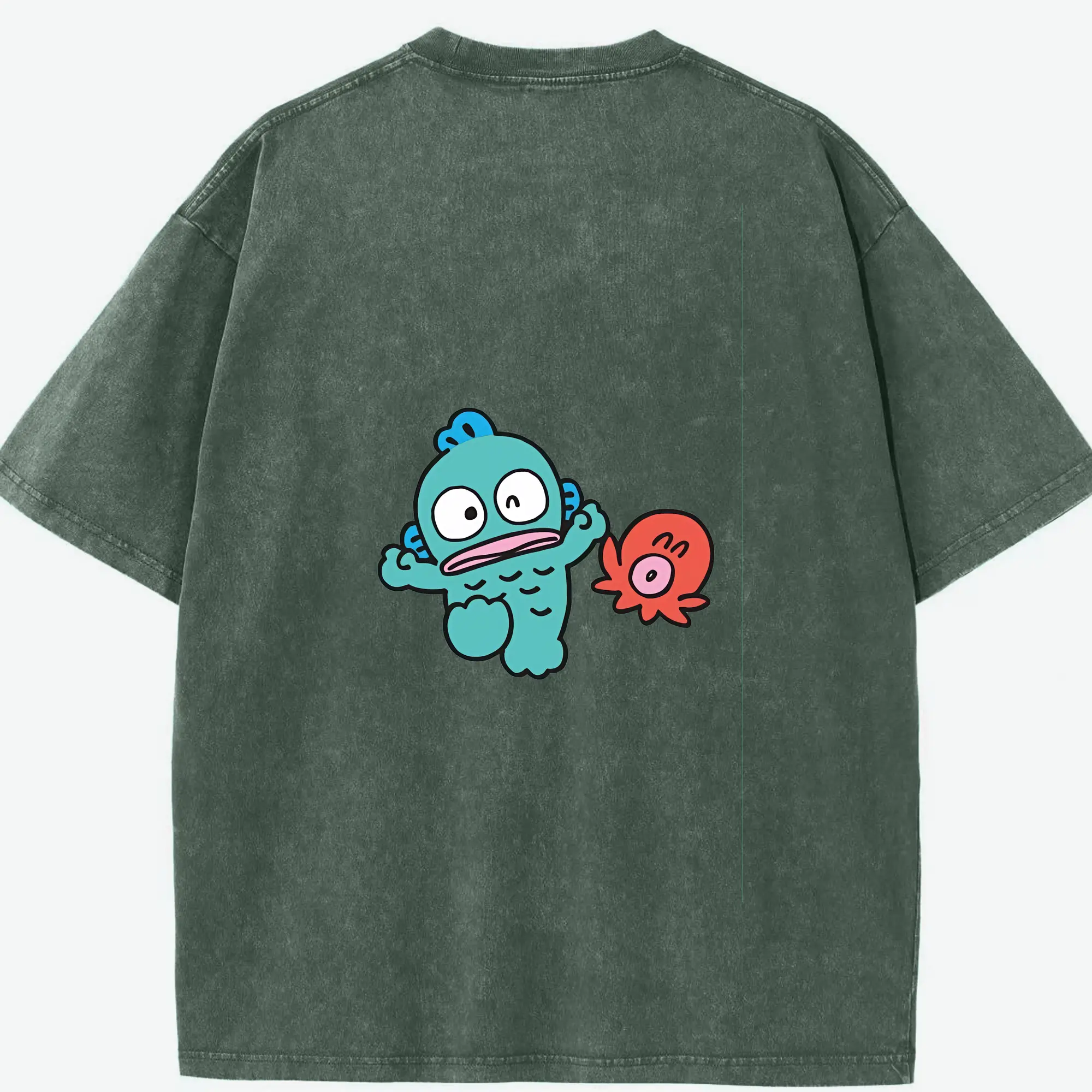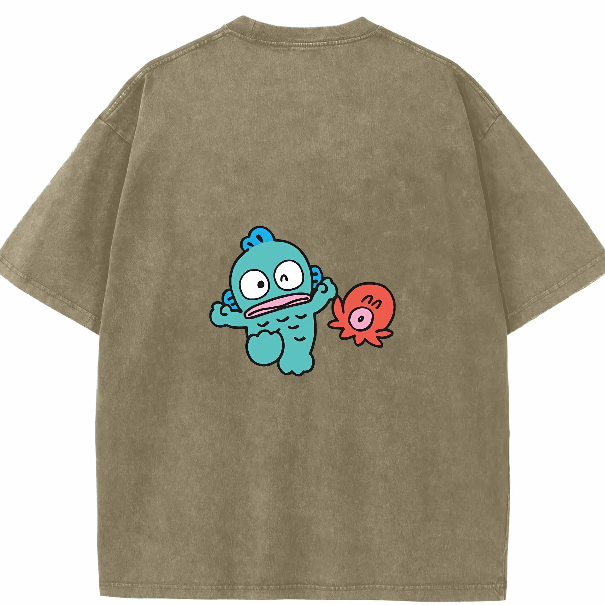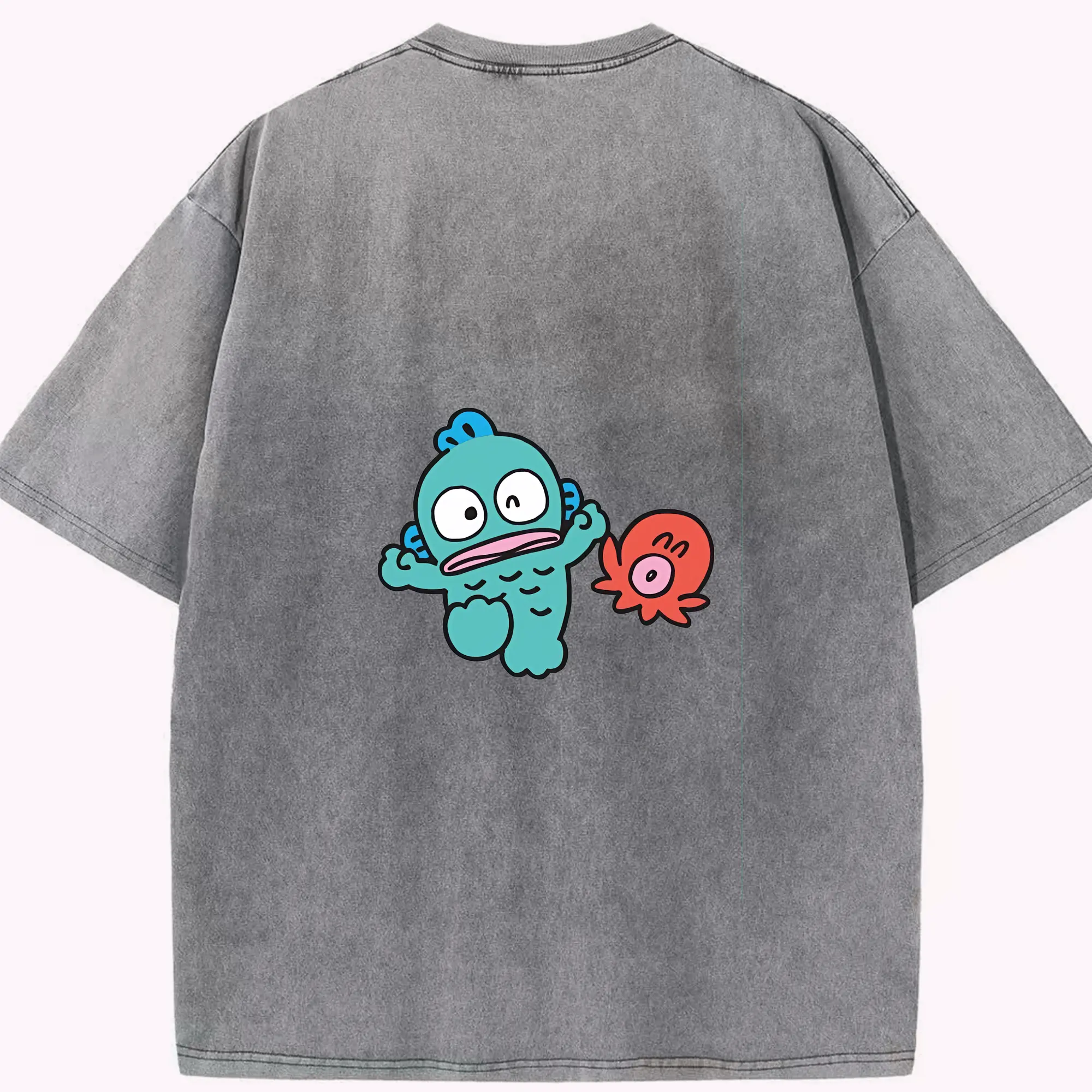 サンリオ グッズ,ハンギョドン - 綿100% ヴィンテージ風 半袖Tシャツ ・ フロントプリント ・ 柔らか肌触り ・ 通気性 快適 ・ スポーツ カジュアル 外出用