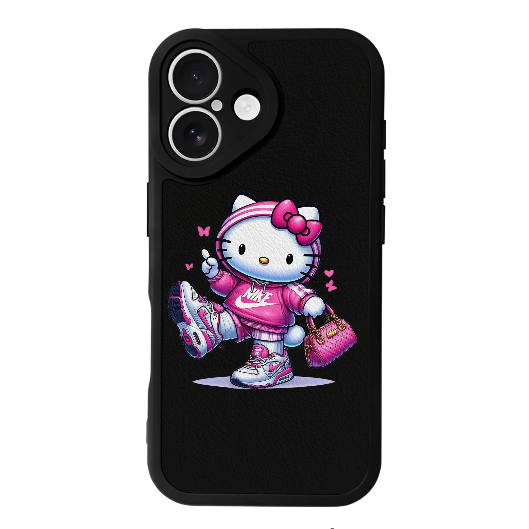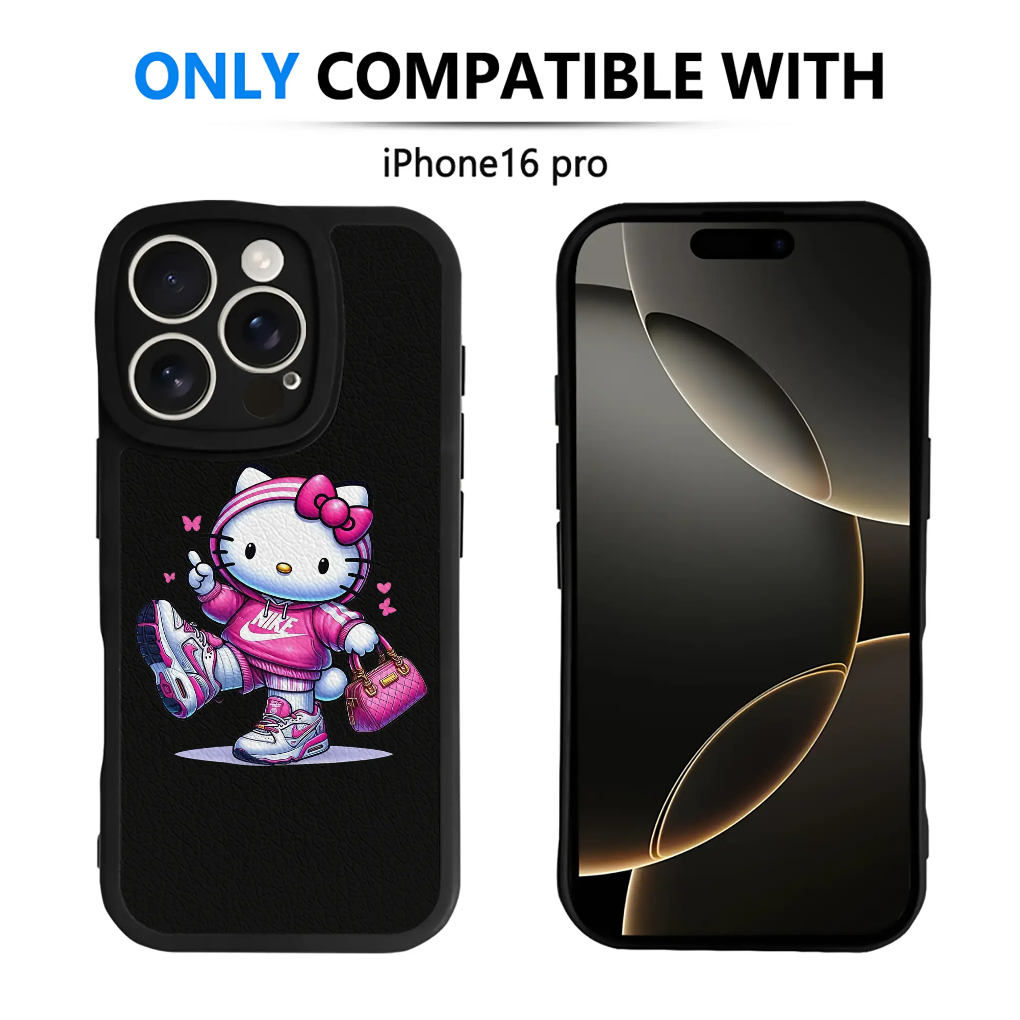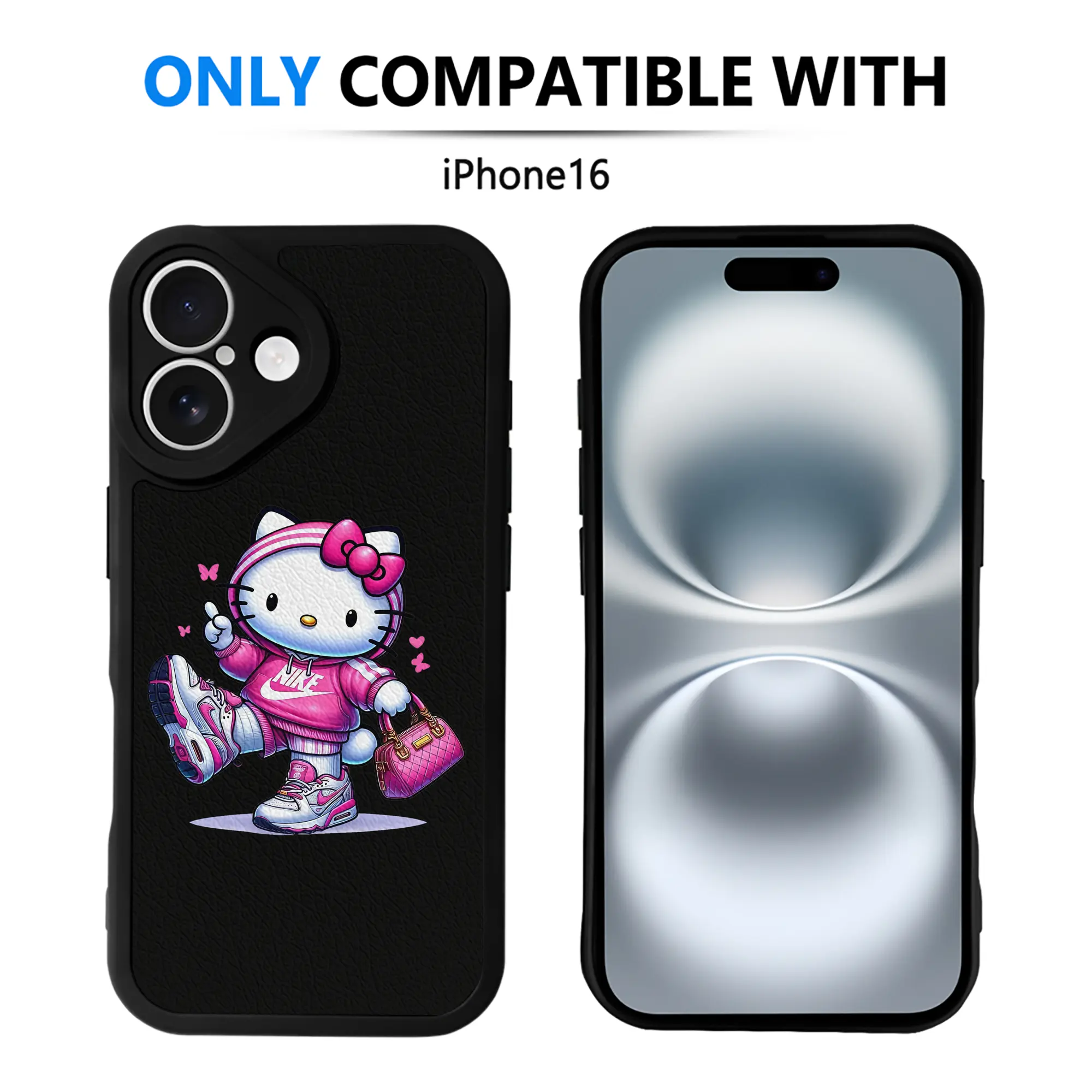 サンリオ グッズ,ハローキティ - IPhone 16シリーズ対応 ・ シリコンスマホケース ・ レザー調 ・ 高精度フィット ・ 耐衝撃 ・ ワイヤレス充電対応 ・ 精密カット