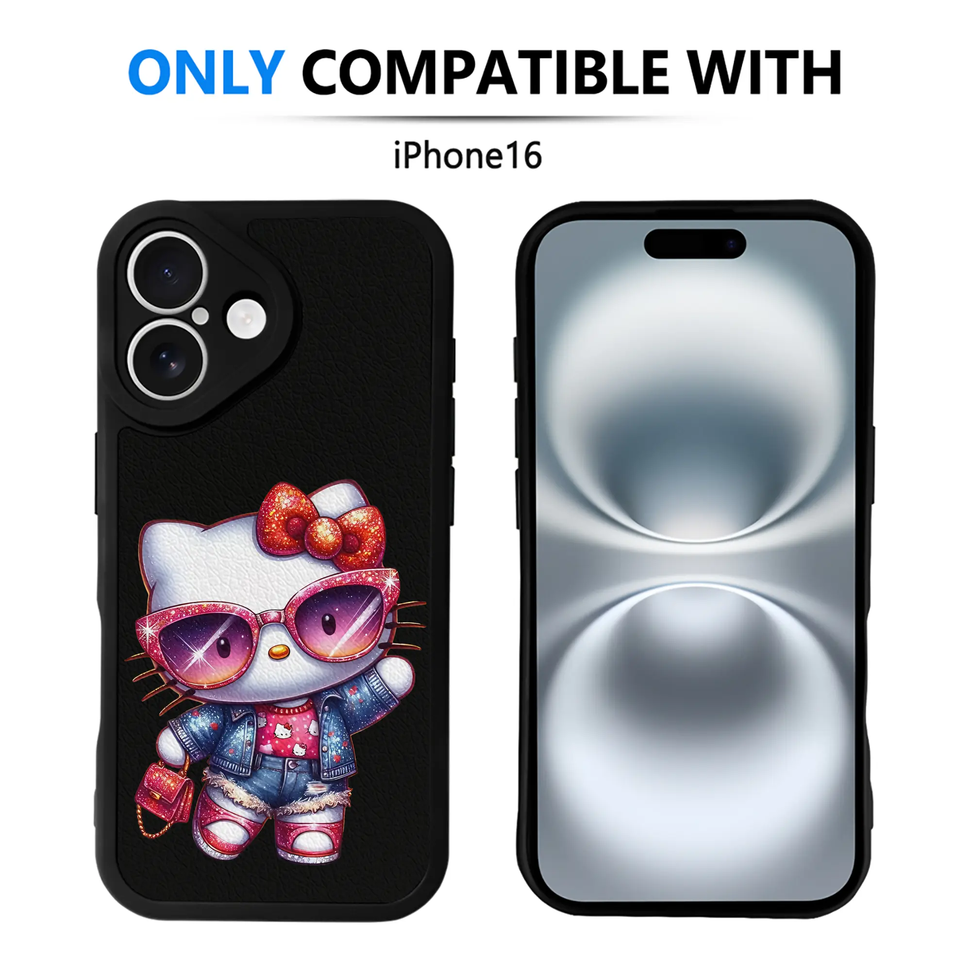 サンリオ グッズ,ハローキティ - IPhone 16シリーズ対応 ・ シリコンスマホケース ・ レザー調 ・ 高精度フィット ・ 耐衝撃 ・ ワイヤレス充電対応 ・ 精密カット
