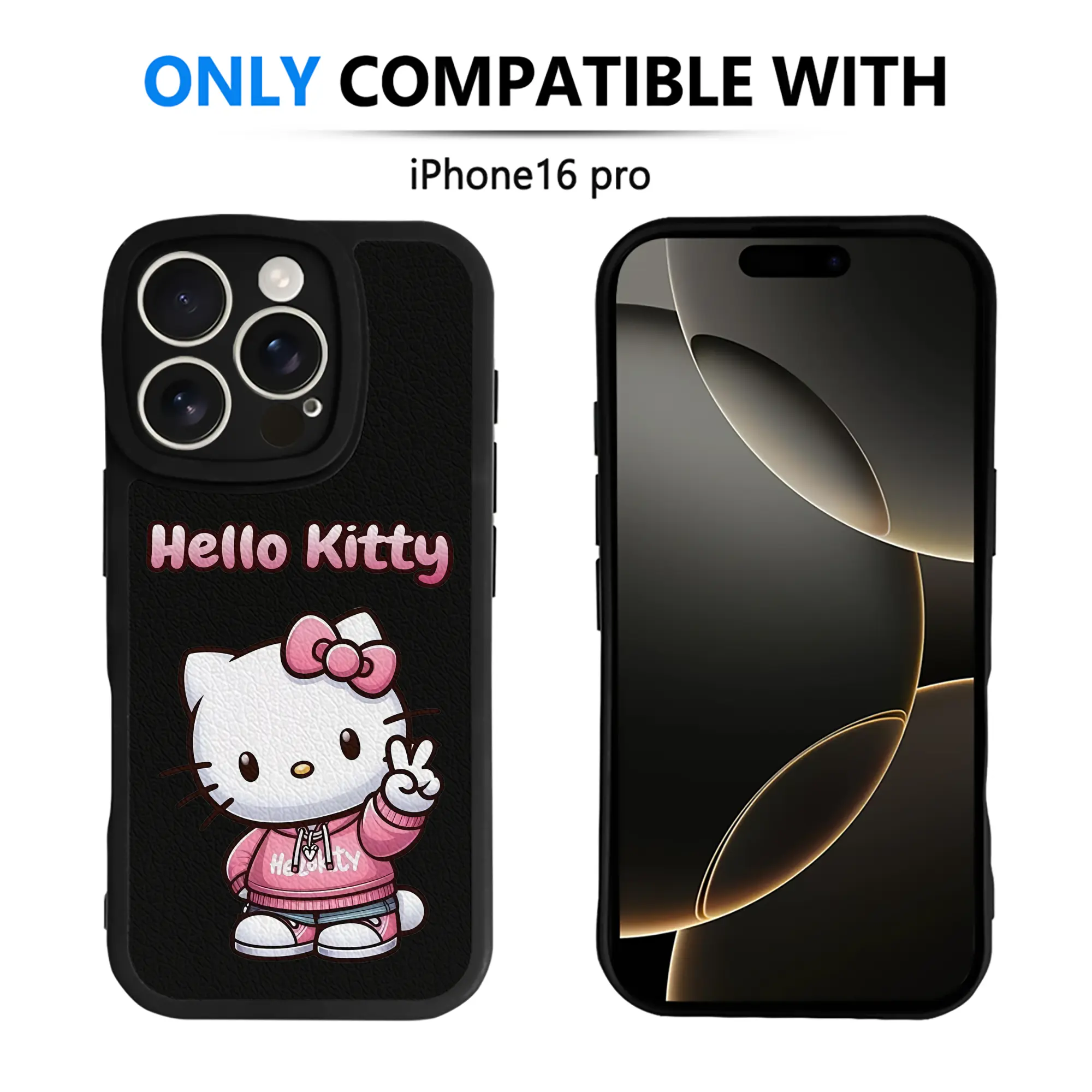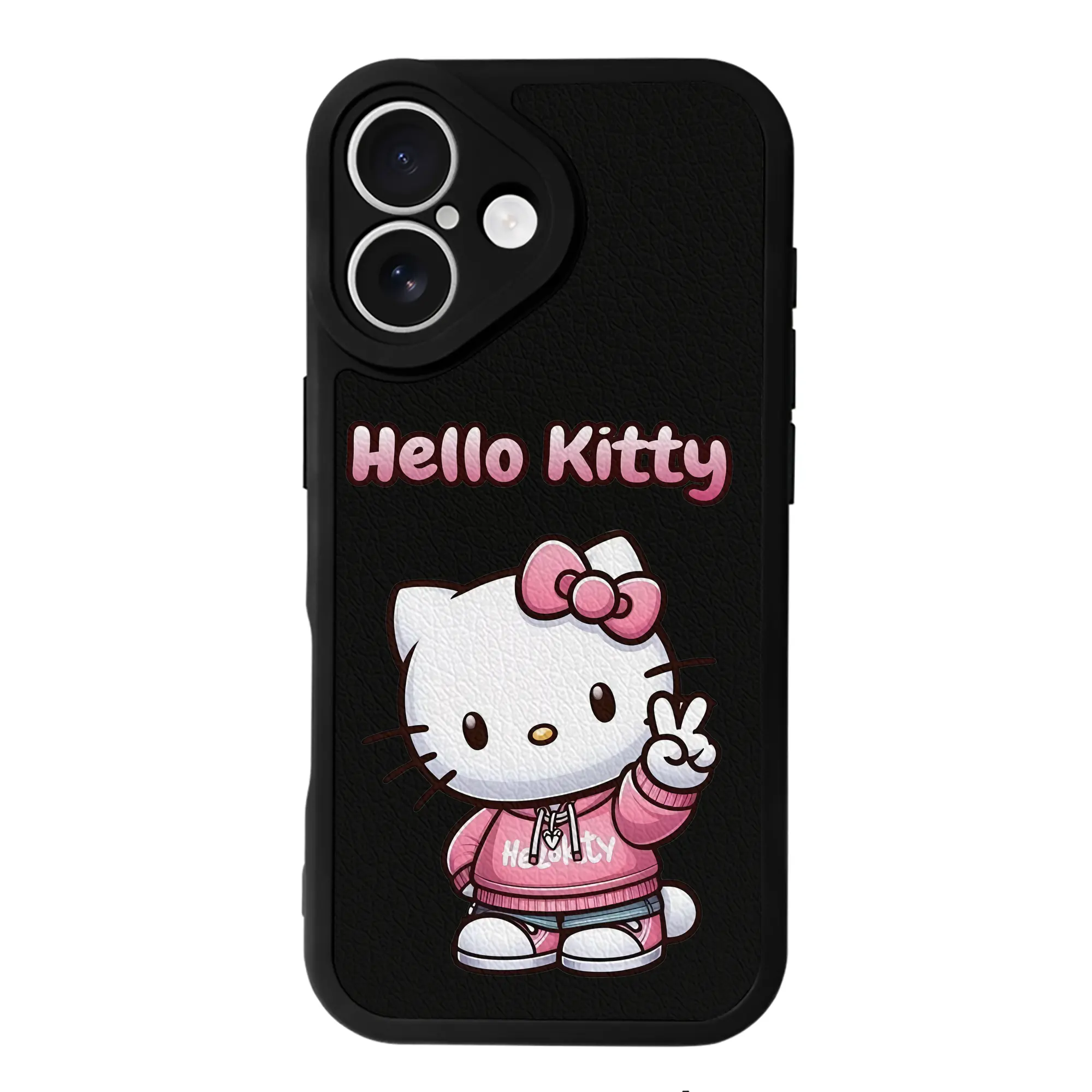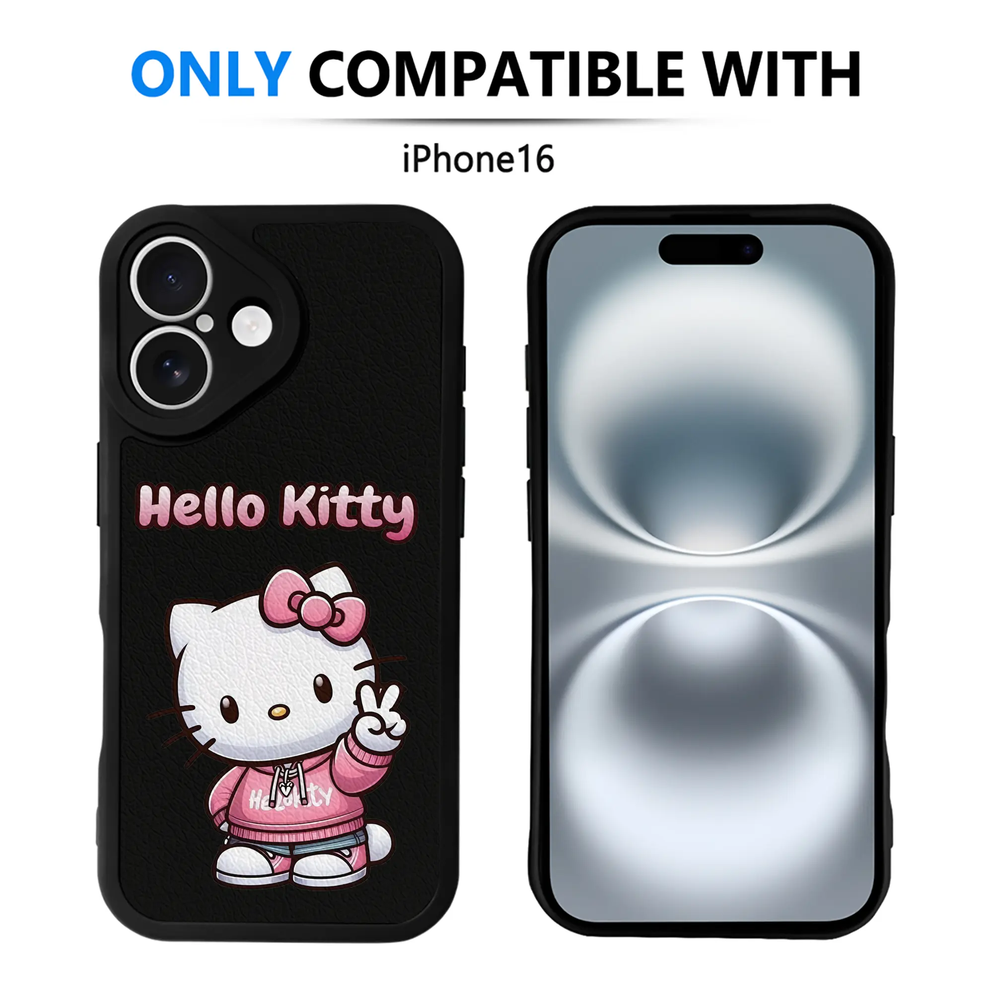 サンリオ グッズ,ハローキティ - IPhone 16シリーズ対応 ・ シリコンスマホケース ・ レザー調 ・ 高精度フィット ・ 耐衝撃 ・ ワイヤレス充電対応 ・ 精密カット