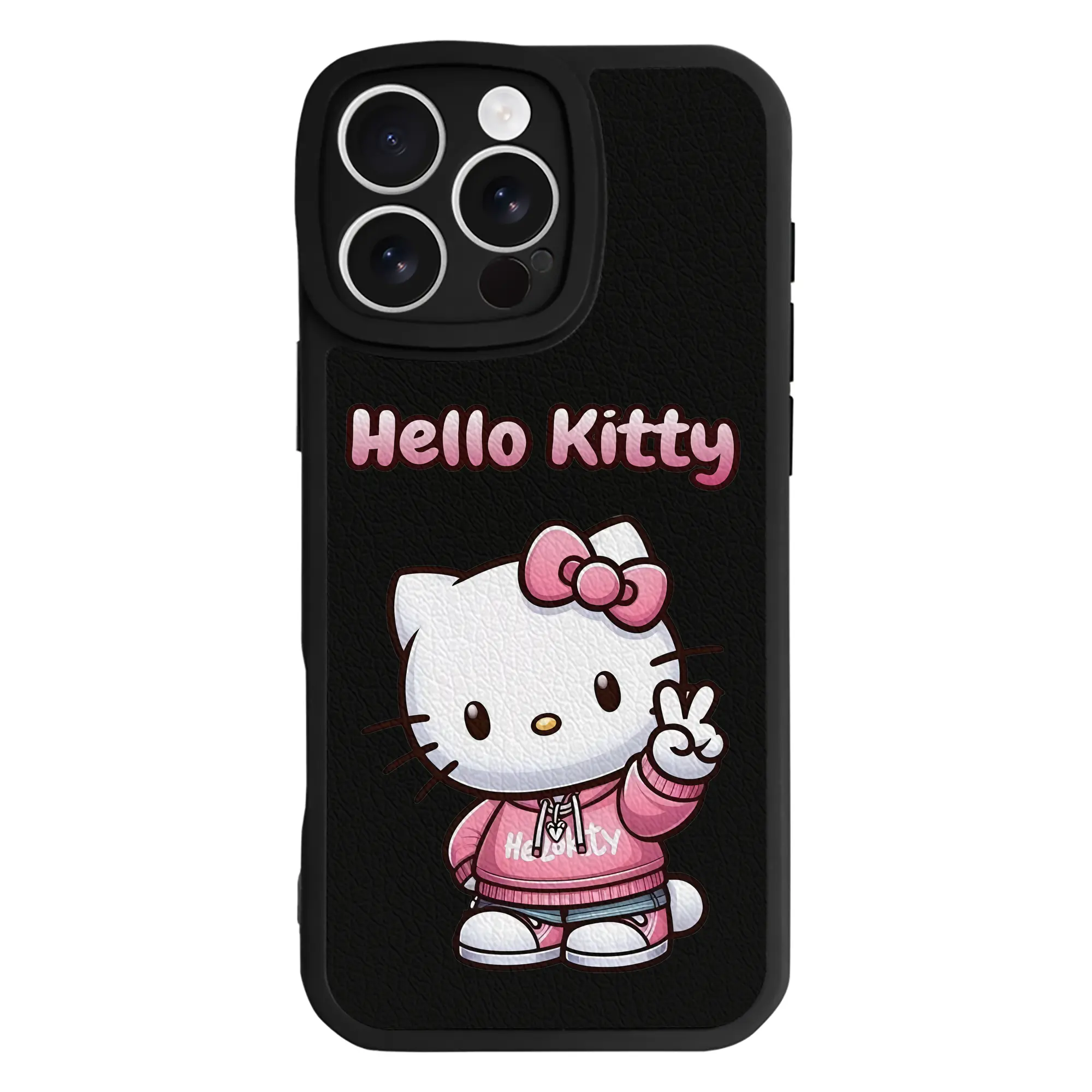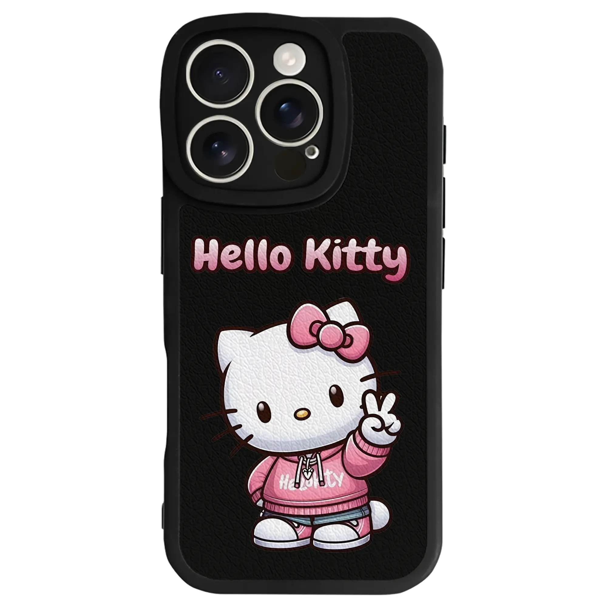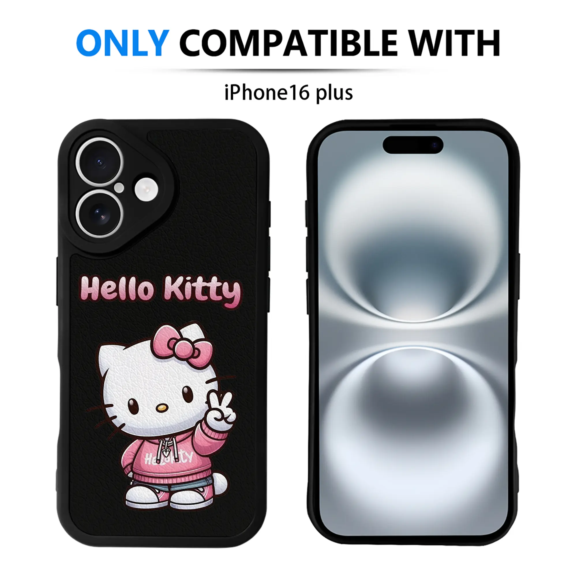 サンリオ グッズ,ハローキティ - IPhone 16シリーズ対応 ・ シリコンスマホケース ・ レザー調 ・ 高精度フィット ・ 耐衝撃 ・ ワイヤレス充電対応 ・ 精密カット