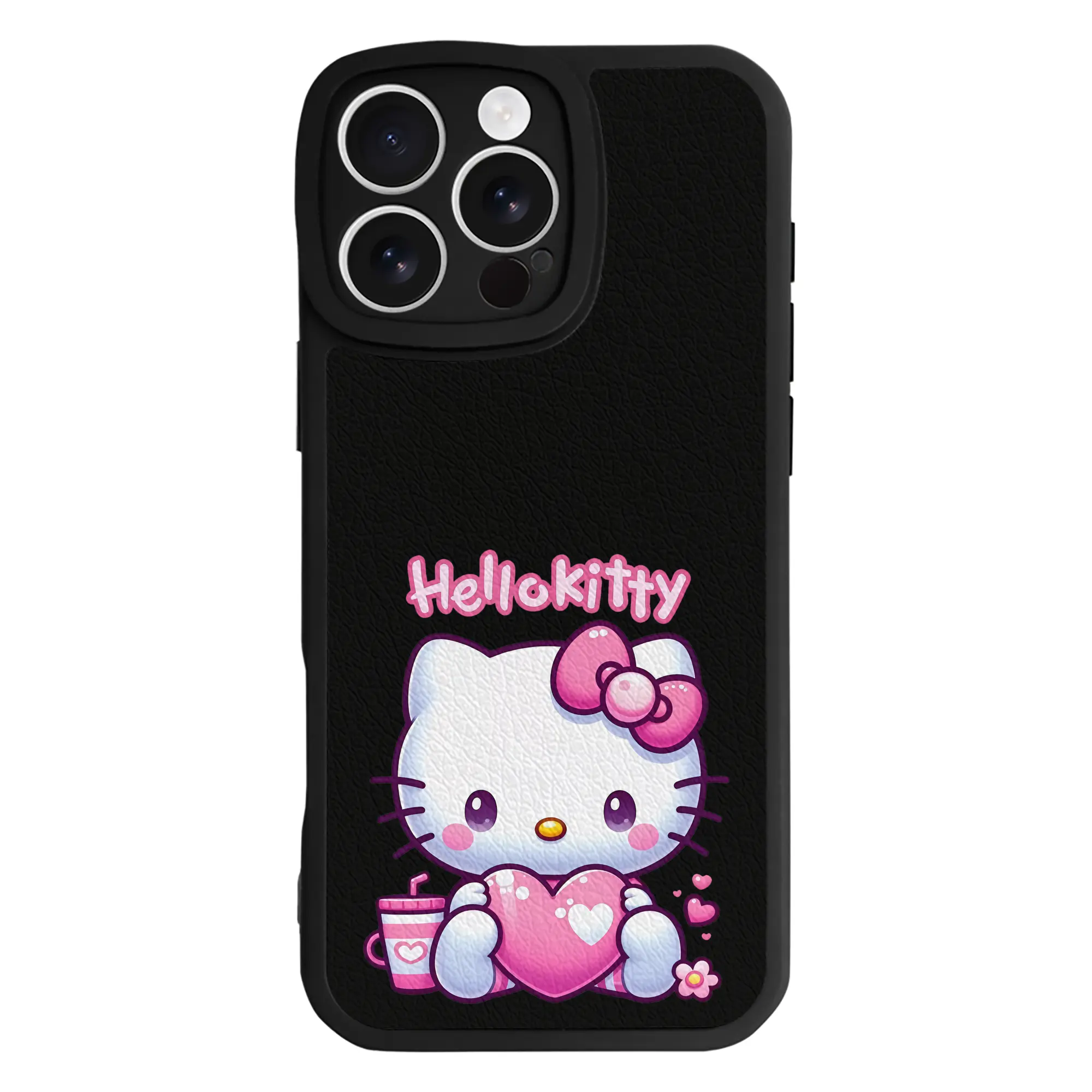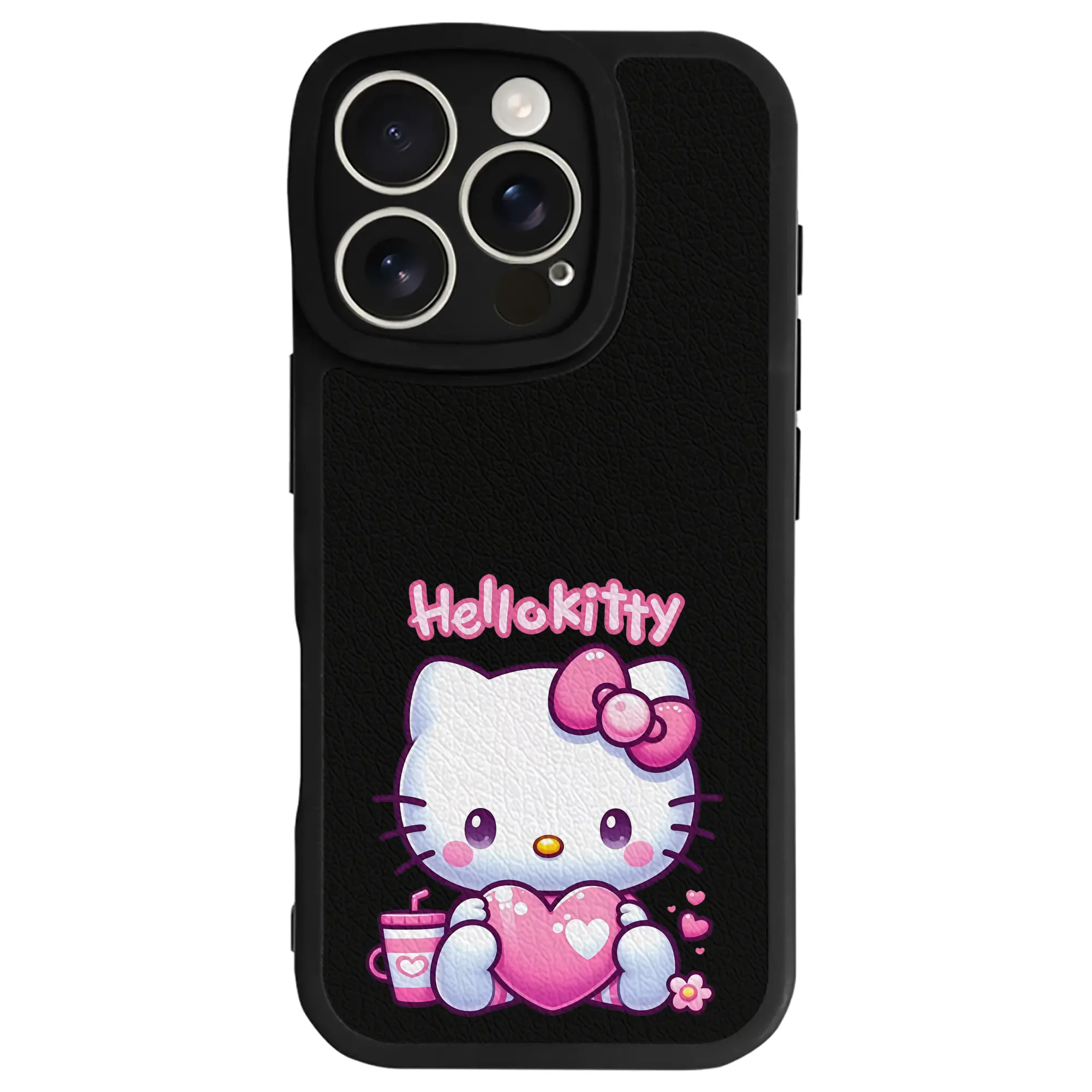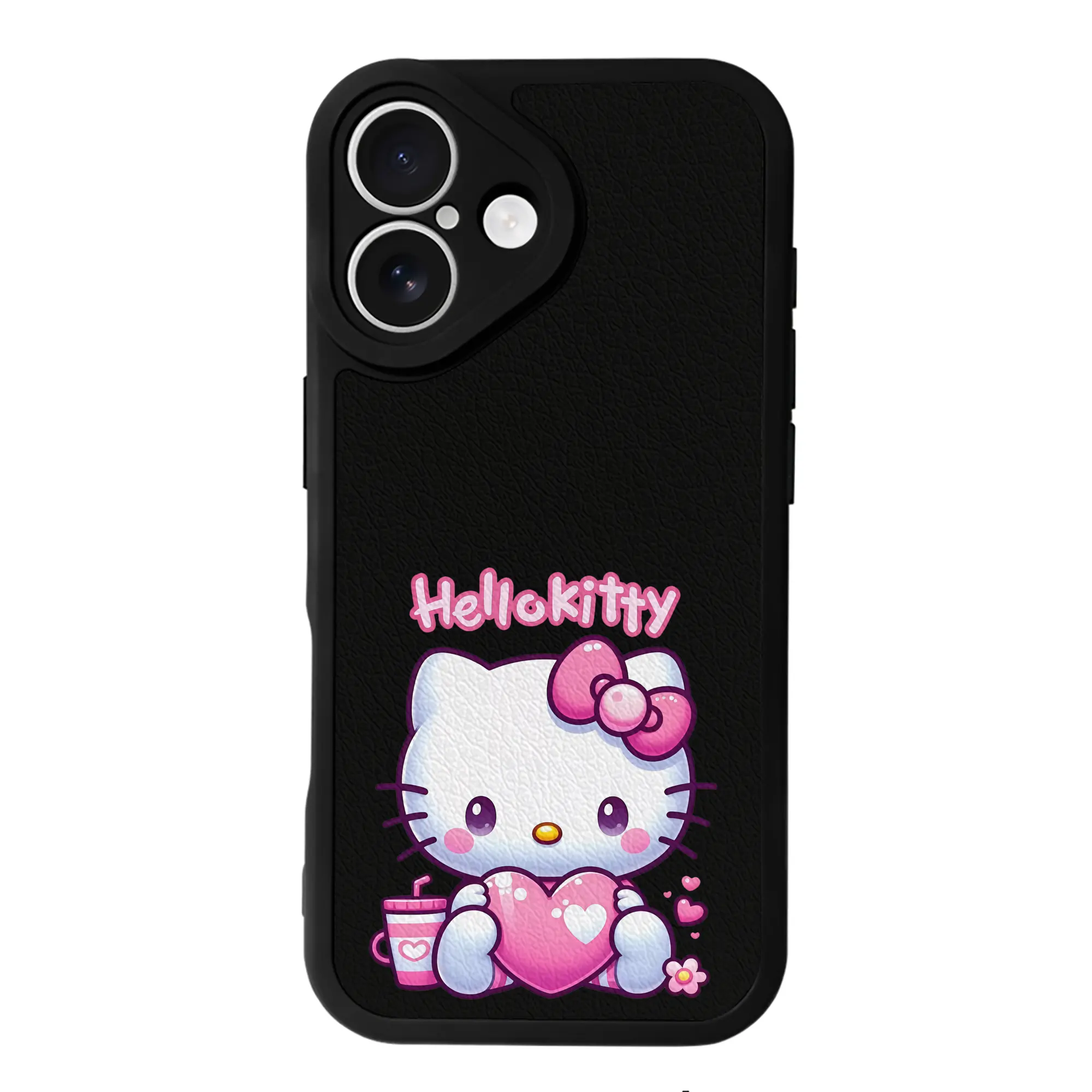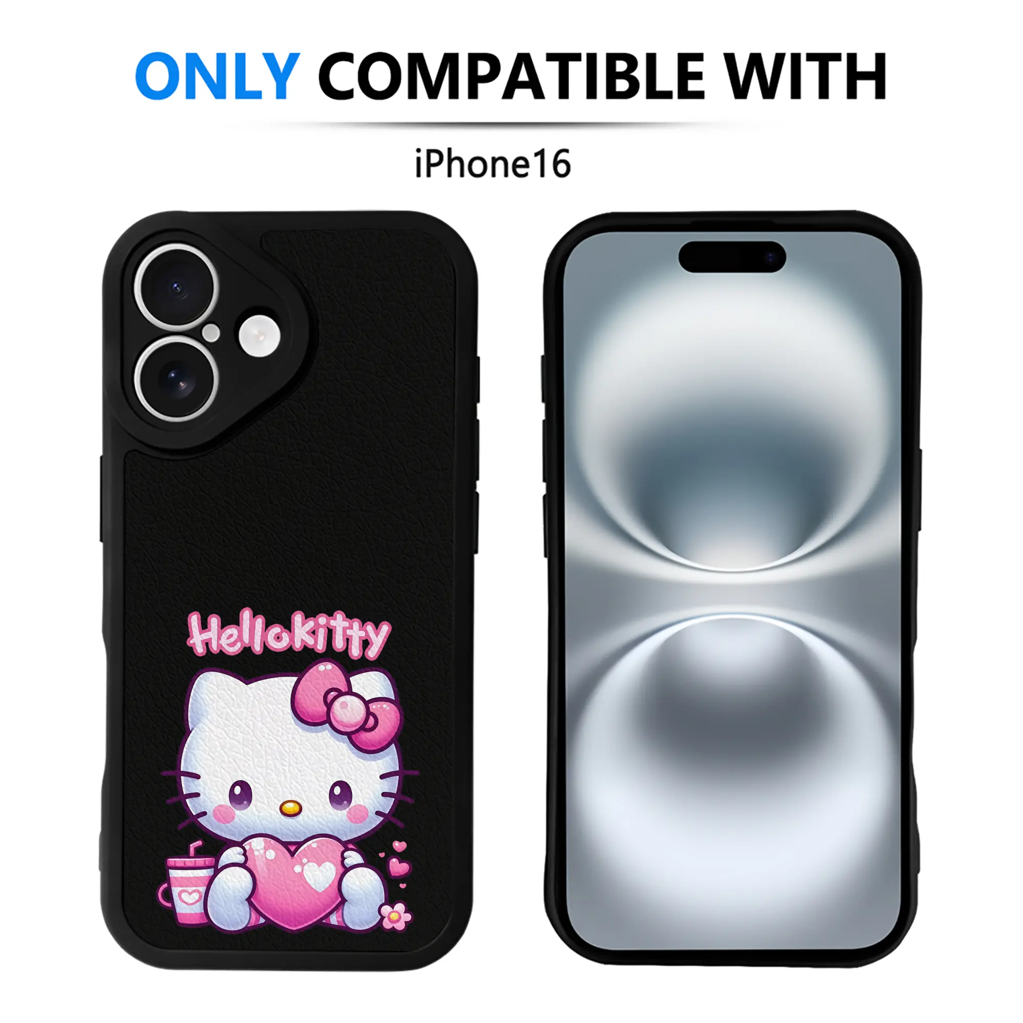 サンリオ グッズ,ハローキティ - IPhone 16シリーズ対応 ・ シリコンスマホケース ・ レザー調 ・ 高精度フィット ・ 耐衝撃 ・ ワイヤレス充電対応 ・ 精密カット