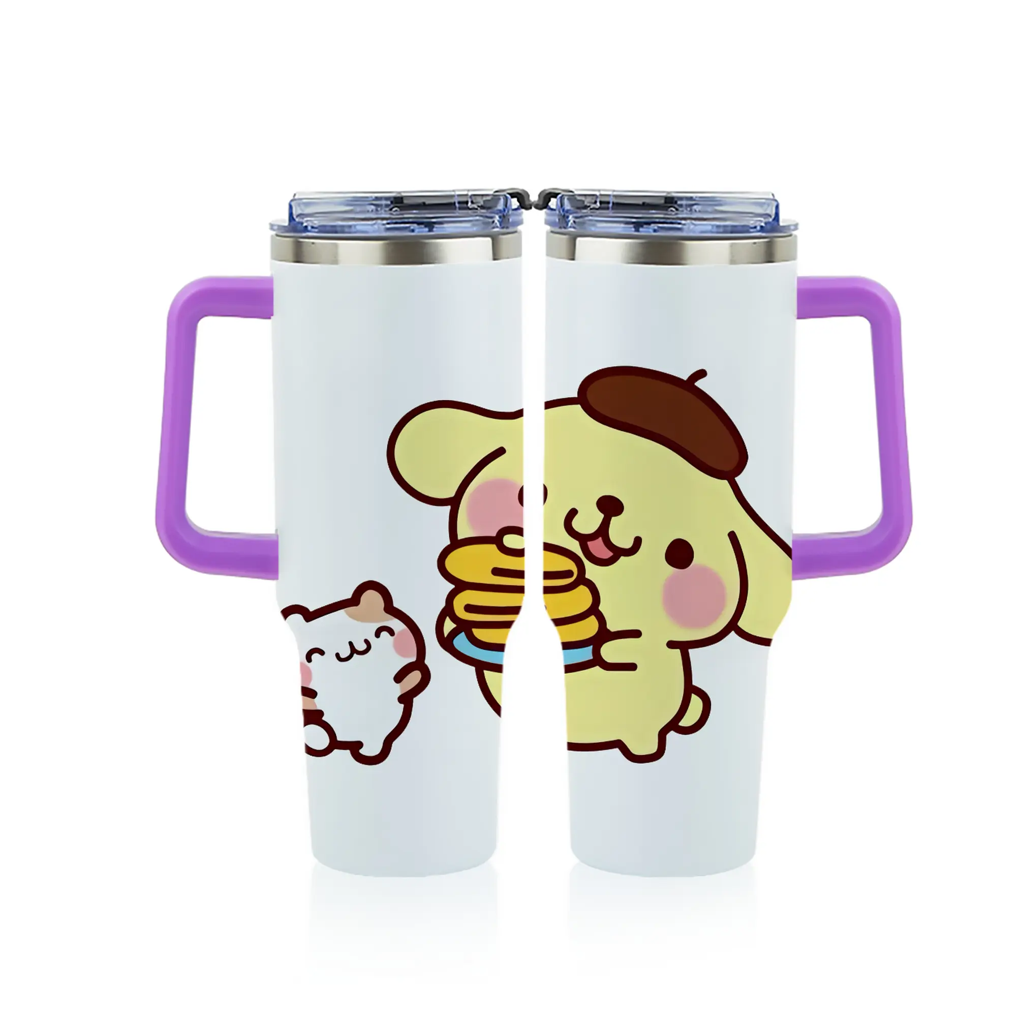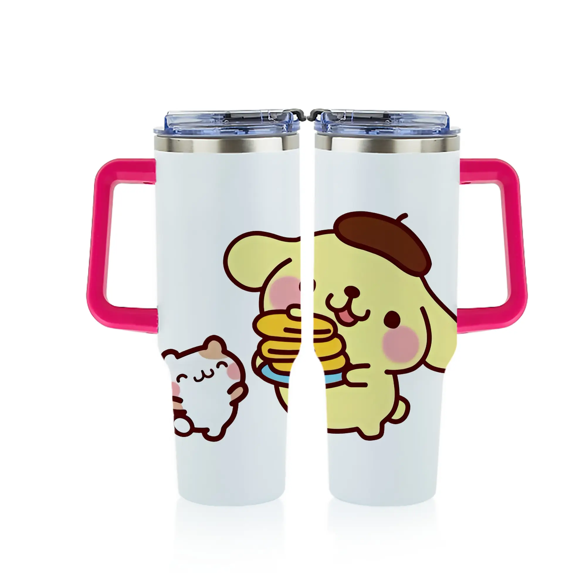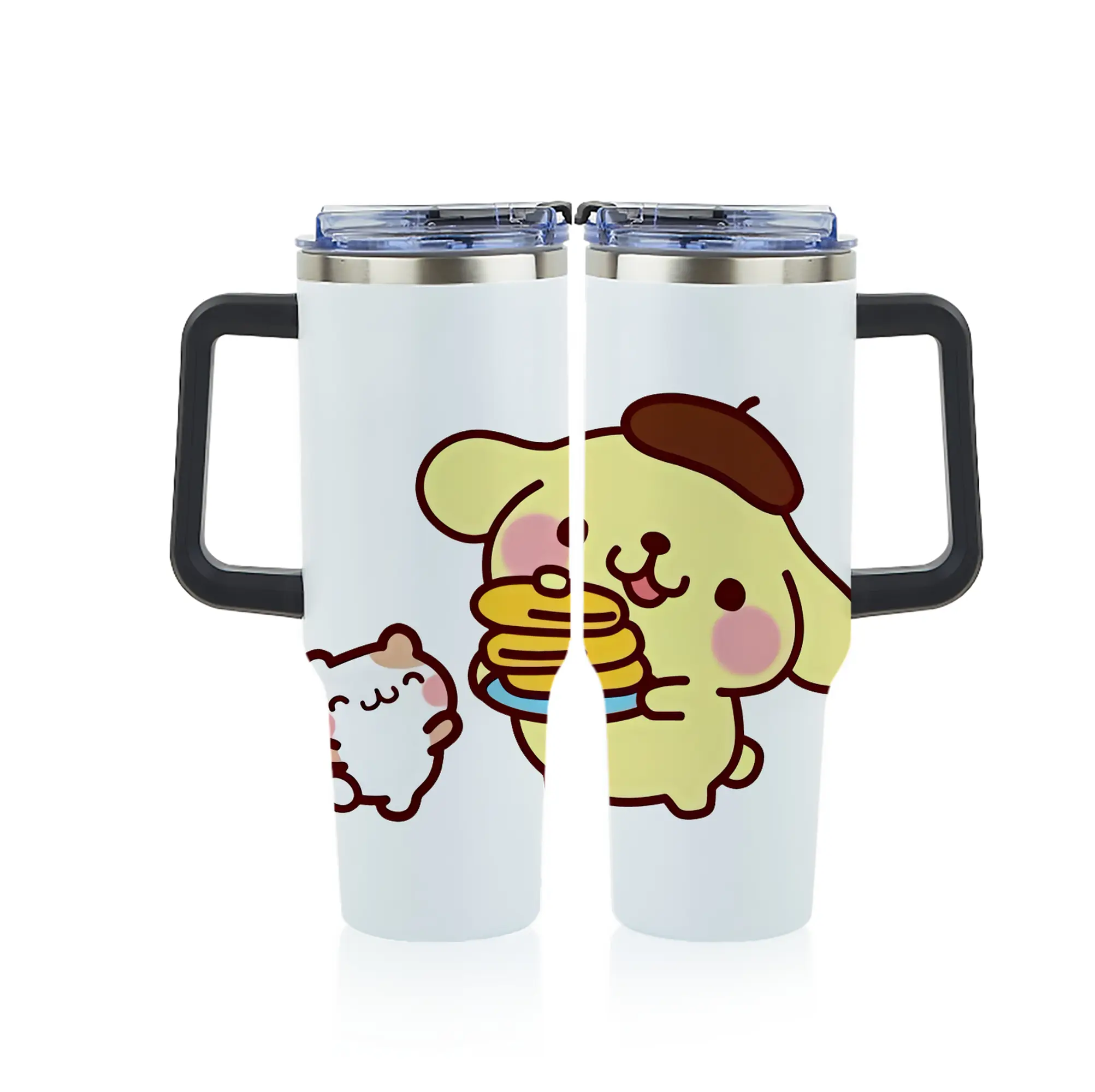 サンリオ グッズ,ポムポムプリン - 1200mL フルプリント車用タンブラー ・ 304ステンレス 内側 ・ 201ステンレス 外側 ・ 保温 保冷 ・ 通勤 ドライブ アウトドア用