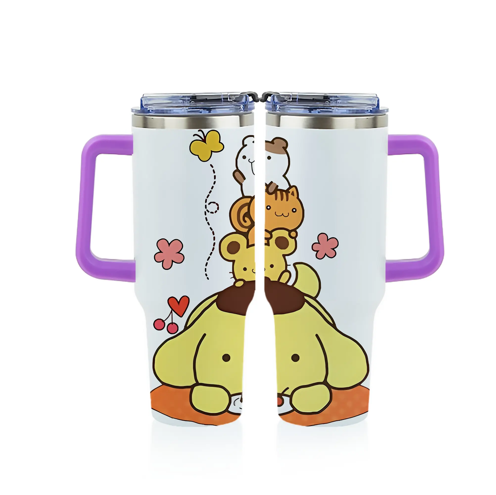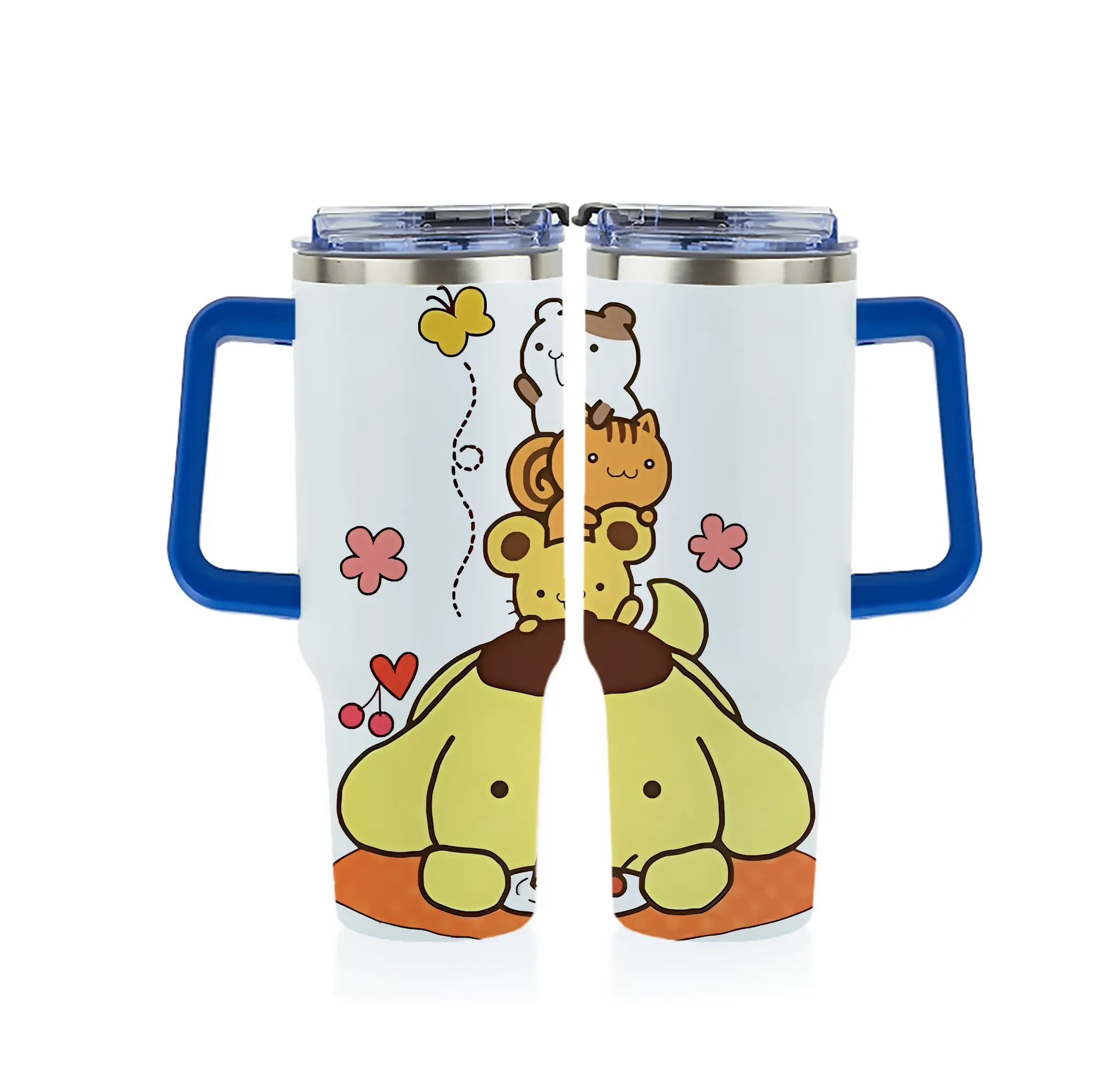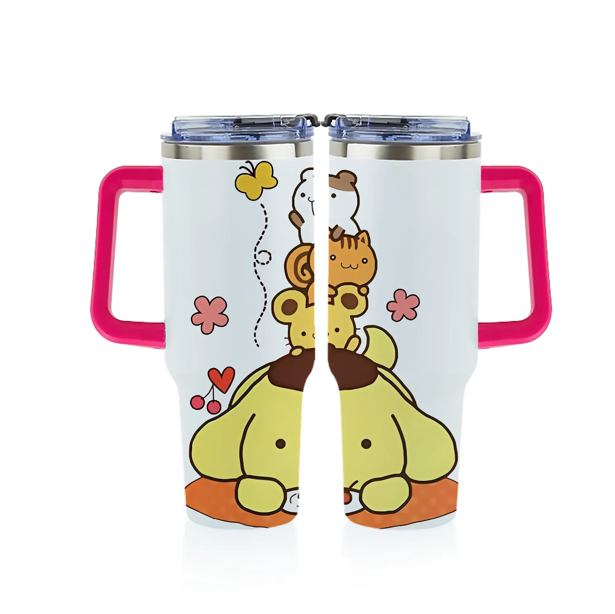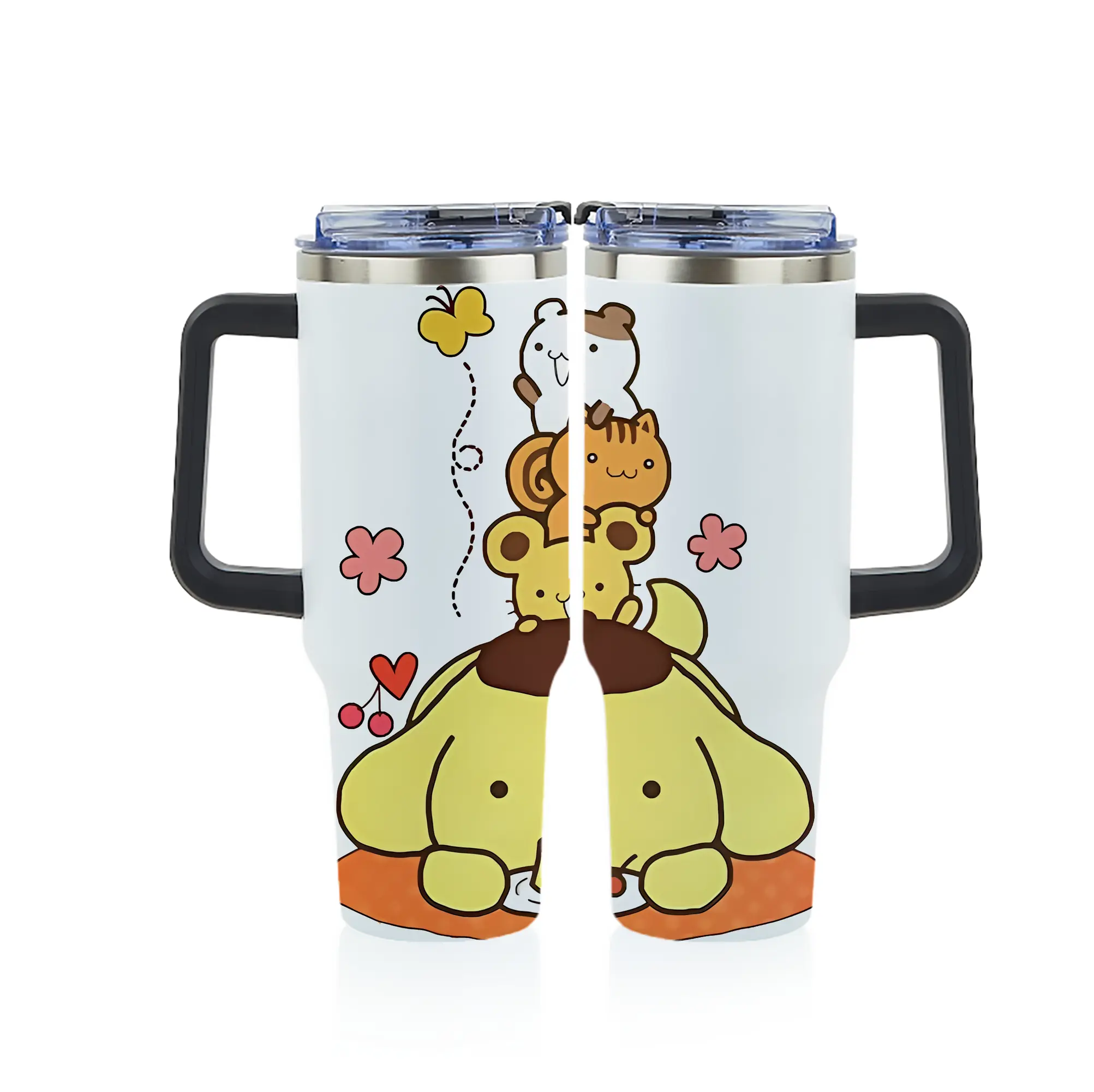 サンリオ グッズ,ポムポムプリン - 1200mL フルプリント車用タンブラー ・ 304ステンレス 内側 ・ 201ステンレス 外側 ・ 保温 保冷 ・ 通勤 ドライブ アウトドア用