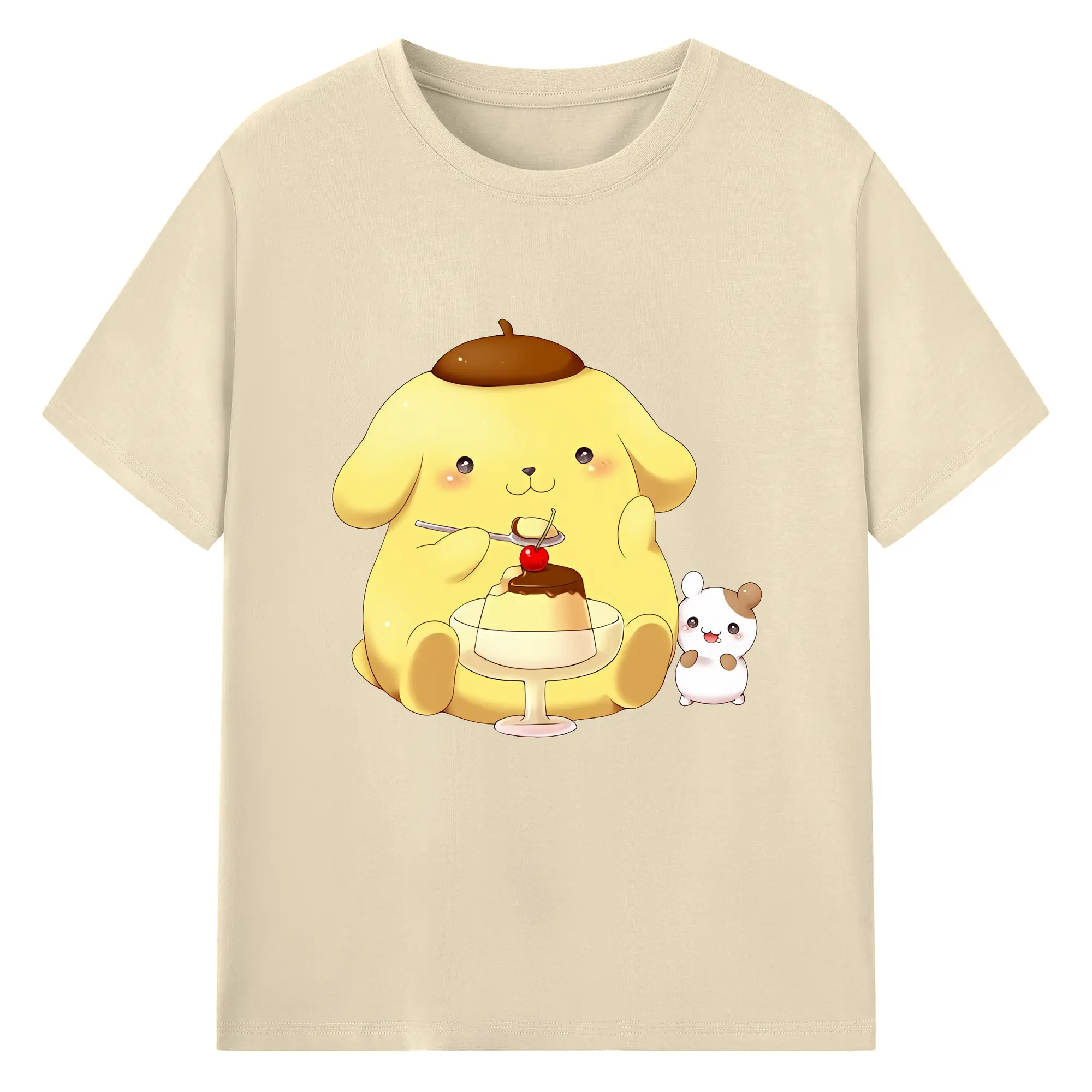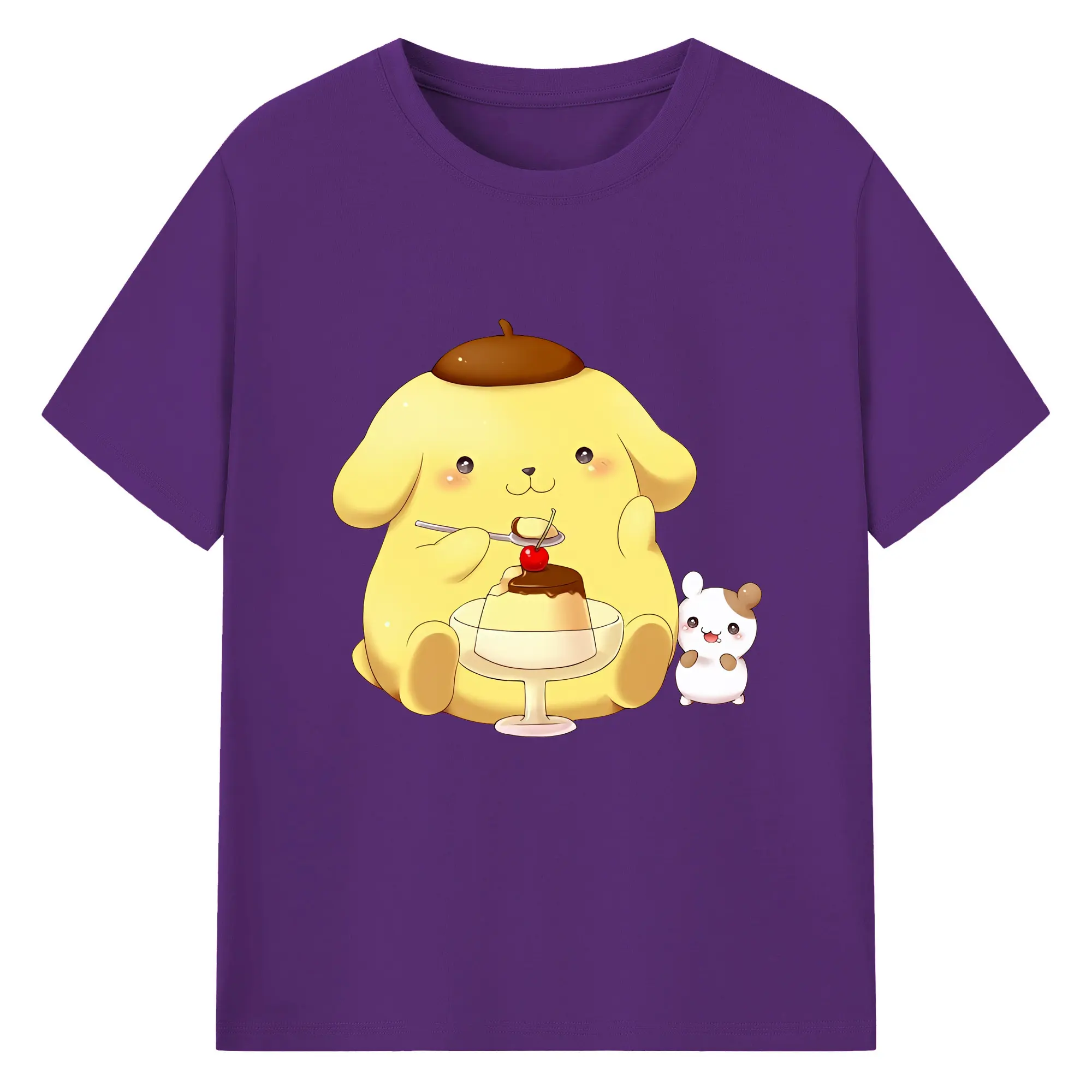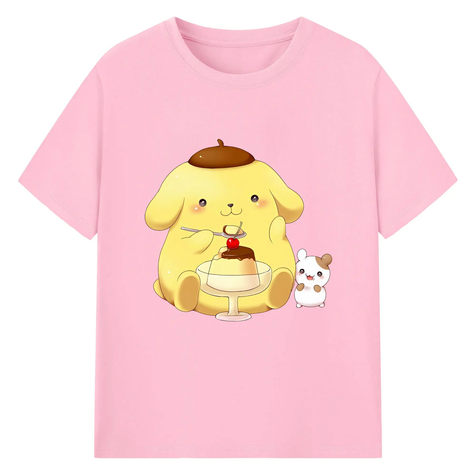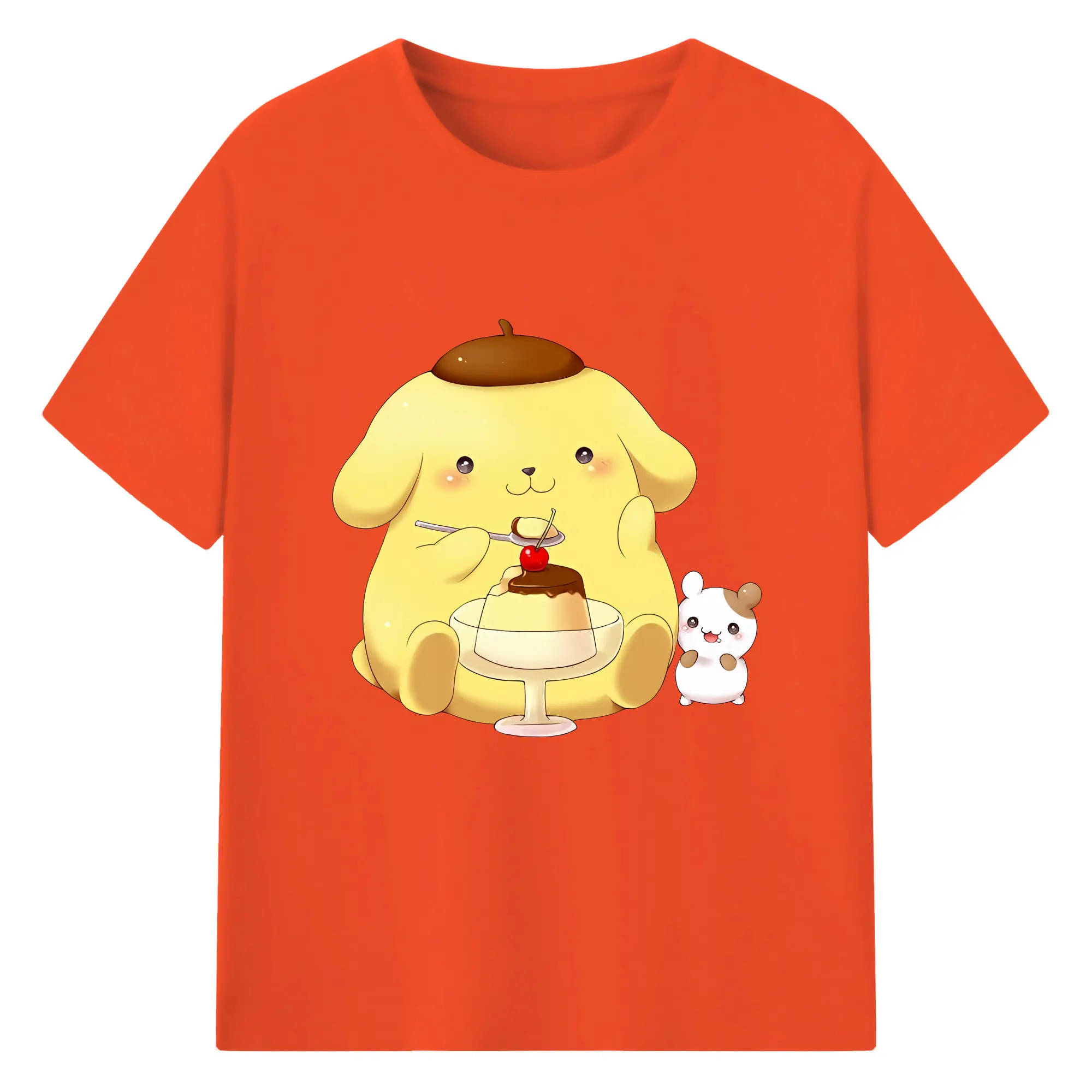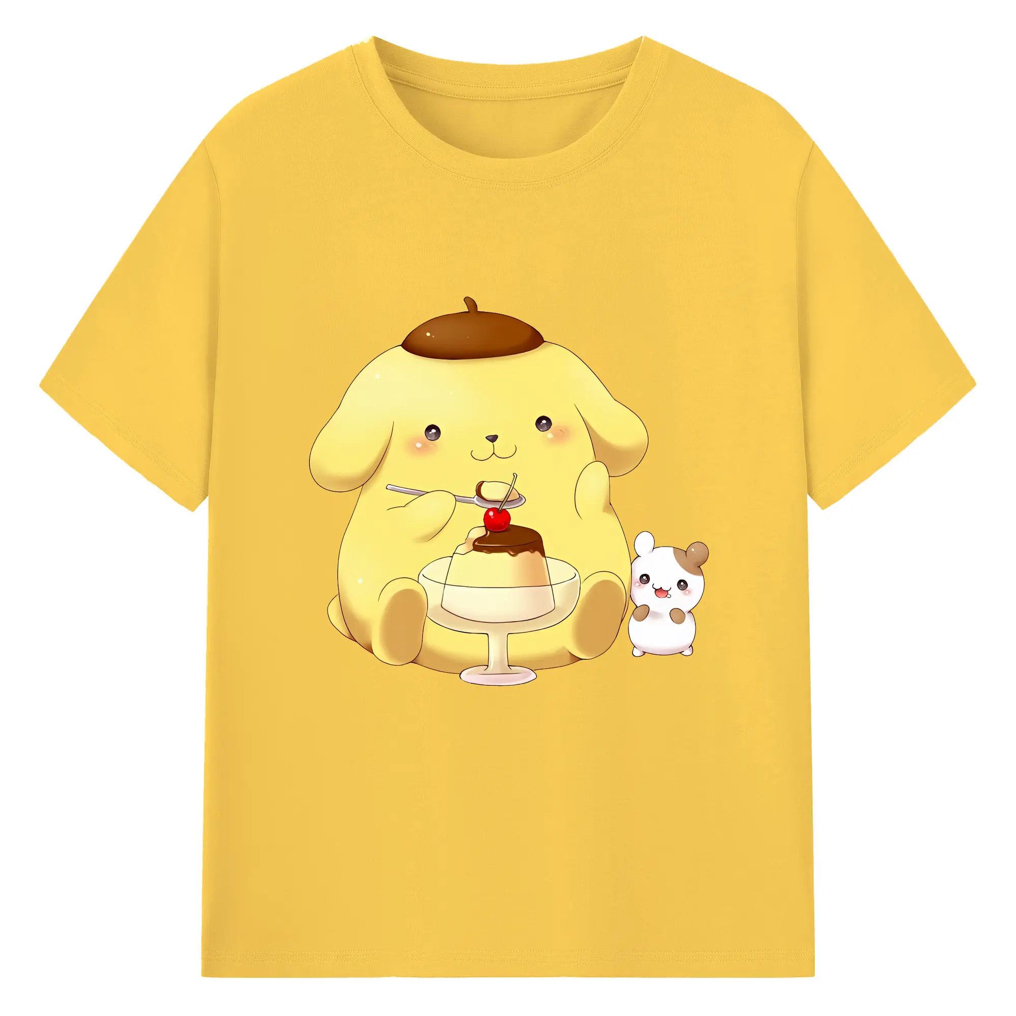 サンリオ グッズ,ポムポムプリン - 綿100% キッズTシャツ ・ フロントプリント ・ 快適 通気性 ・ スポーツ カジュアル 散歩用