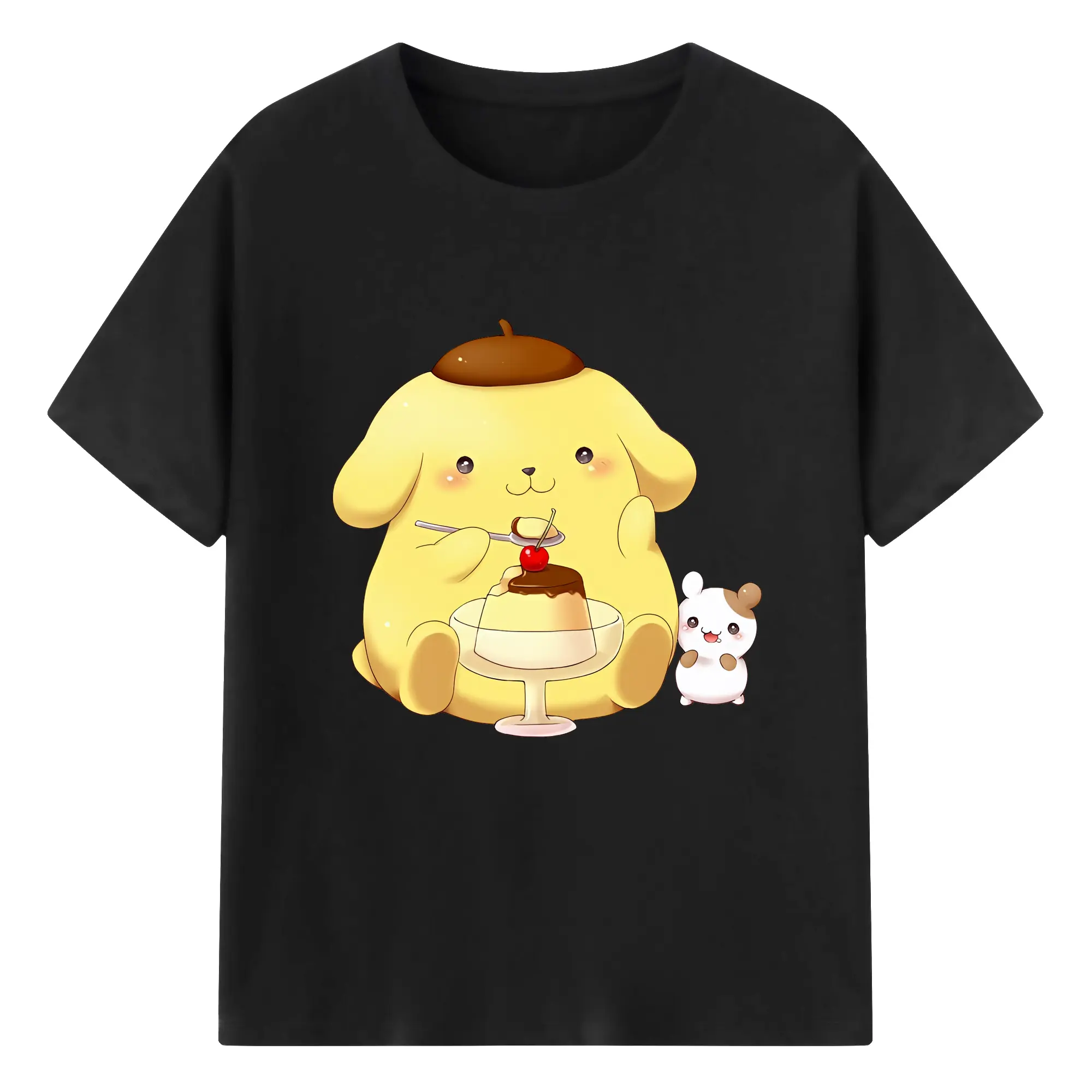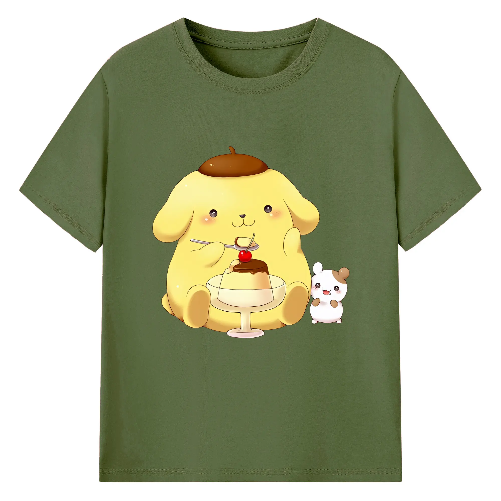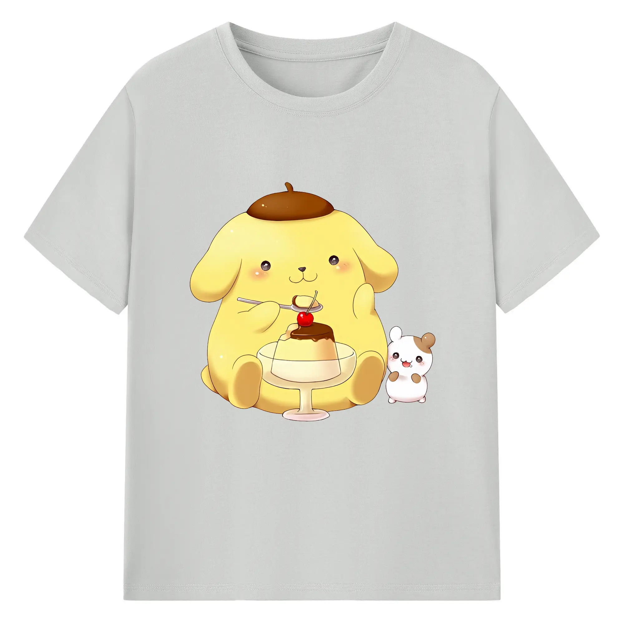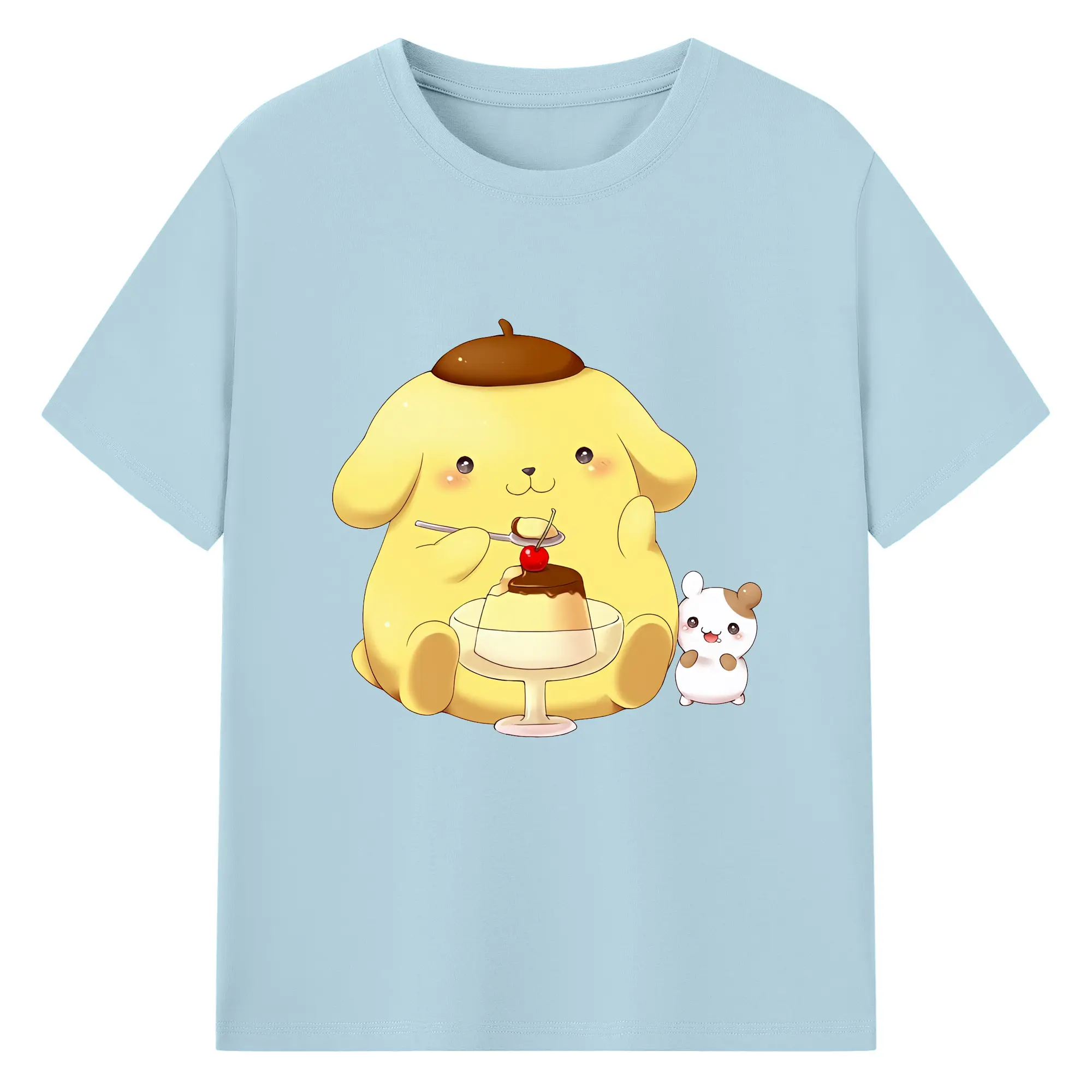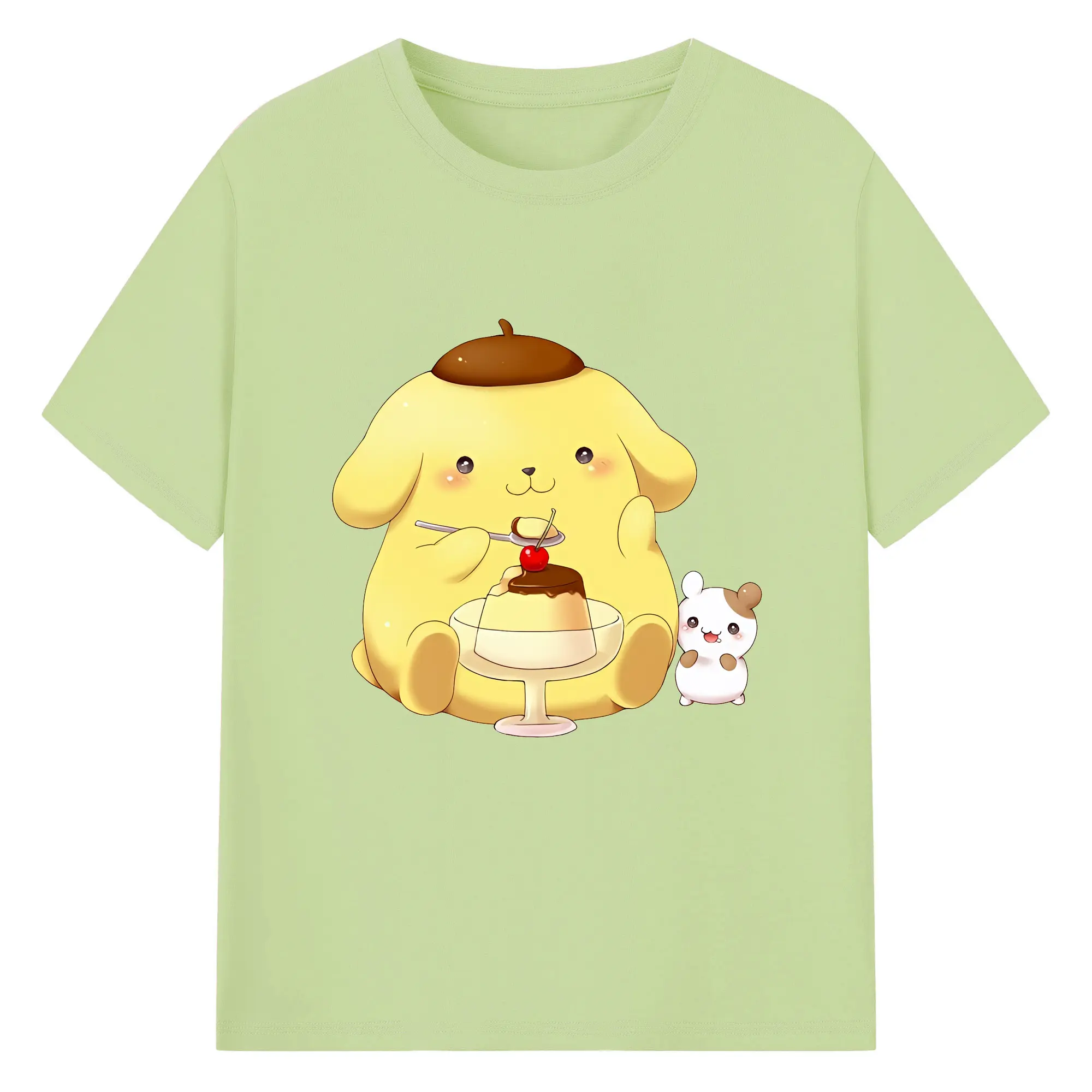 サンリオ グッズ,ポムポムプリン - 綿100% キッズTシャツ ・ フロントプリント ・ 快適 通気性 ・ スポーツ カジュアル 散歩用
