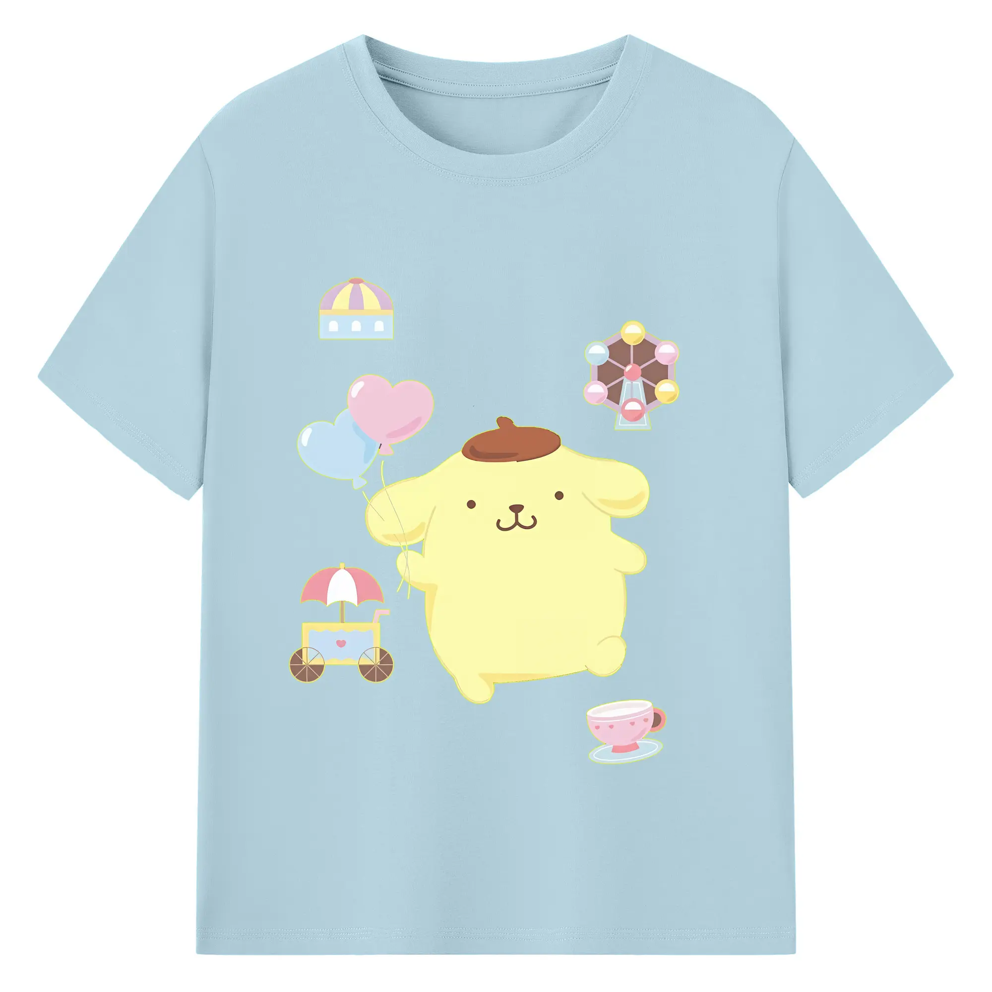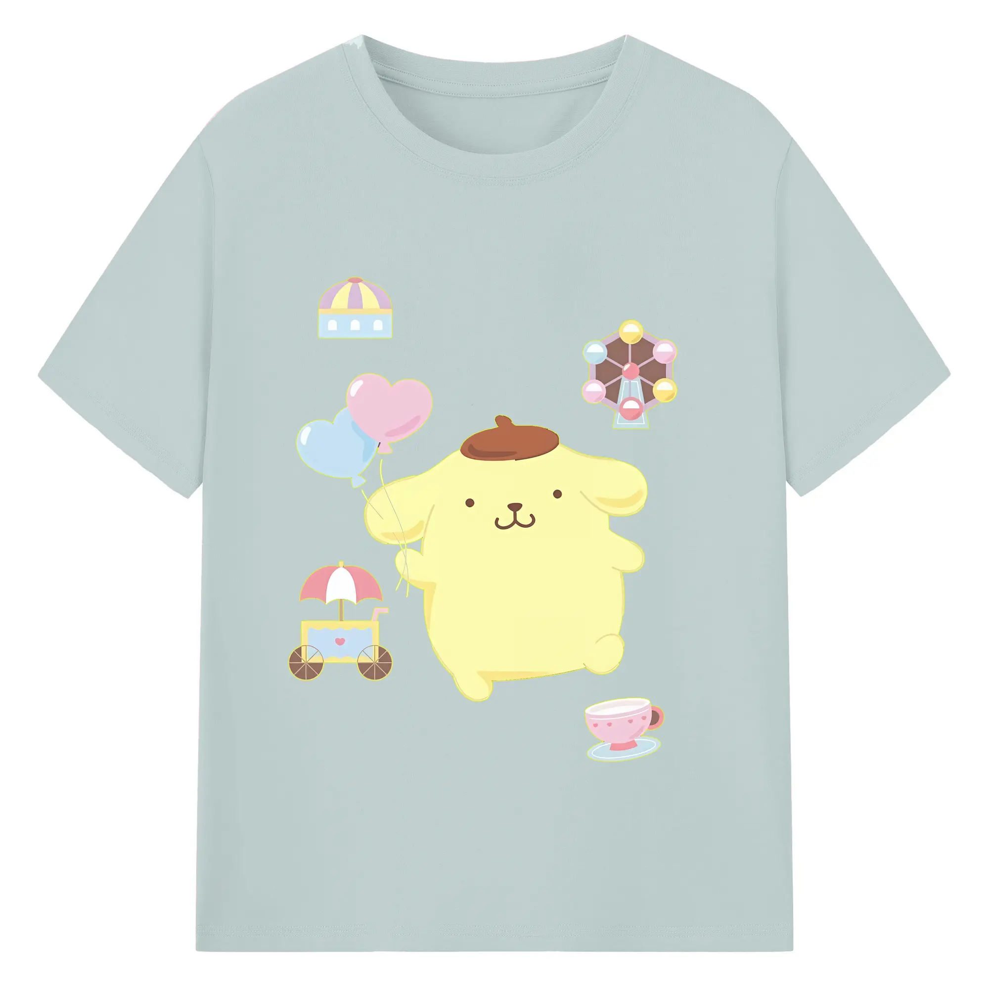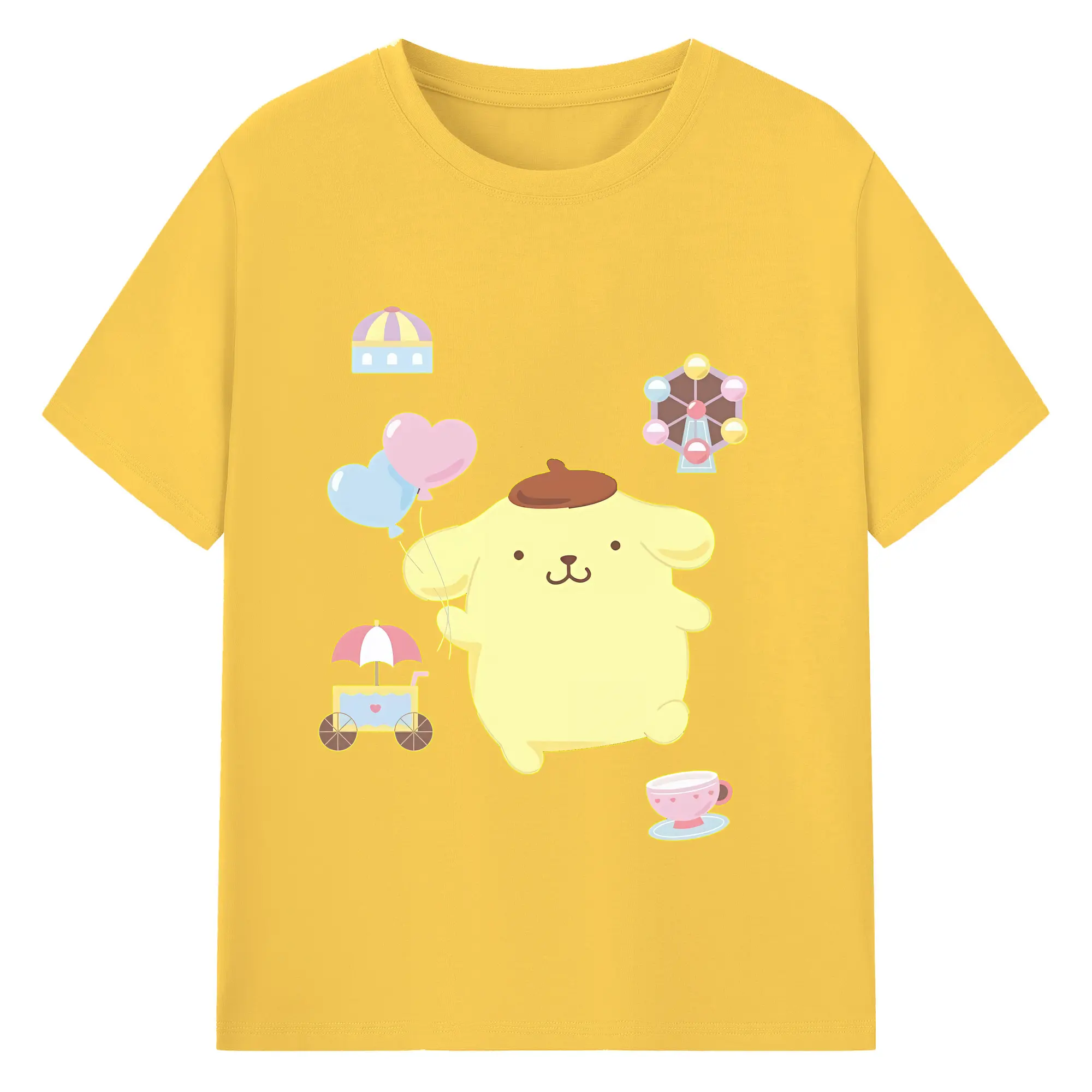 サンリオ グッズ,ポムポムプリン - 綿100% キッズTシャツ ・ フロントプリント ・ 快適 通気性 ・ スポーツ カジュアル 散歩用