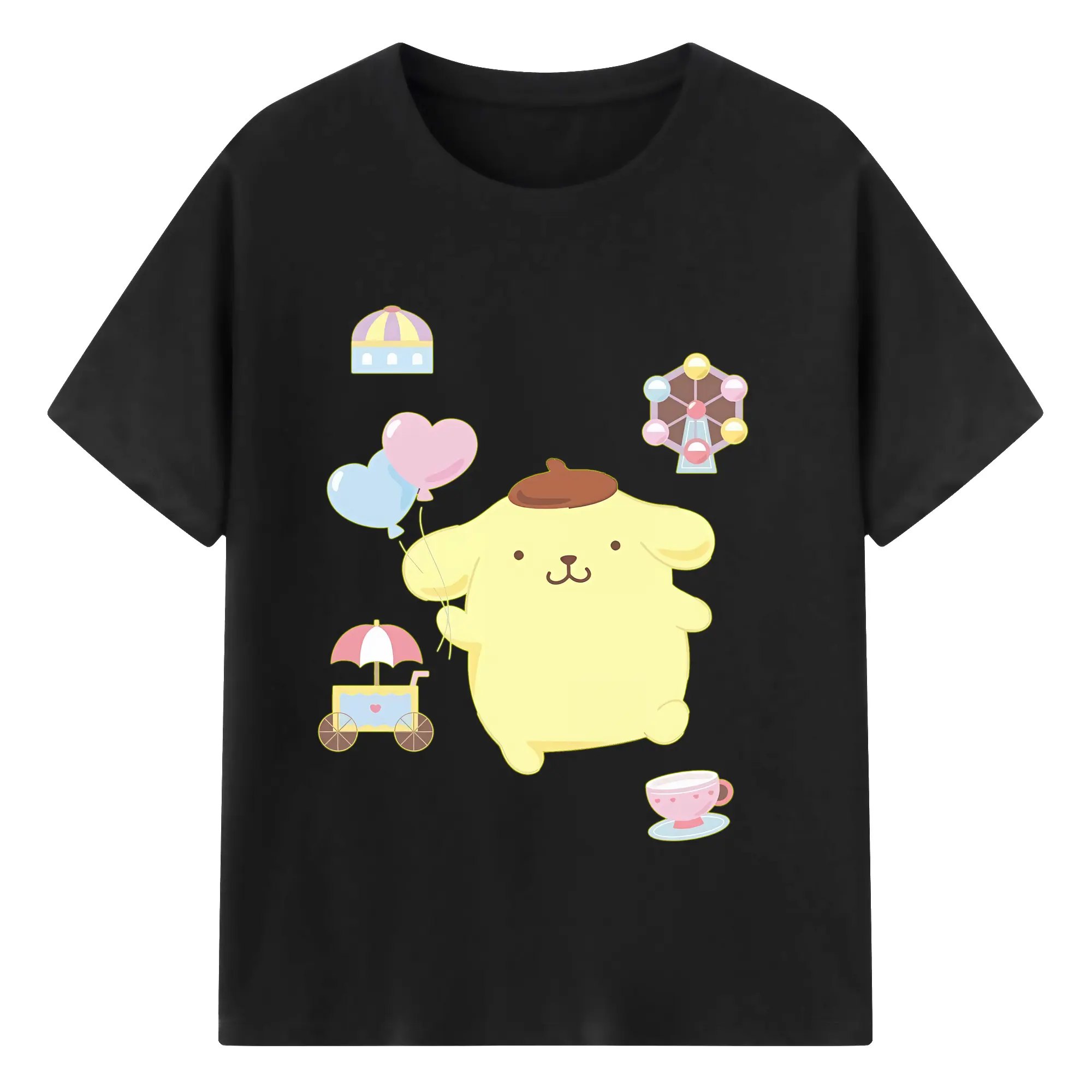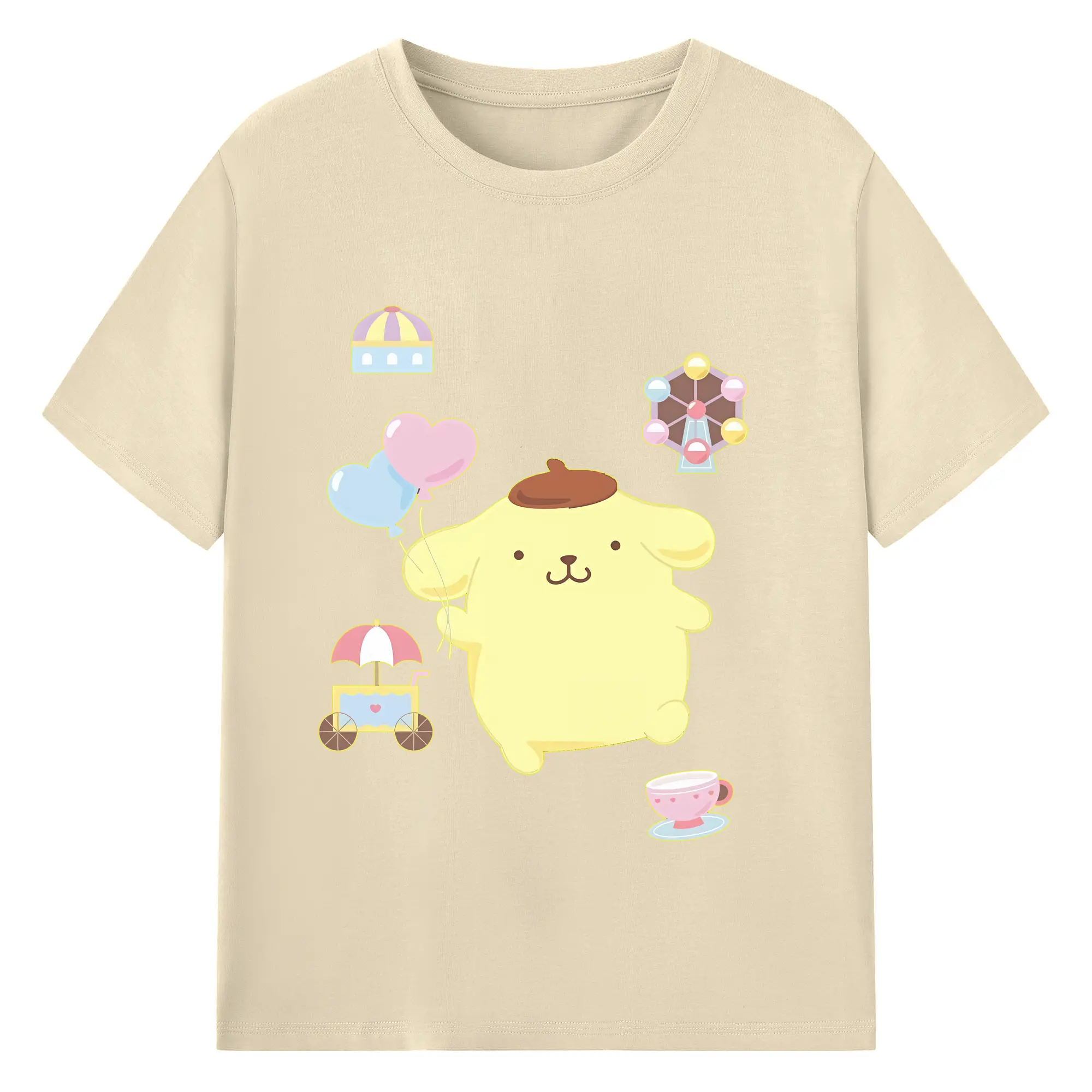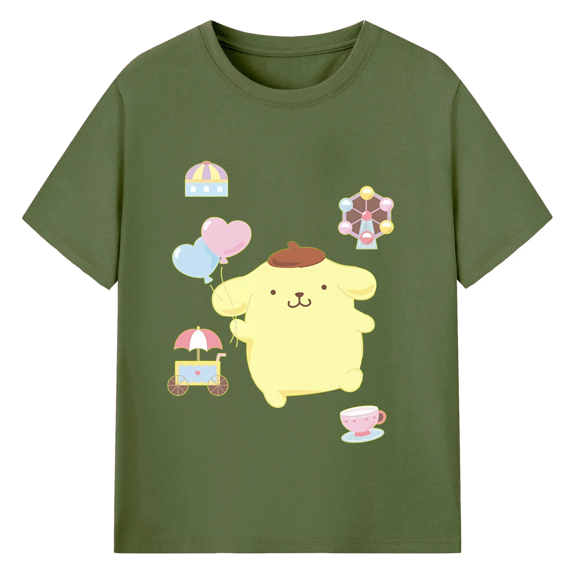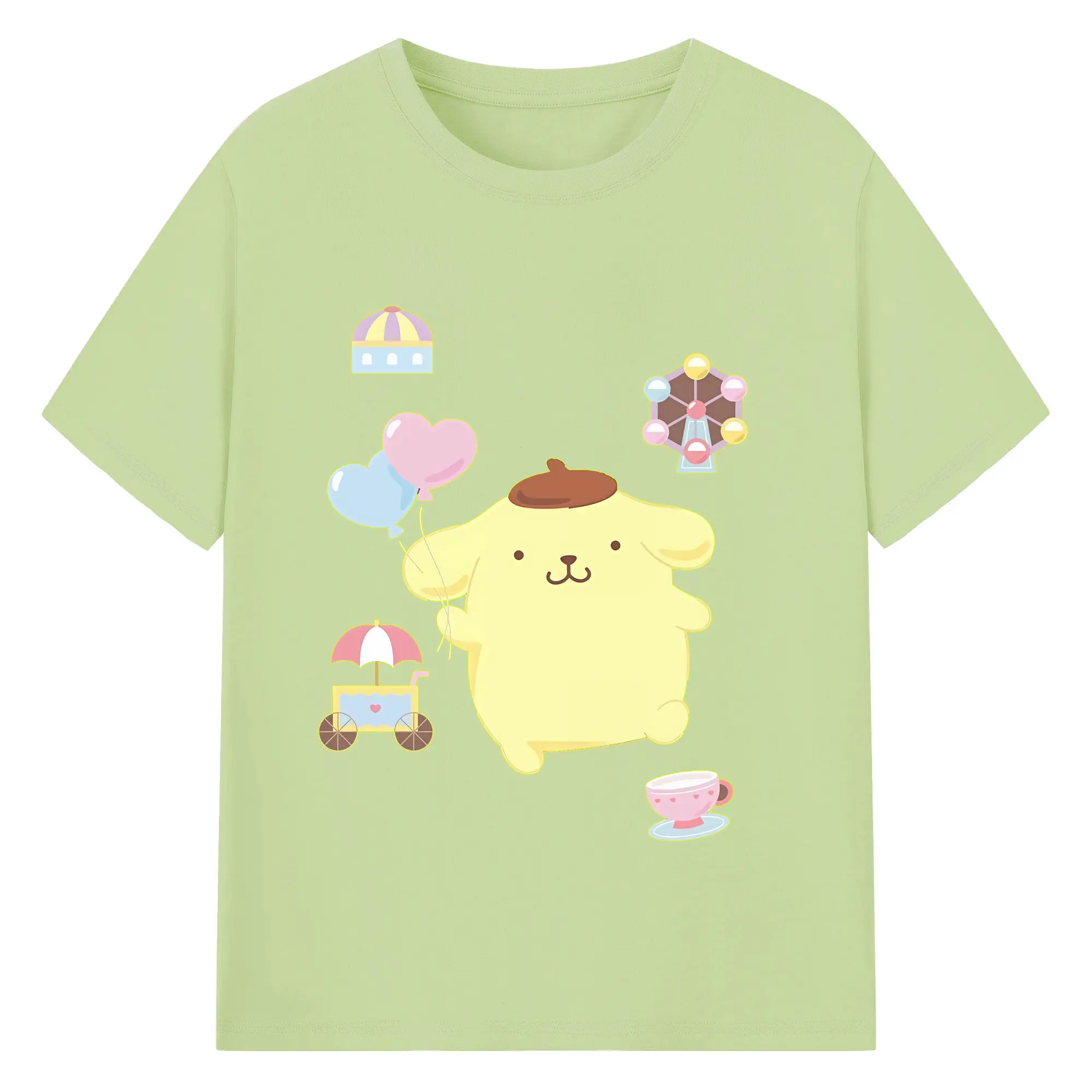 サンリオ グッズ,ポムポムプリン - 綿100% キッズTシャツ ・ フロントプリント ・ 快適 通気性 ・ スポーツ カジュアル 散歩用