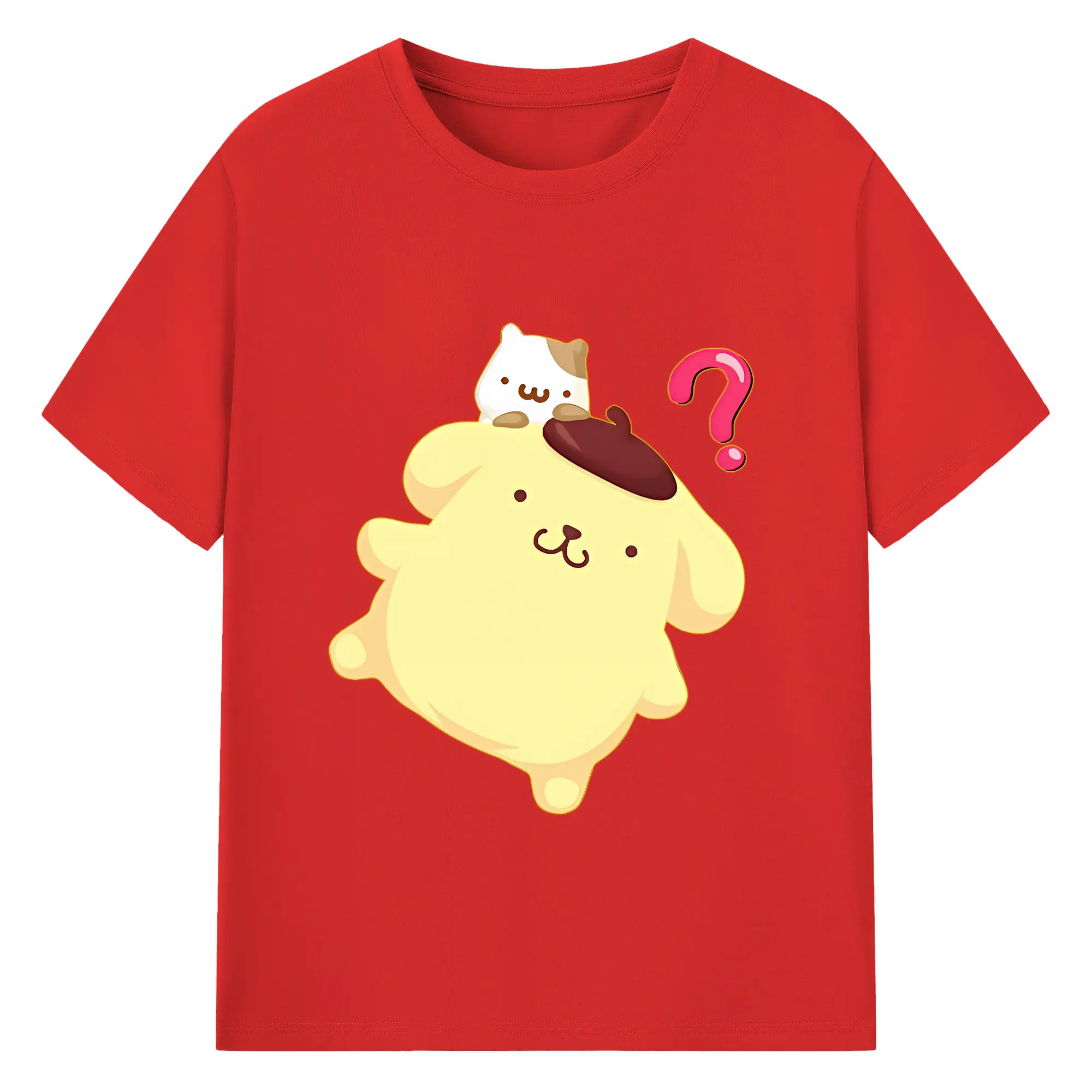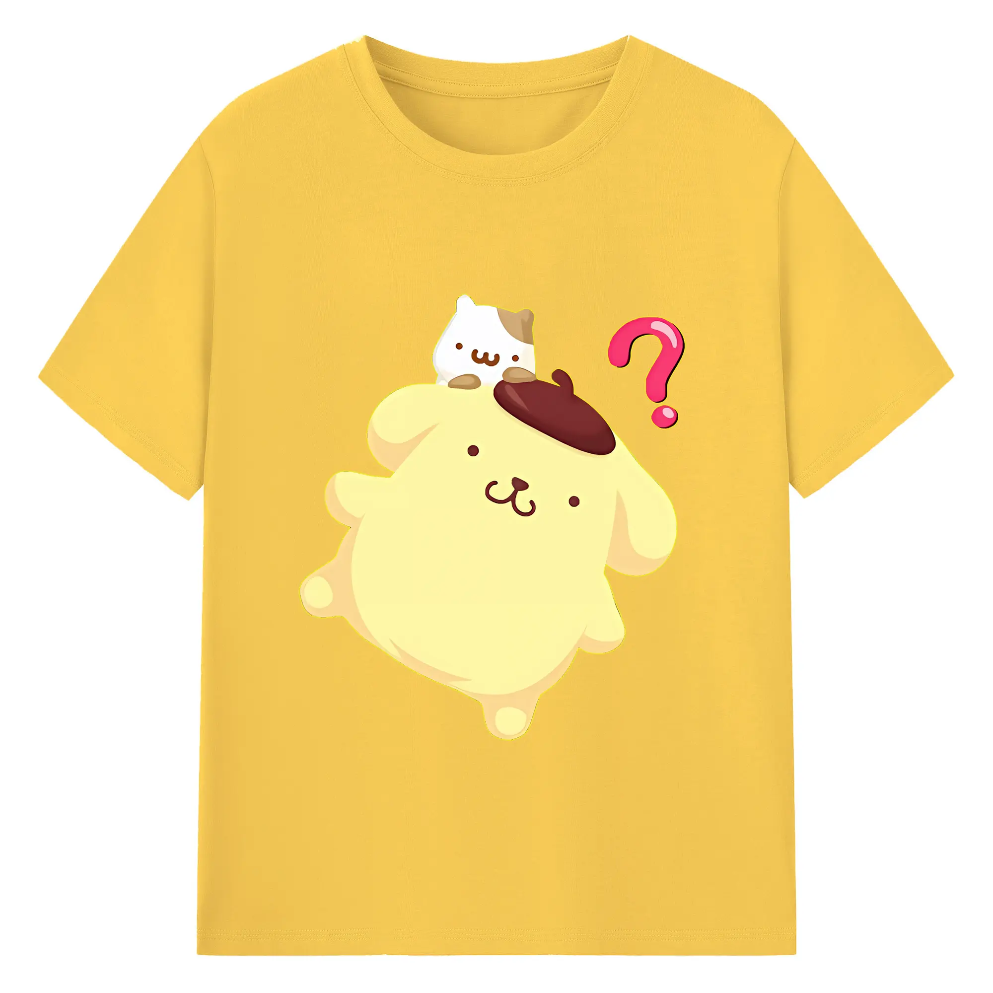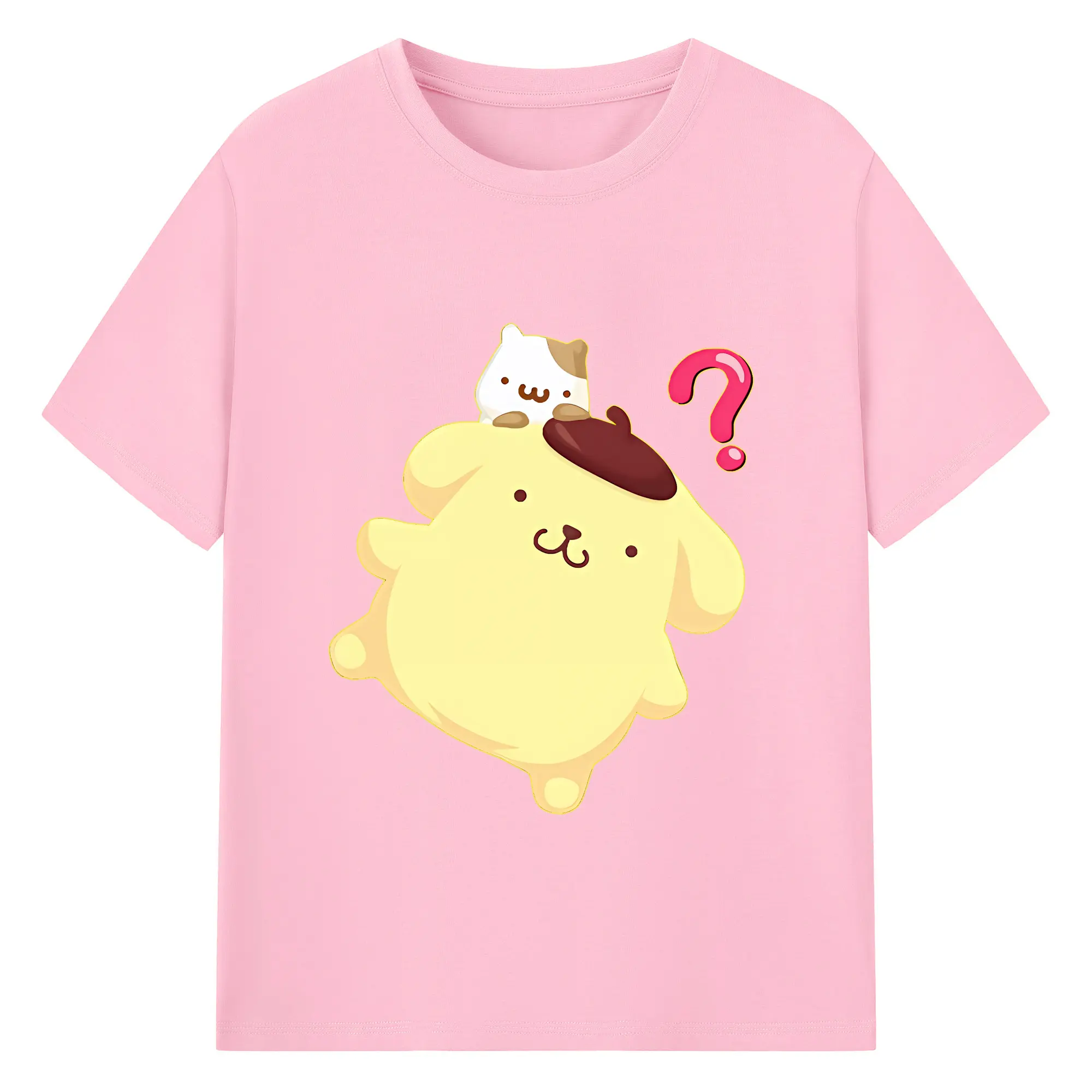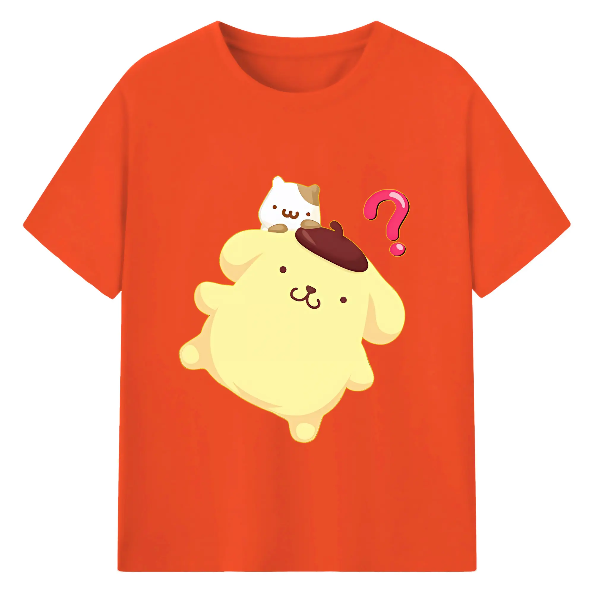 サンリオ グッズ,ポムポムプリン - 綿100% キッズTシャツ ・ フロントプリント ・ 快適 通気性 ・ スポーツ カジュアル 散歩用