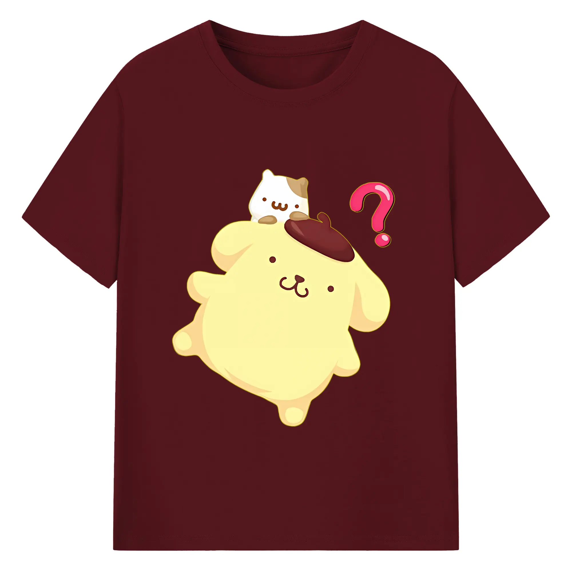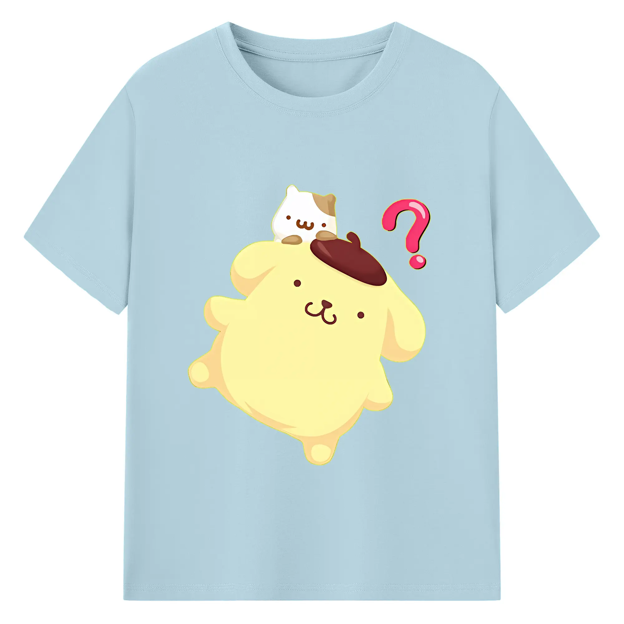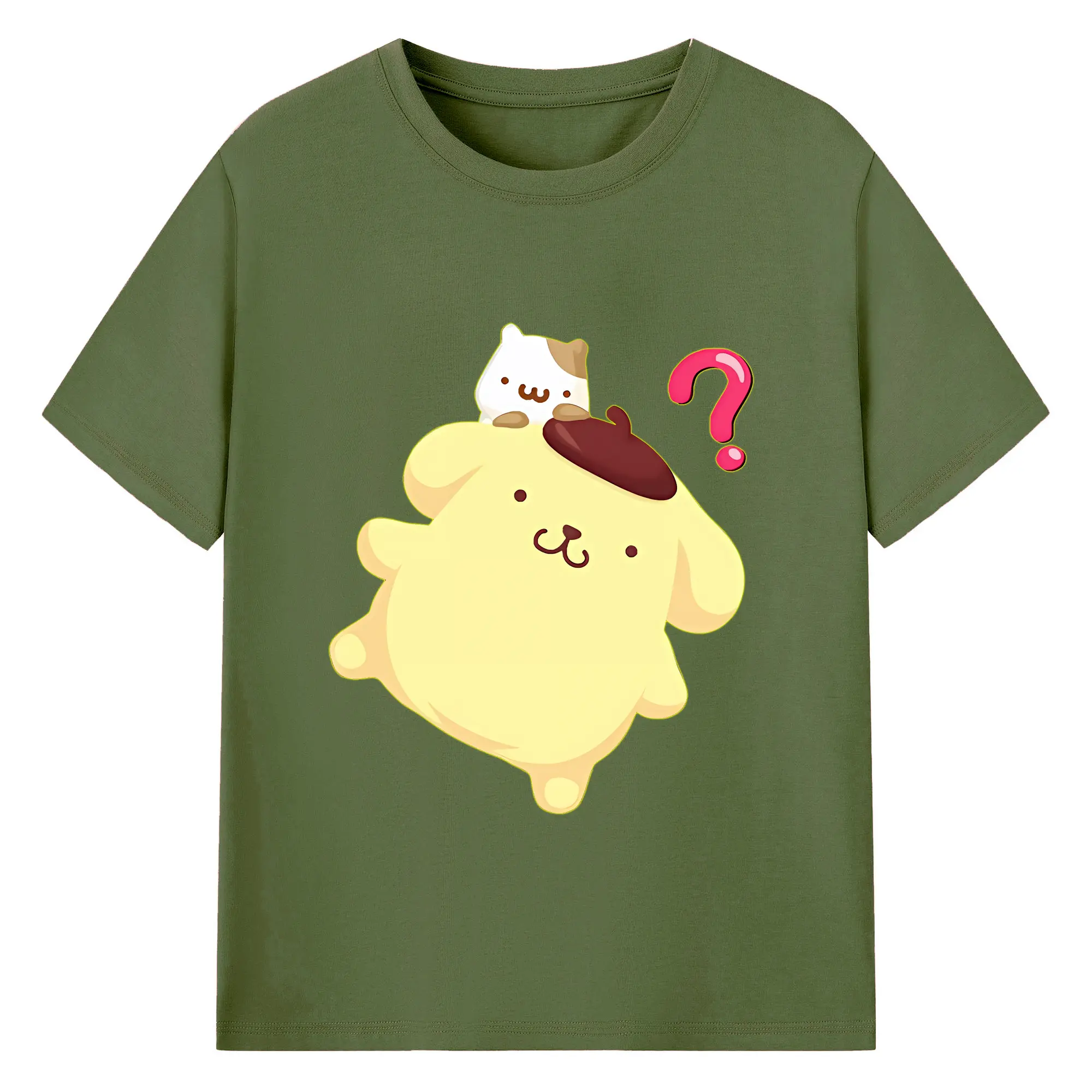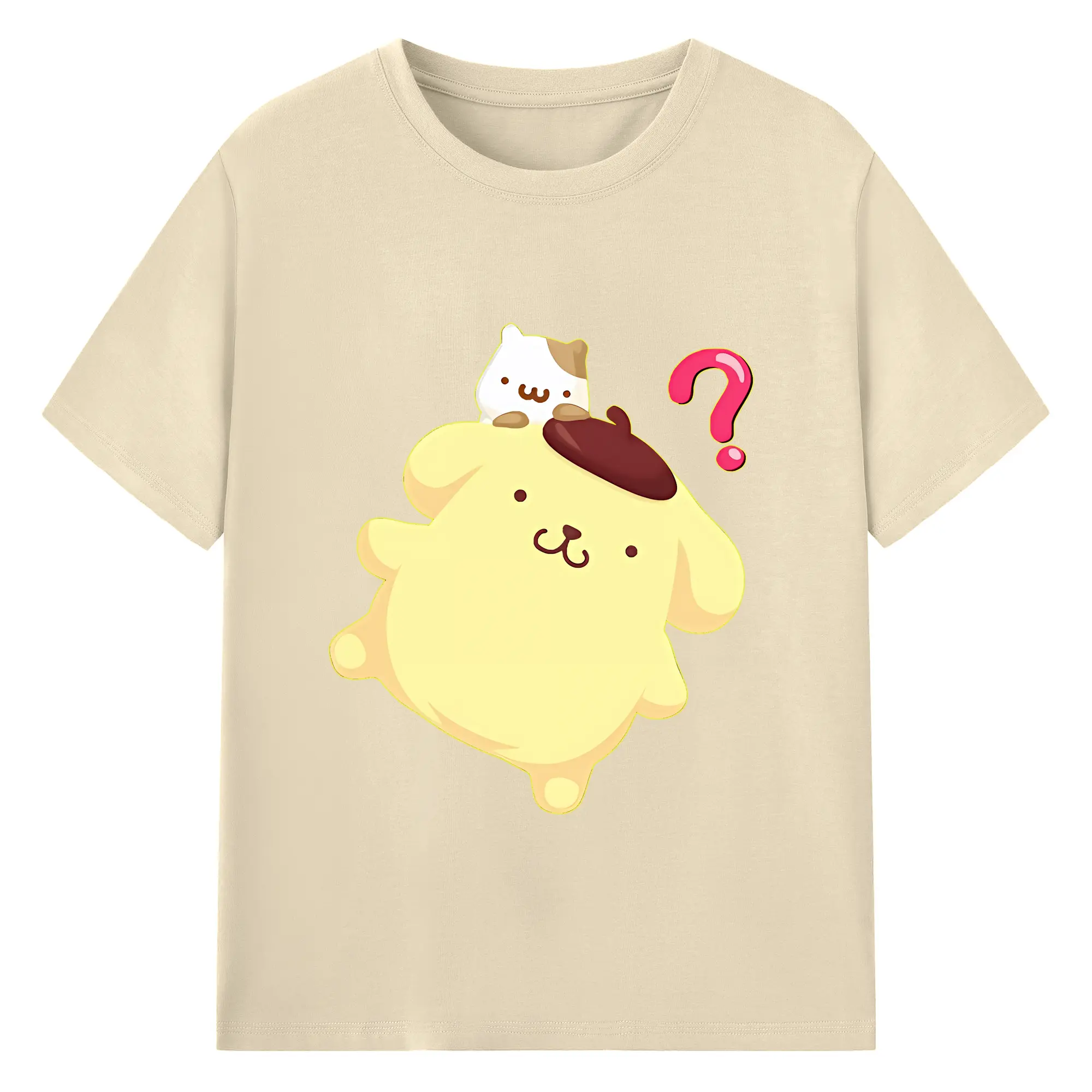 サンリオ グッズ,ポムポムプリン - 綿100% キッズTシャツ ・ フロントプリント ・ 快適 通気性 ・ スポーツ カジュアル 散歩用