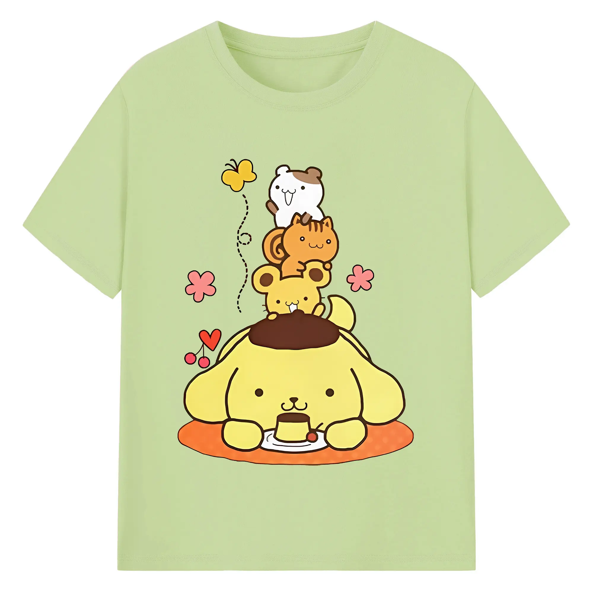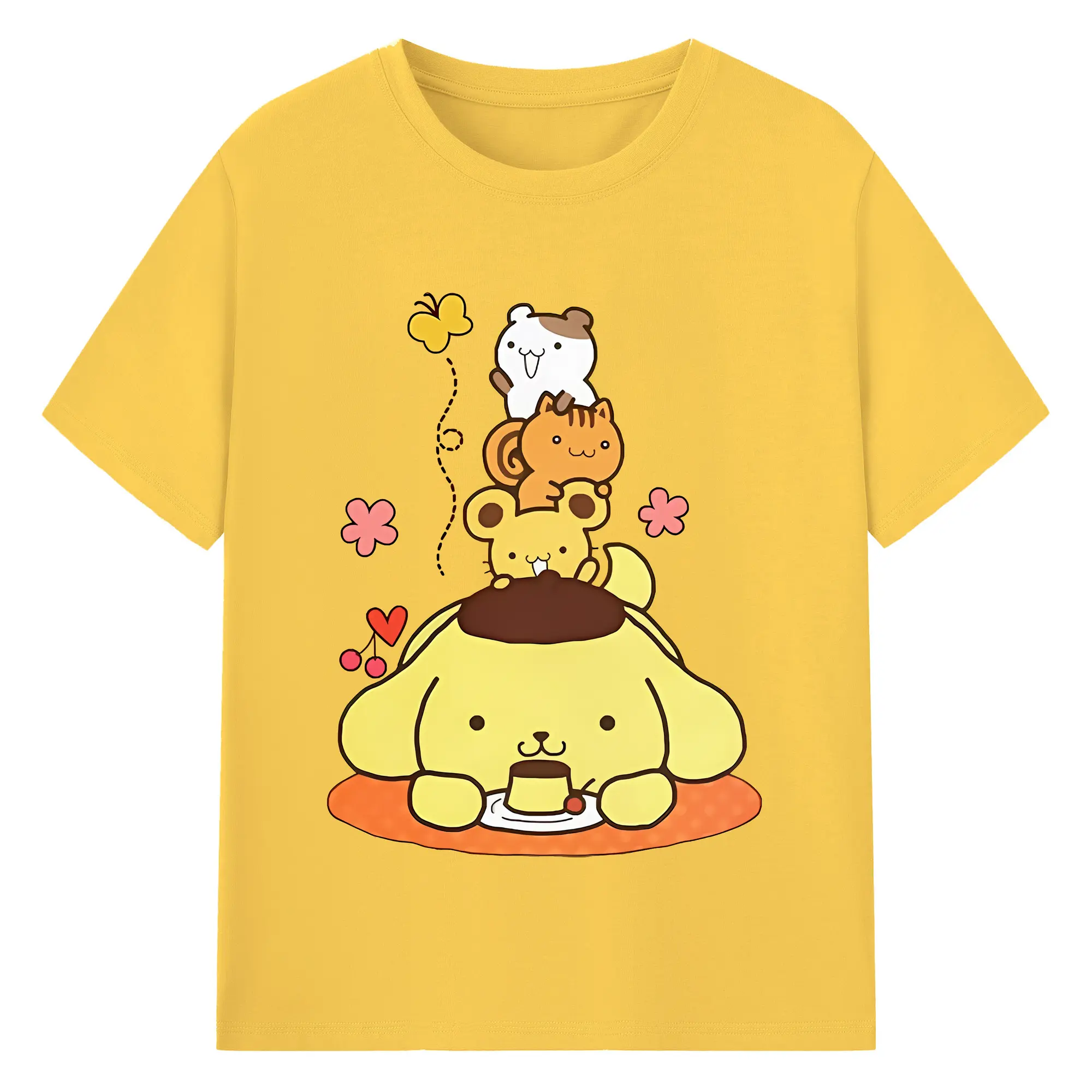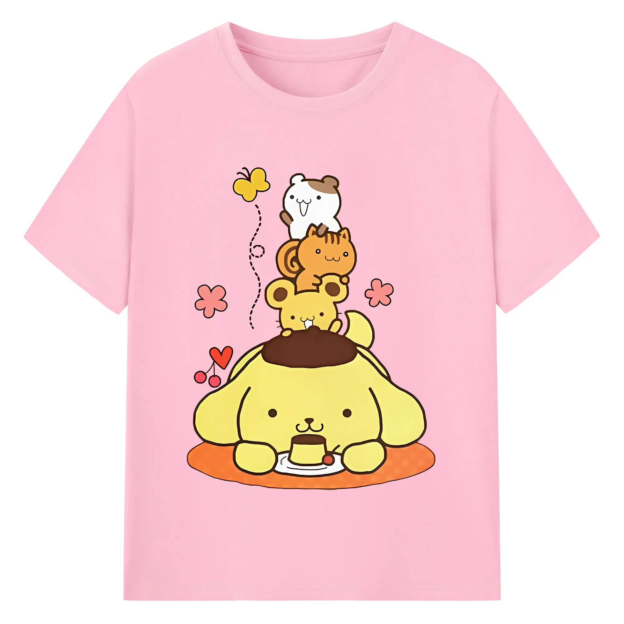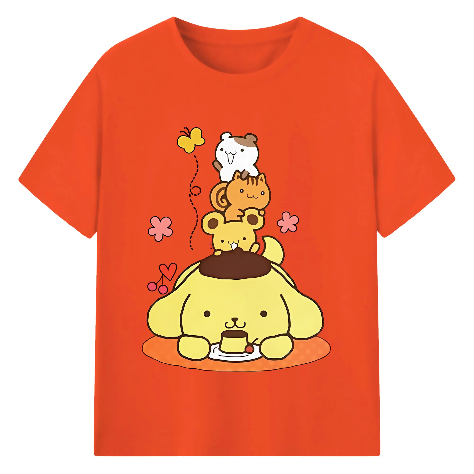 サンリオ グッズ,ポムポムプリン - 綿100% キッズTシャツ ・ フロントプリント ・ 快適 通気性 ・ スポーツ カジュアル 散歩用
