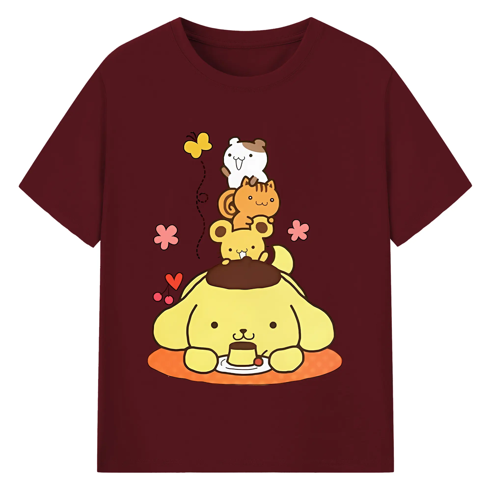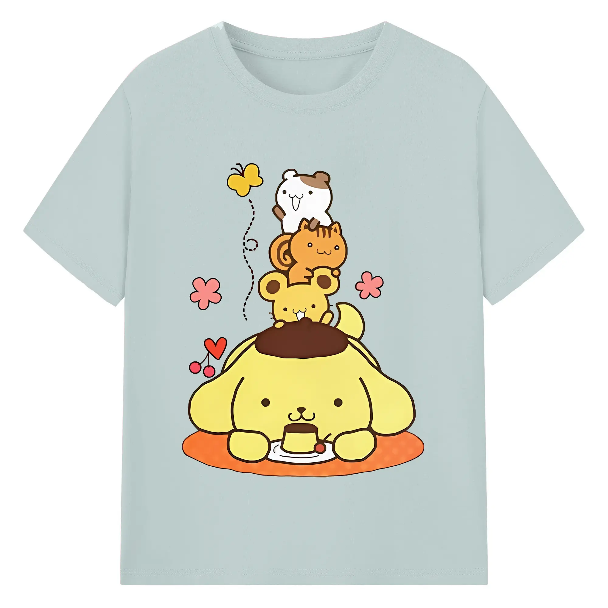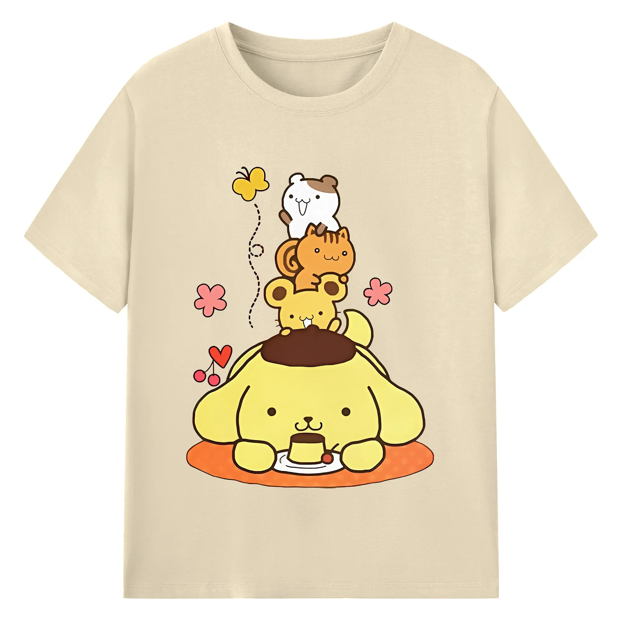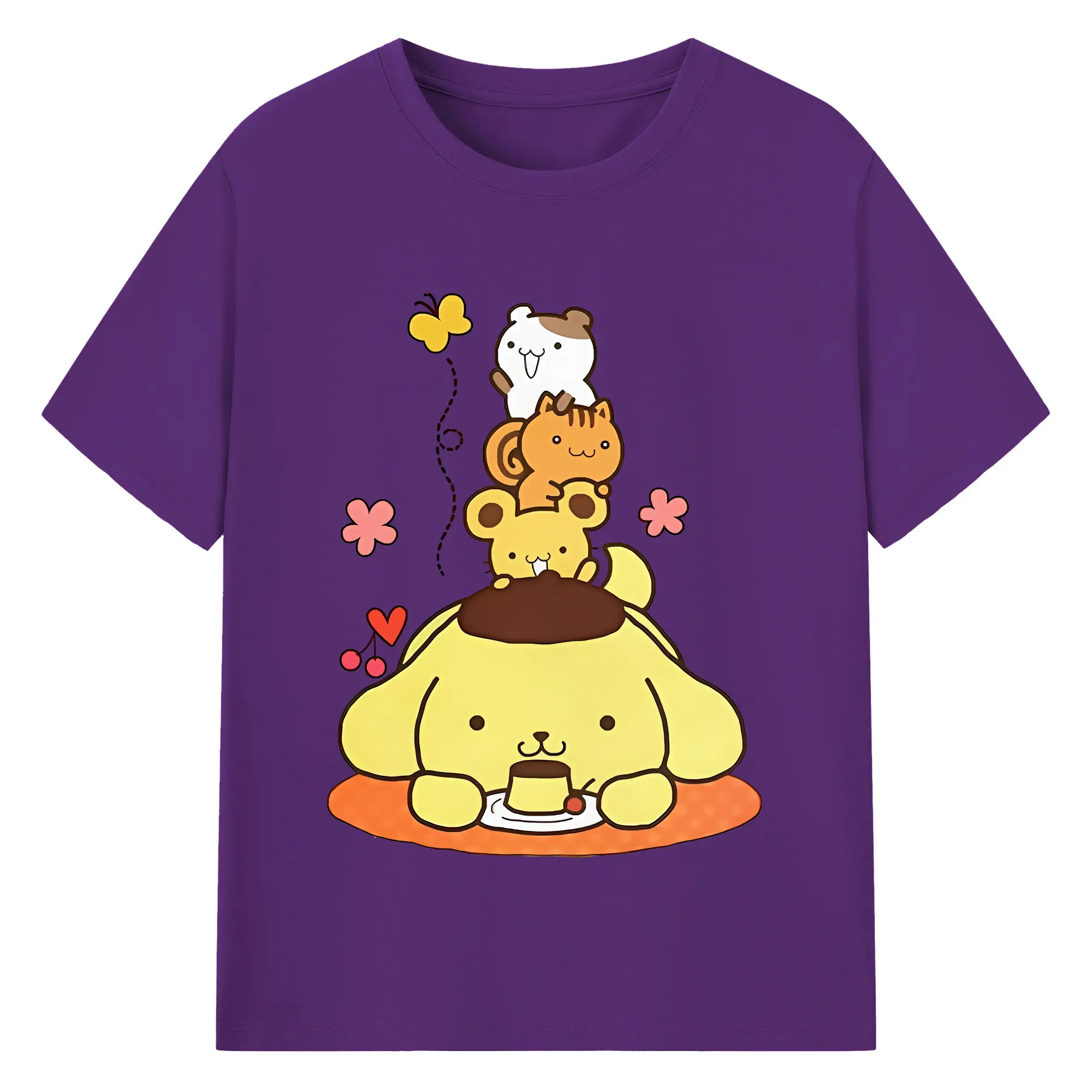 サンリオ グッズ,ポムポムプリン - 綿100% キッズTシャツ ・ フロントプリント ・ 快適 通気性 ・ スポーツ カジュアル 散歩用