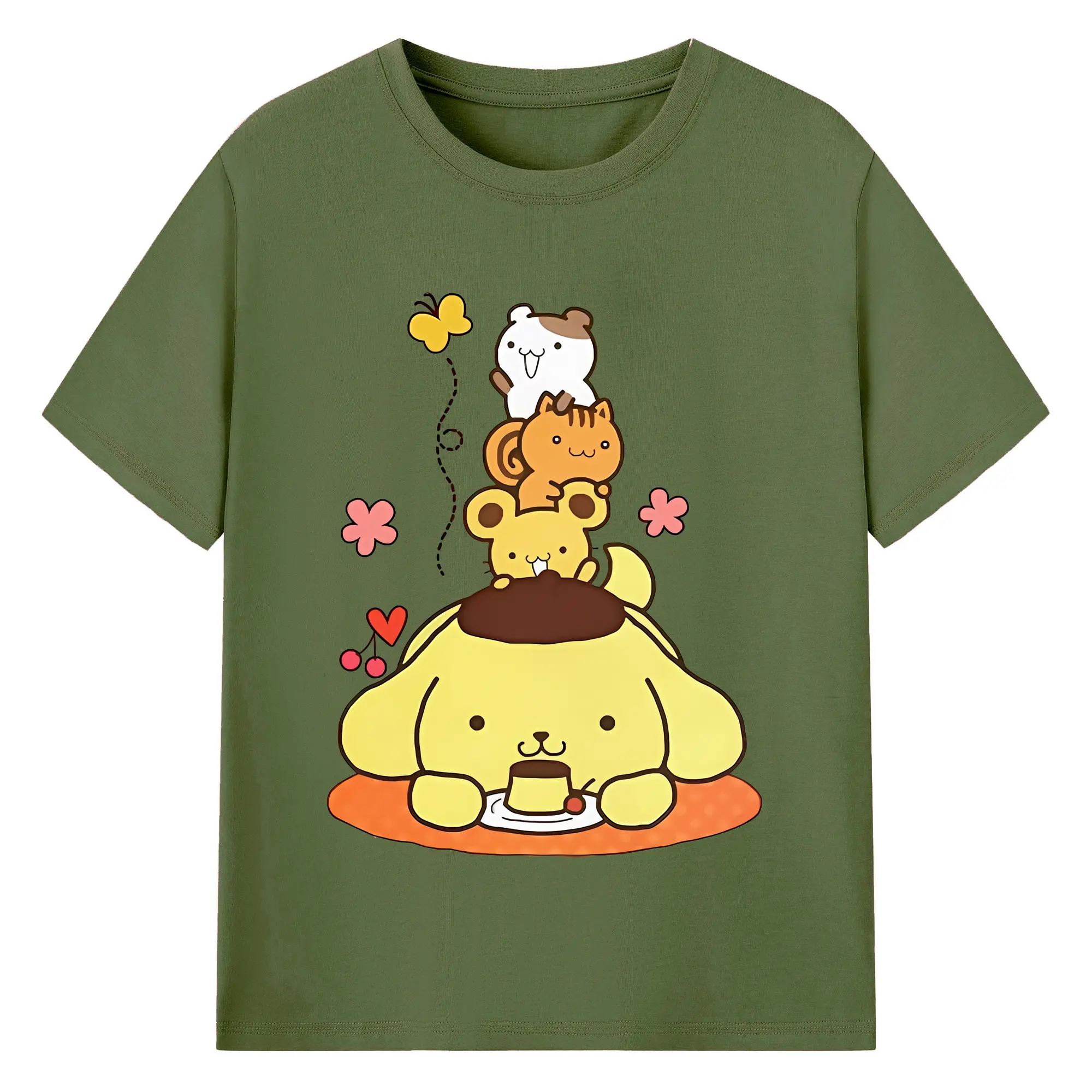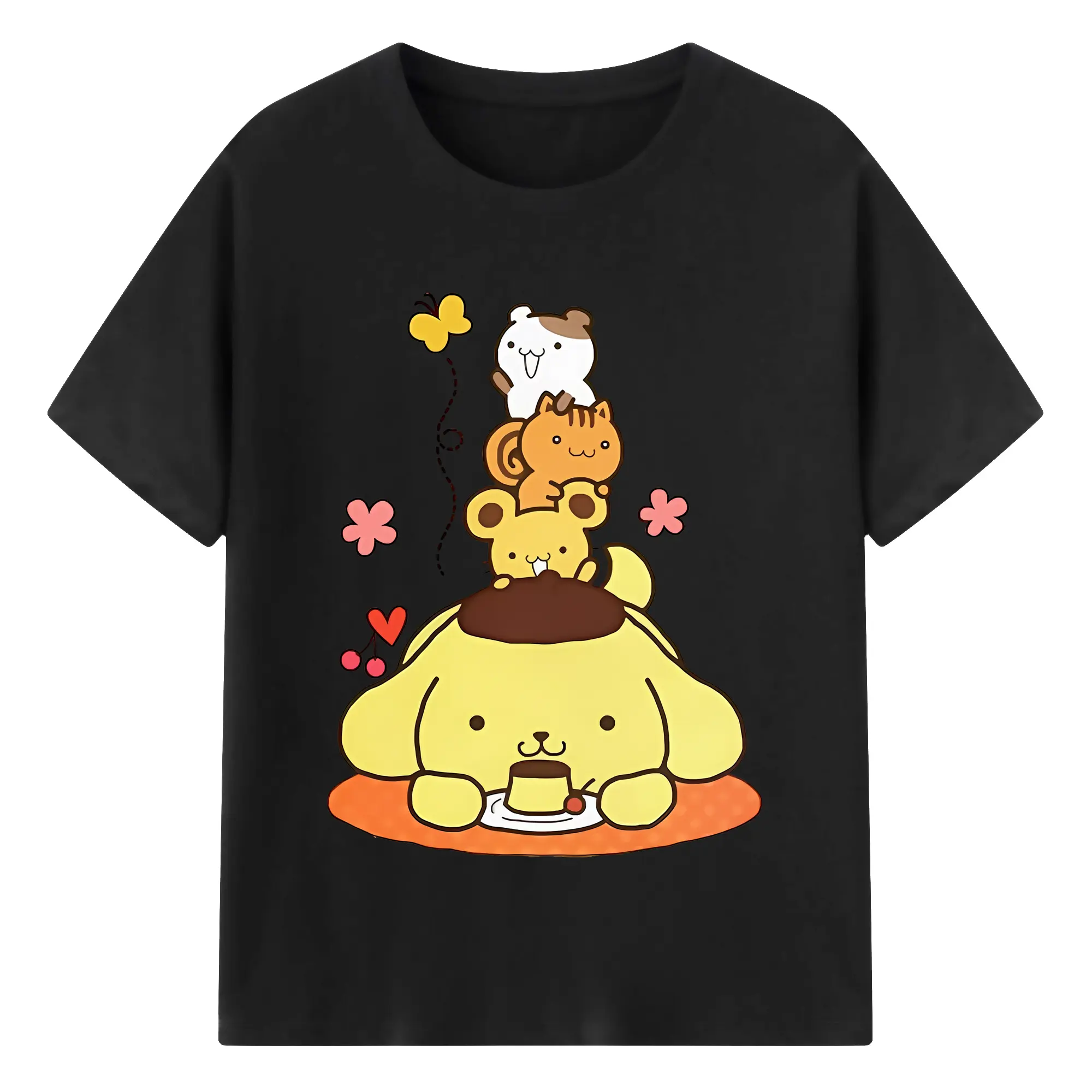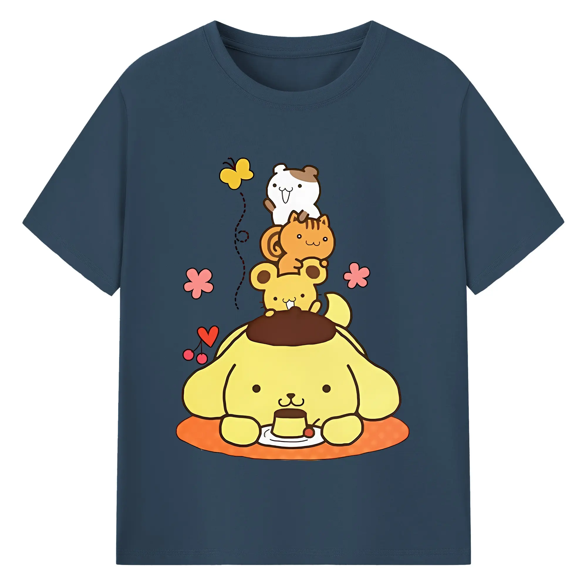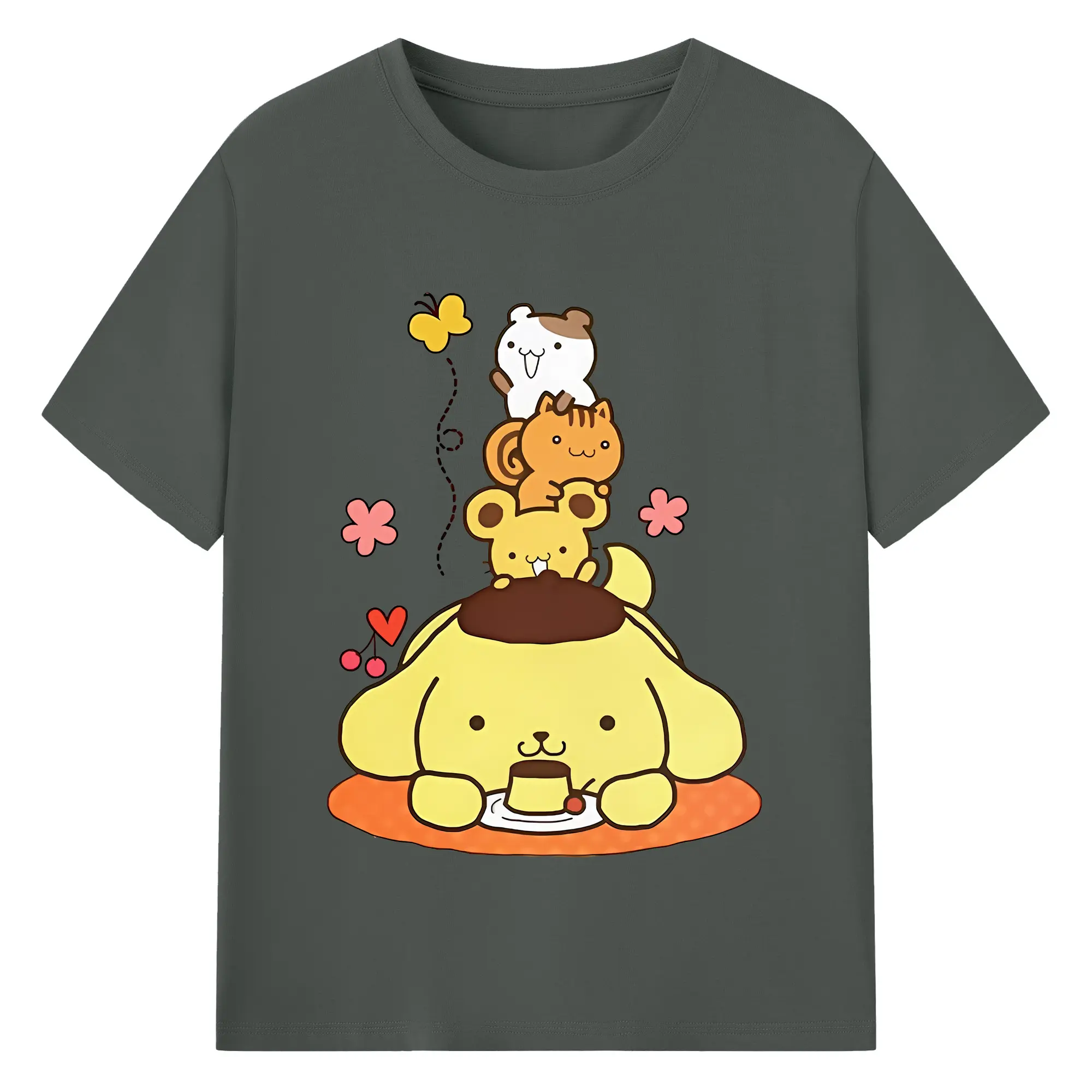 サンリオ グッズ,ポムポムプリン - 綿100% キッズTシャツ ・ フロントプリント ・ 快適 通気性 ・ スポーツ カジュアル 散歩用