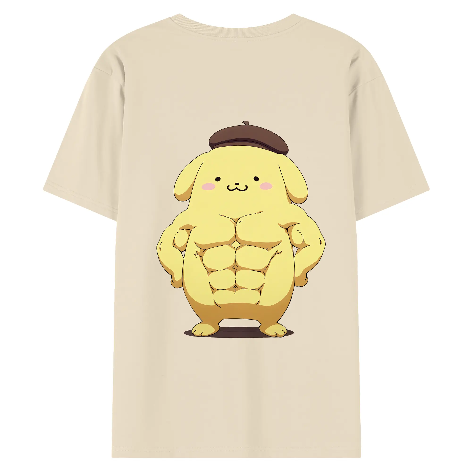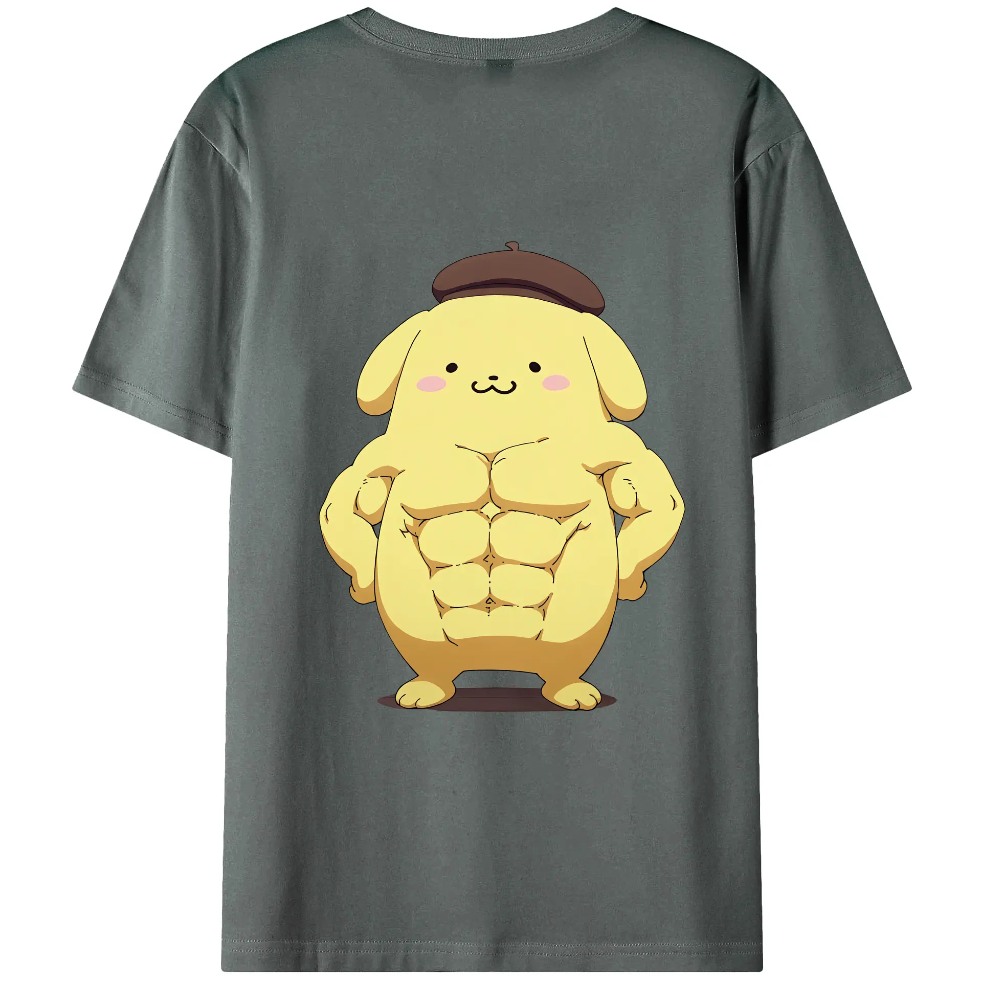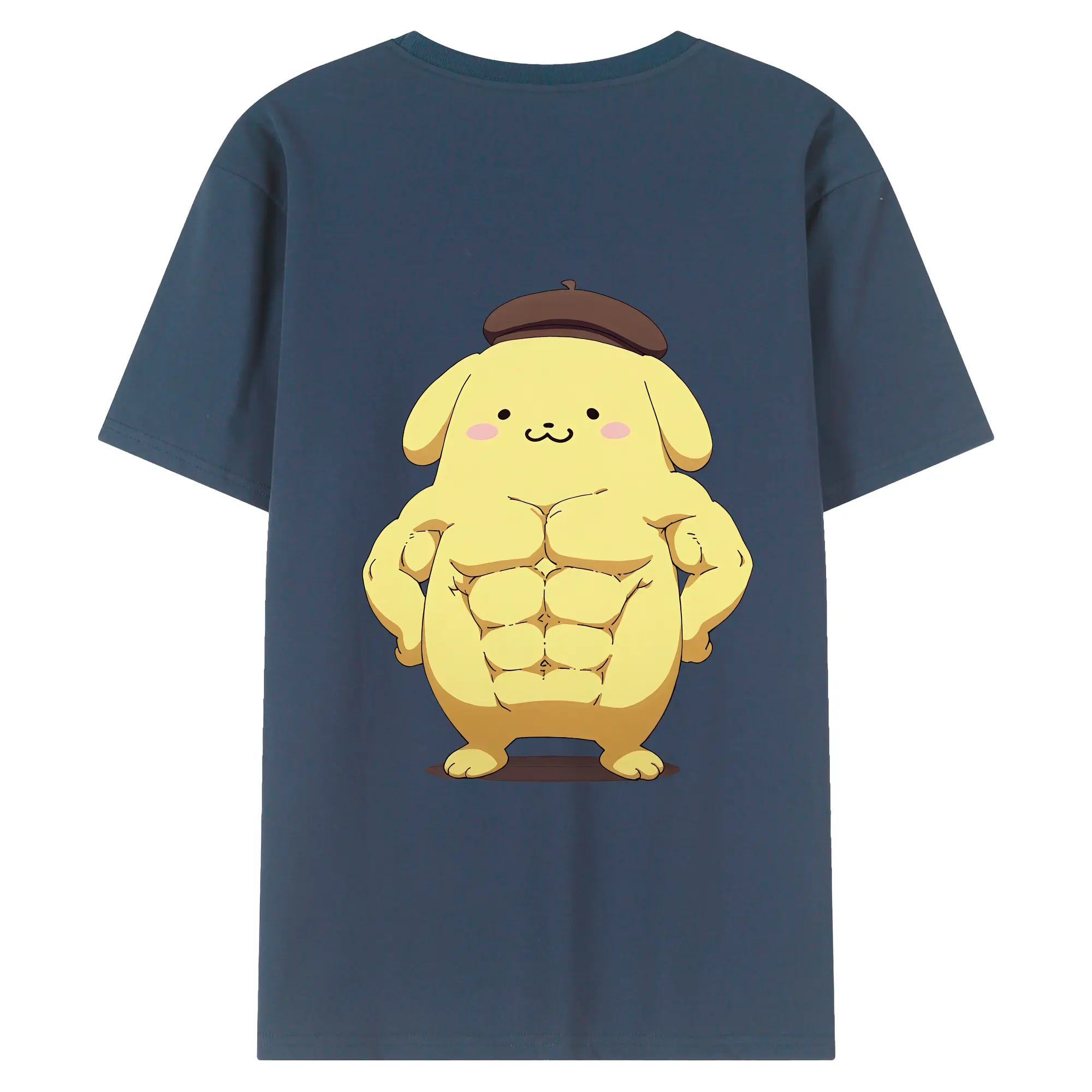 サンリオ グッズ,ポムポムプリン - 綿100% ヴィンテージ風 半袖Tシャツ ・ 背面プリント ・ 柔らか肌触り ・ 通気性 快適 ・ スポーツ カジュアル 外出用