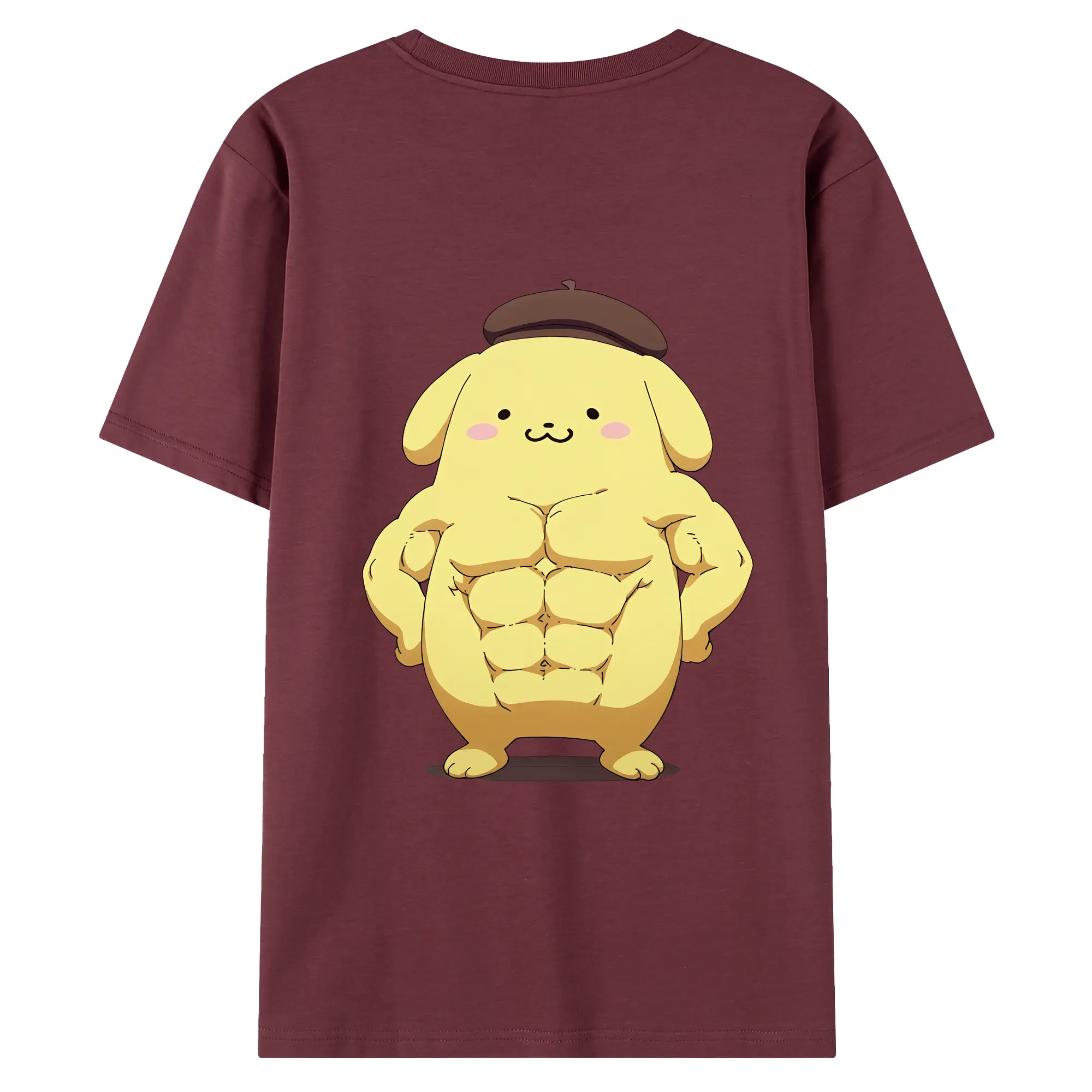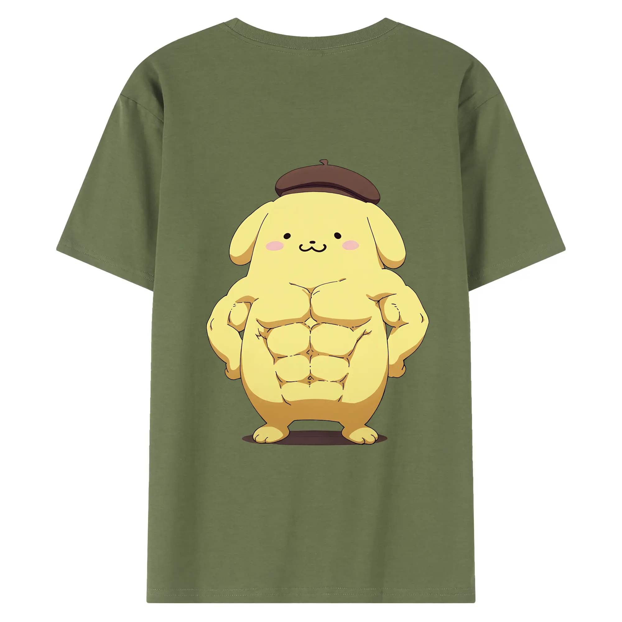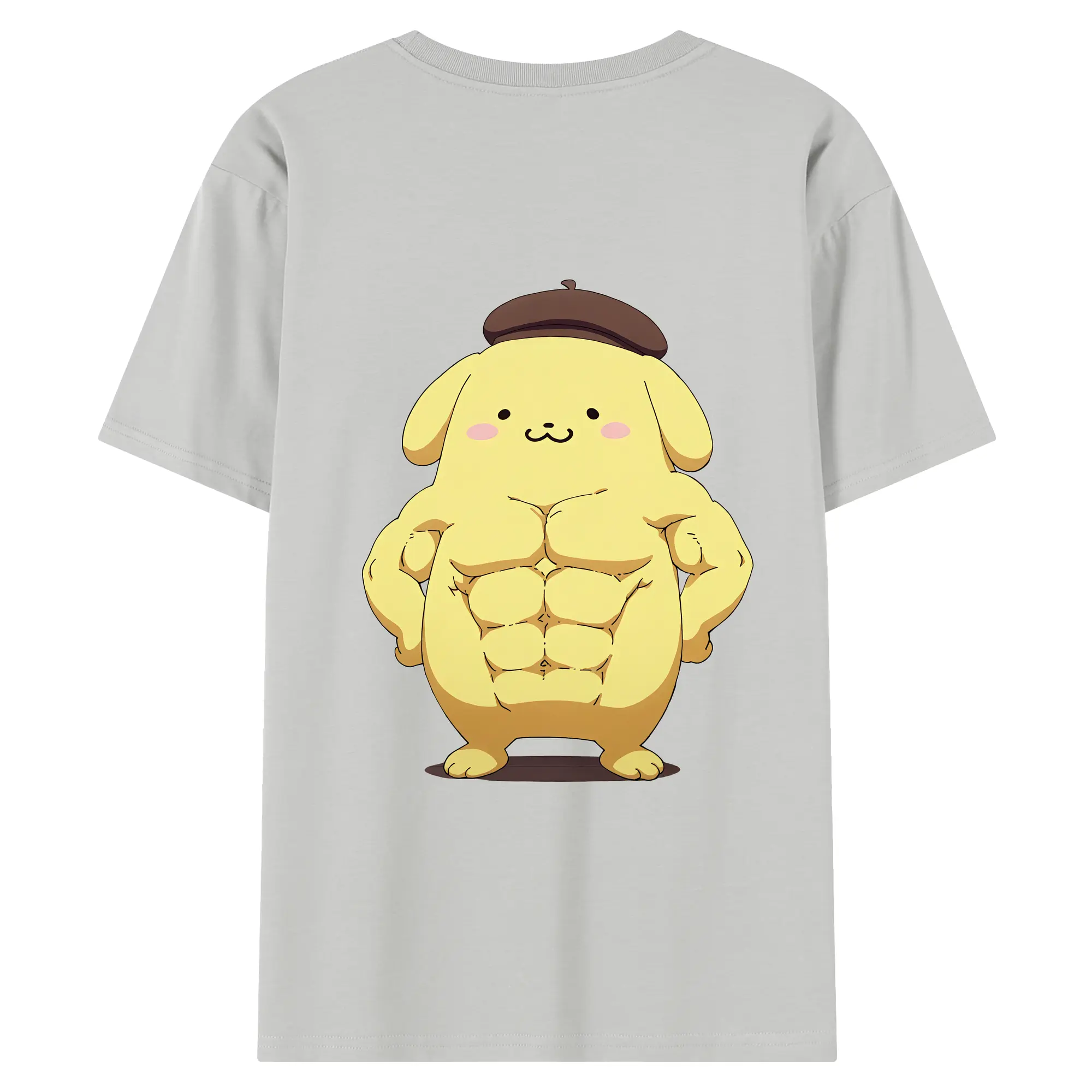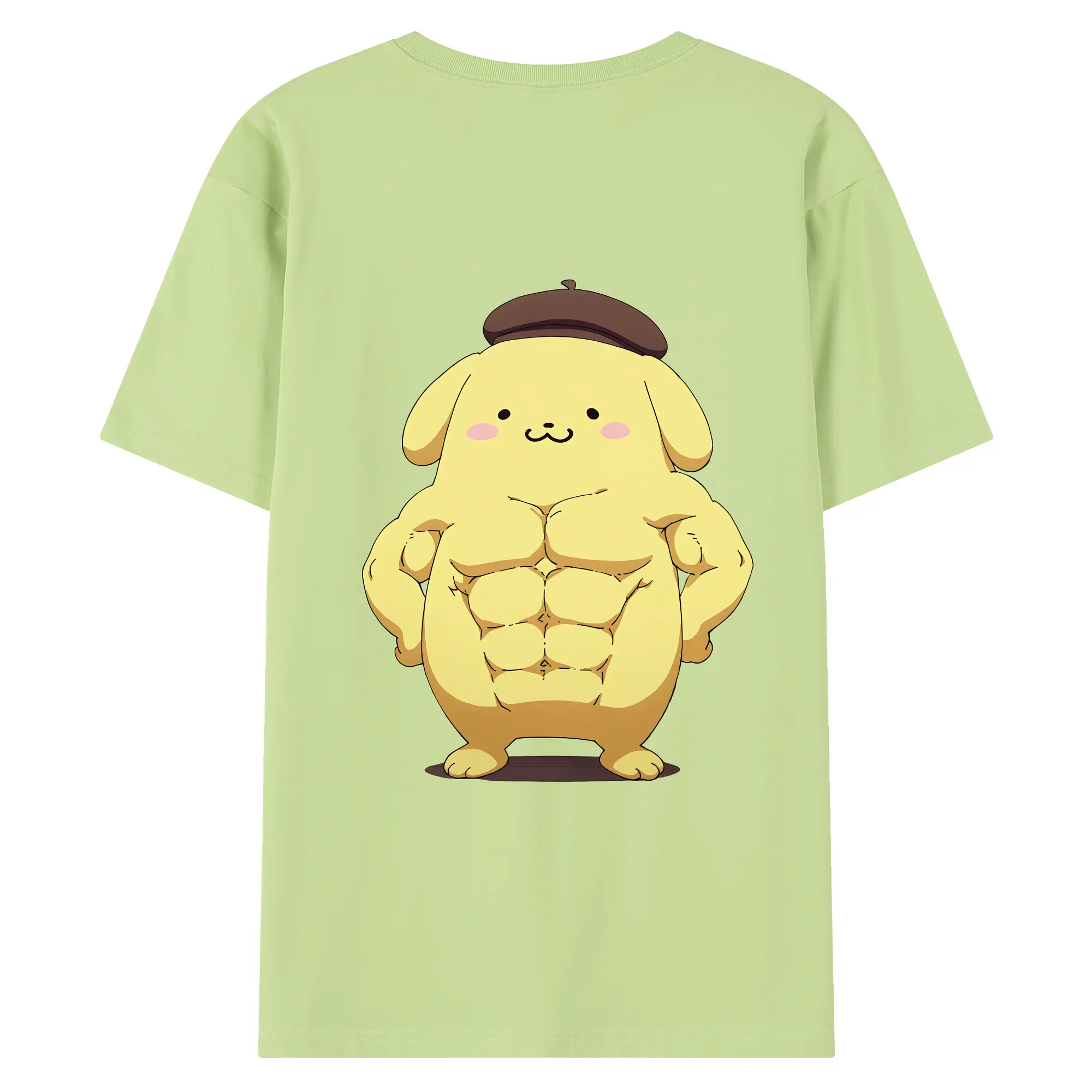 サンリオ グッズ,ポムポムプリン - 綿100% ヴィンテージ風 半袖Tシャツ ・ 背面プリント ・ 柔らか肌触り ・ 通気性 快適 ・ スポーツ カジュアル 外出用