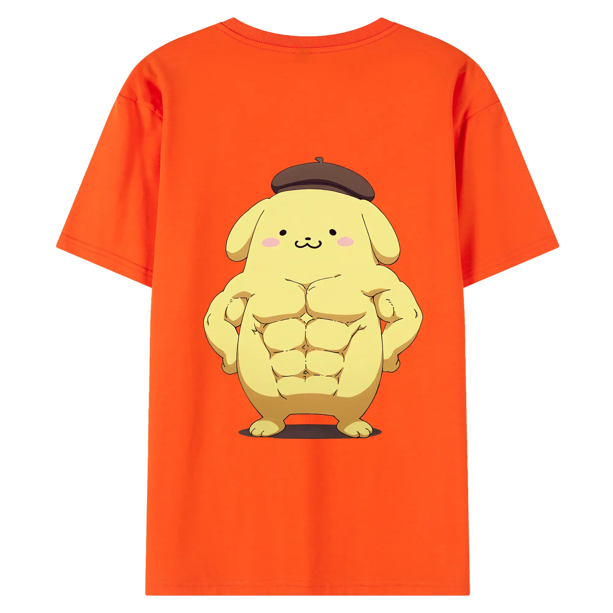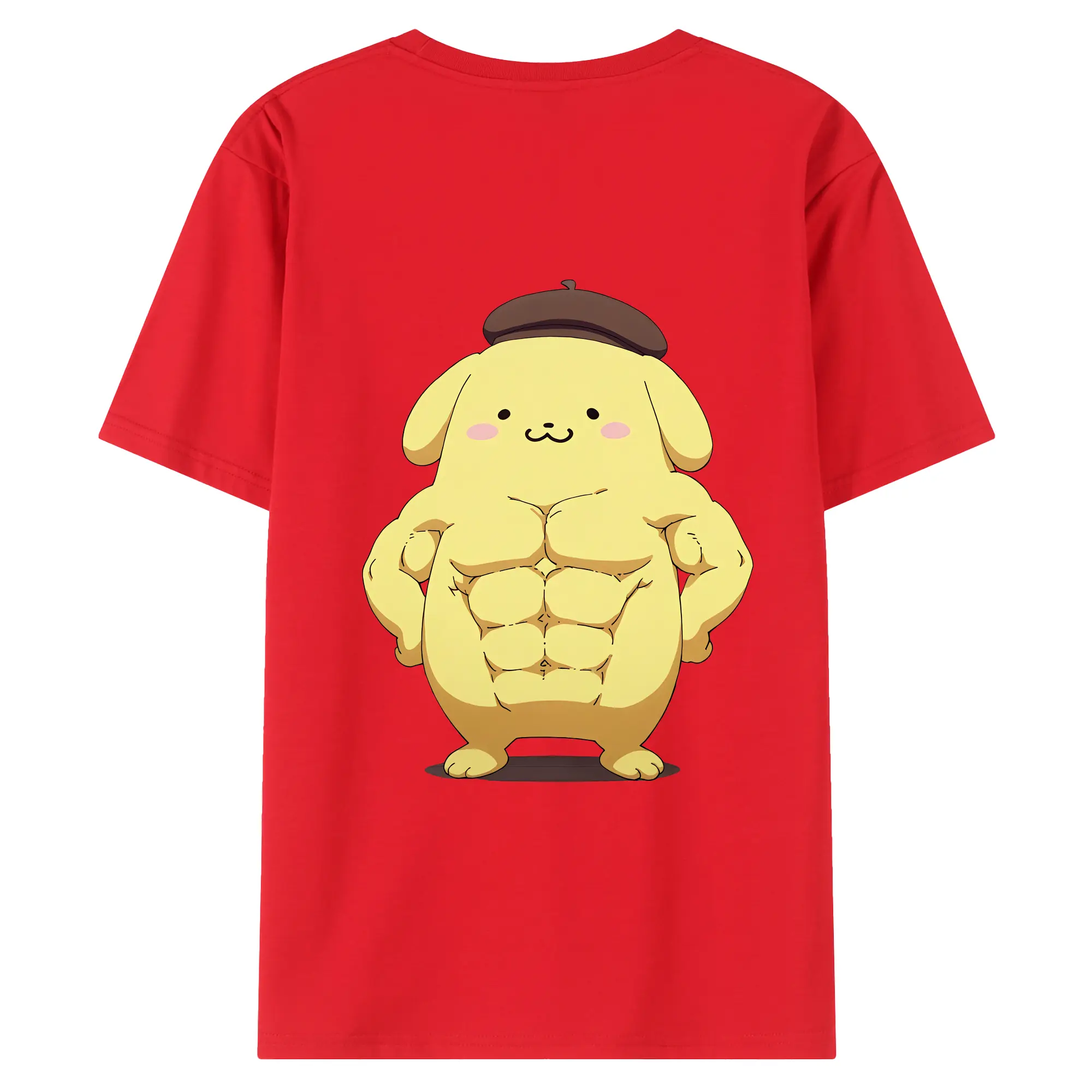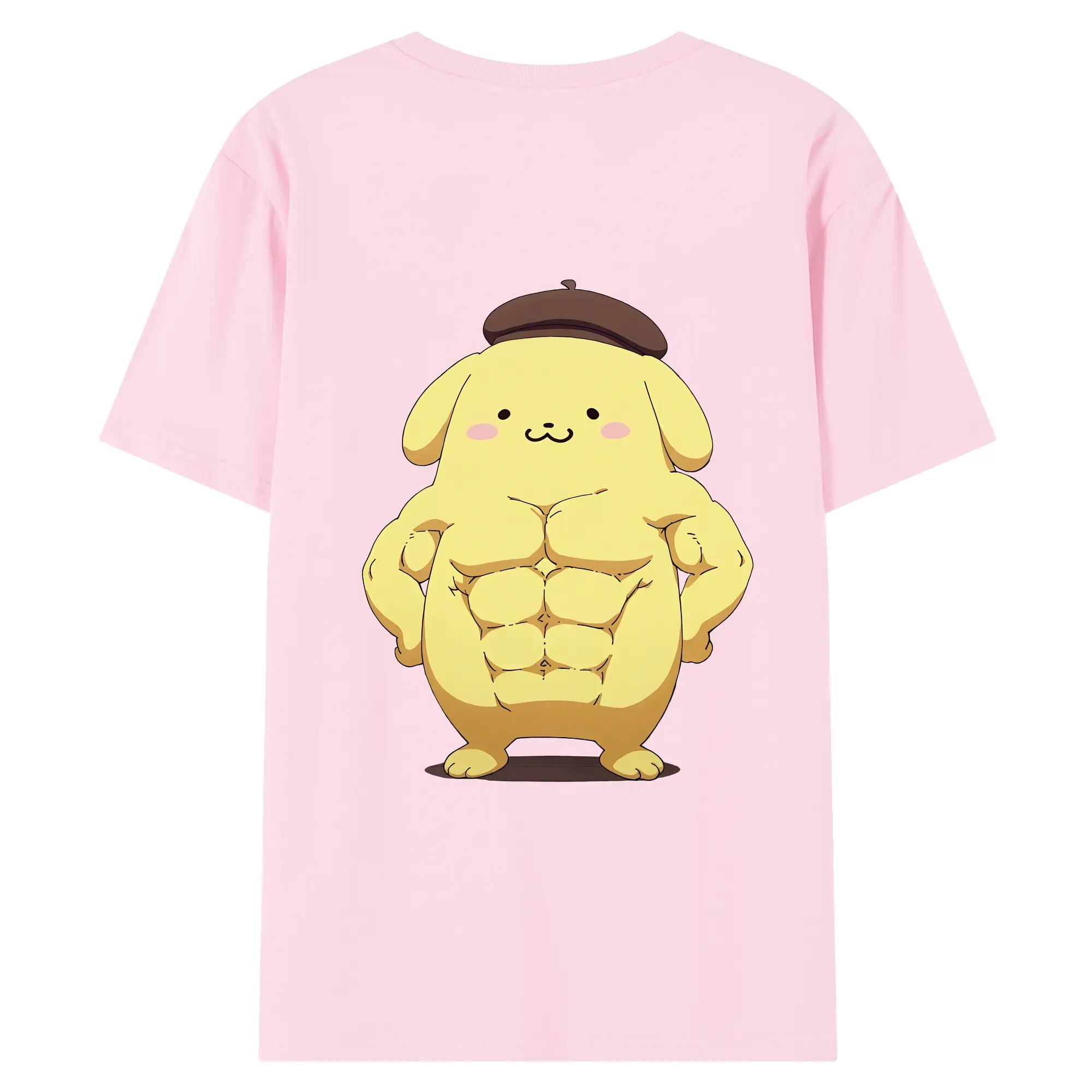 サンリオ グッズ,ポムポムプリン - 綿100% 半袖Tシャツ ・ フロントプリント ・ 快適 通気性 ・ 日常使い 散歩 スポーツ用