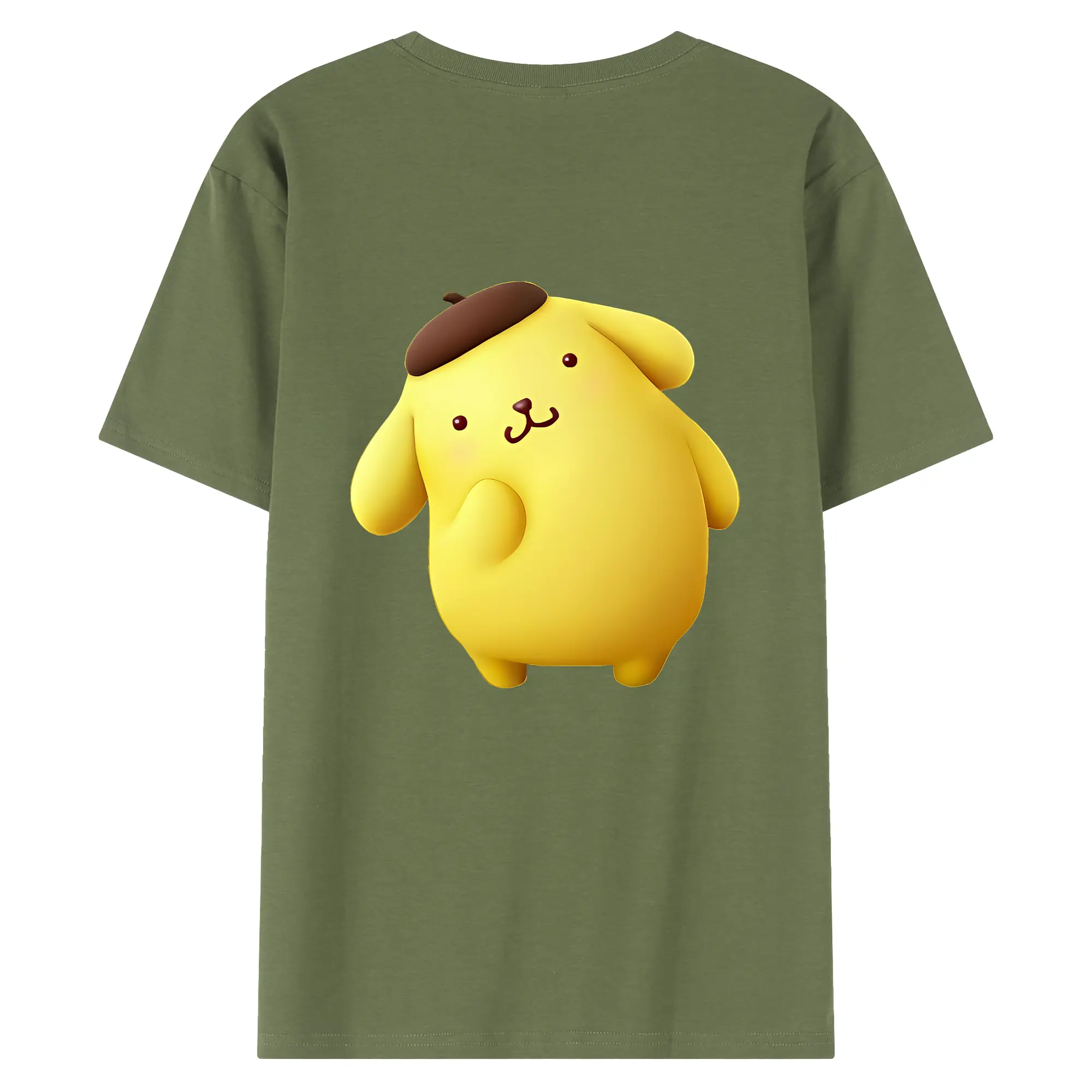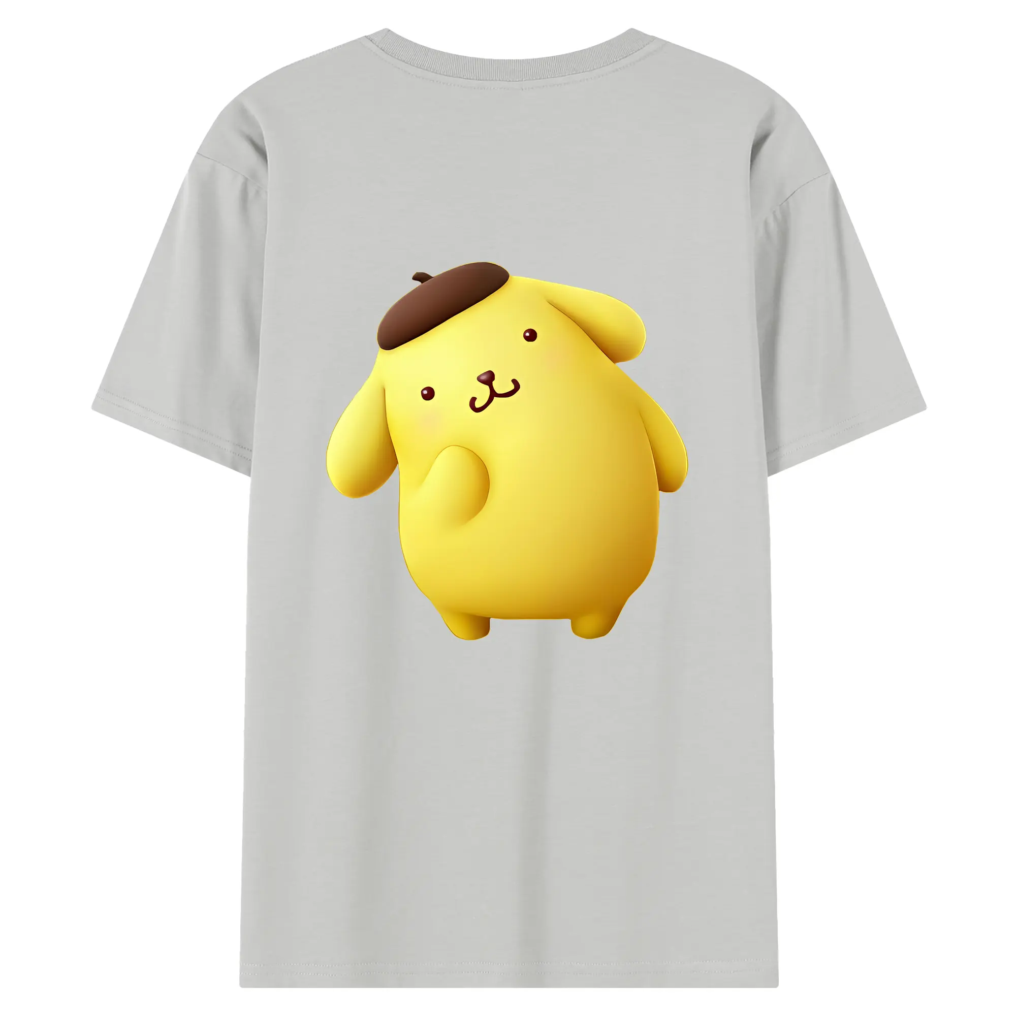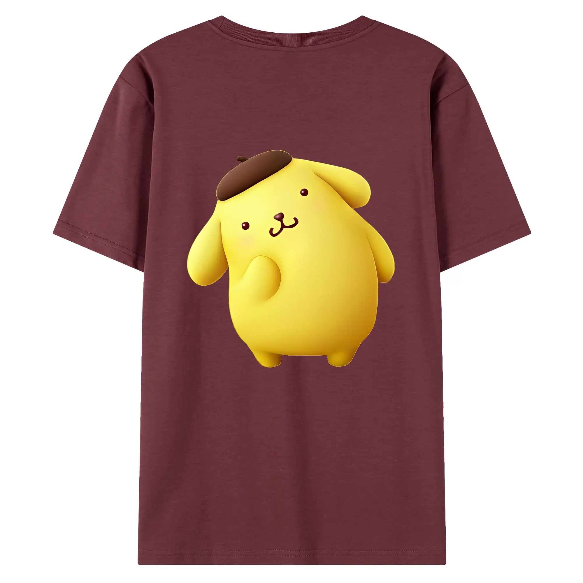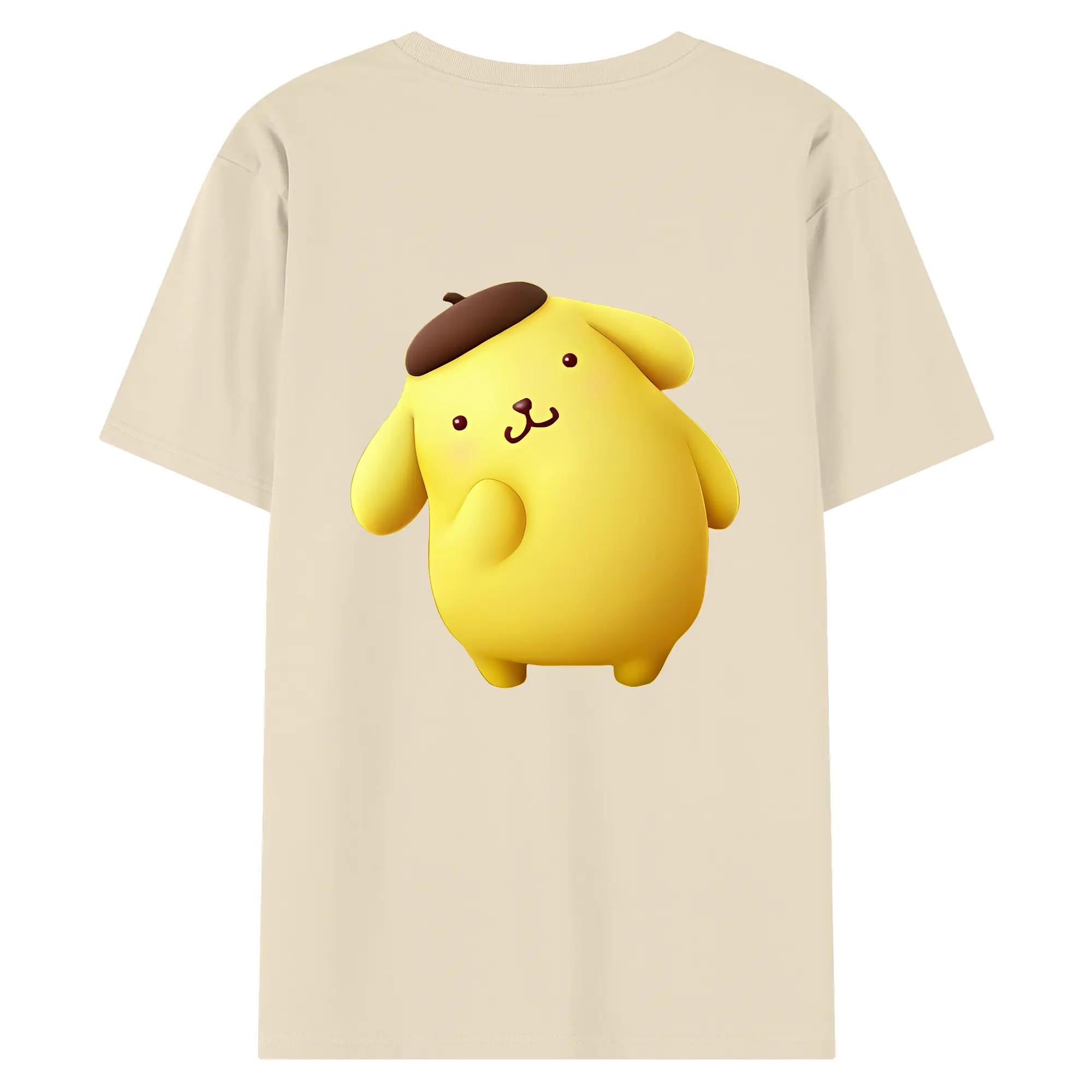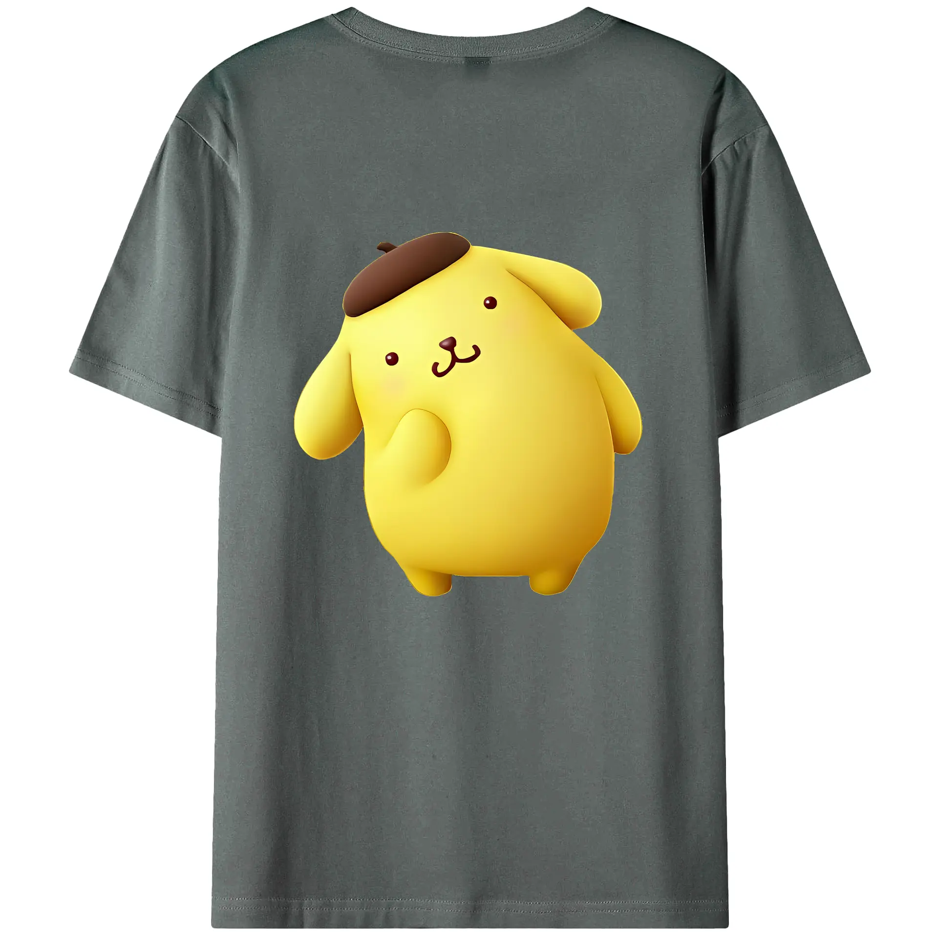 サンリオ グッズ,ポムポムプリン - 綿100% ヴィンテージ風 半袖Tシャツ ・ 背面プリント ・ 柔らか肌触り ・ 通気性 快適 ・ スポーツ カジュアル 外出用
