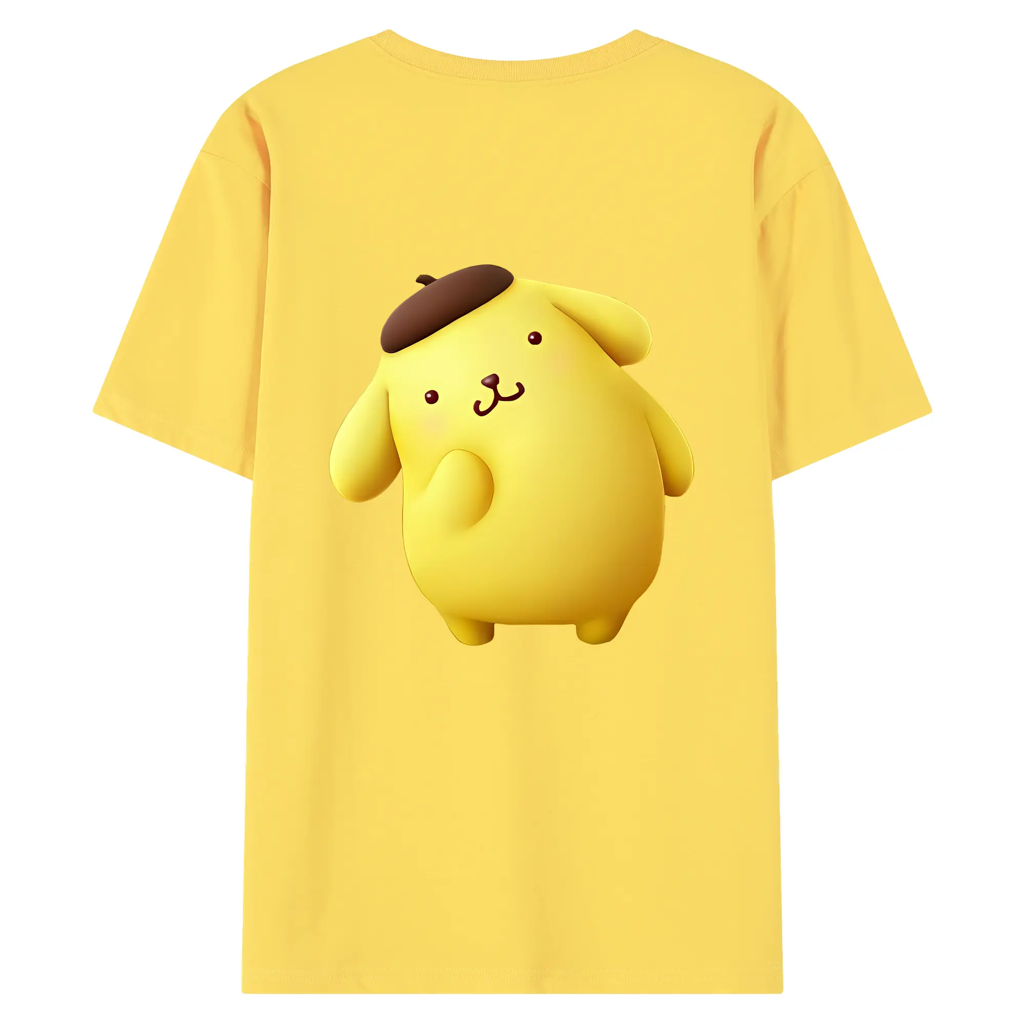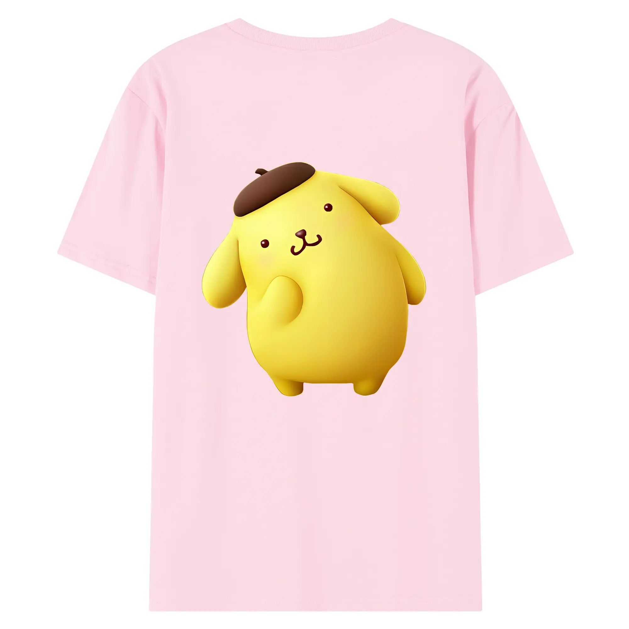 サンリオ グッズ,ポムポムプリン - 綿100% 半袖Tシャツ ・ フロントプリント ・ 快適 通気性 ・ 日常使い 散歩 スポーツ用