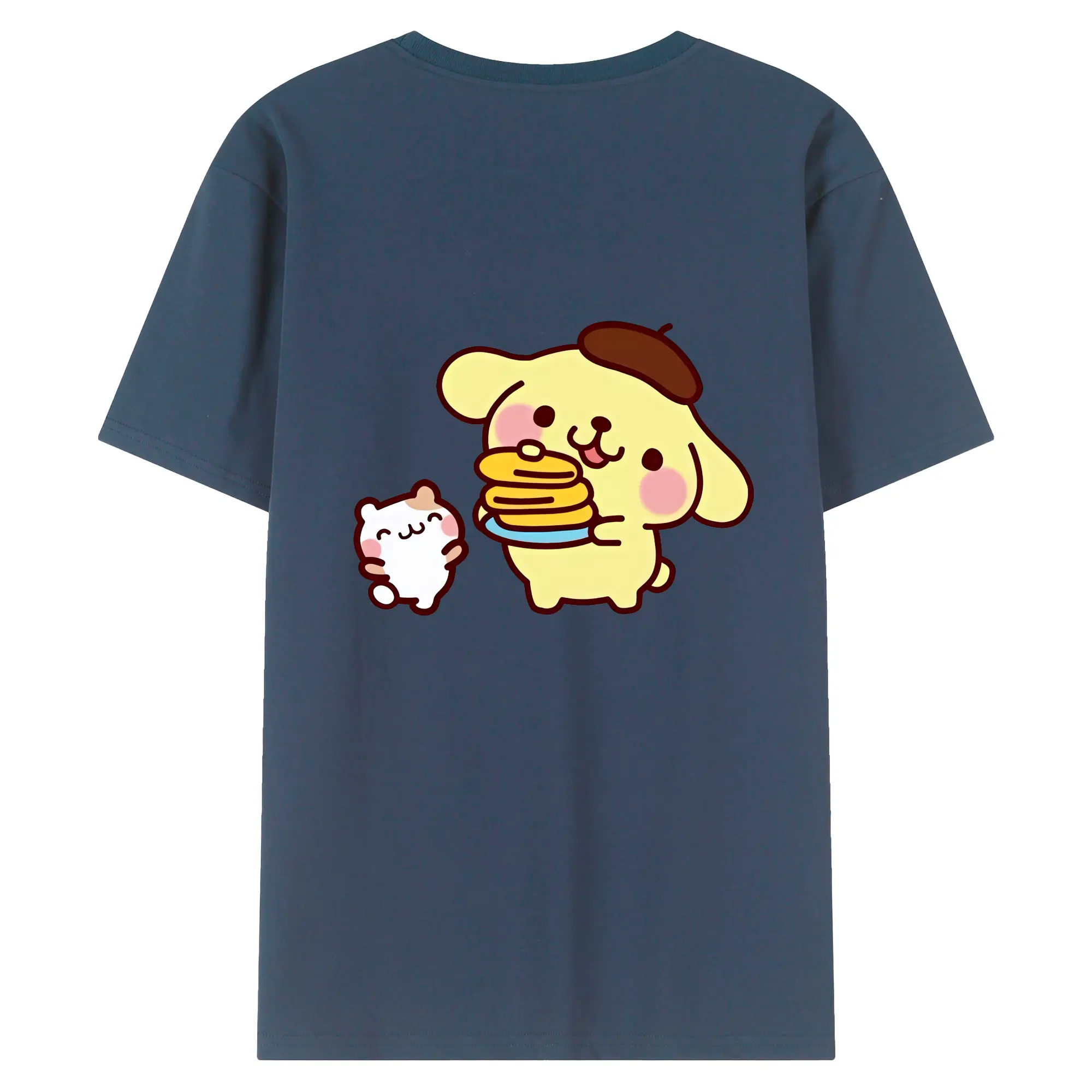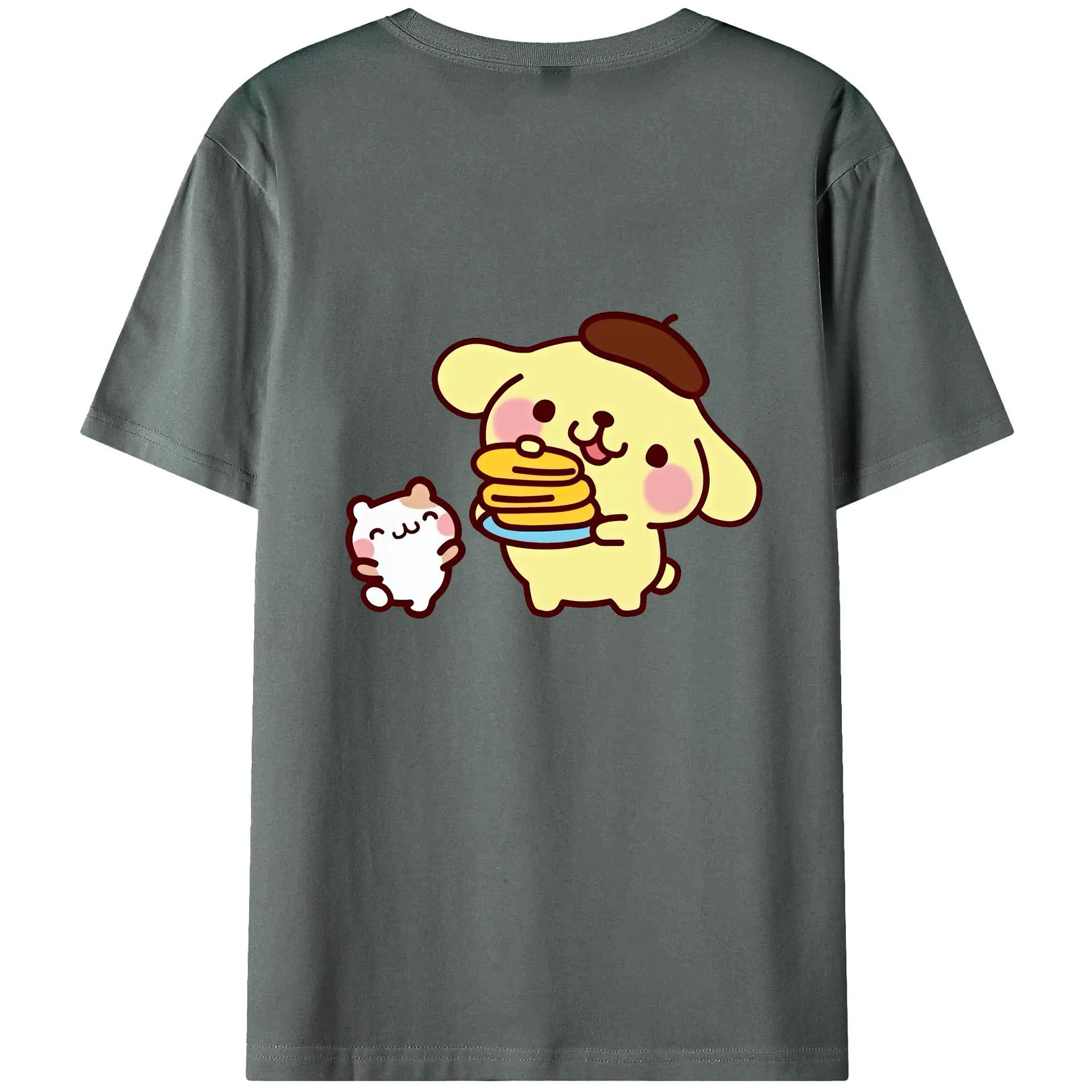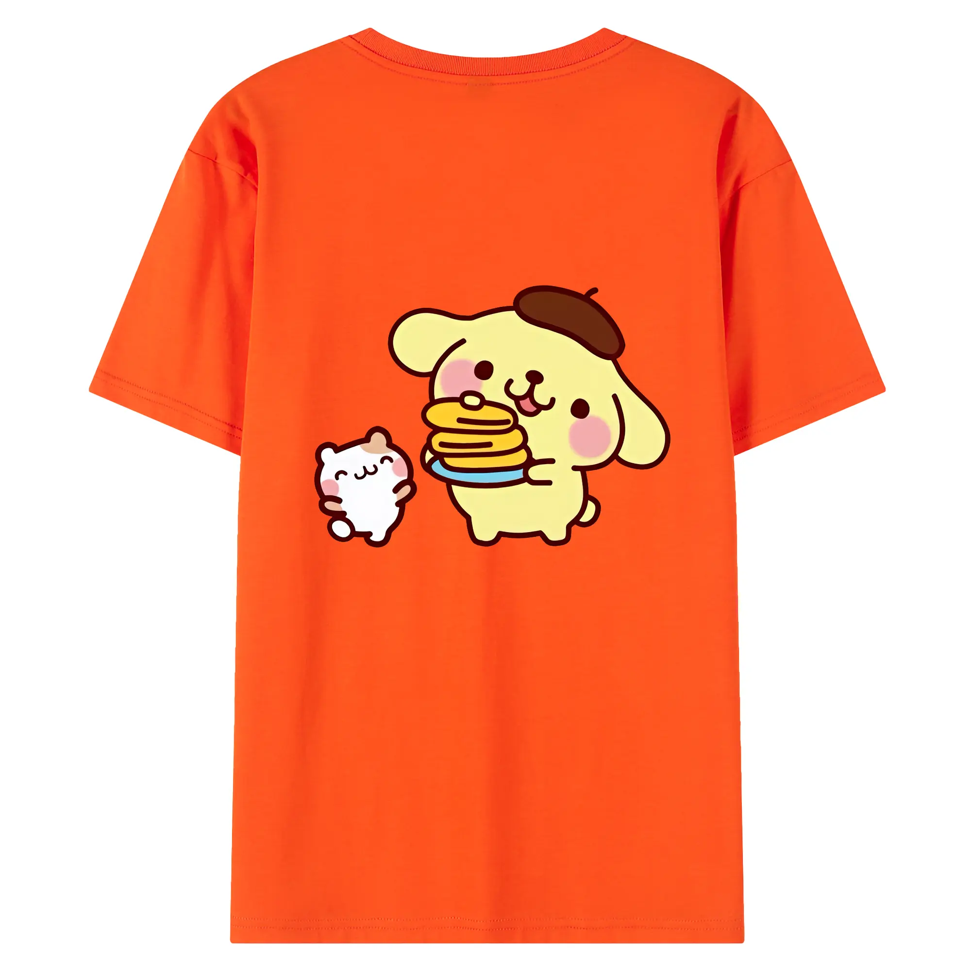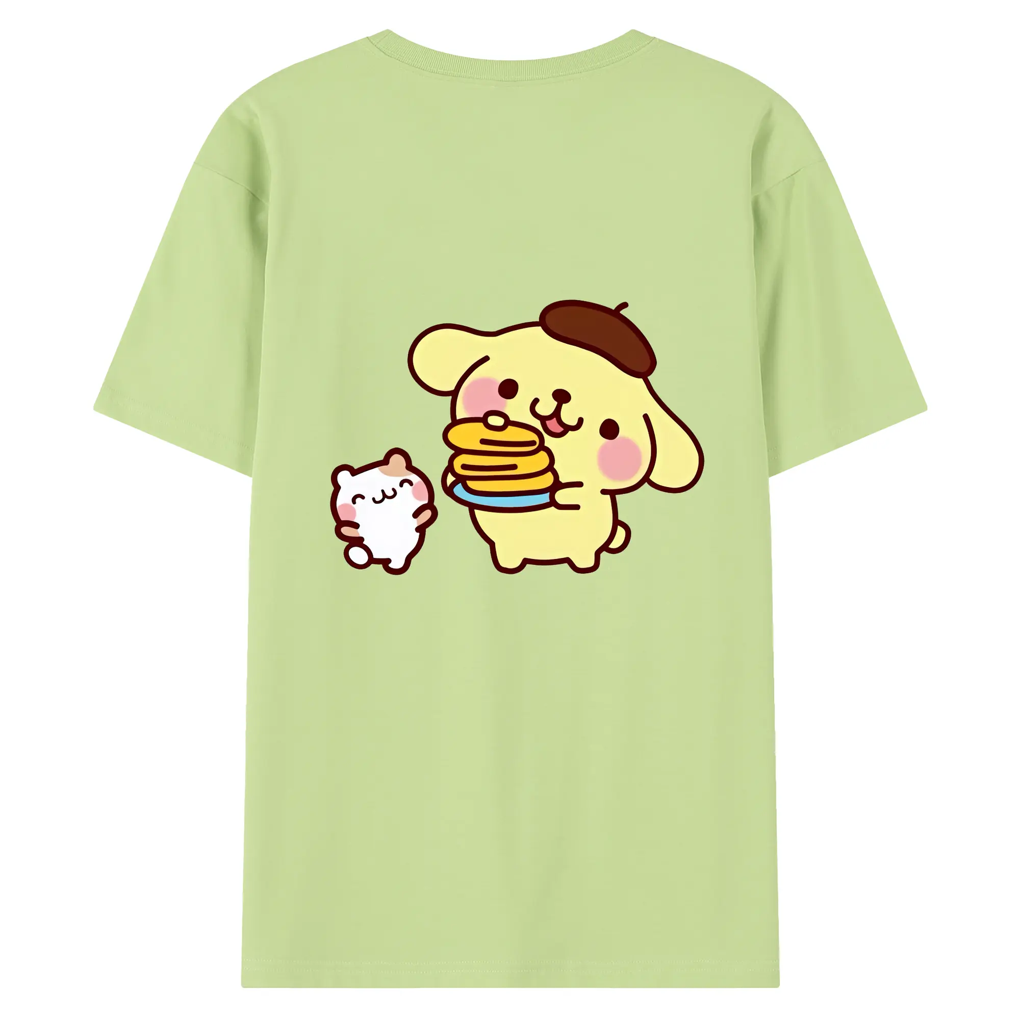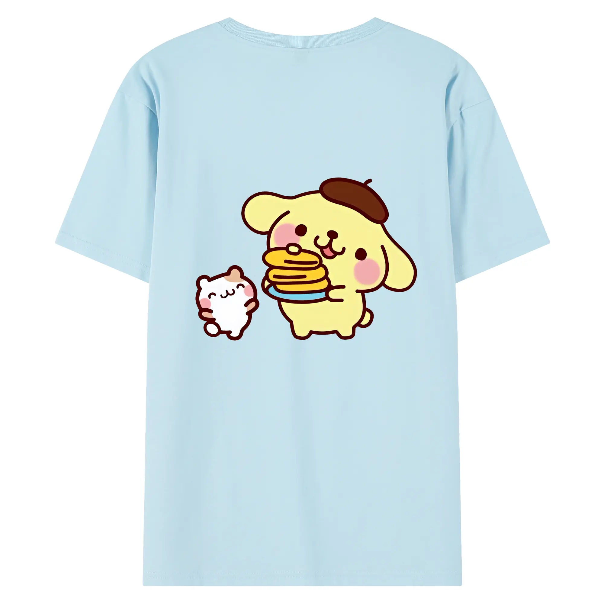 サンリオ グッズ,ポムポムプリン - 綿100% 半袖Tシャツ ・ フロントプリント ・ 快適 通気性 ・ 日常使い 散歩 スポーツ用