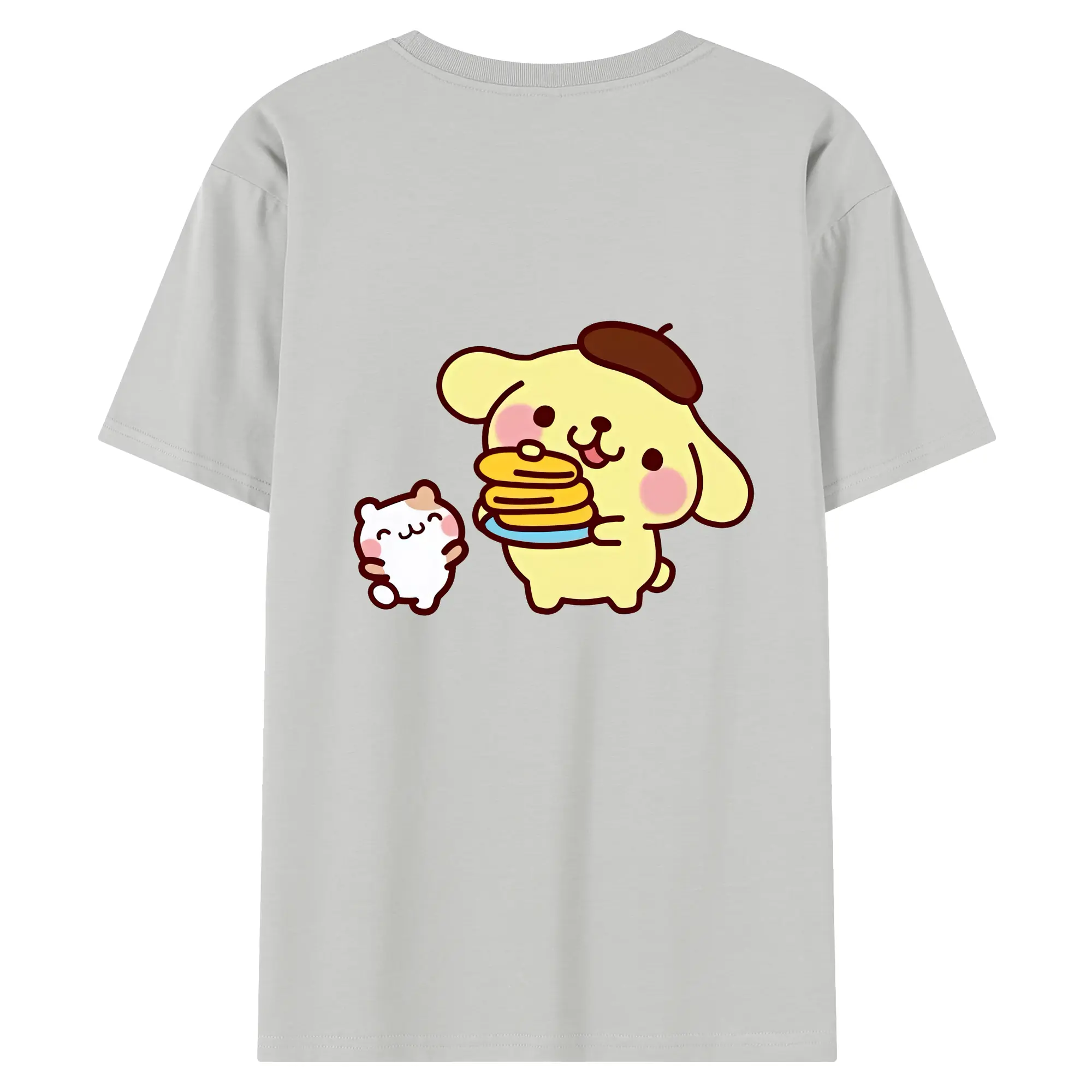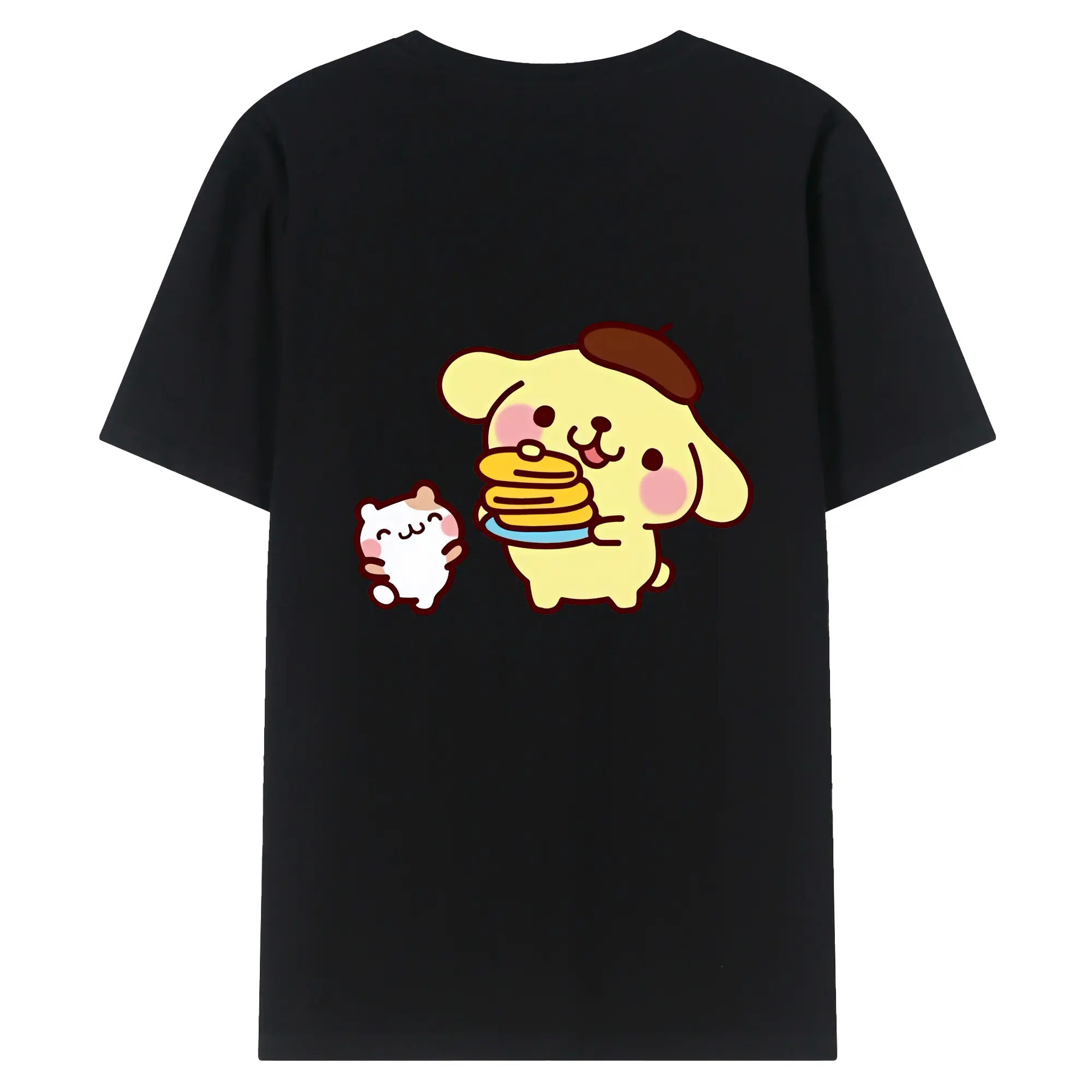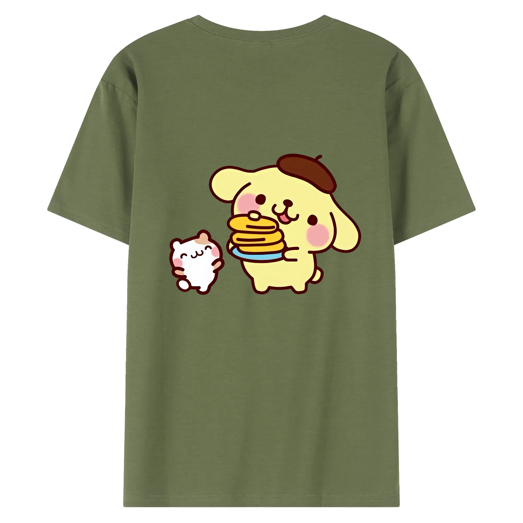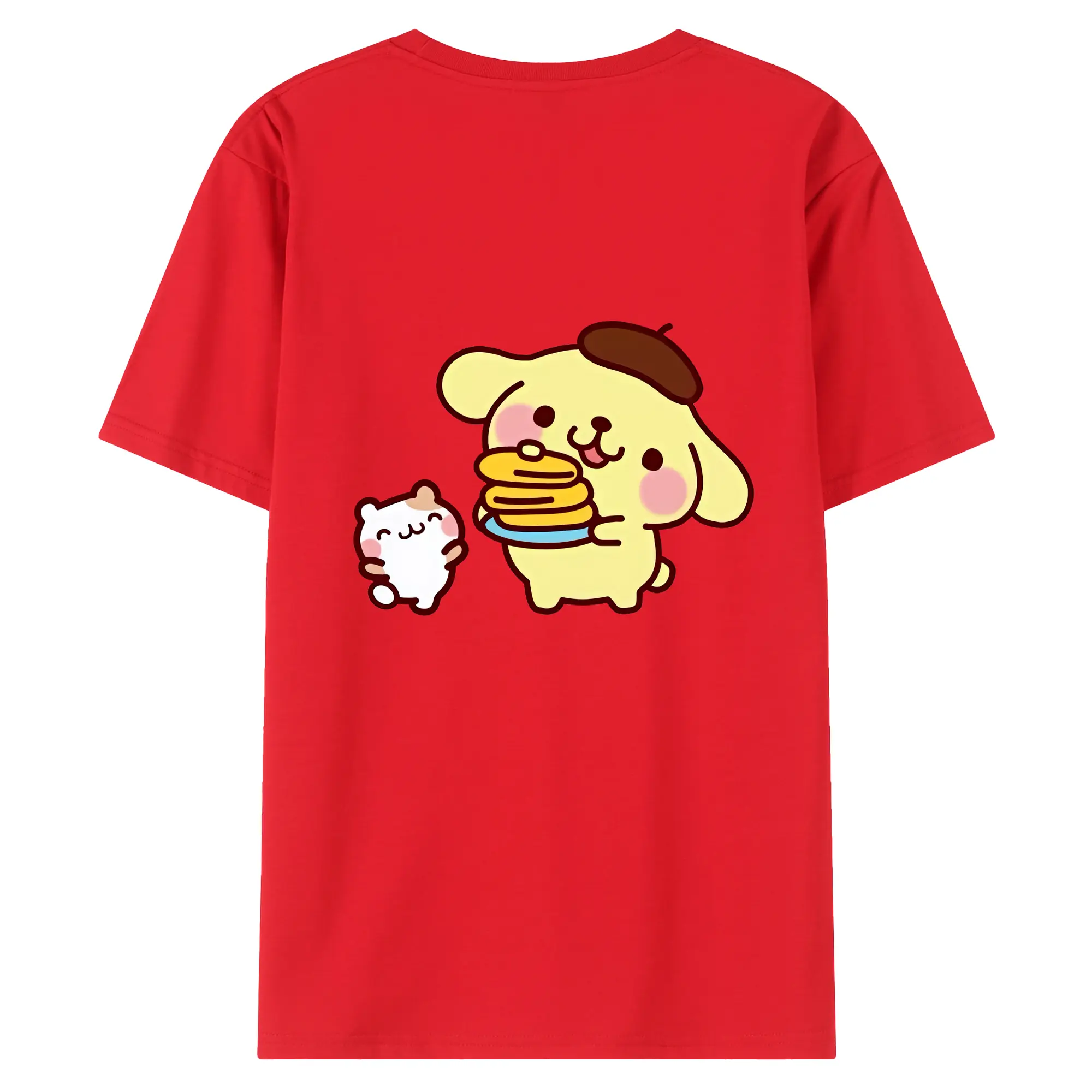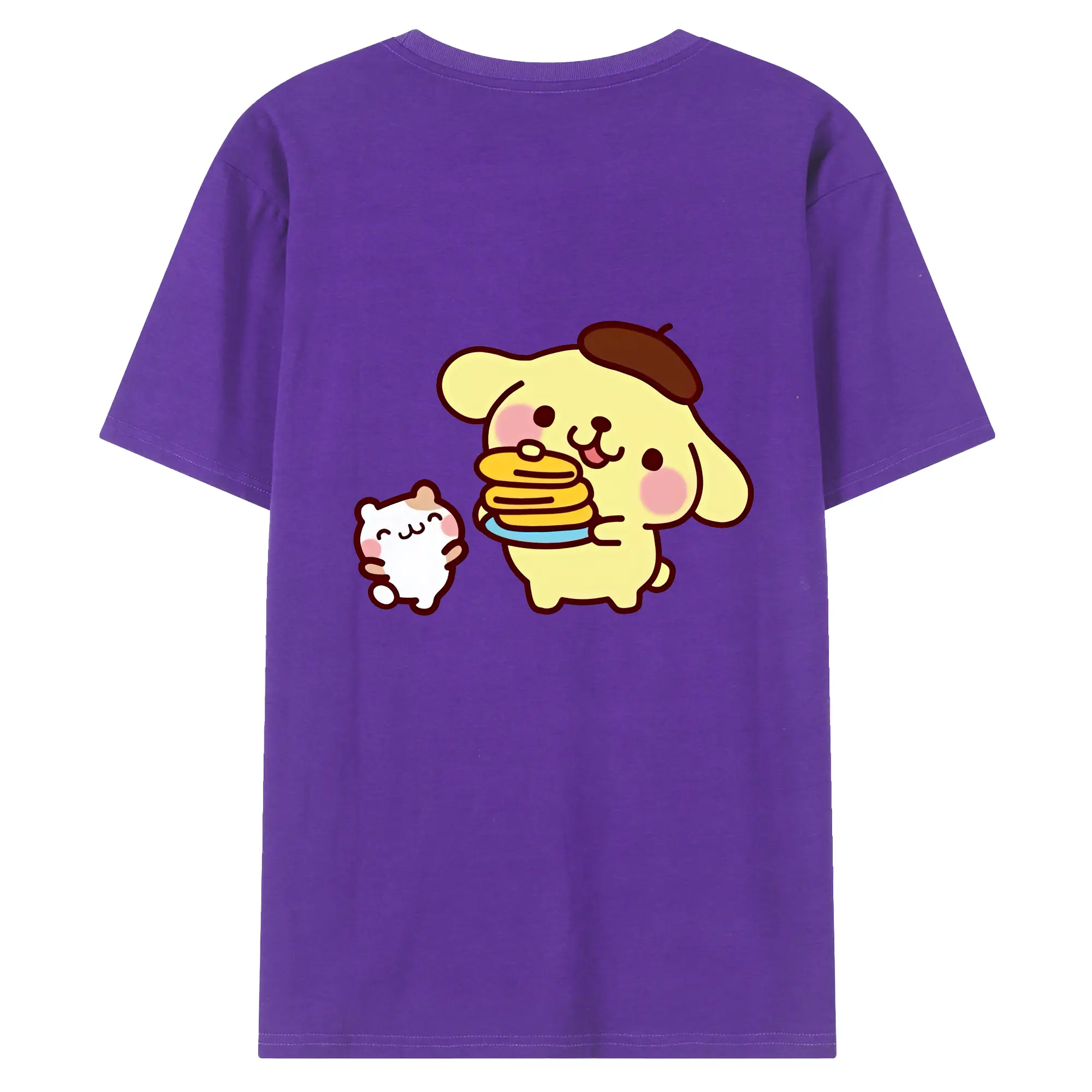 サンリオ グッズ,ポムポムプリン - 綿100% 半袖Tシャツ ・ フロントプリント ・ 快適 通気性 ・ 日常使い 散歩 スポーツ用