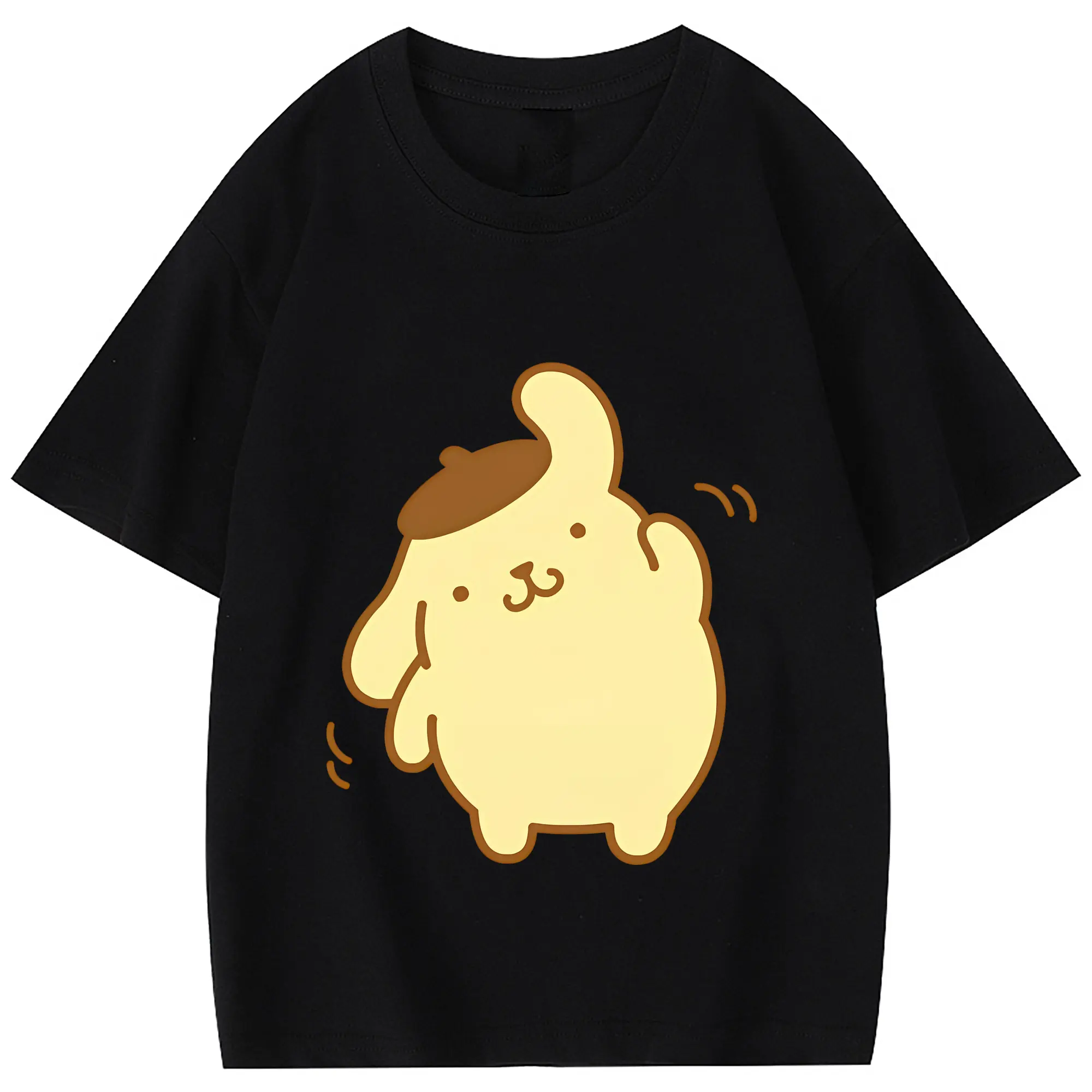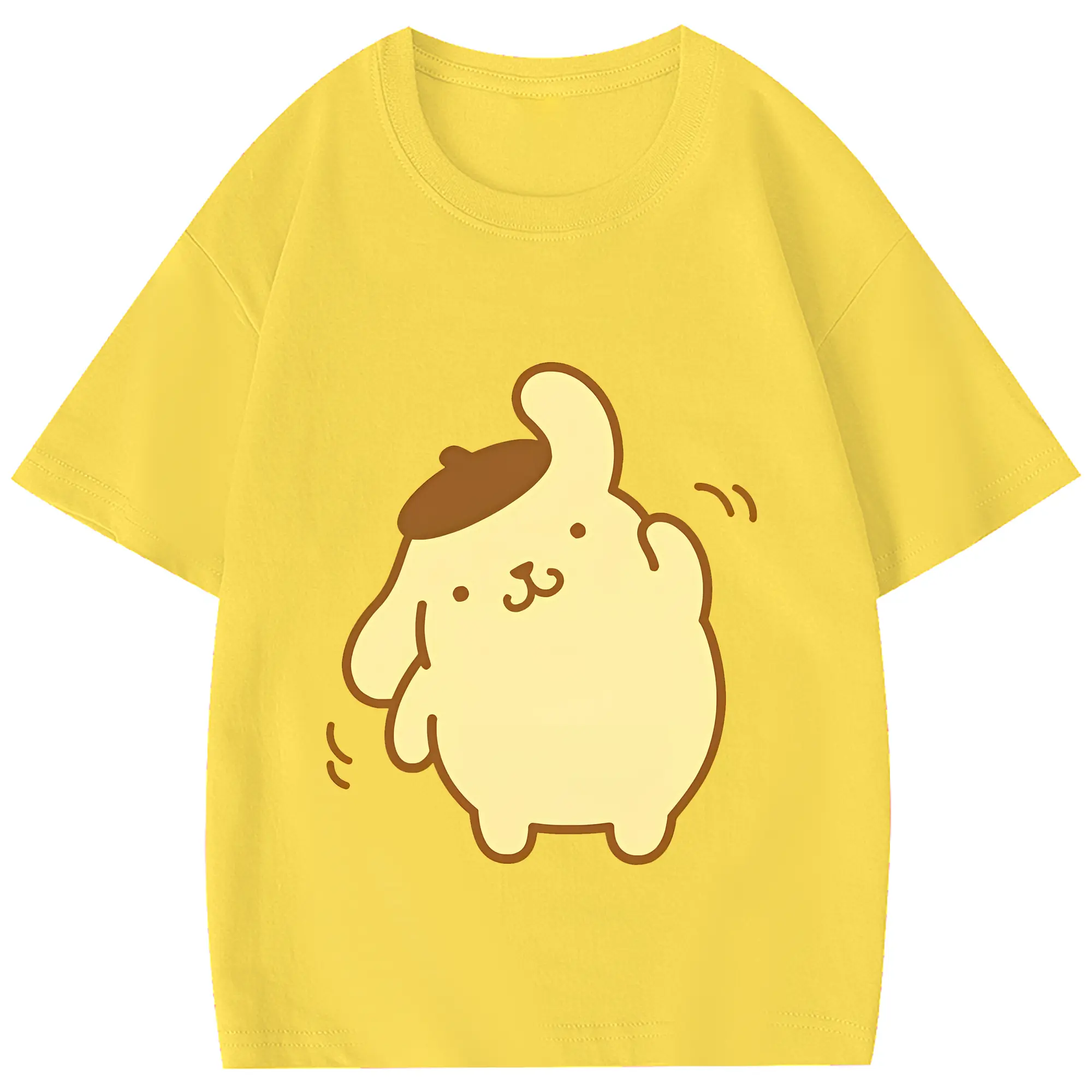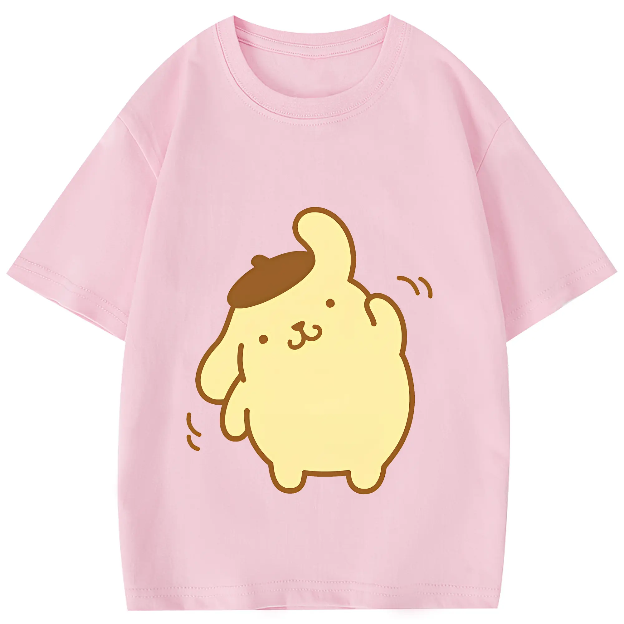サンリオ グッズ,ポムポムプリン - 綿100% 半袖Tシャツ ・ フロントプリント ・ 快適 通気性 ・ 日常使い 散歩 スポーツ用