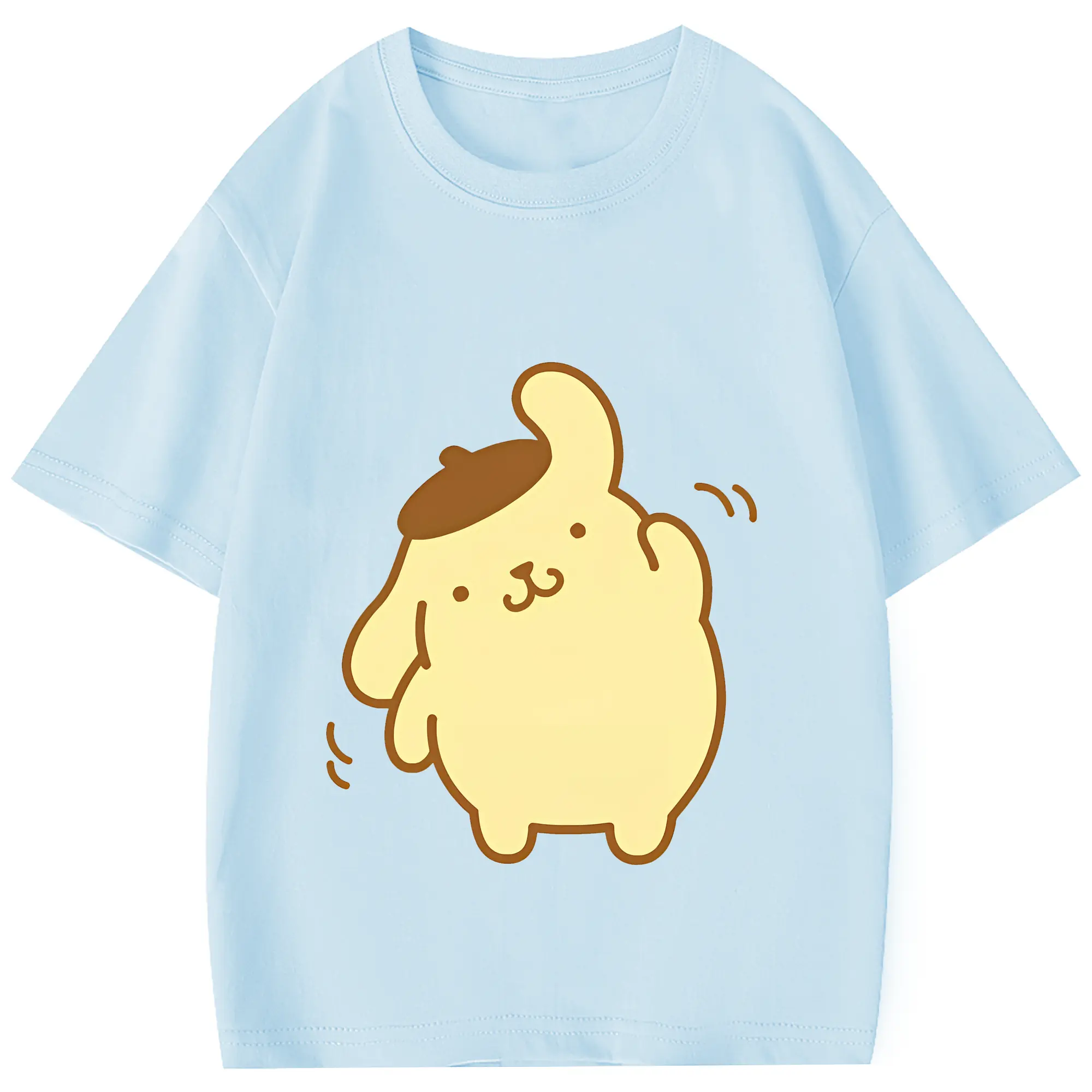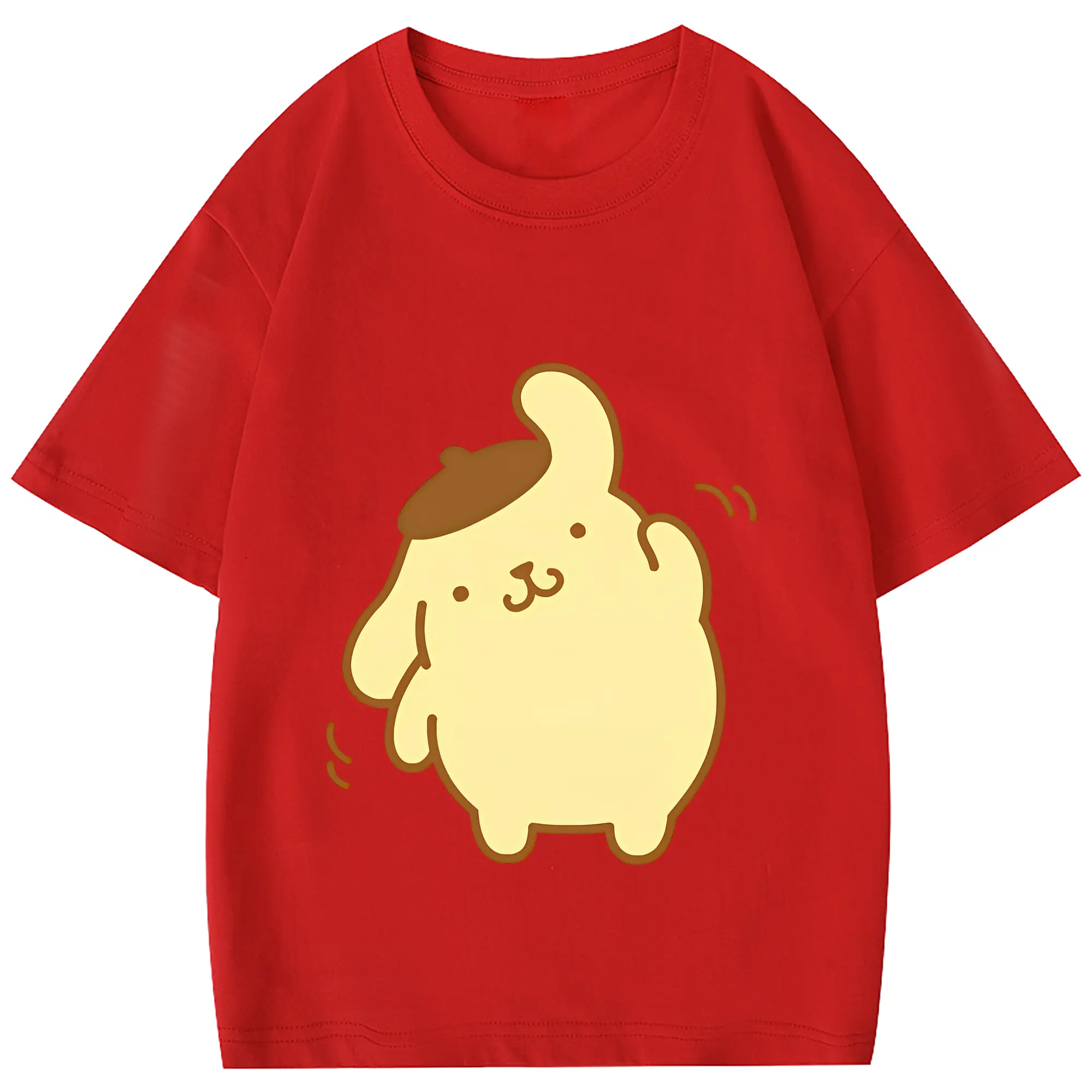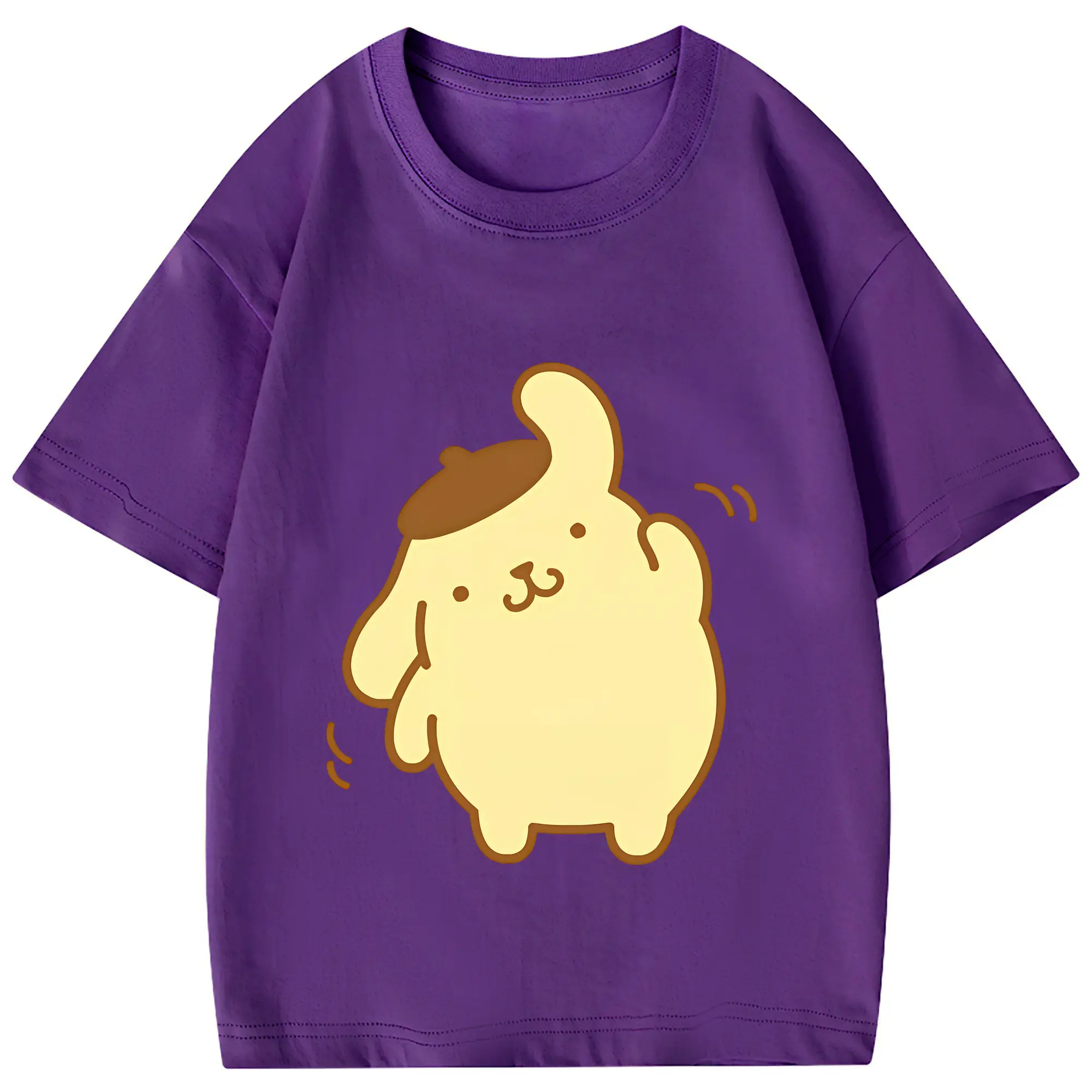 サンリオ グッズ,ポムポムプリン - 綿100% 半袖Tシャツ ・ フロントプリント ・ 快適 通気性 ・ 日常使い 散歩 スポーツ用