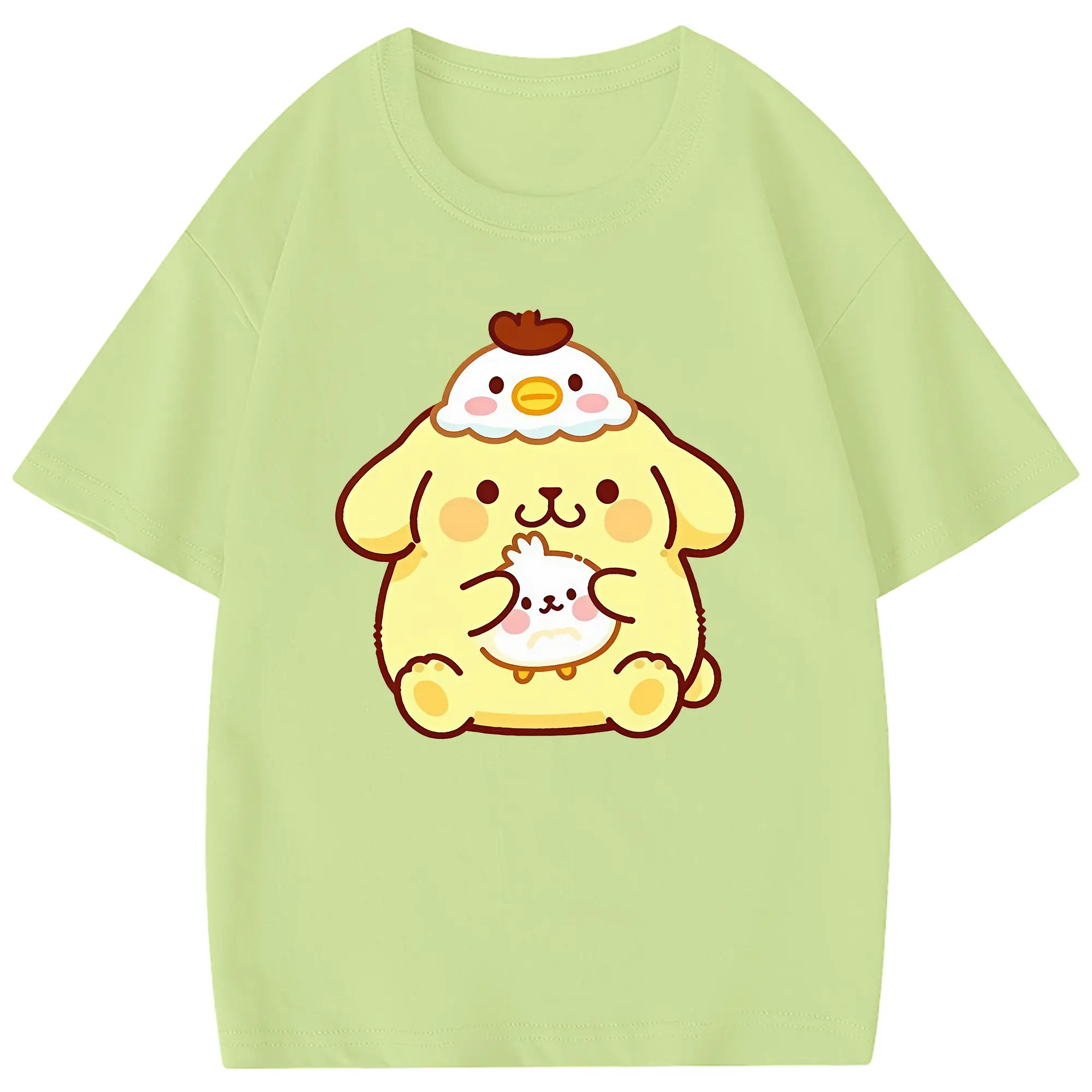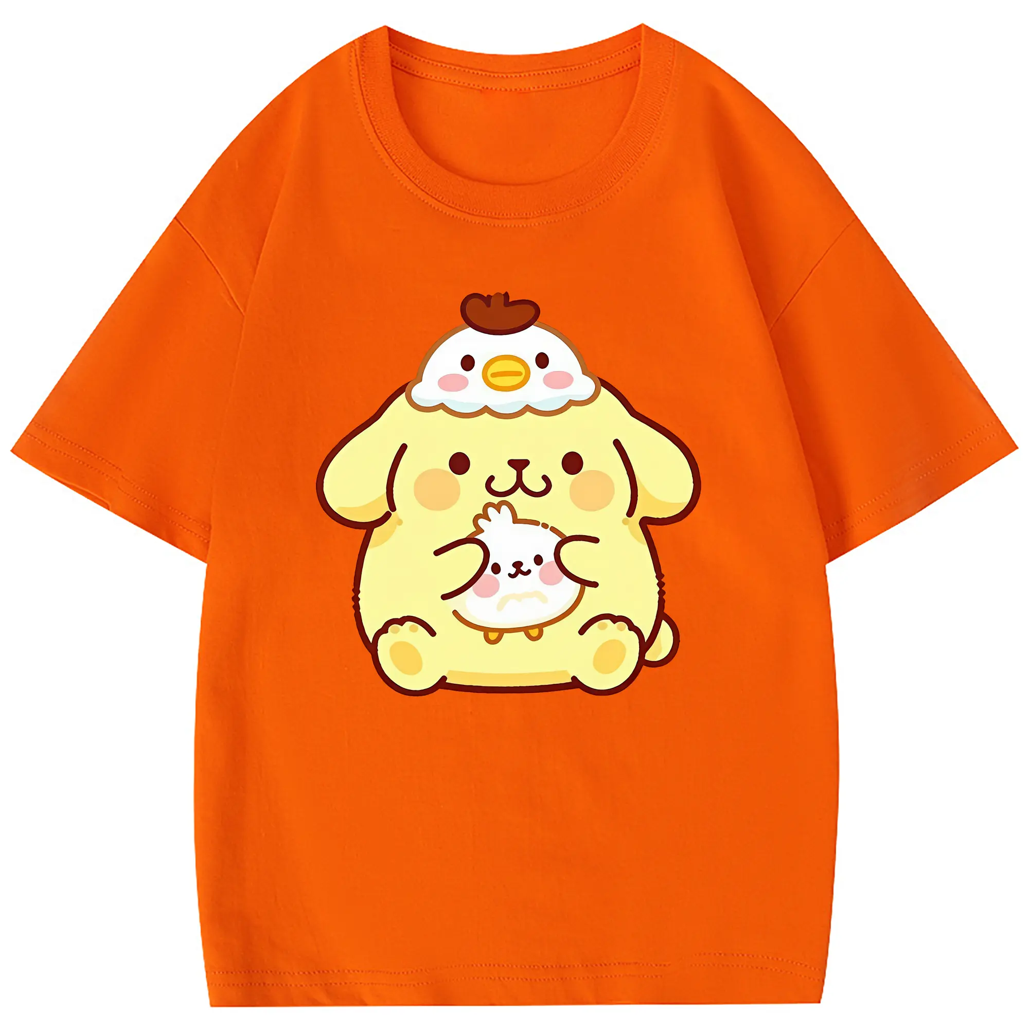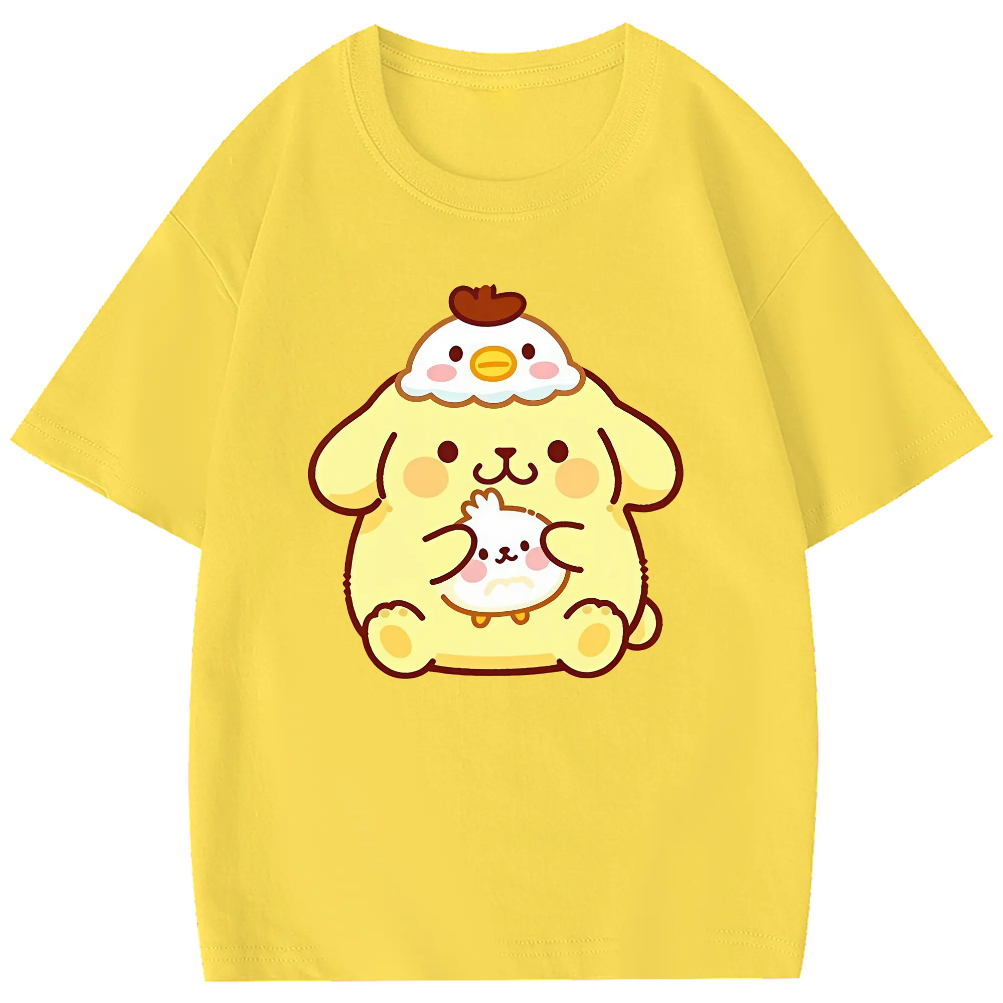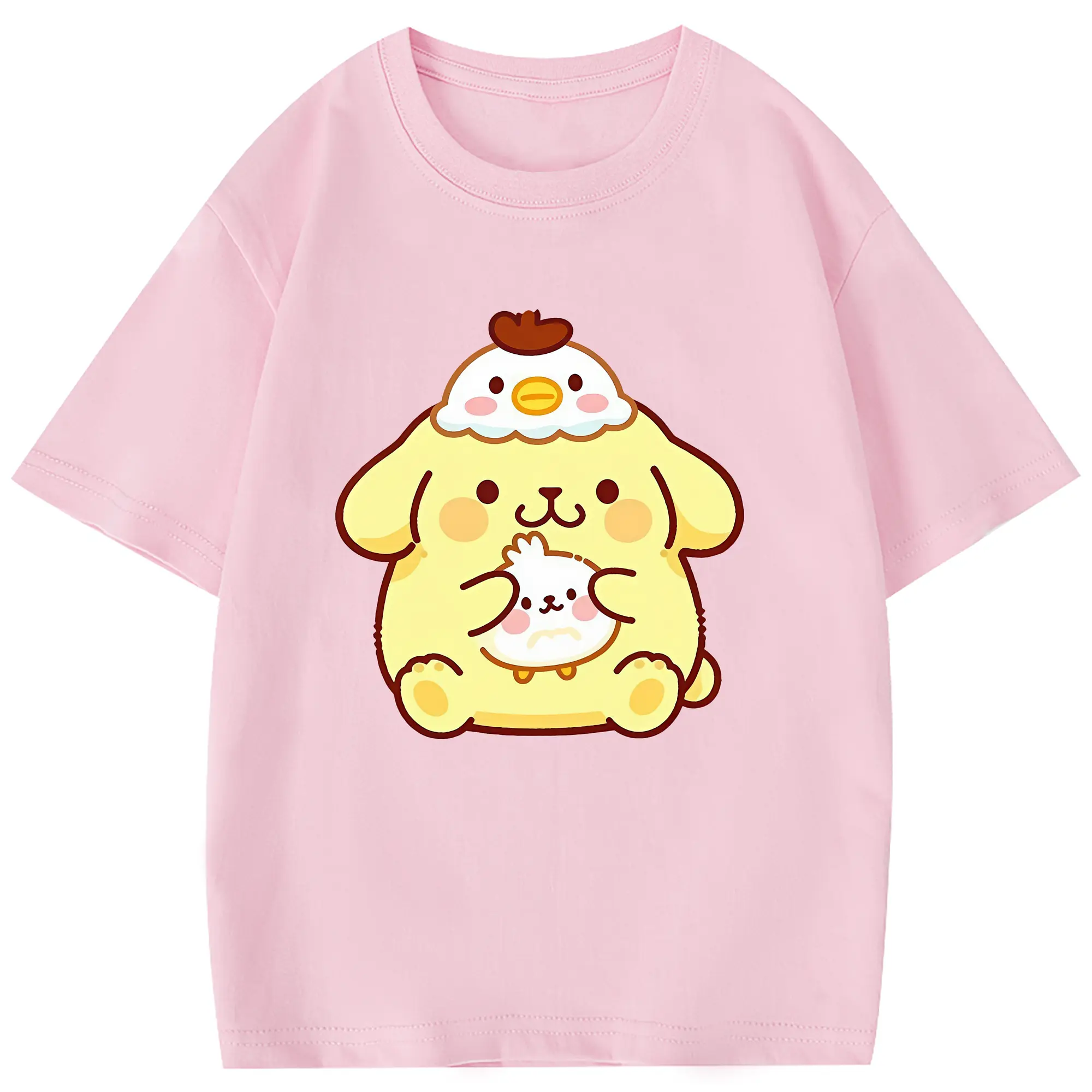 サンリオ グッズ,ポムポムプリン - 綿100% 半袖Tシャツ ・ フロントプリント ・ 快適 通気性 ・ 日常使い 散歩 スポーツ用
