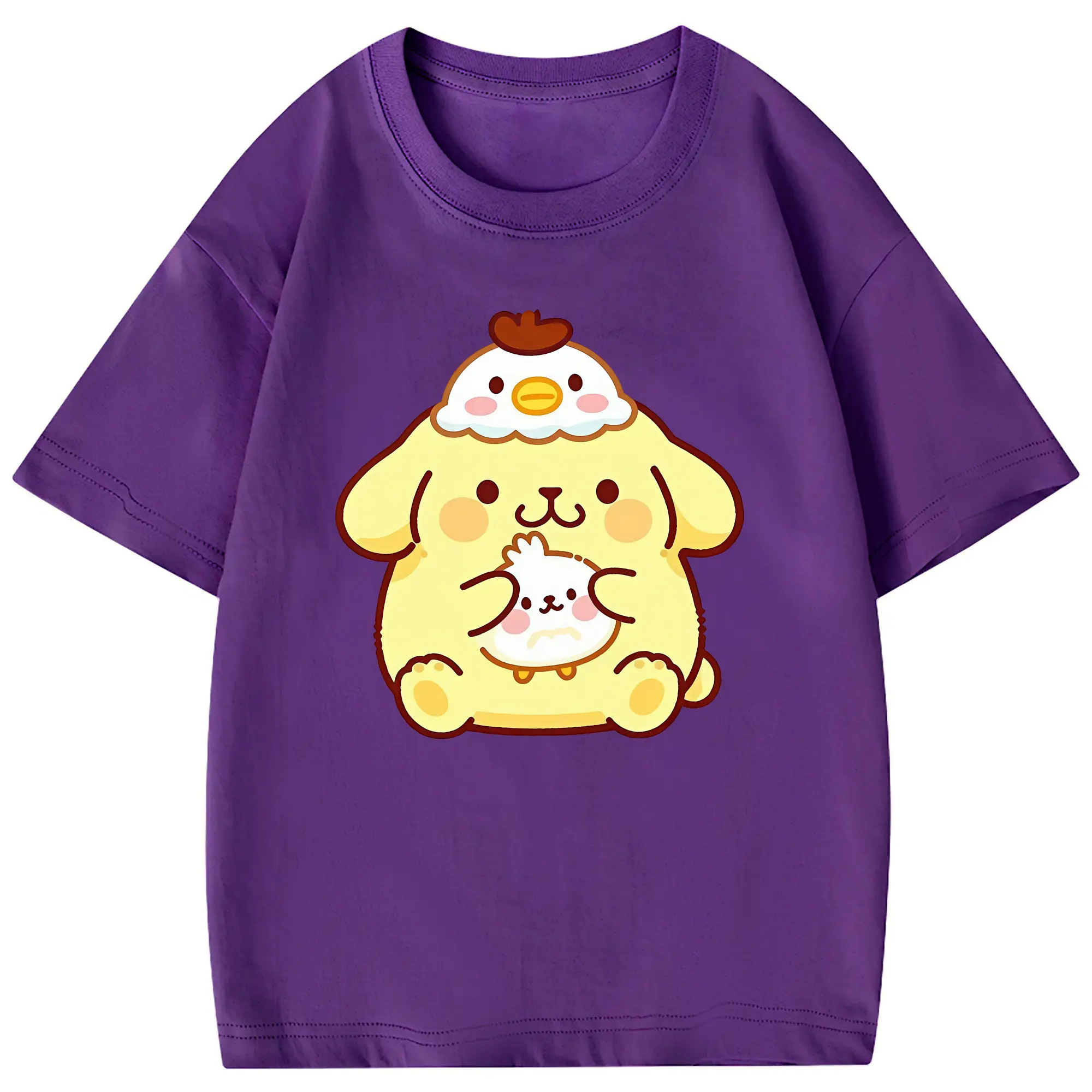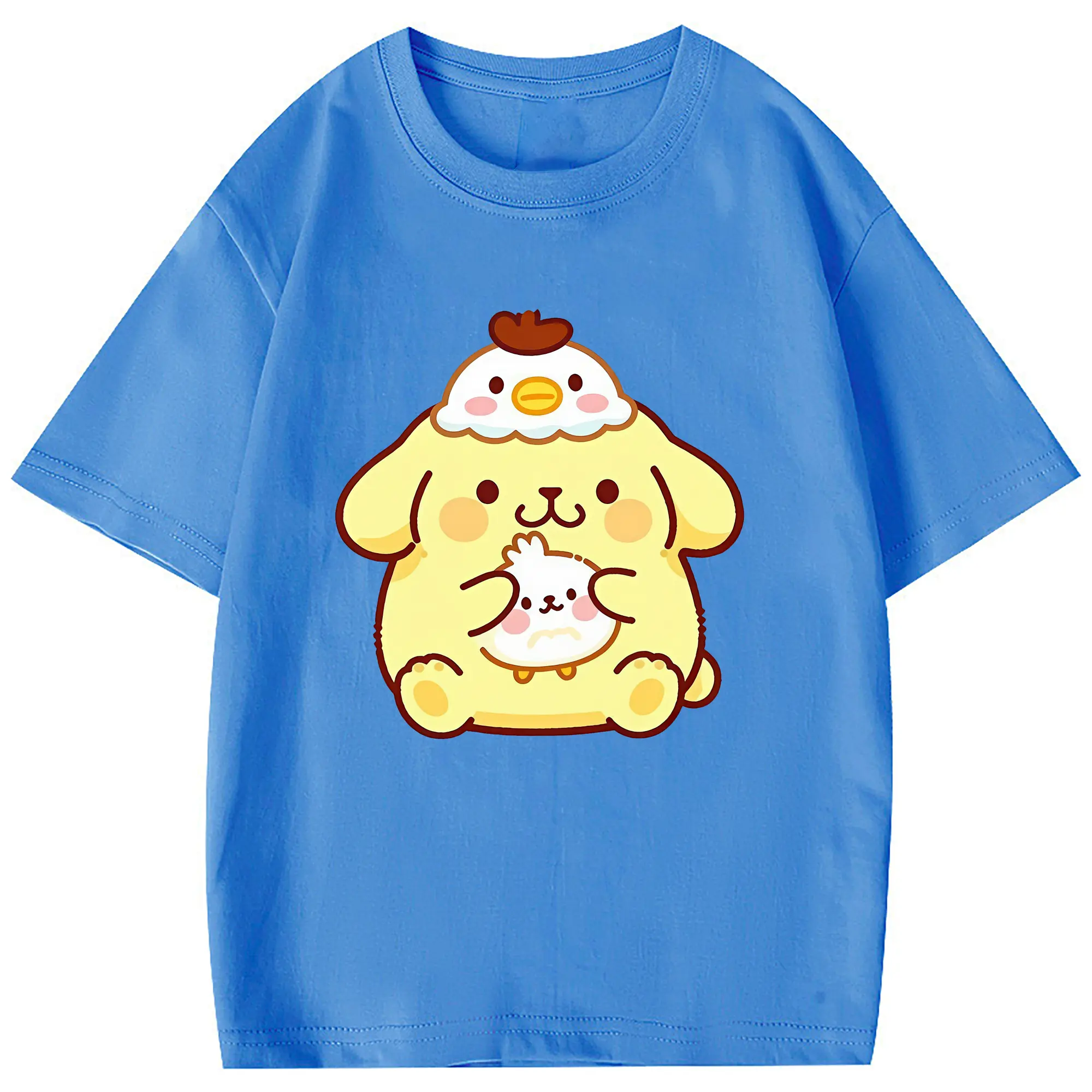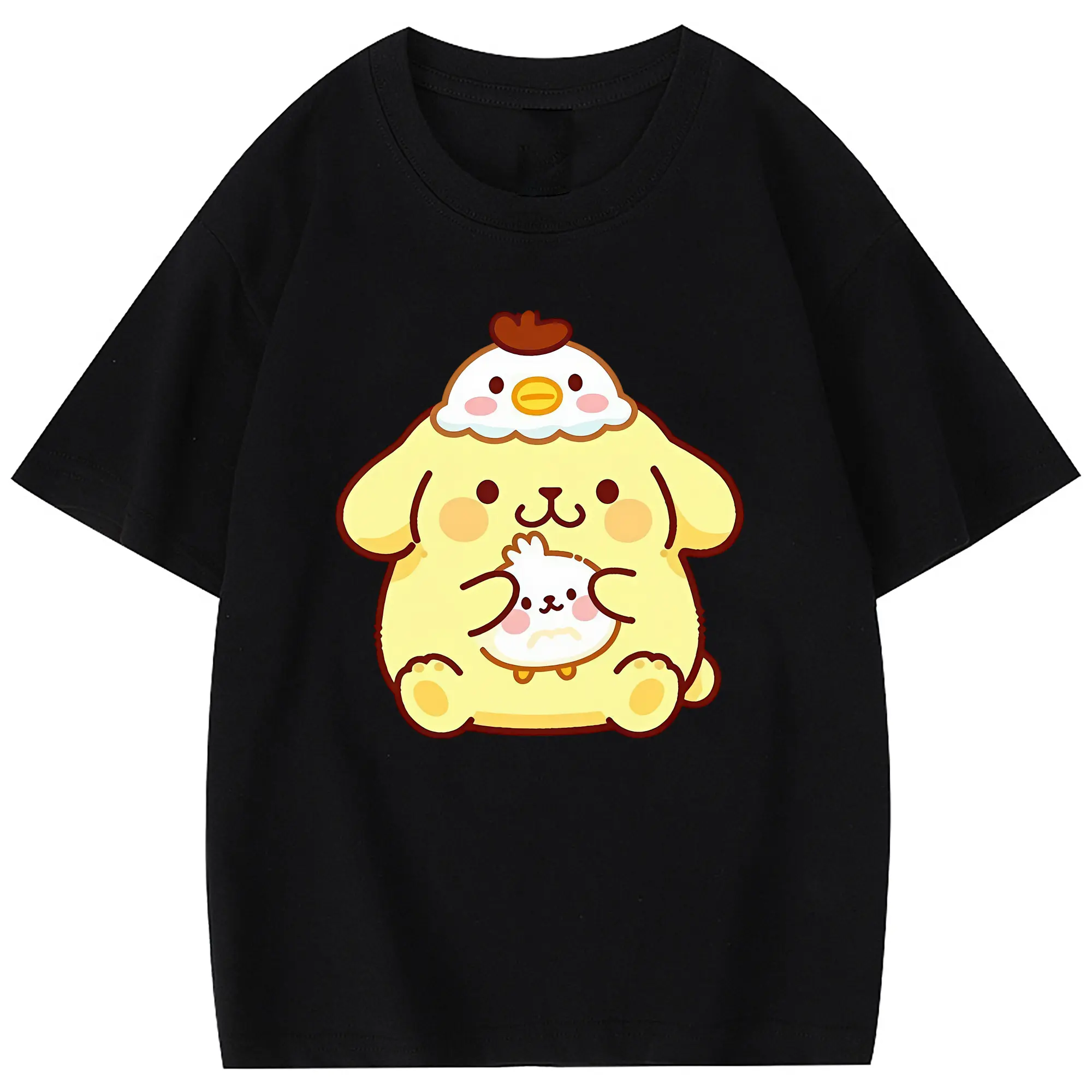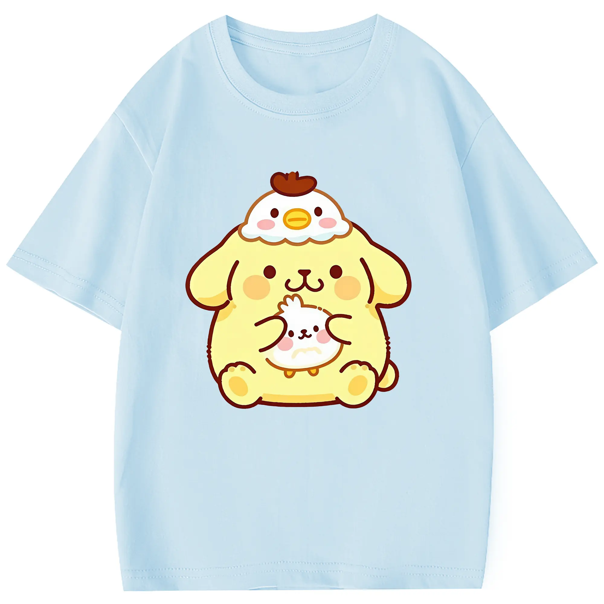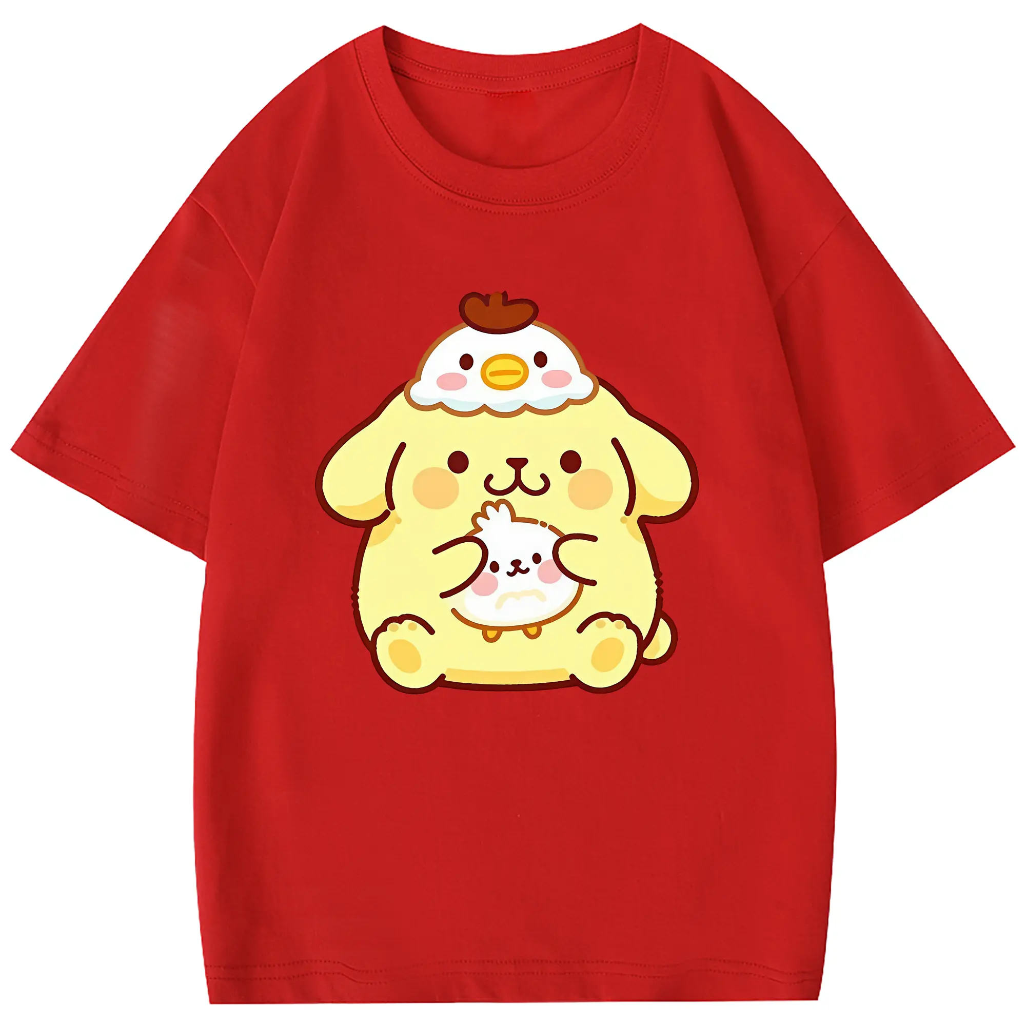 サンリオ グッズ,ポムポムプリン - 綿100% 半袖Tシャツ ・ フロントプリント ・ 快適 通気性 ・ 日常使い 散歩 スポーツ用