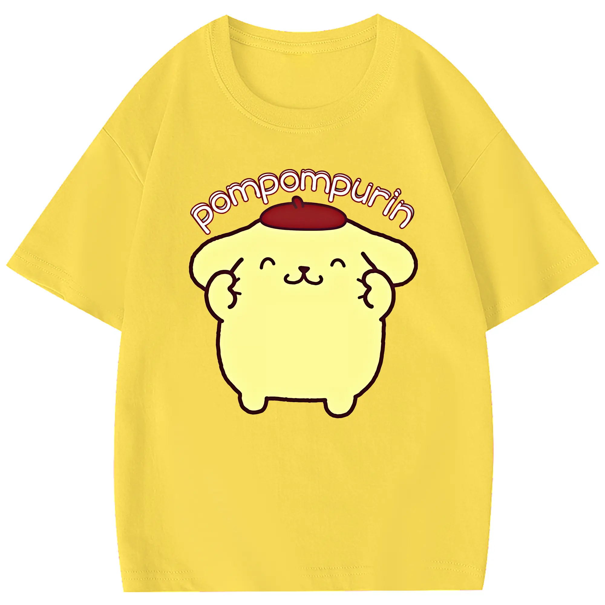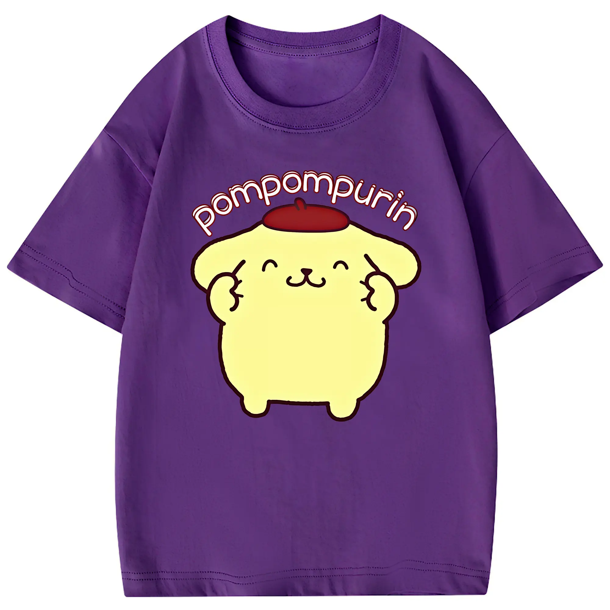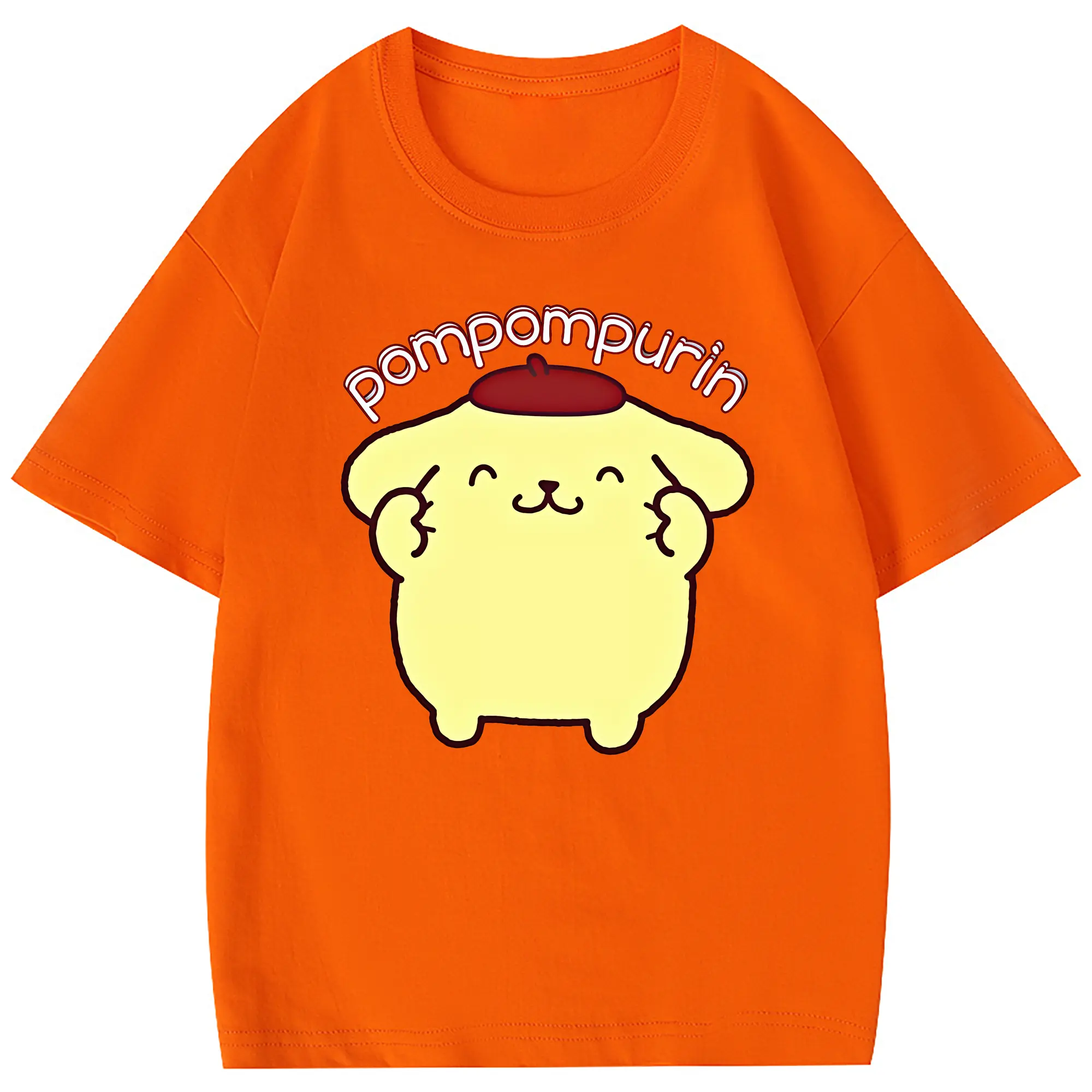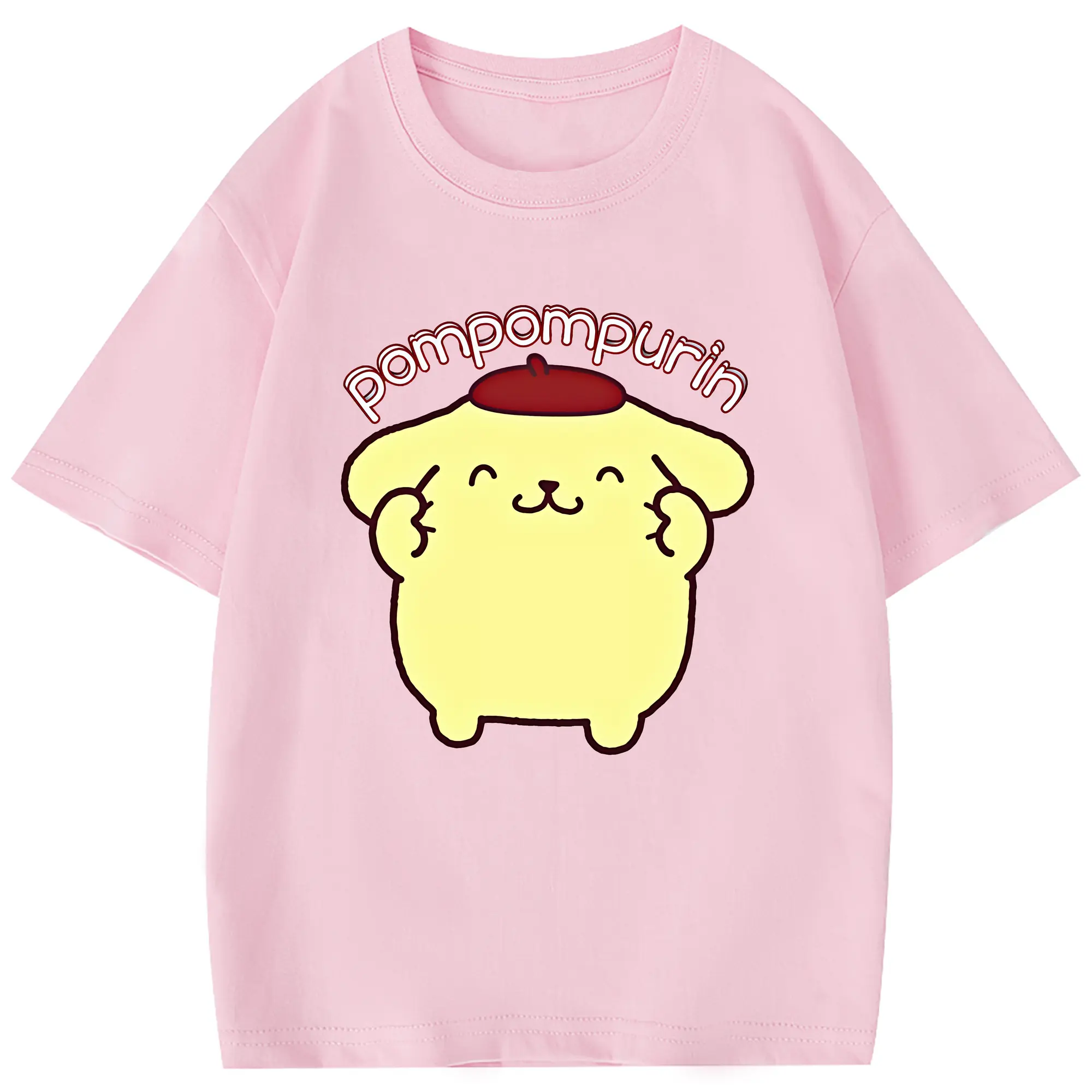 サンリオ グッズ,ポムポムプリン - 綿100% 半袖Tシャツ ・ フロントプリント ・ 快適 通気性 ・ 日常使い 散歩 スポーツ用
