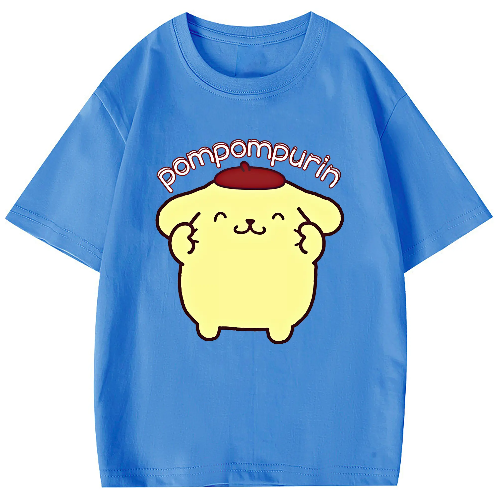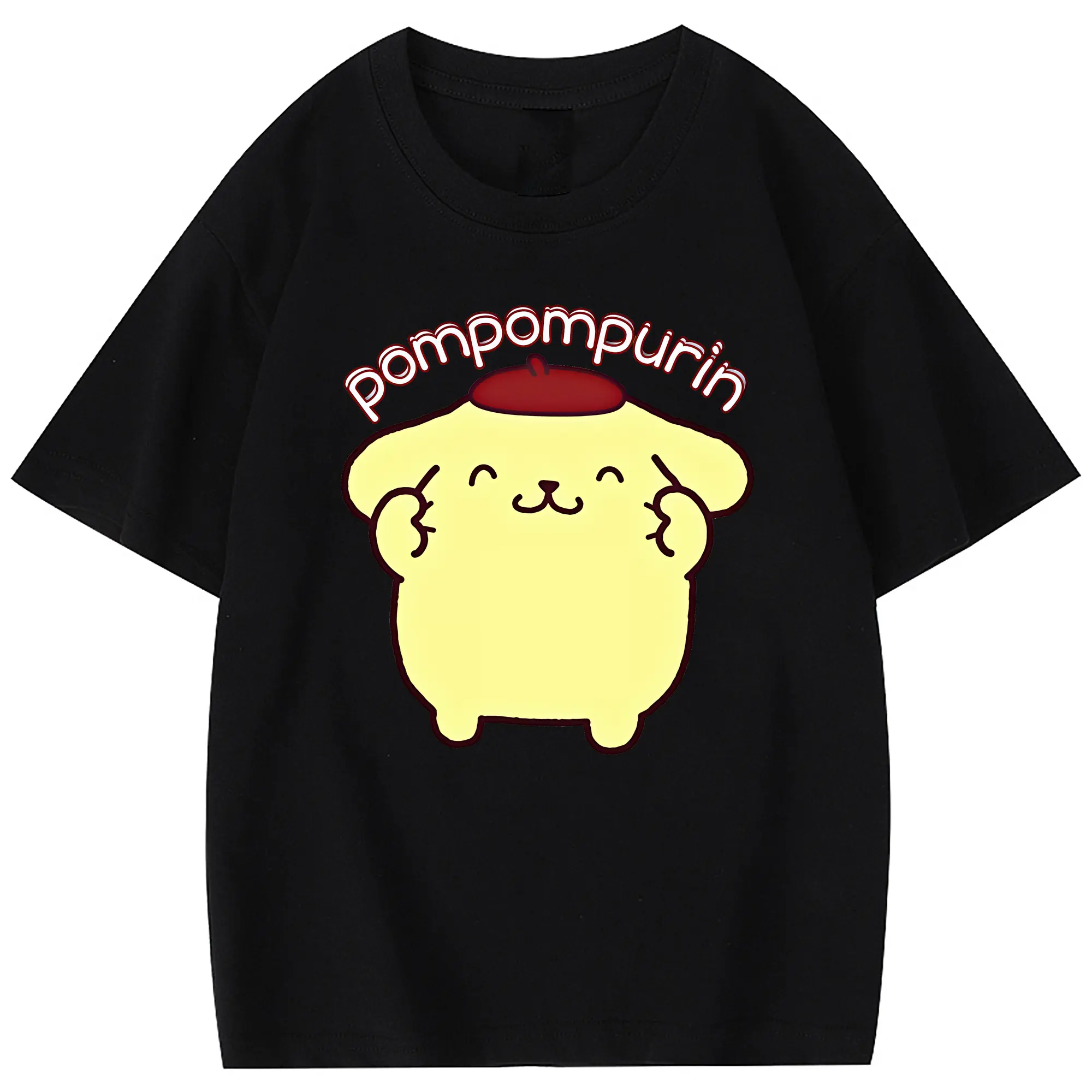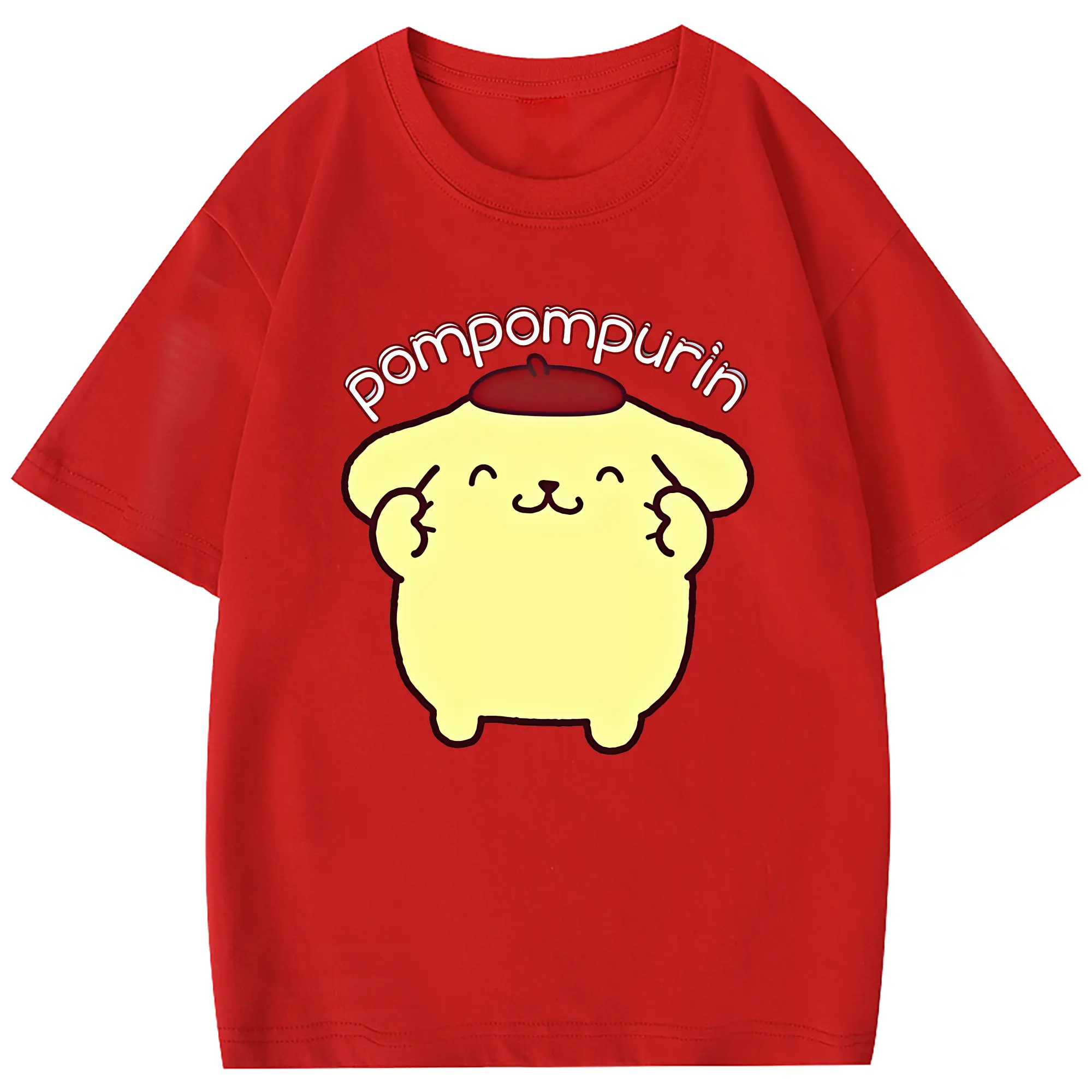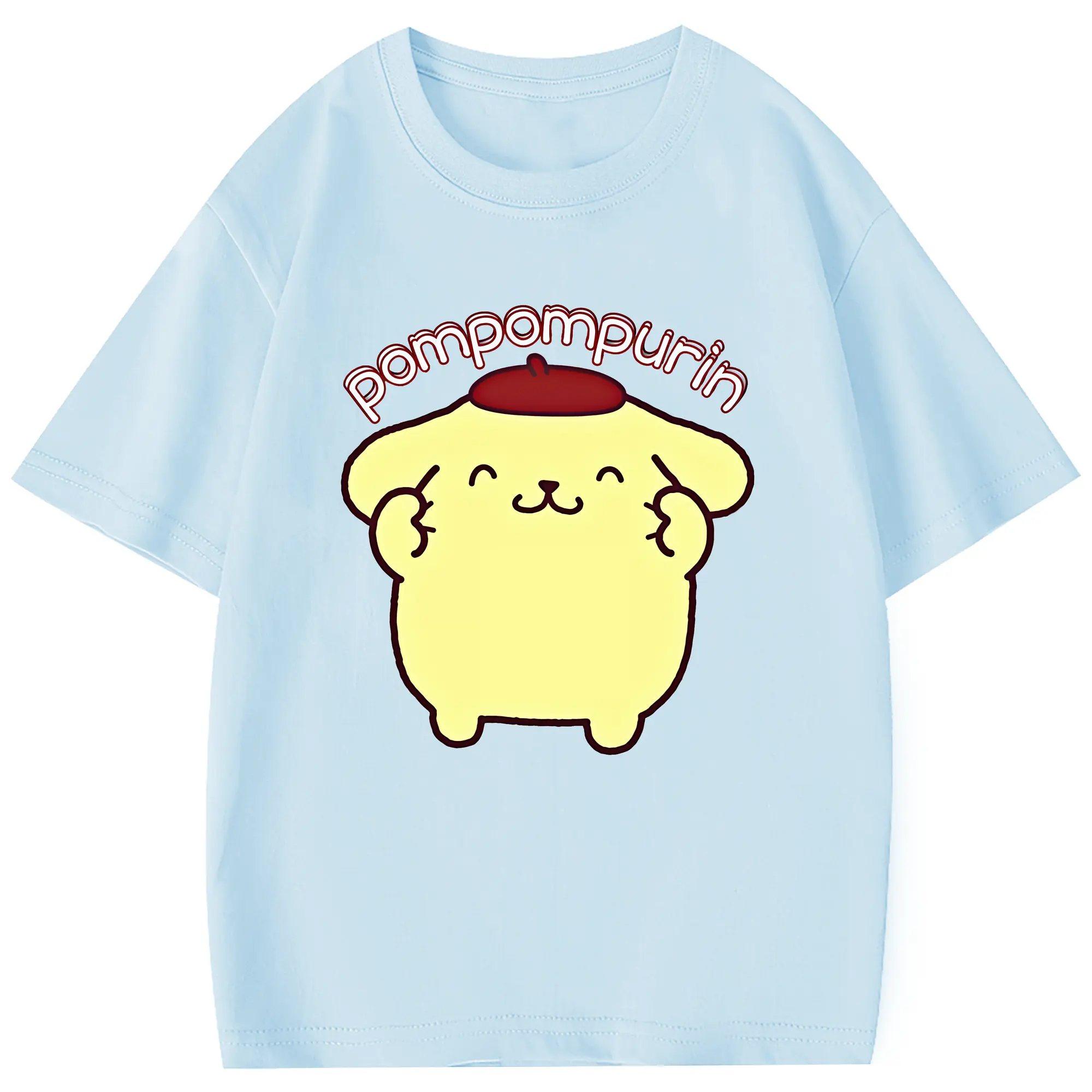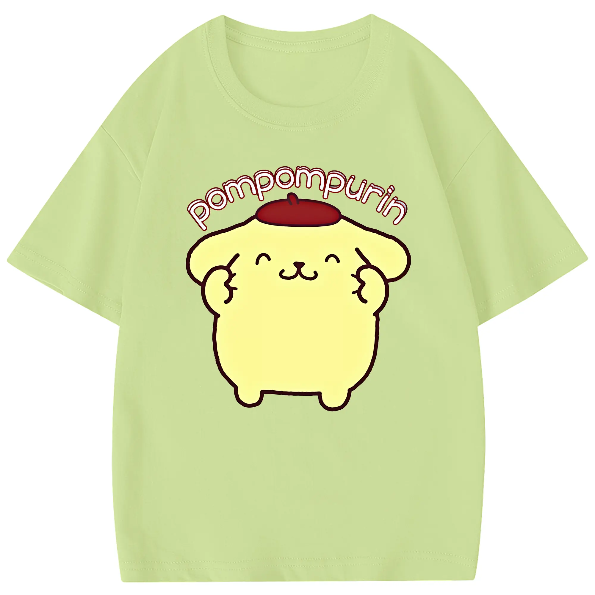 サンリオ グッズ,ポムポムプリン - 綿100% 半袖Tシャツ ・ フロントプリント ・ 快適 通気性 ・ 日常使い 散歩 スポーツ用