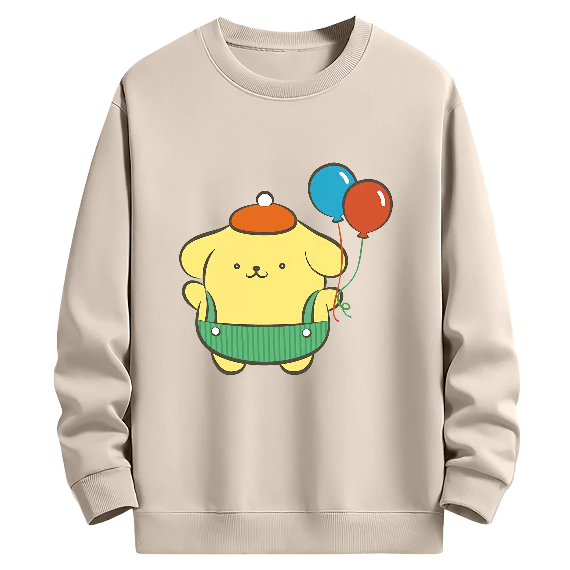 サンリオ グッズ,ポムポムプリン - 薄手 クルーネック スウェット 裏毛260g · ポリエステル 春秋向け カジュアル 男女兼用 · トレーナー デイリー スポーツ 散歩に最適